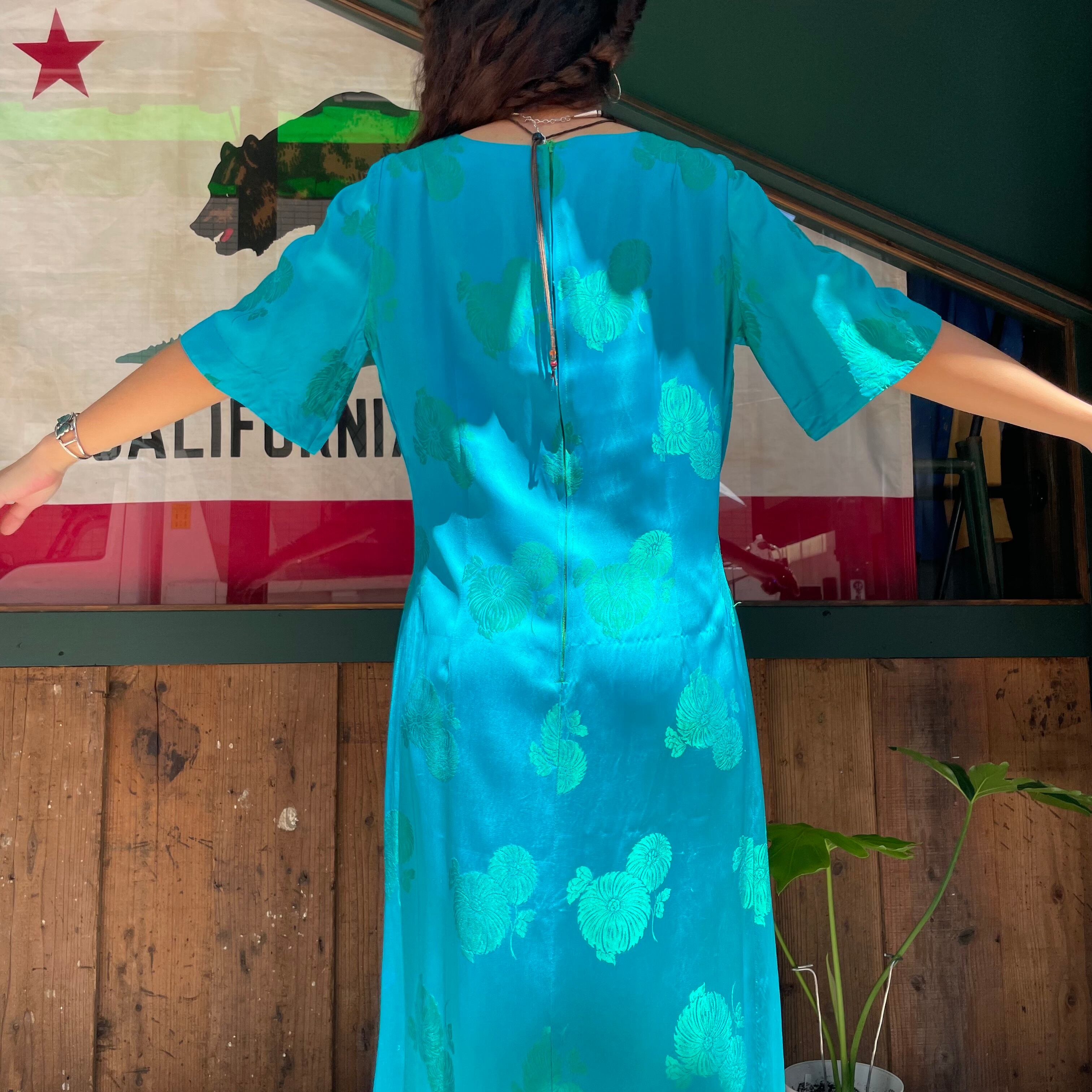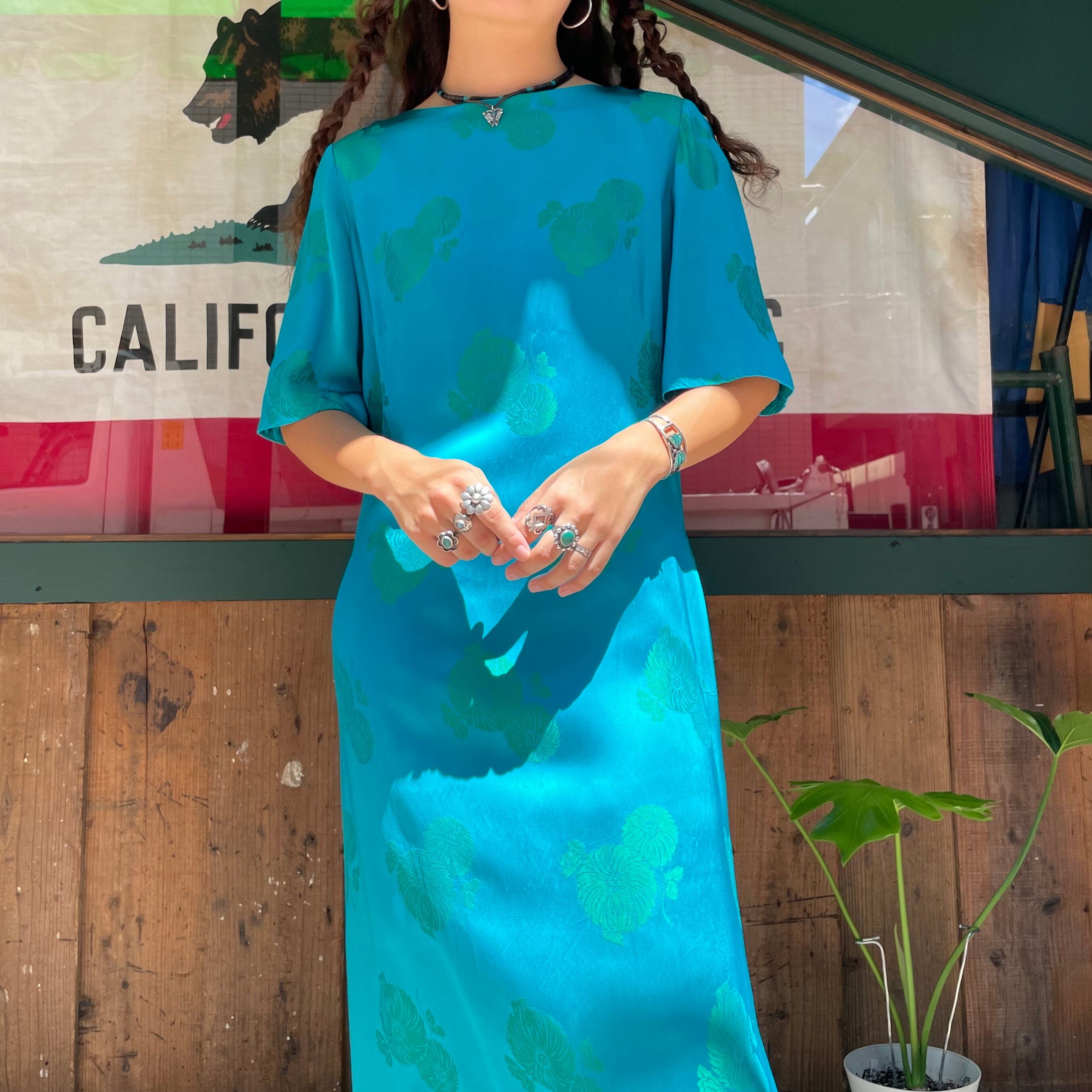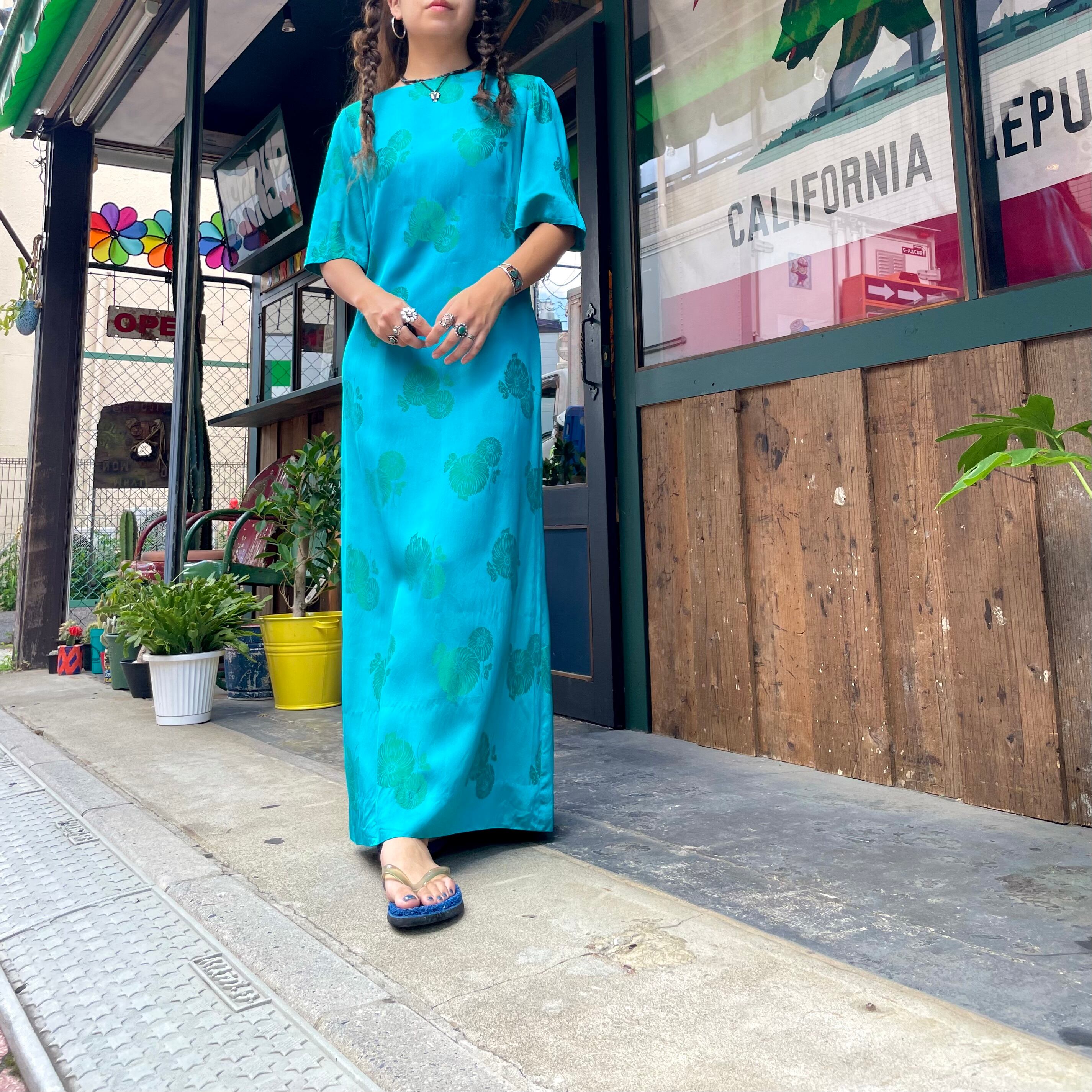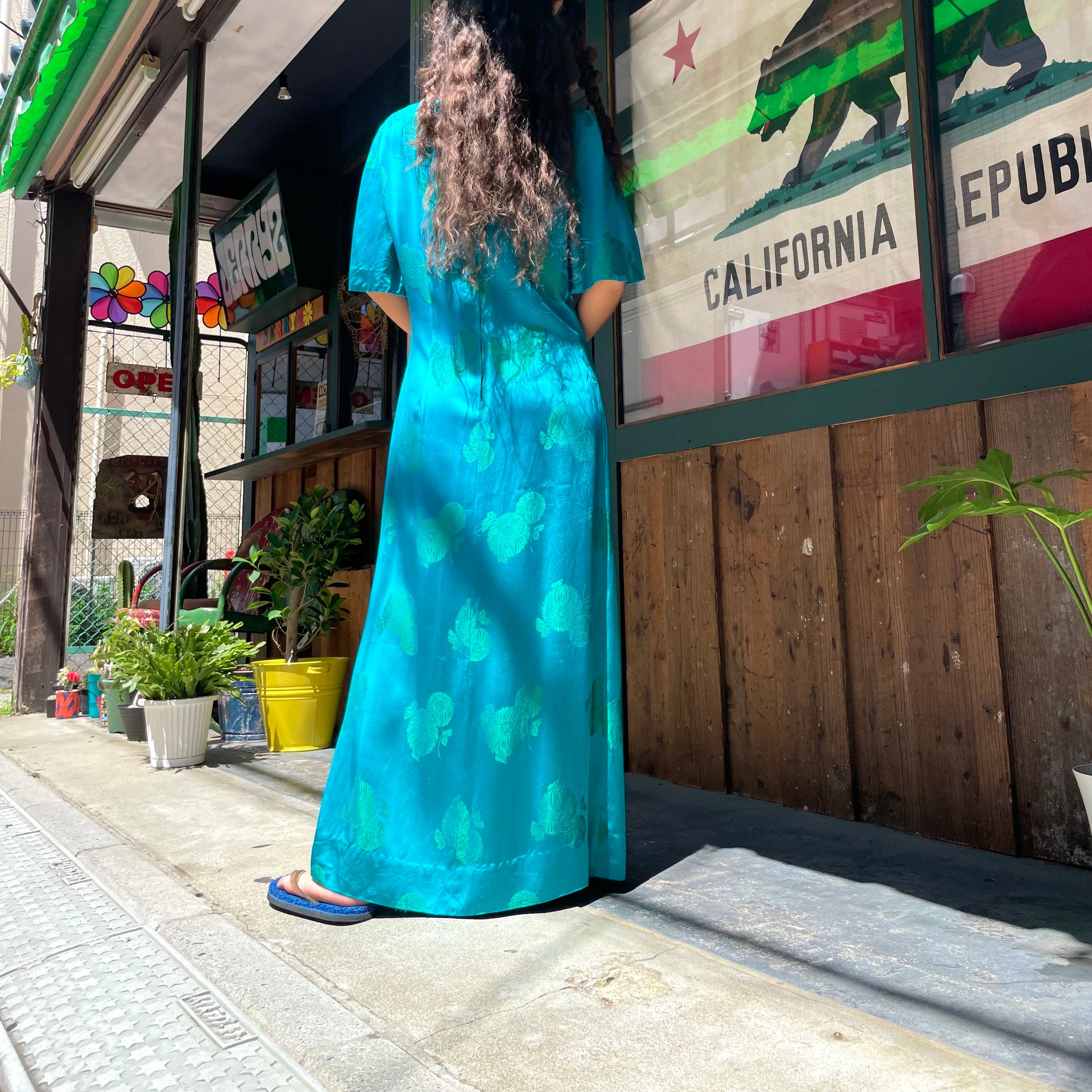 光沢のあるきれいな色味の60〜70年代頃のワンピースです。