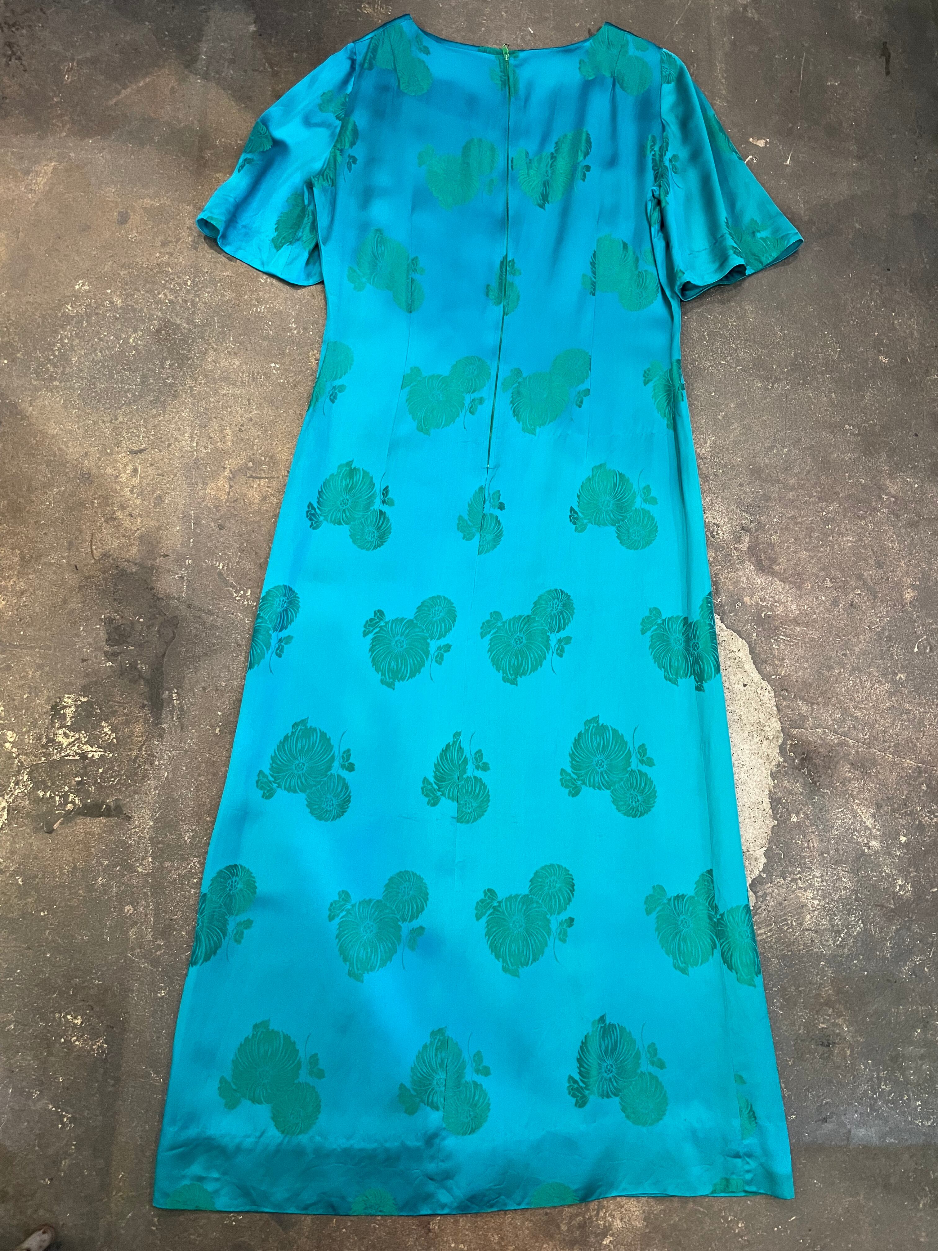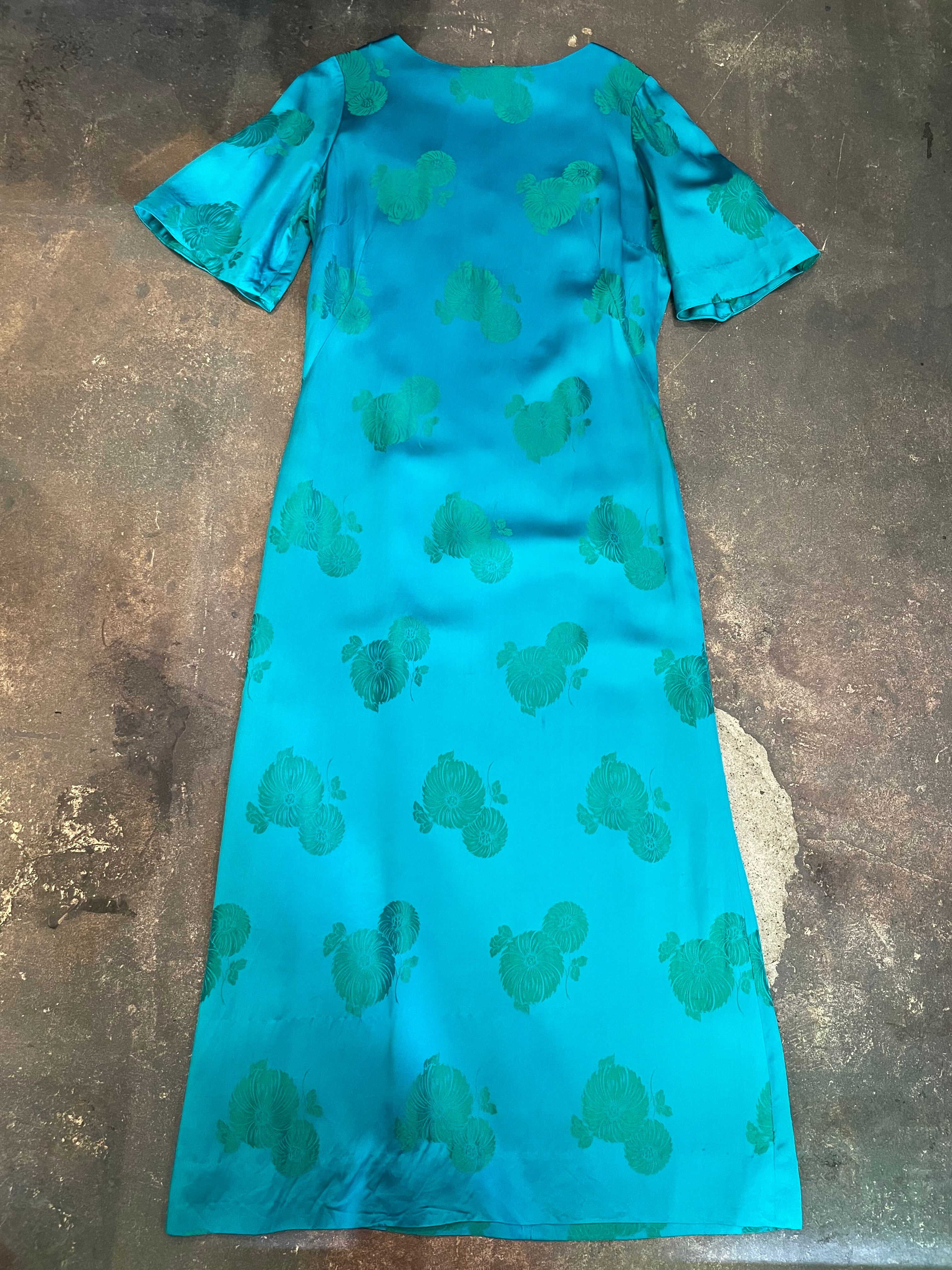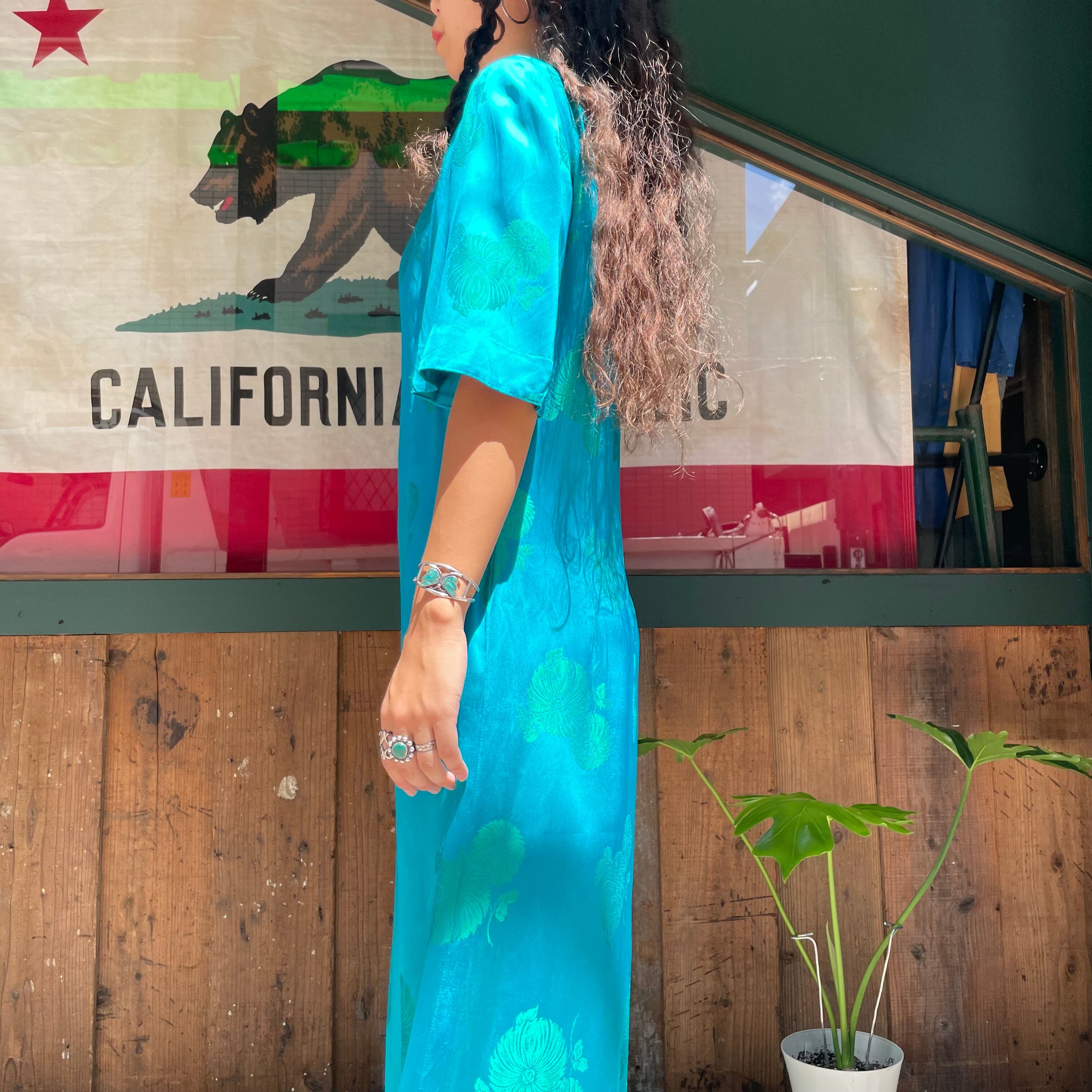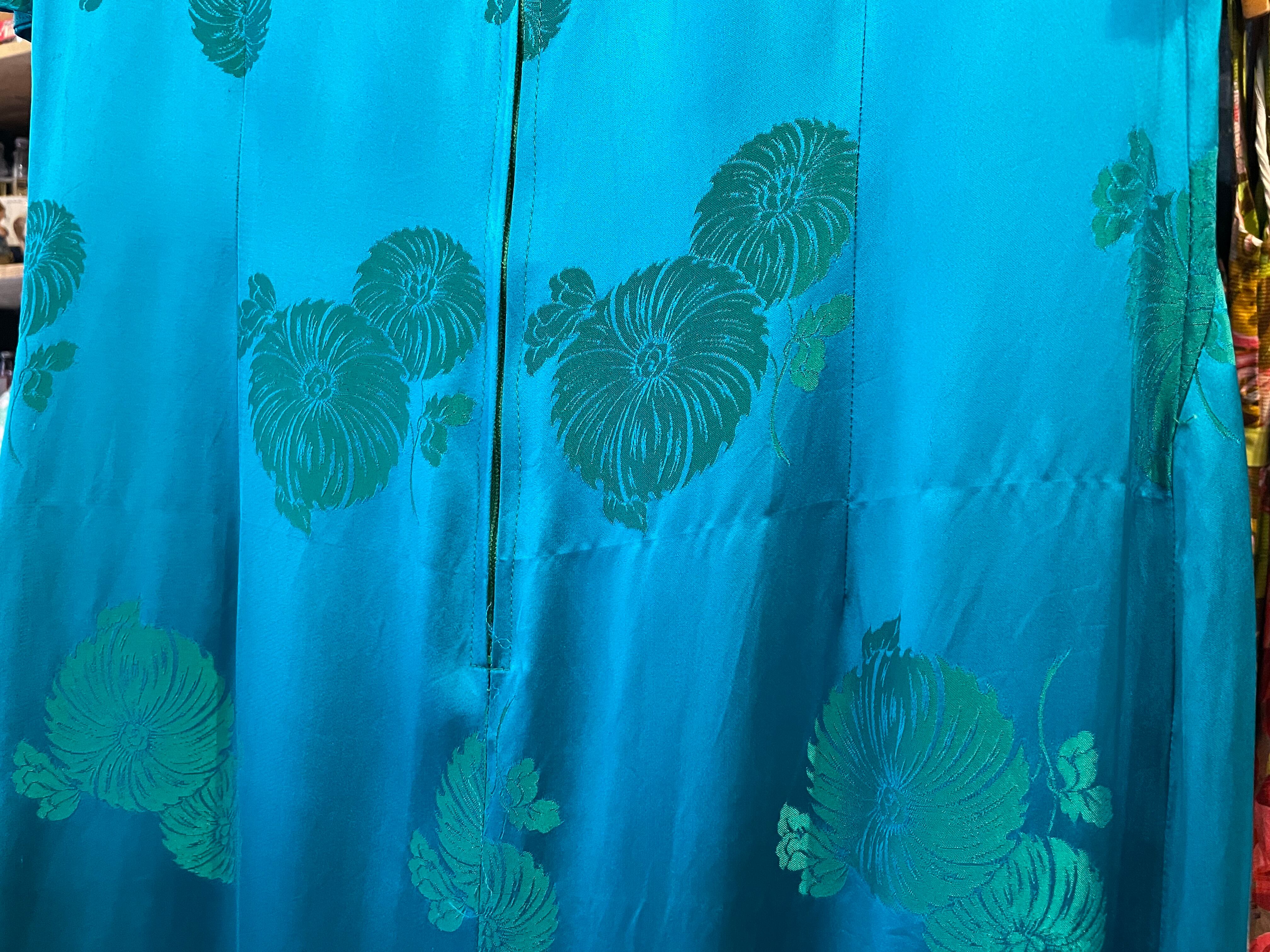 光沢のあるきれいな色味の60〜70年代頃のワンピースです。