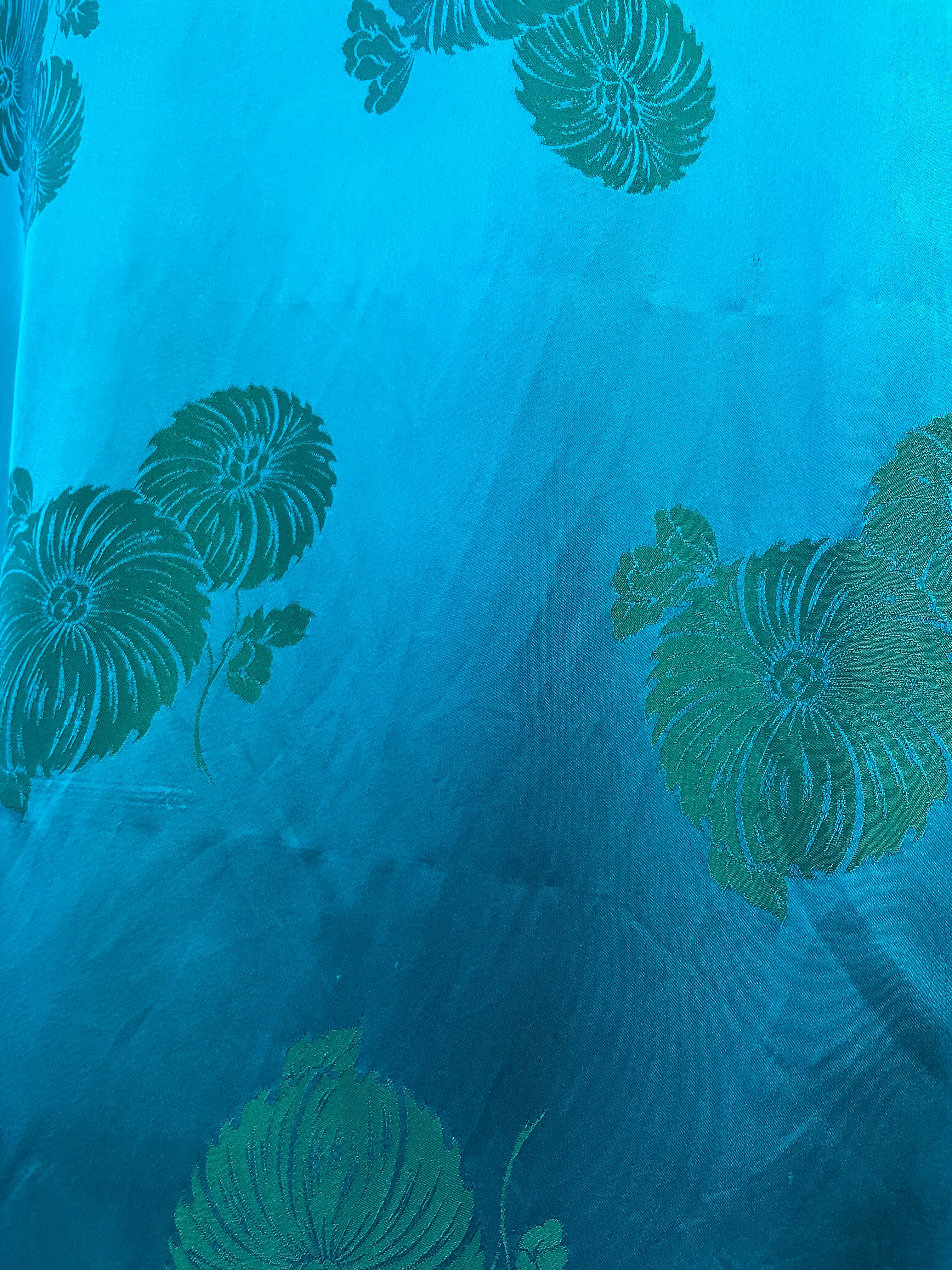 プリントではなく織りでお花の模様になっていて光の加減ではっきり見えたりうっすら見えたり、素材の良さも感じられます。