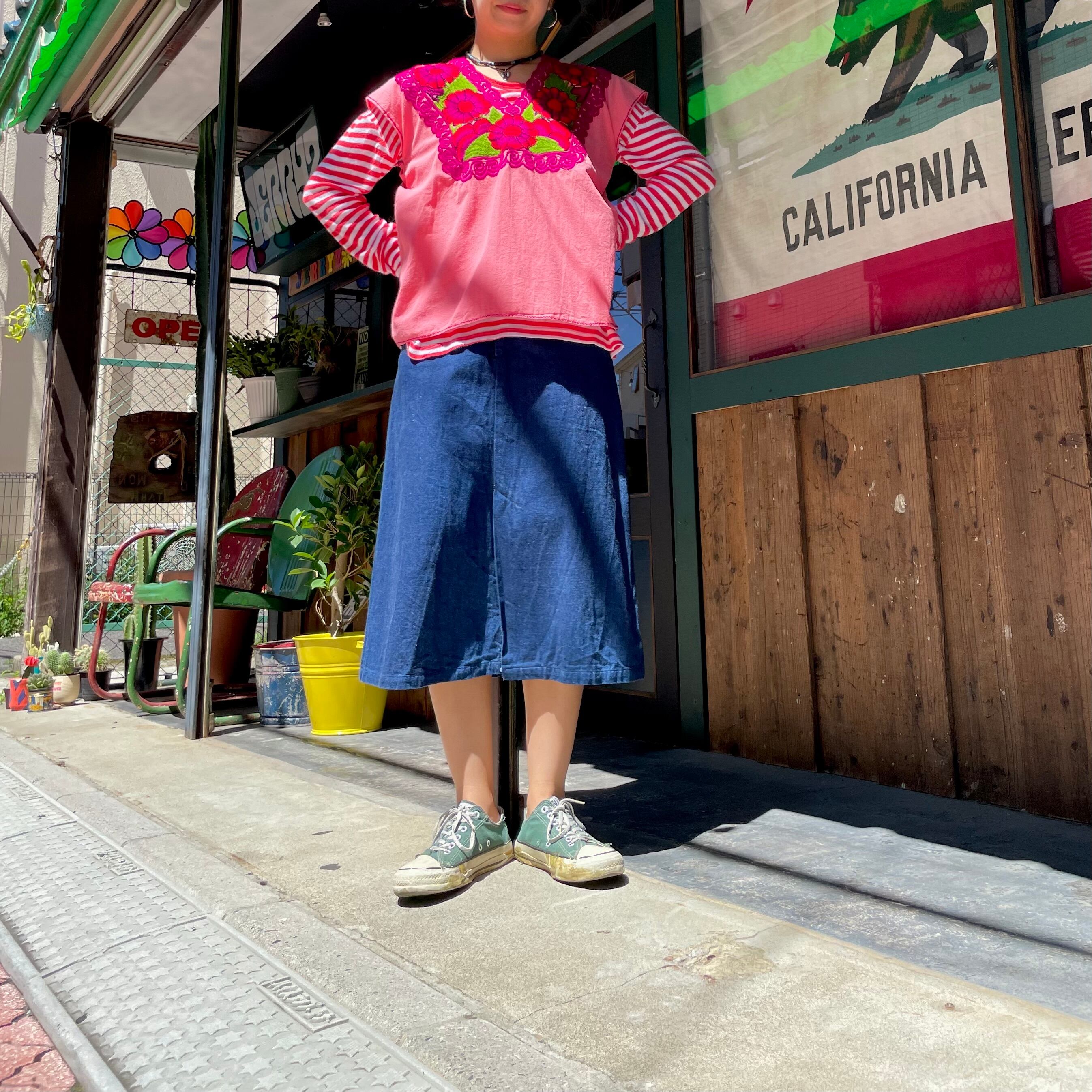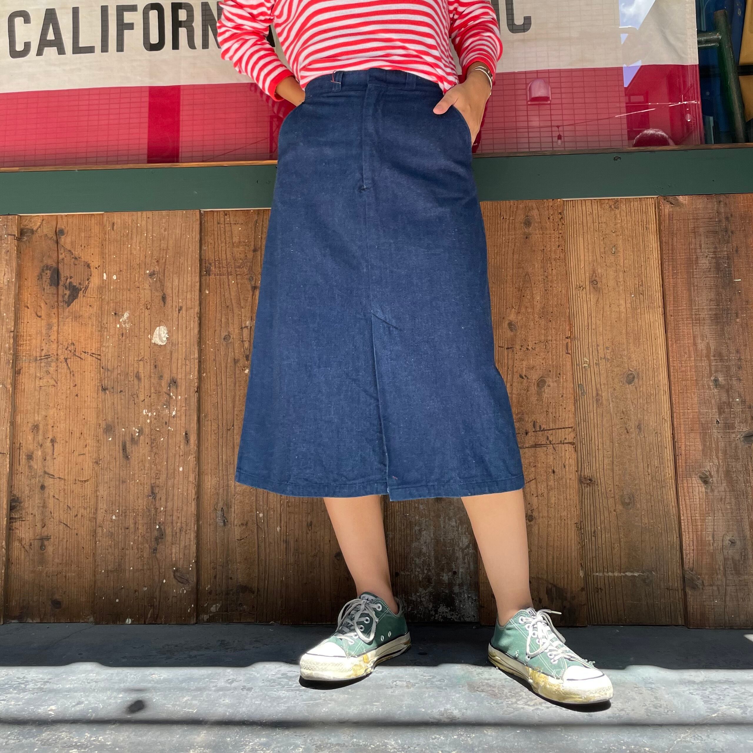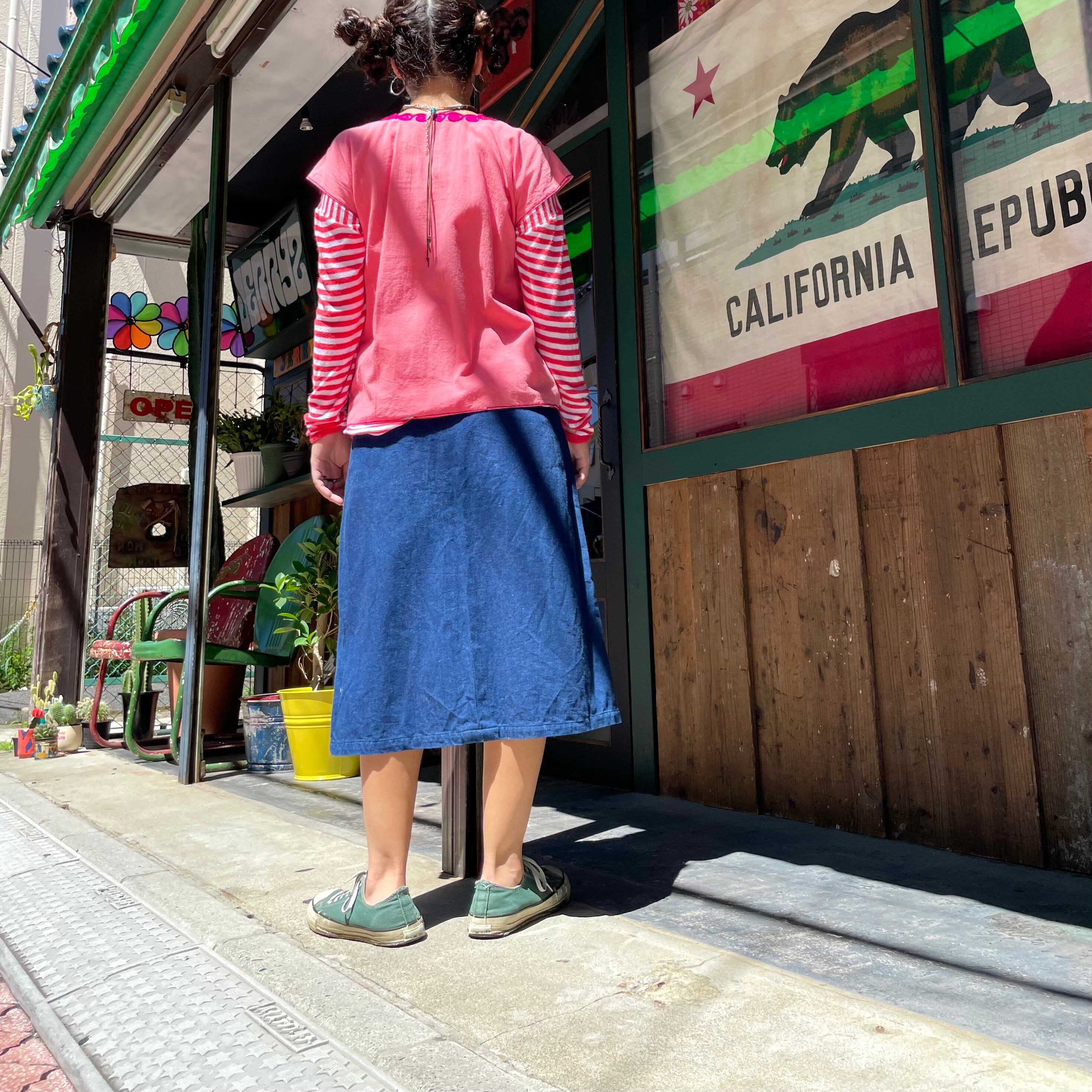 前裾にスリットがあり大人っぽい丈感がかわいいデニムスカートです。