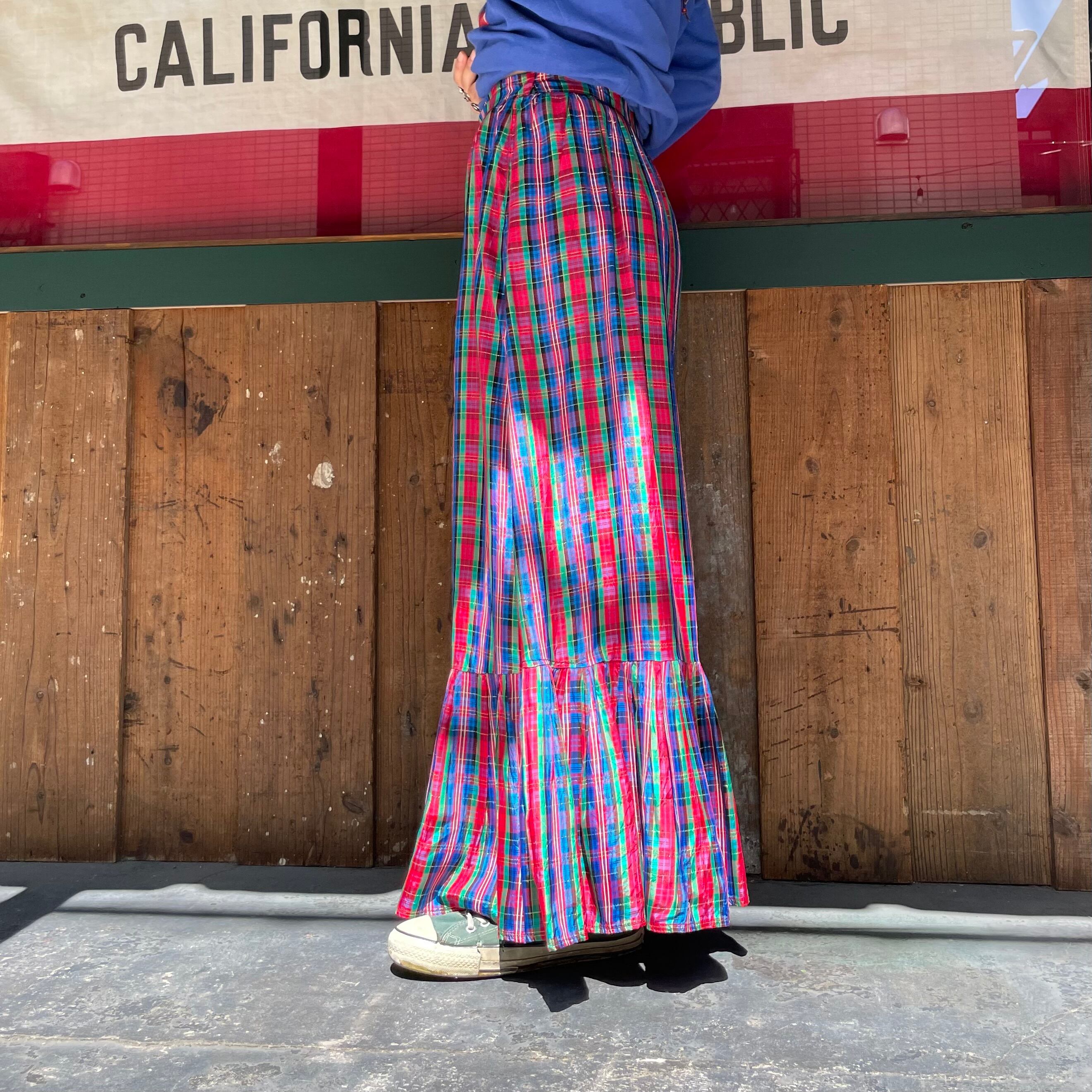 70's plaid long skirt