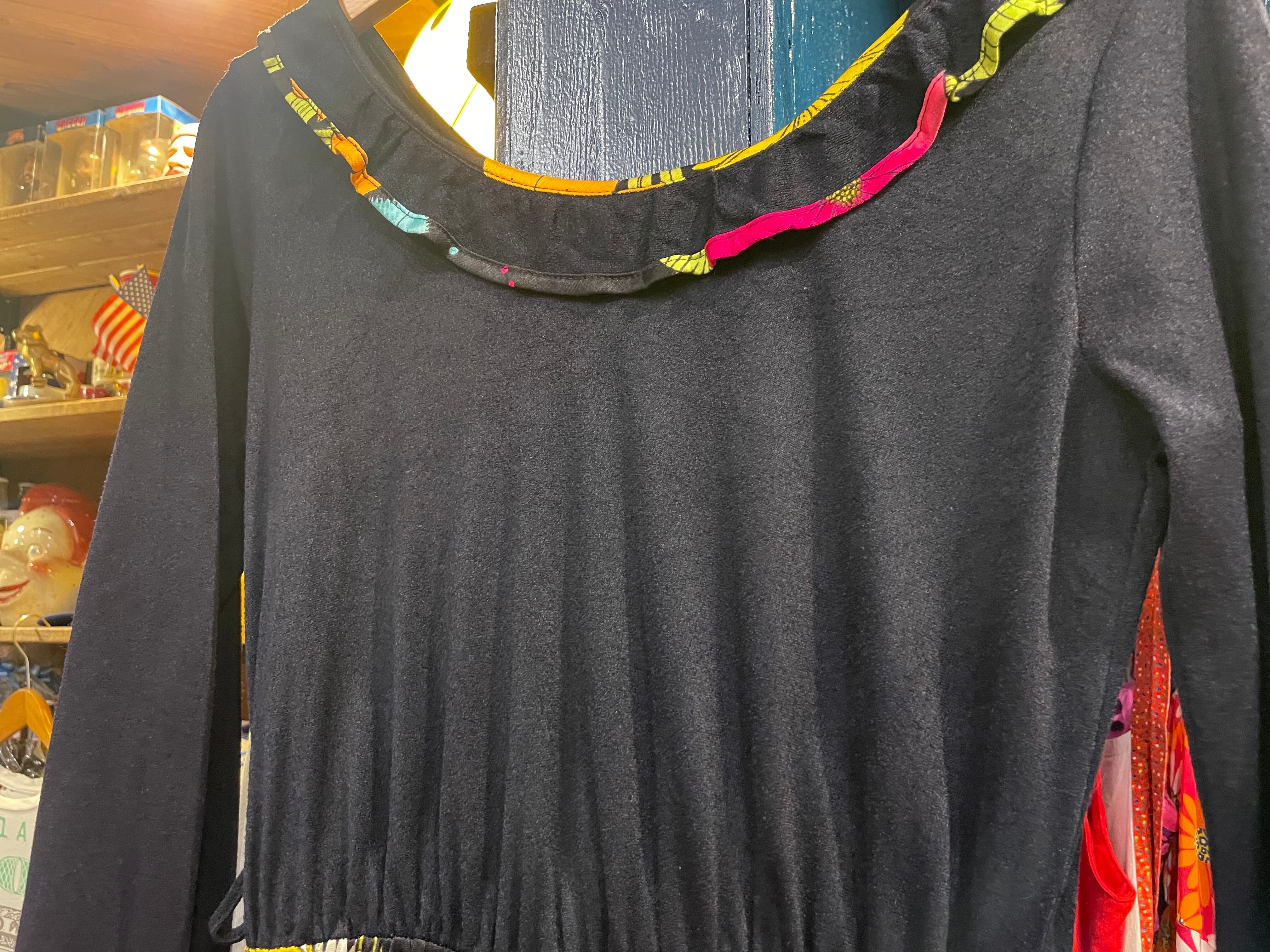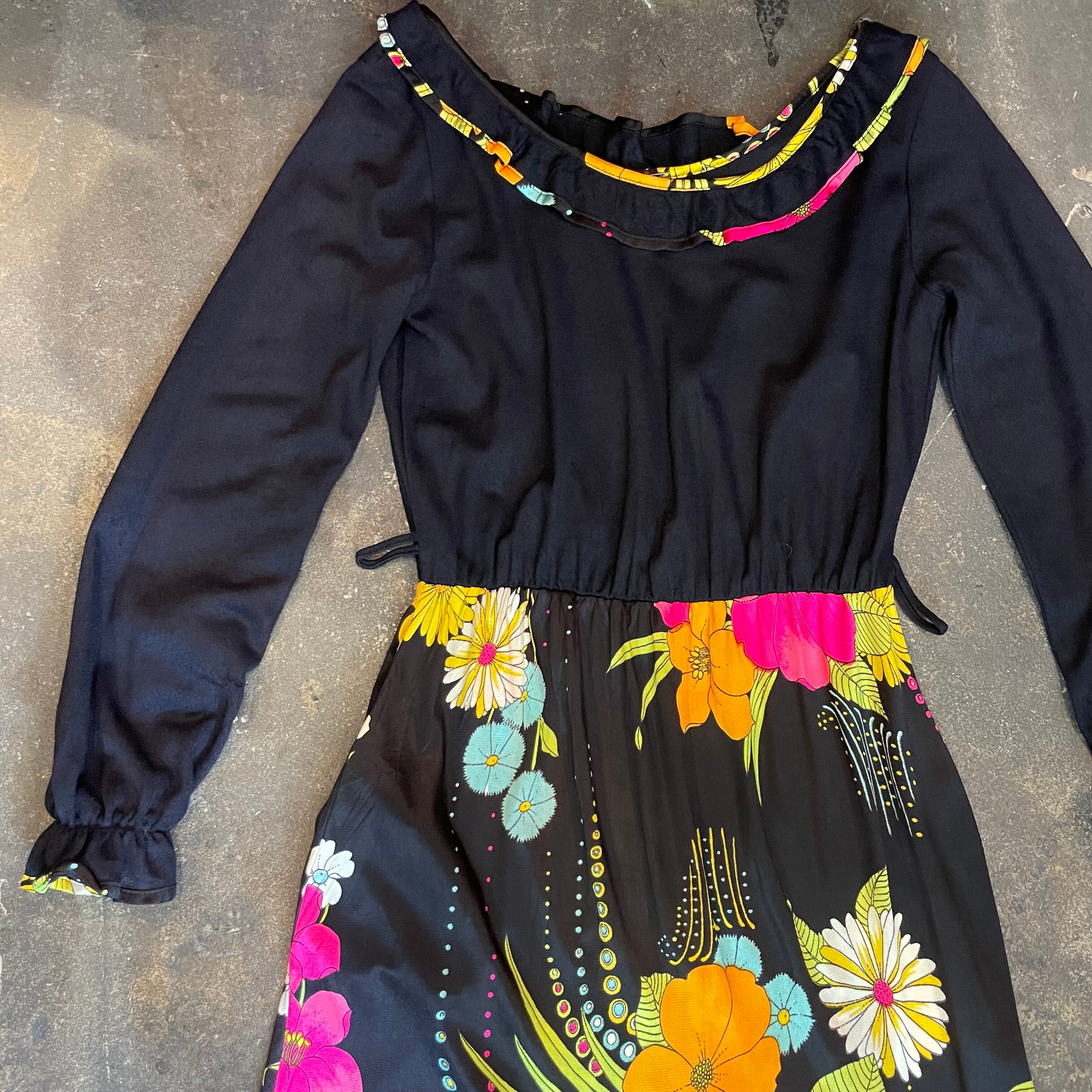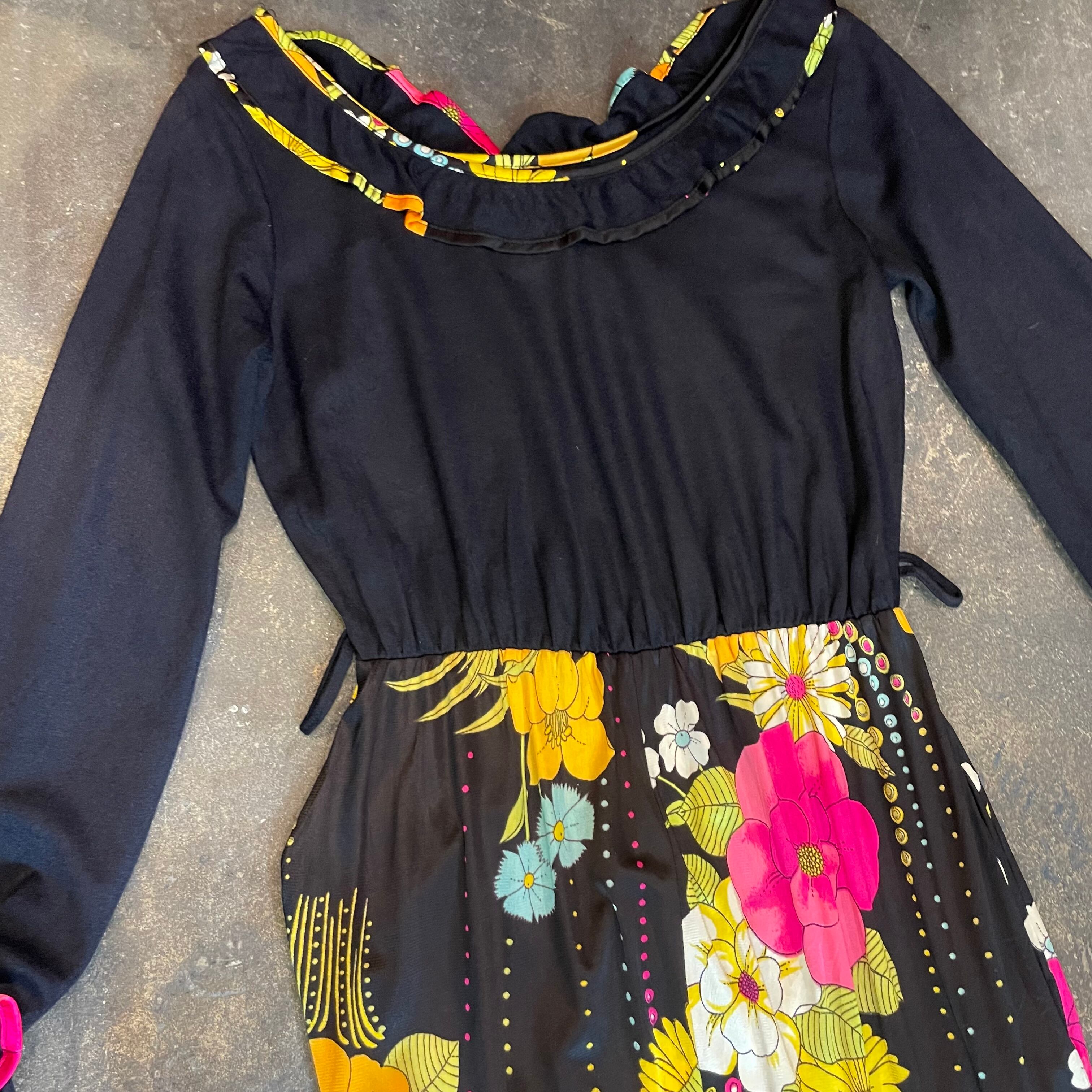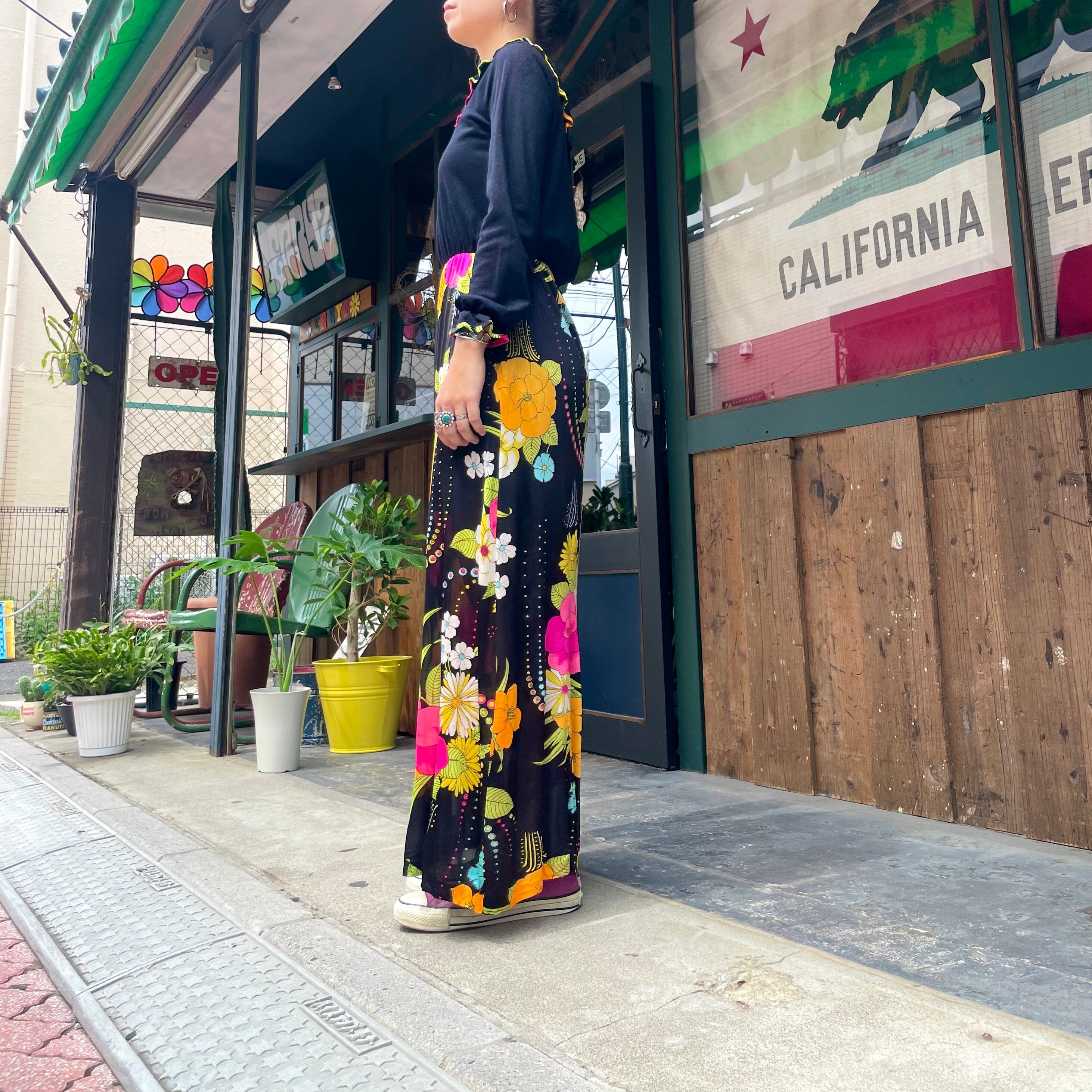 黒ベースにカラフルなお花たちが映えて素敵なワンピースです。