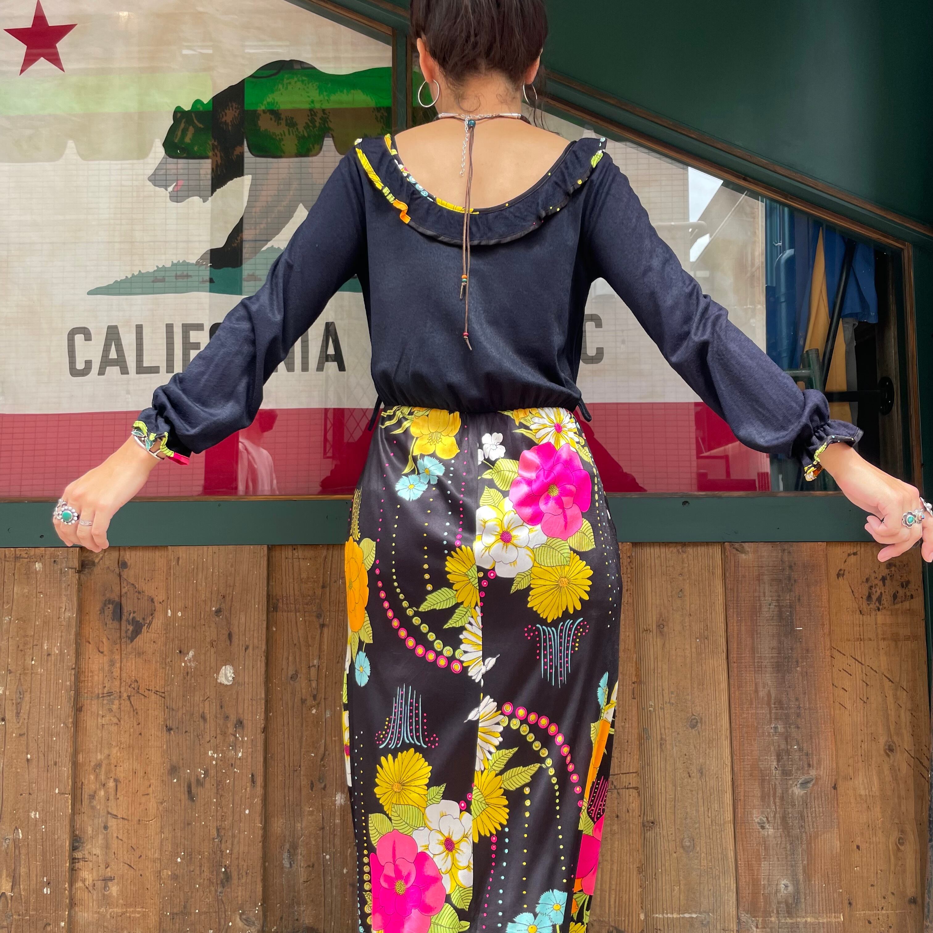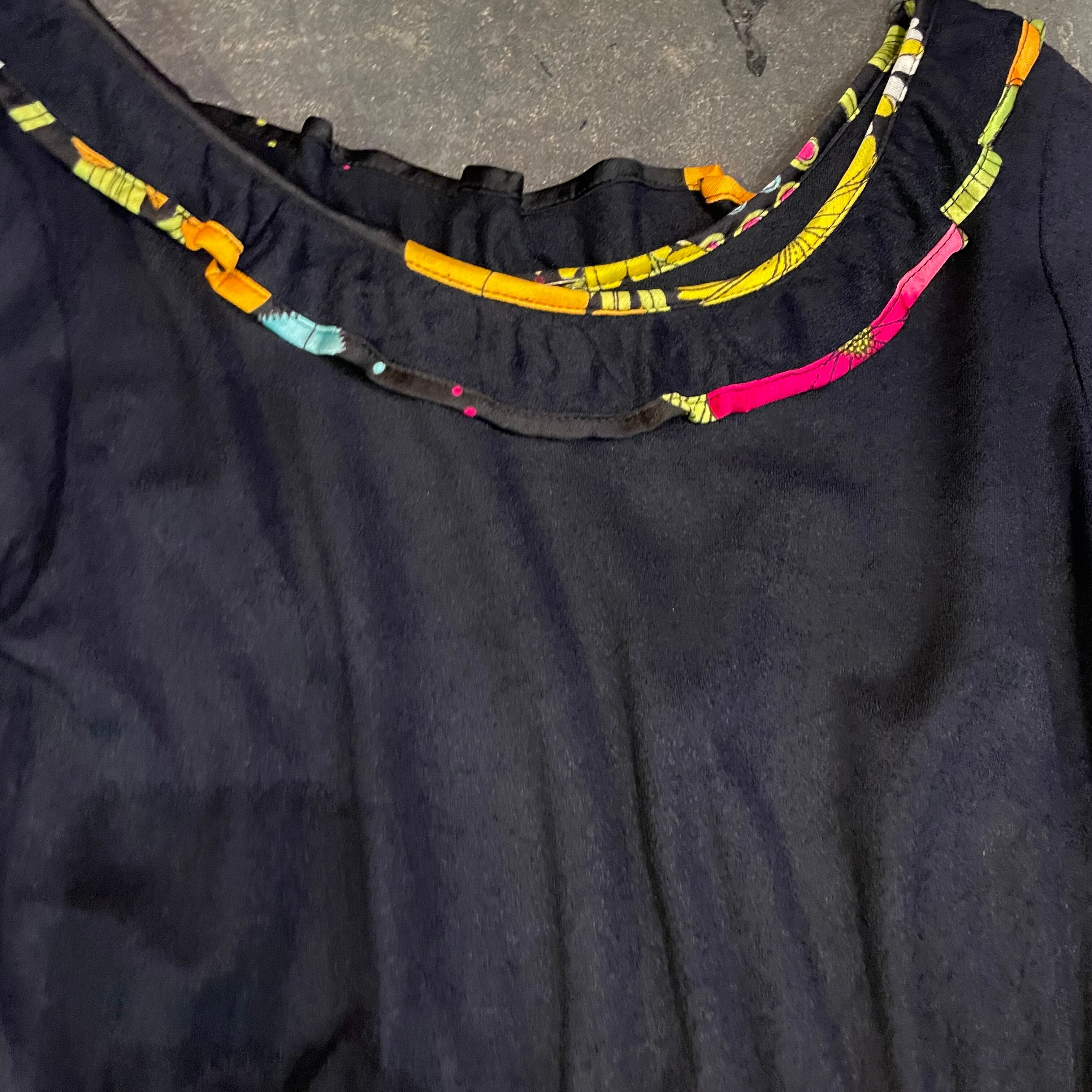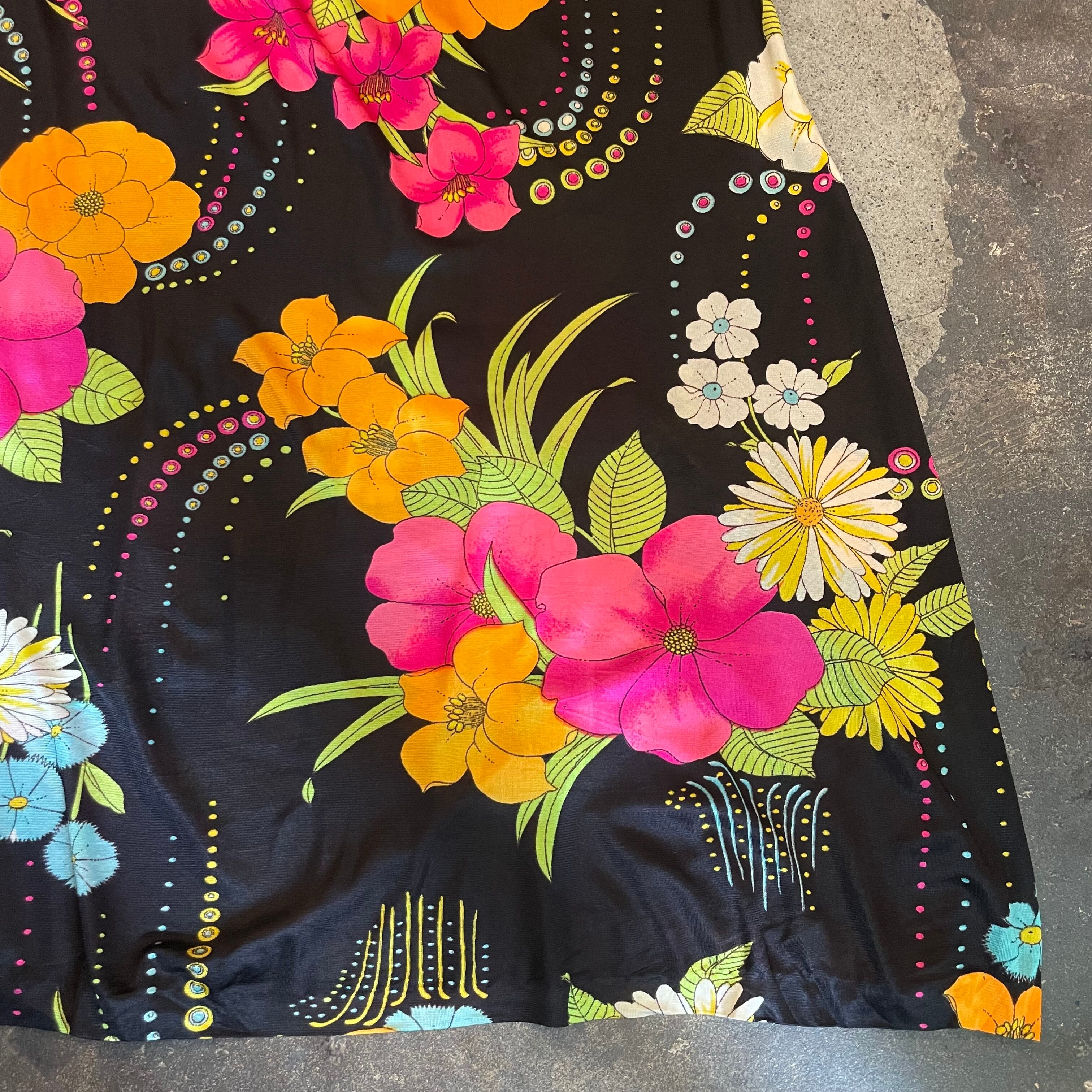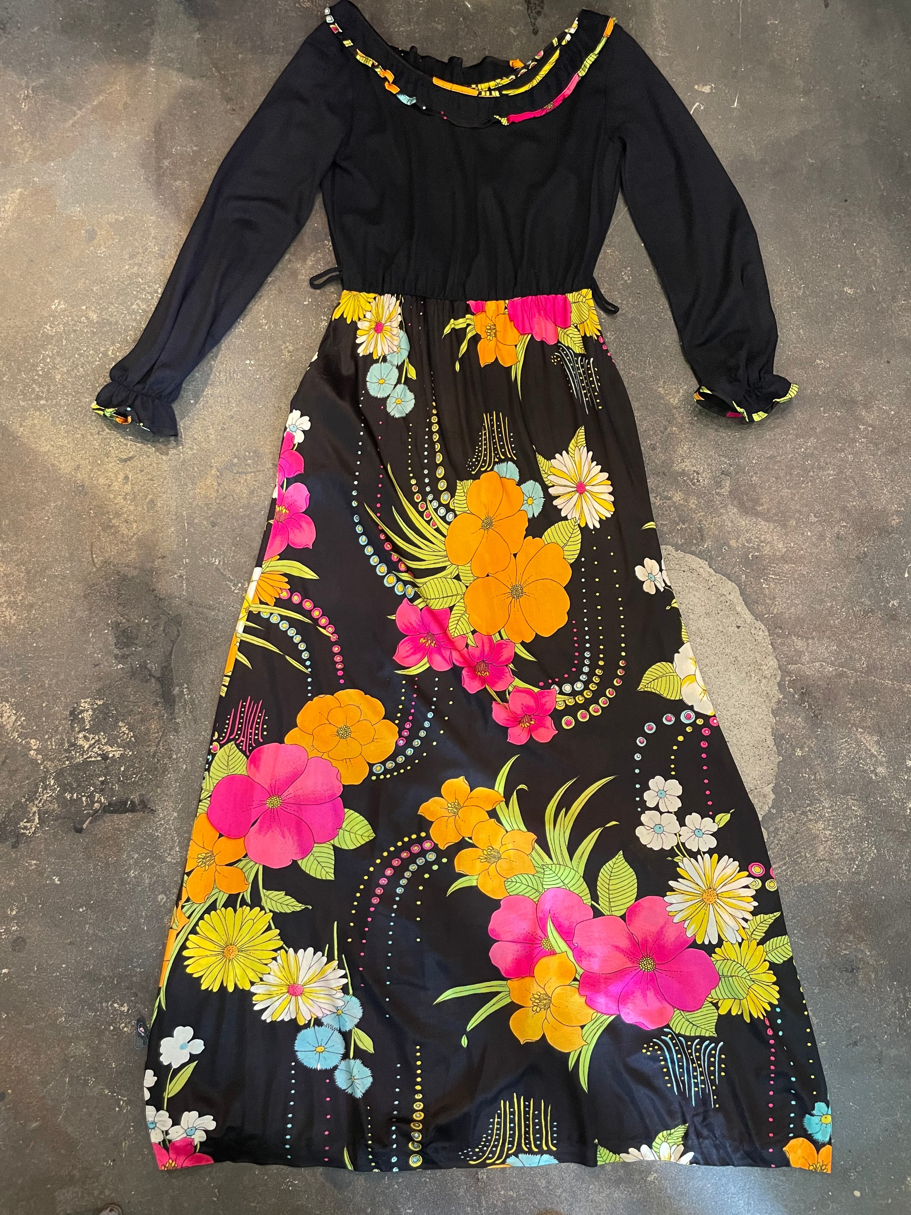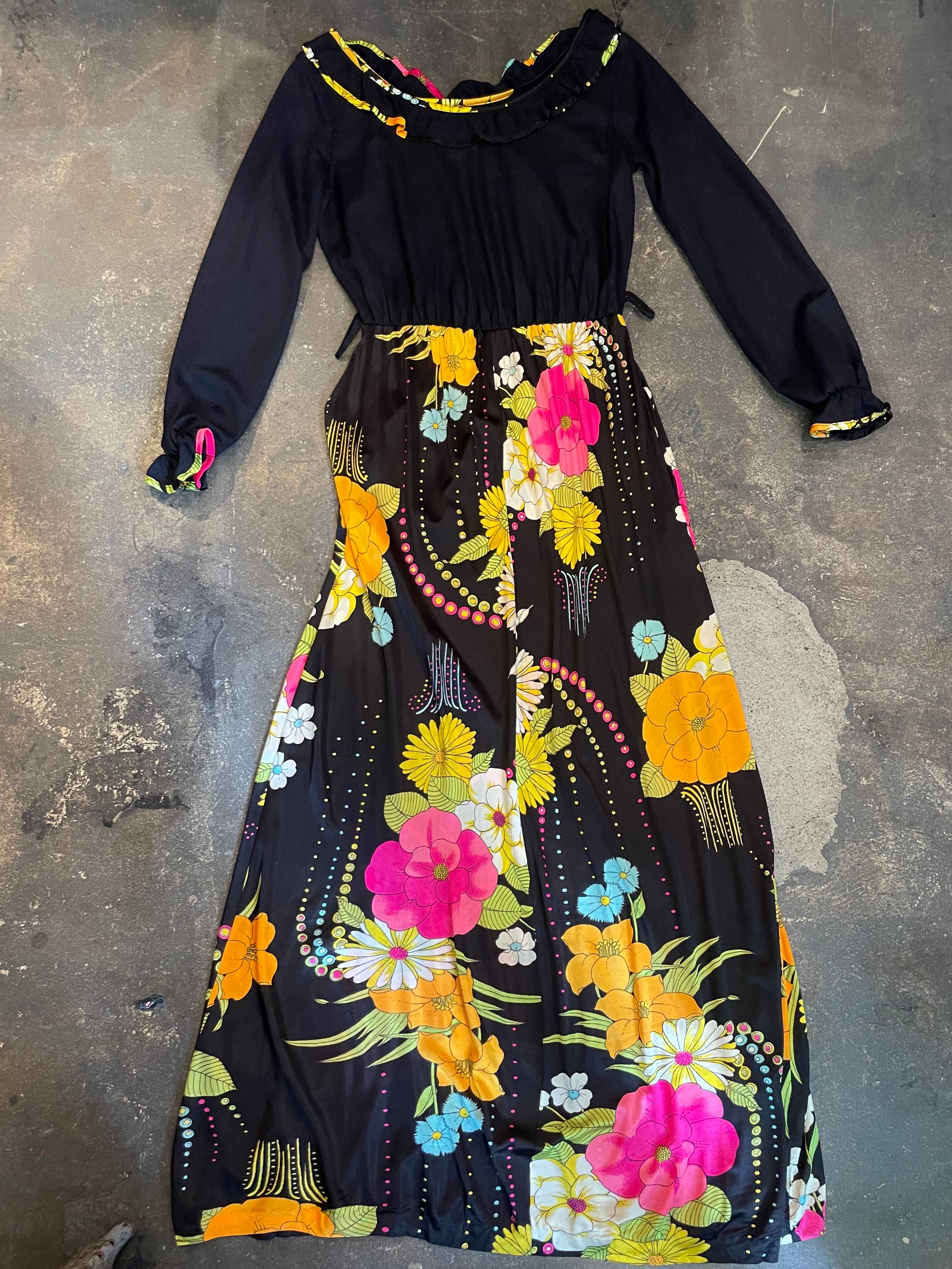 黒ベースにカラフルなお花たちが映えて素敵なワンピースです。