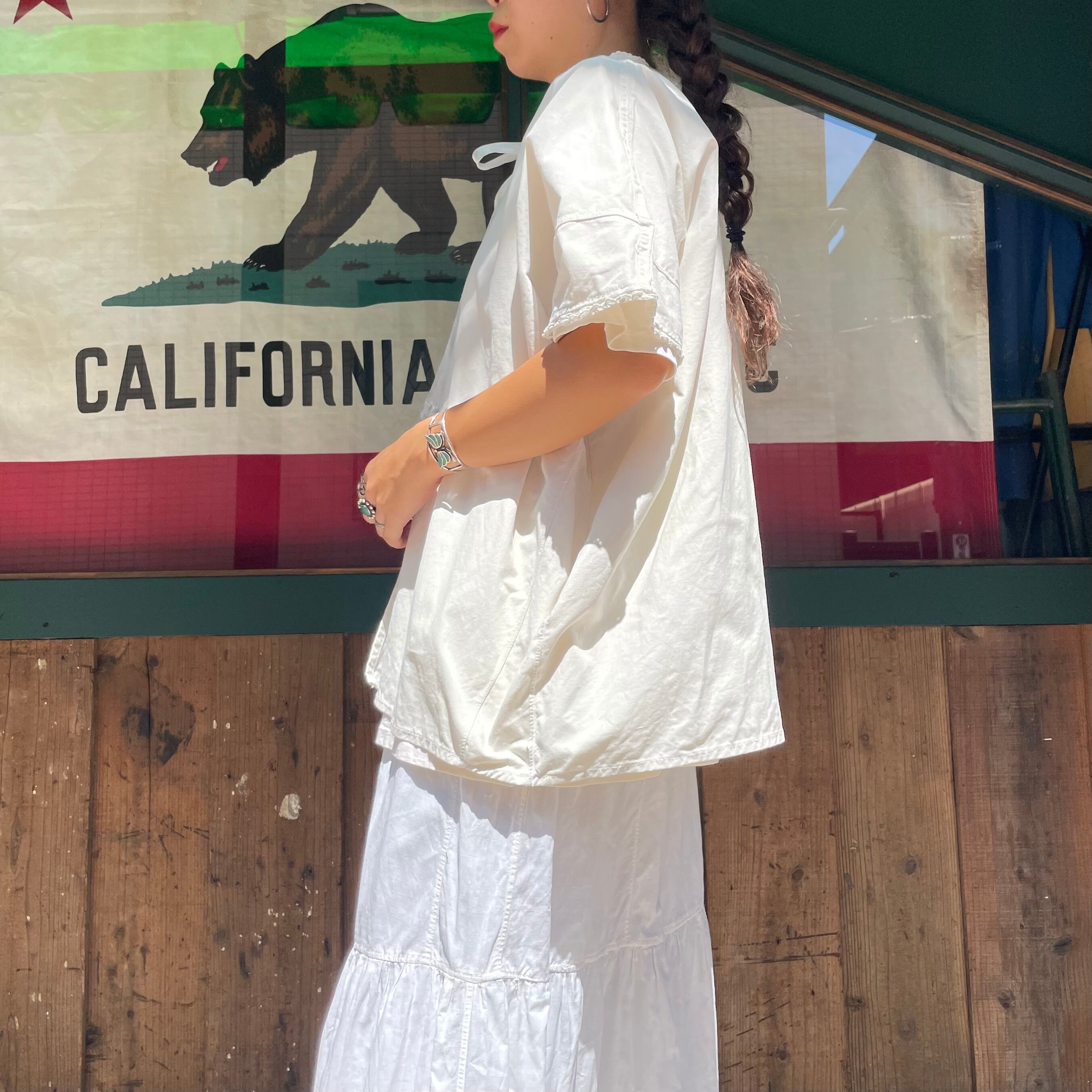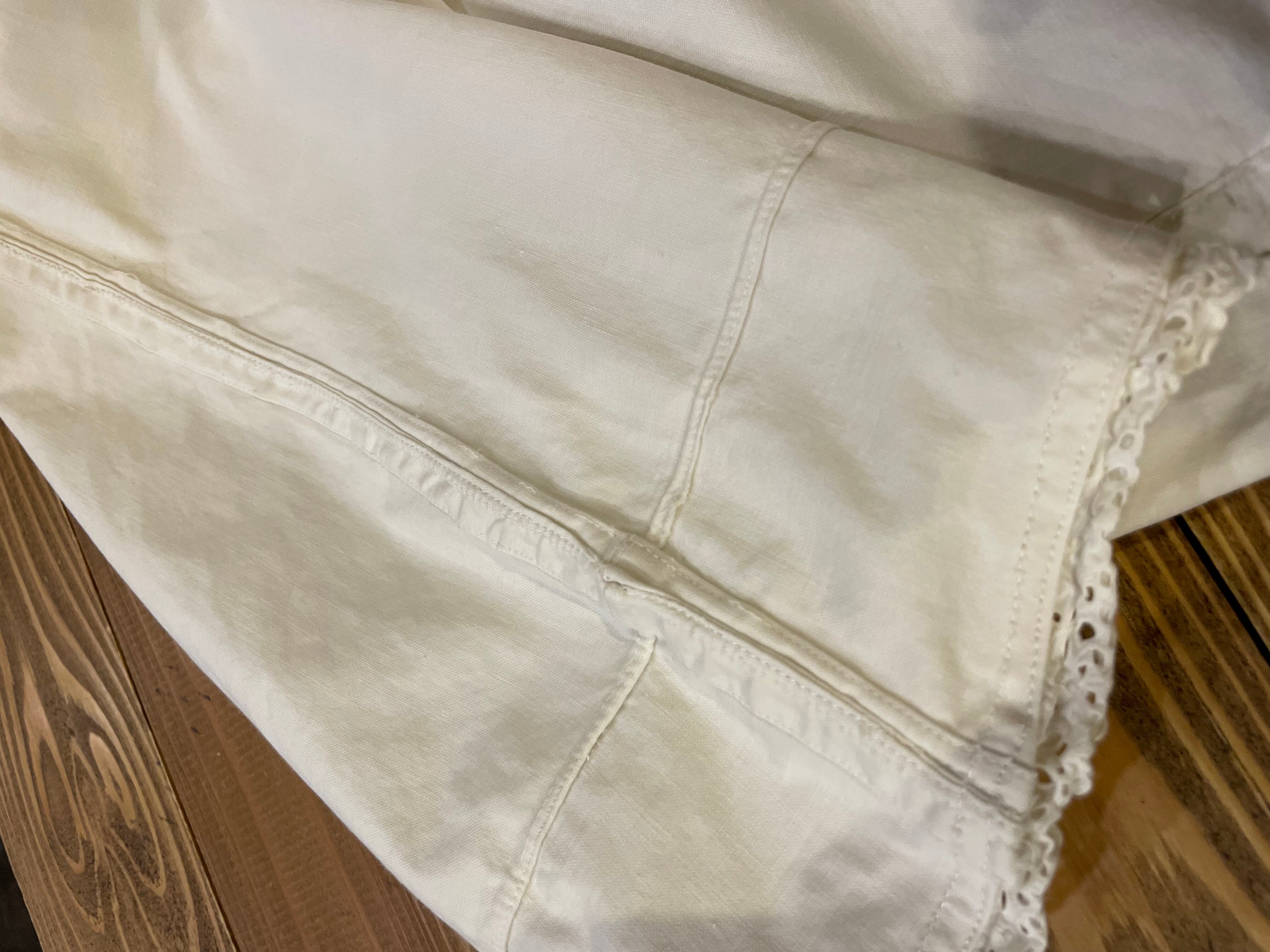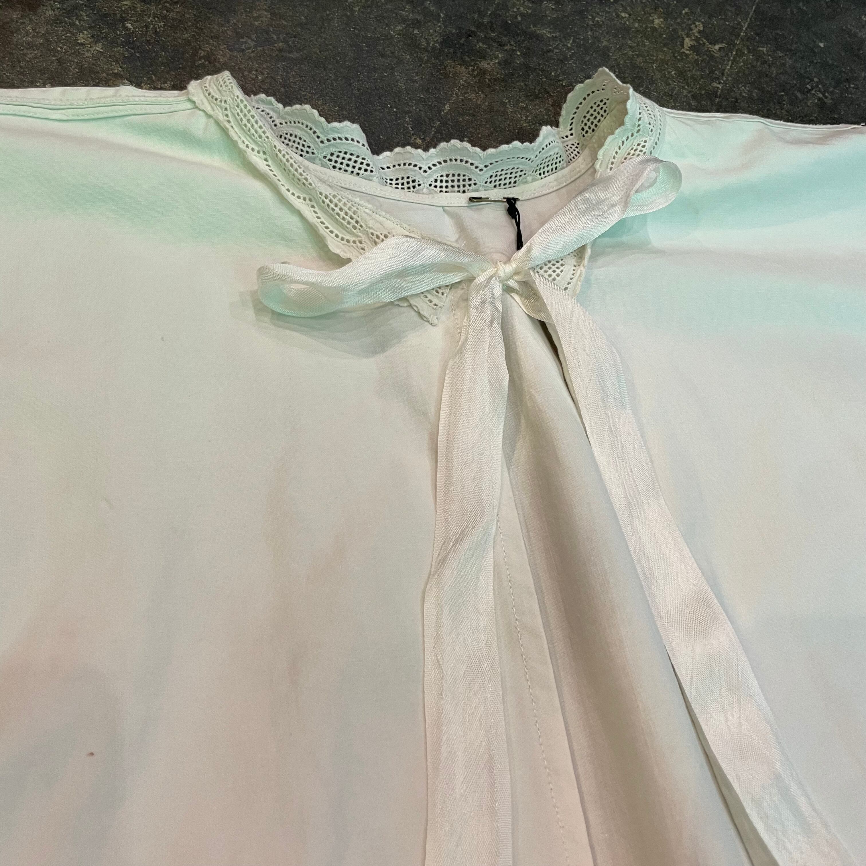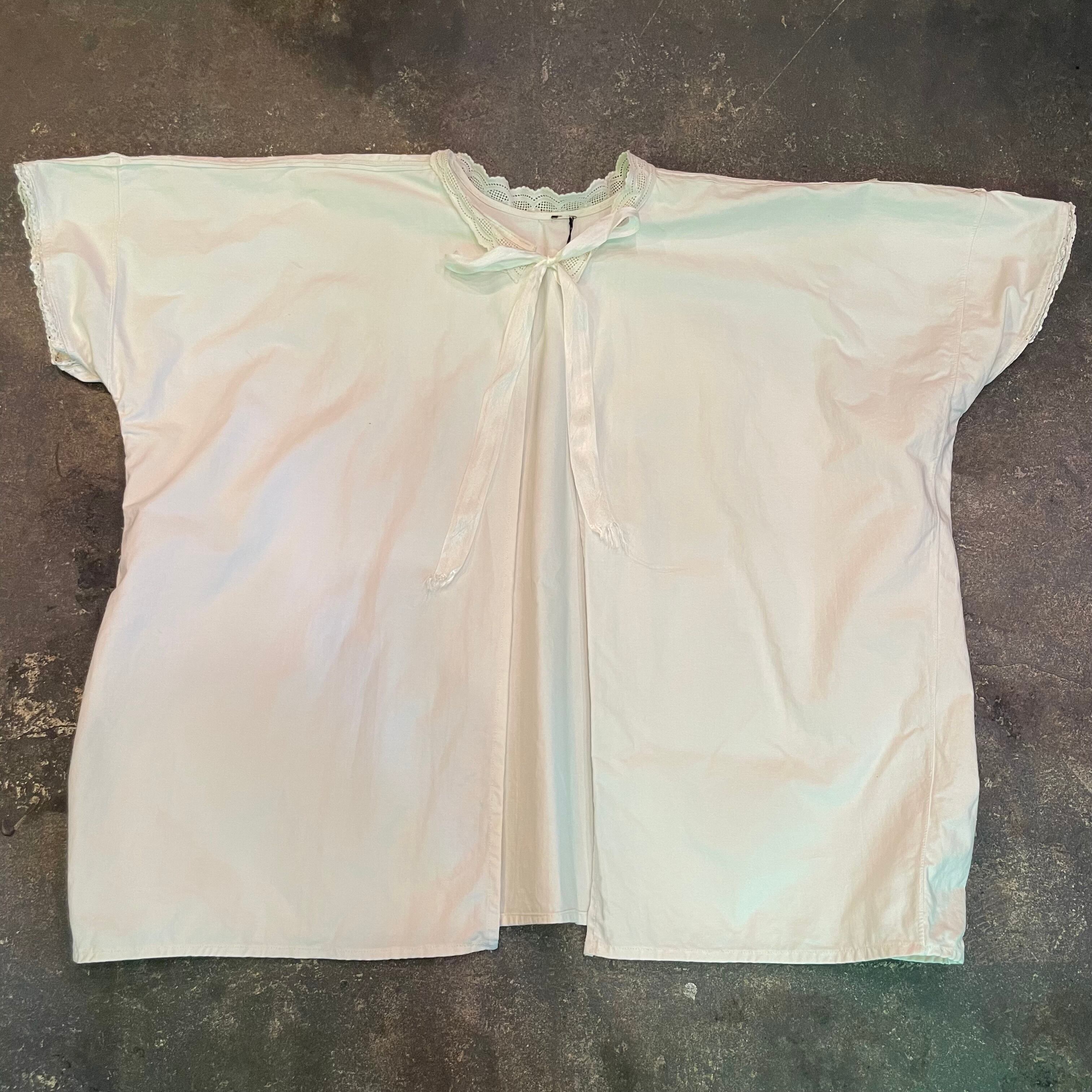 背中に黄色い点々としたシミ、黒いシミ、袖や脇のリメイク感、襟のレースの収まらなさ等、ダメージのある商品ですのハンドメイドや古着にご理解のある方のご購入をお願い致します。