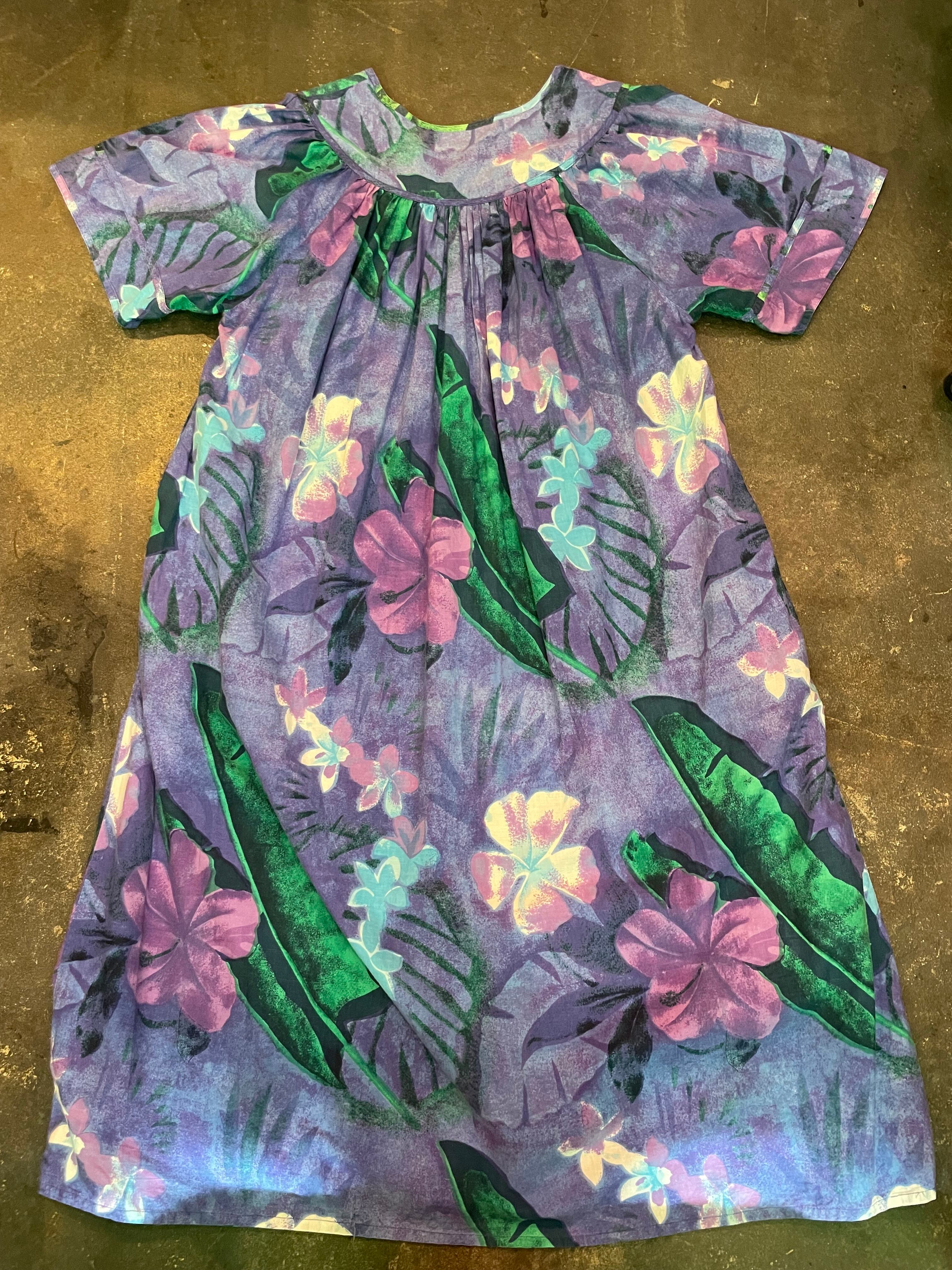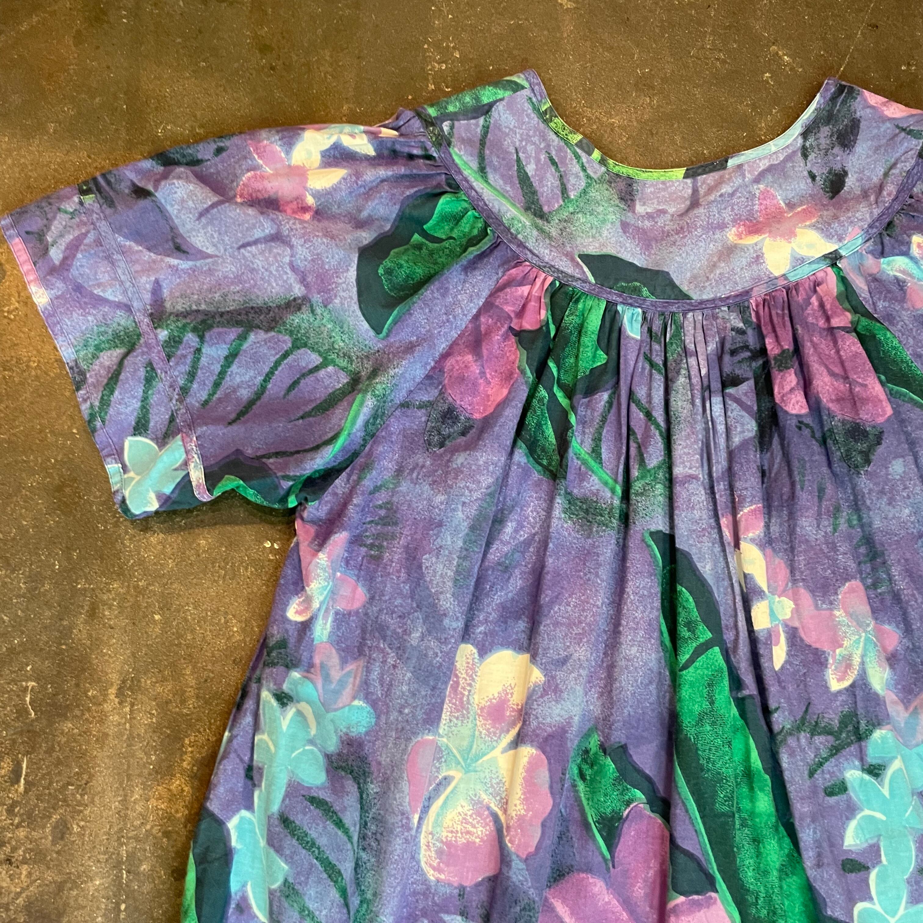 紫の楽ちんなコットンワンピースです。