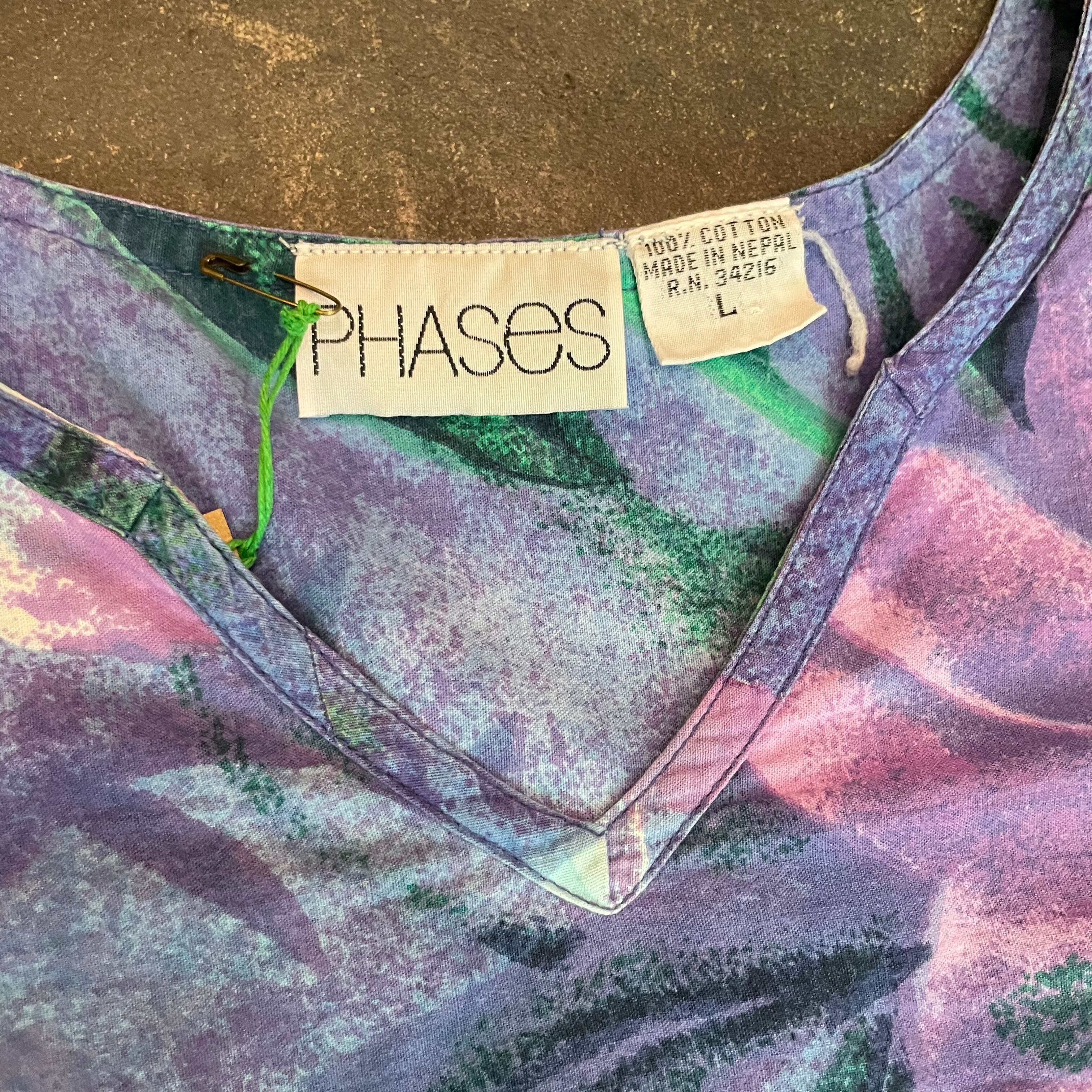 ぼやっとしたニュアンスな花柄にサヤエンドウのような緑の葉っぱで癒し系な色味が魅力的な一枚です。