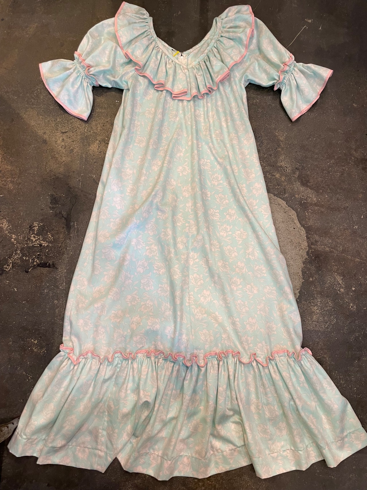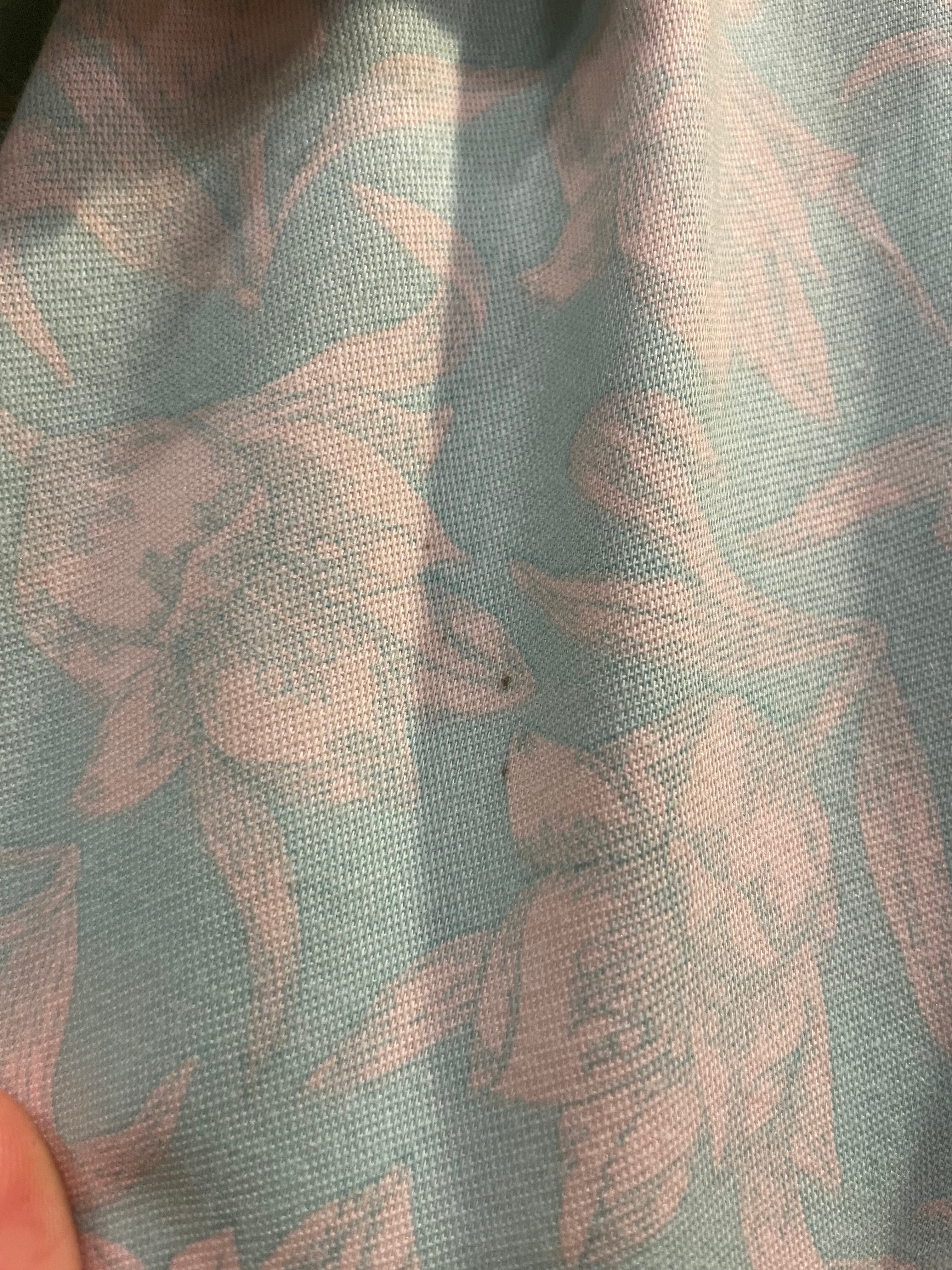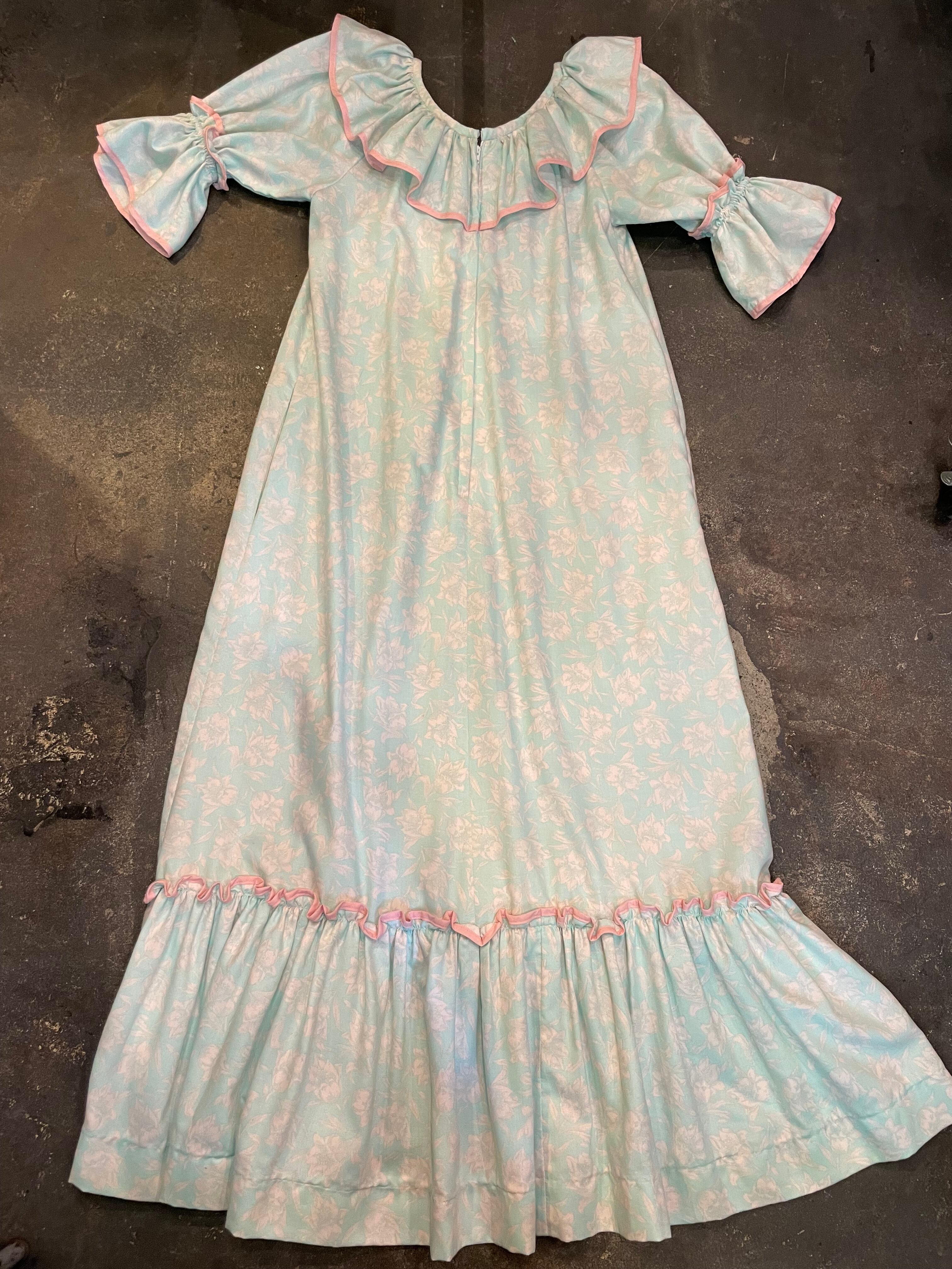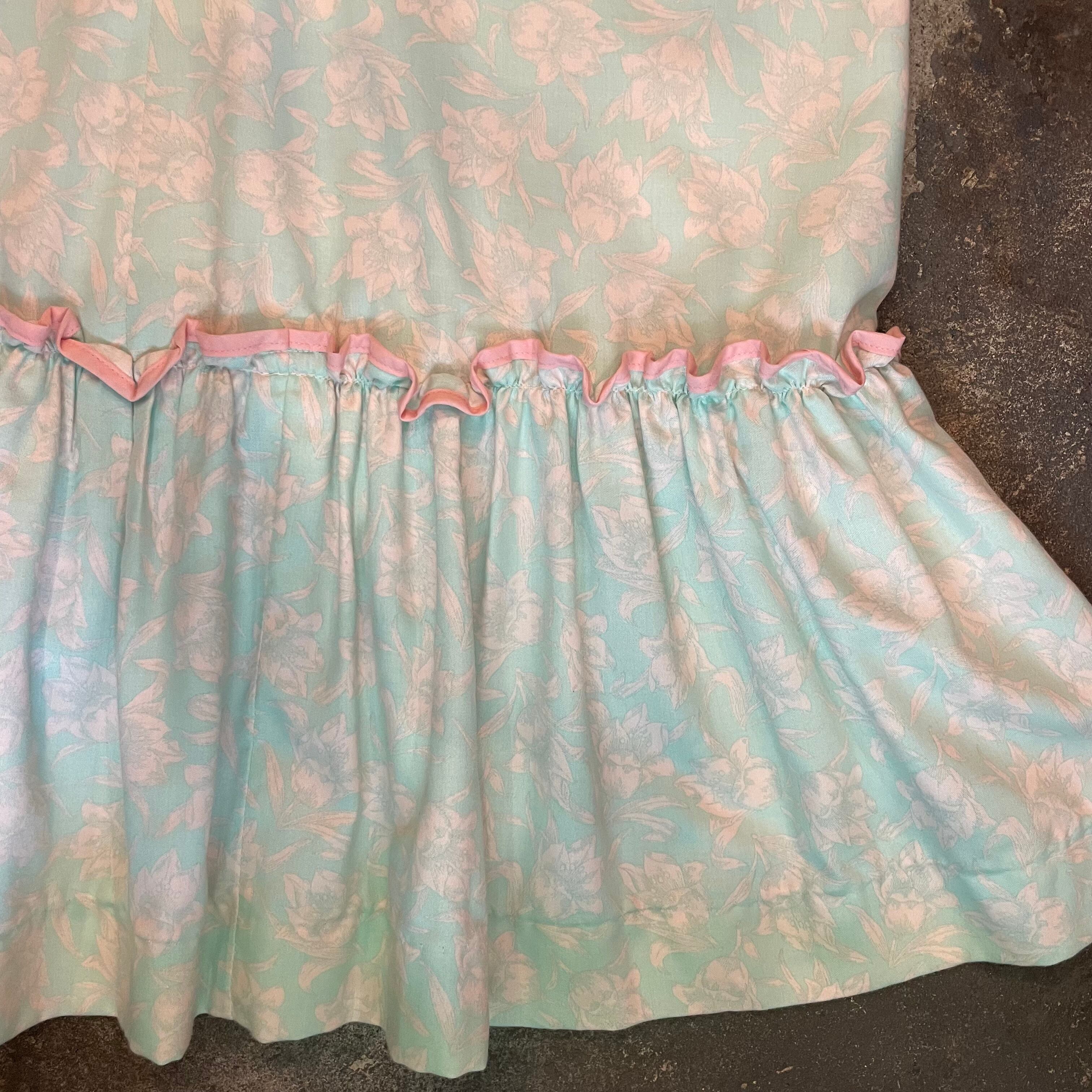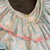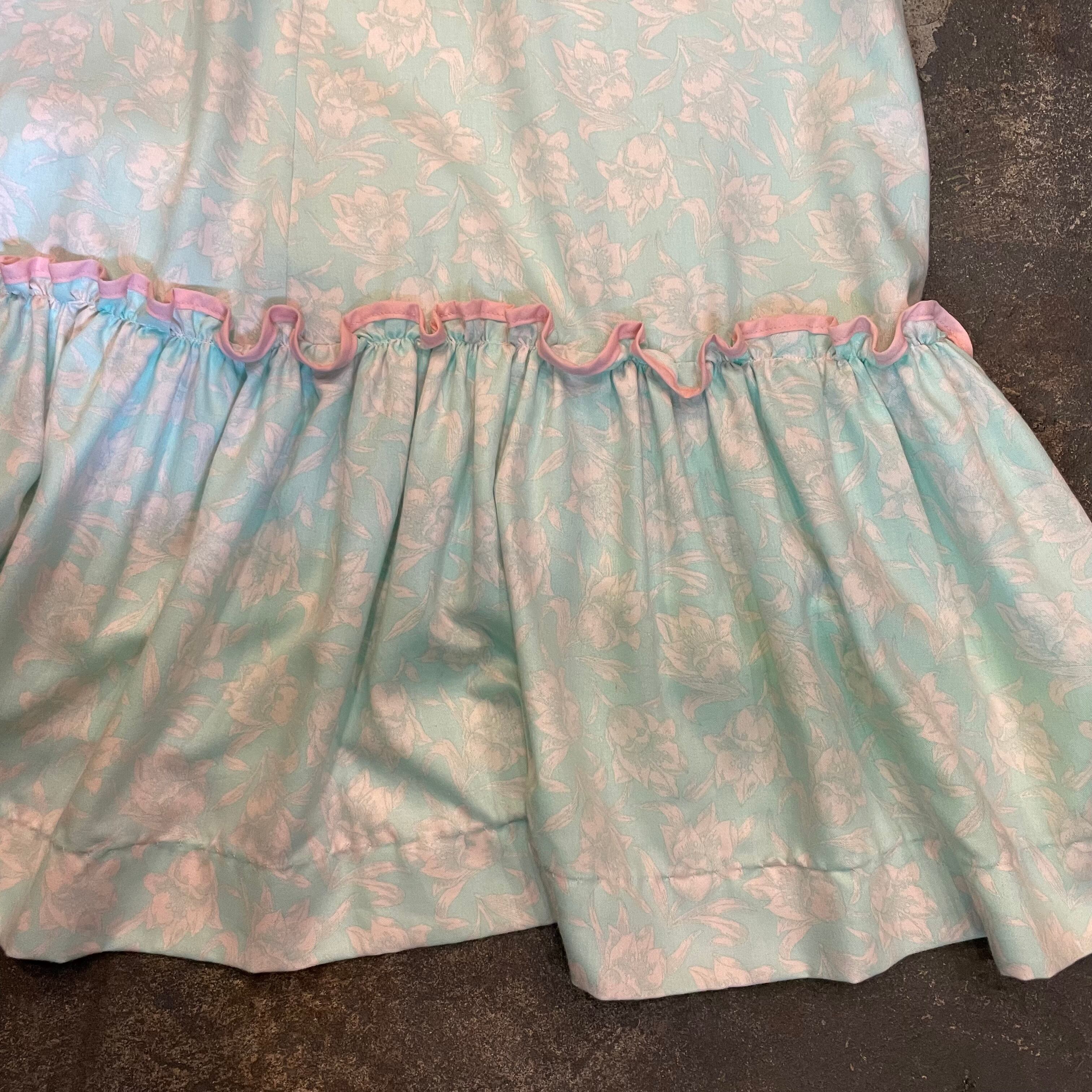 繊細な花柄は少し不思議な雰囲気もあり、ソーダ色に薄ピンクのパイピングが映えてかわいいですね。
