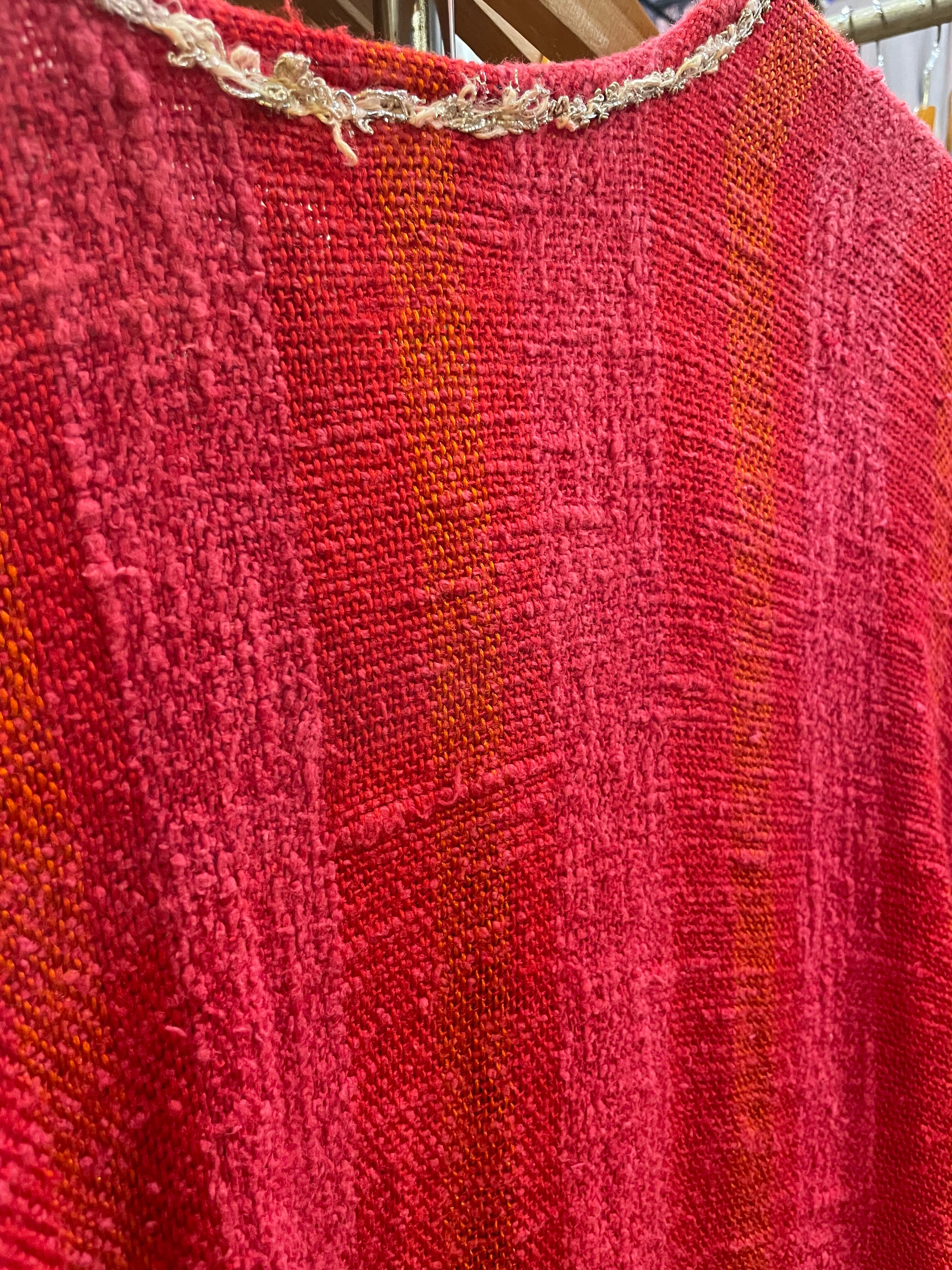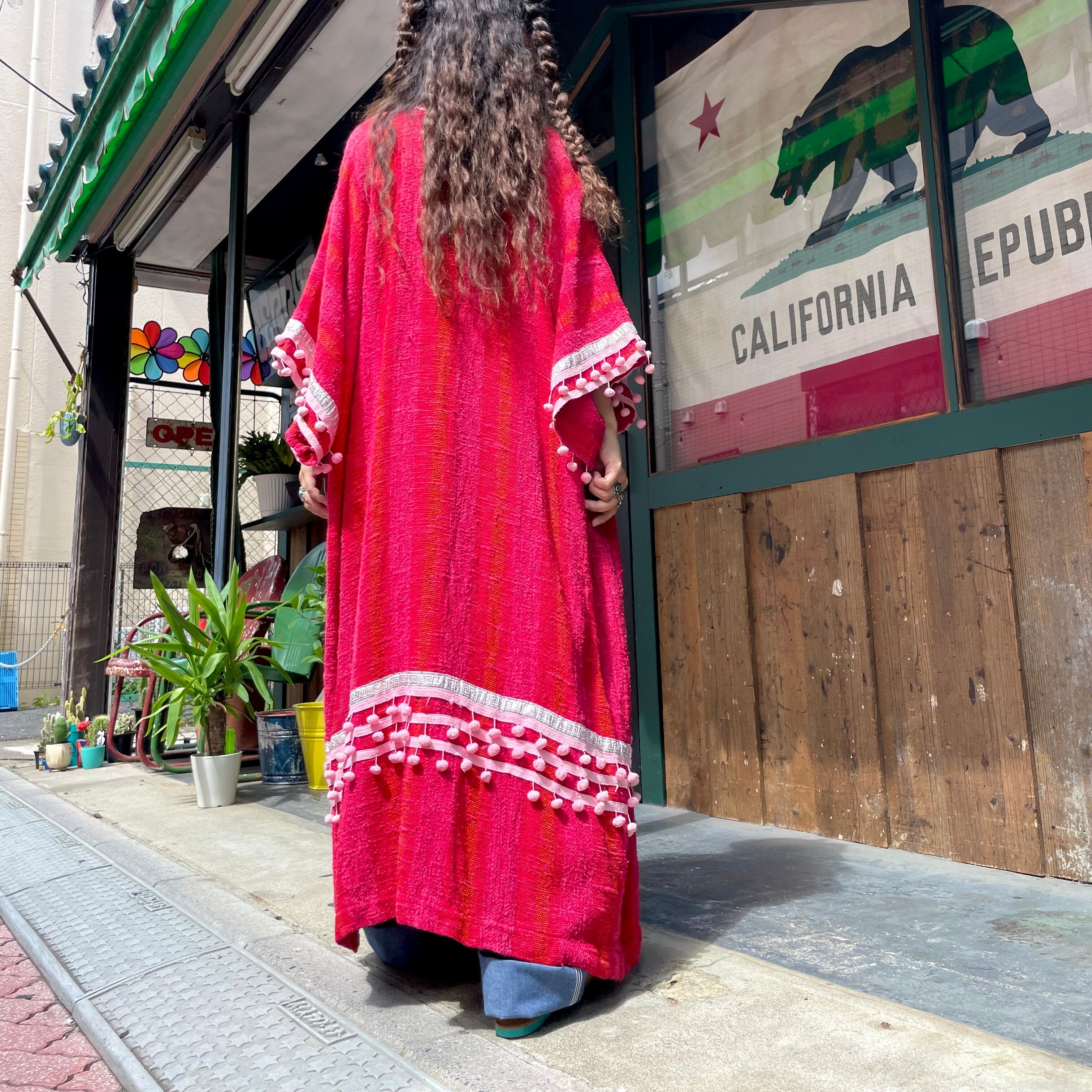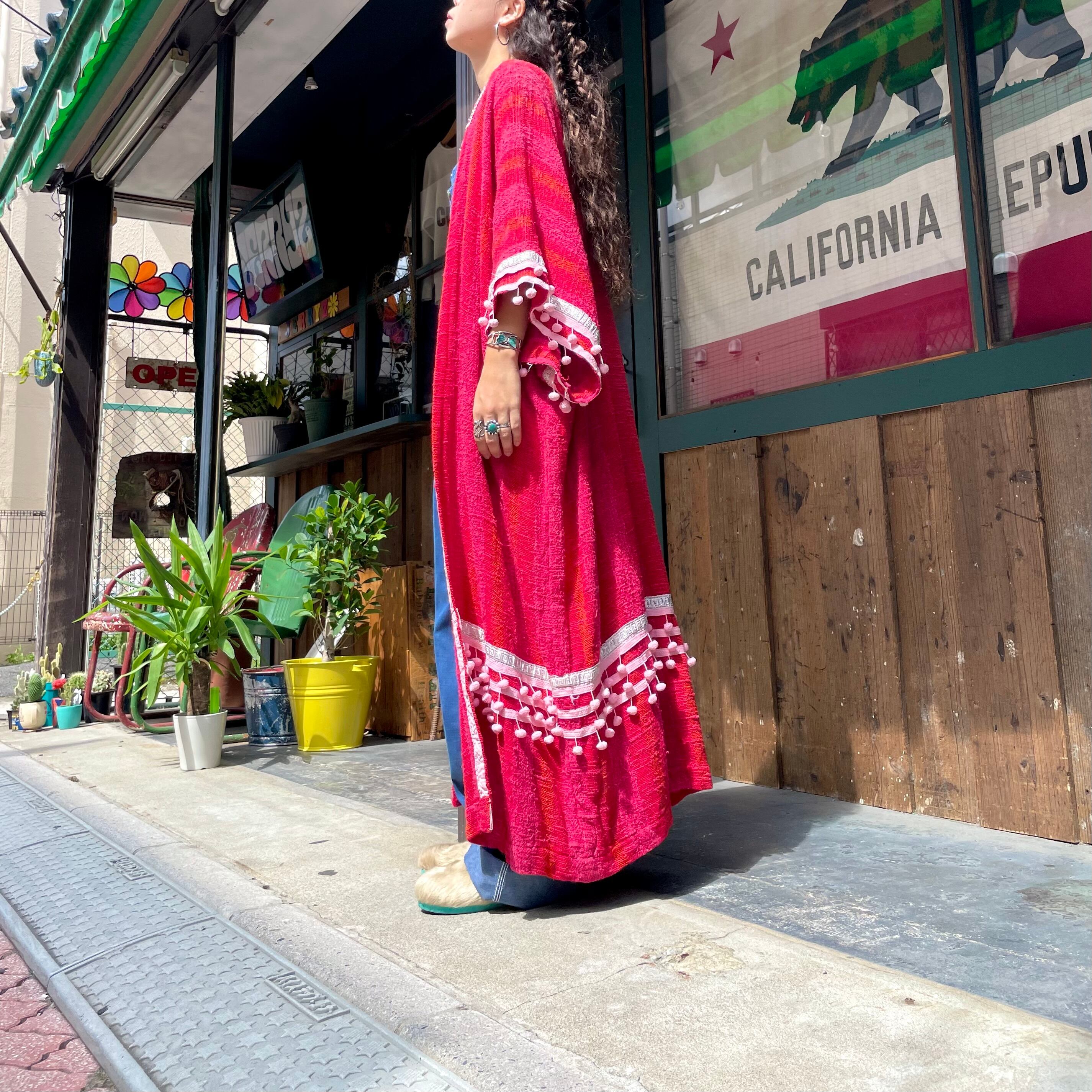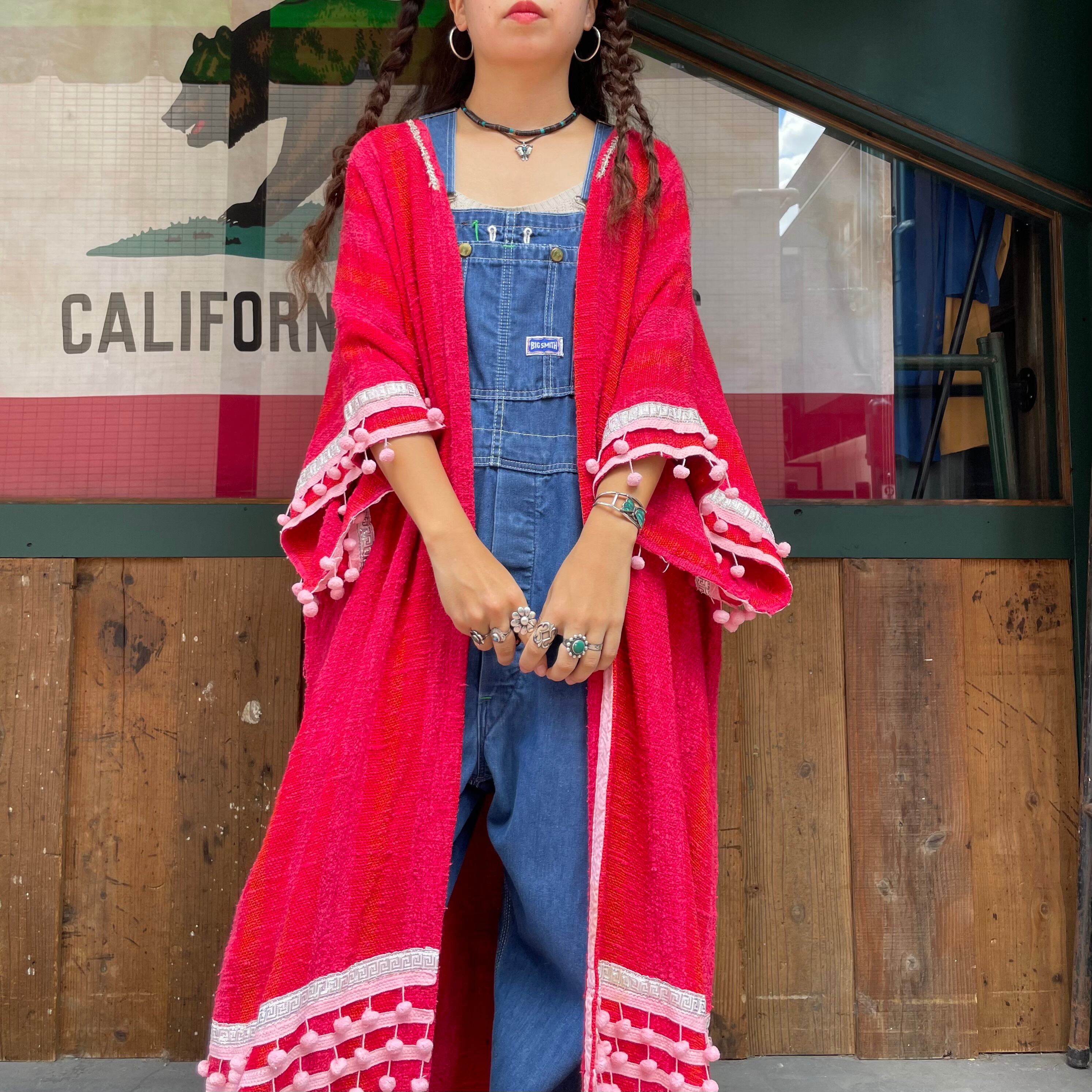 手織りのような生地感で濃いピンク×オレンジの色味もかわいい、タグのぶっ飛んだ雰囲気もかっこいいですし、どんな人が作っていたのか想像するだけで楽しい一着です。