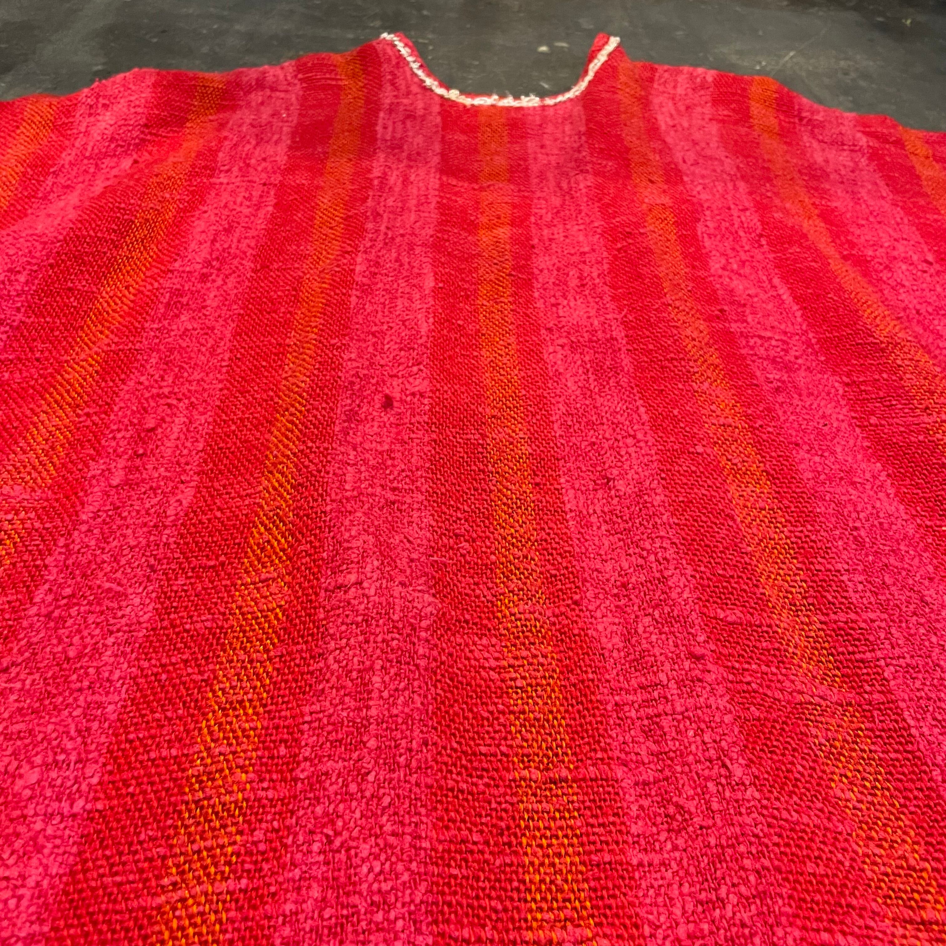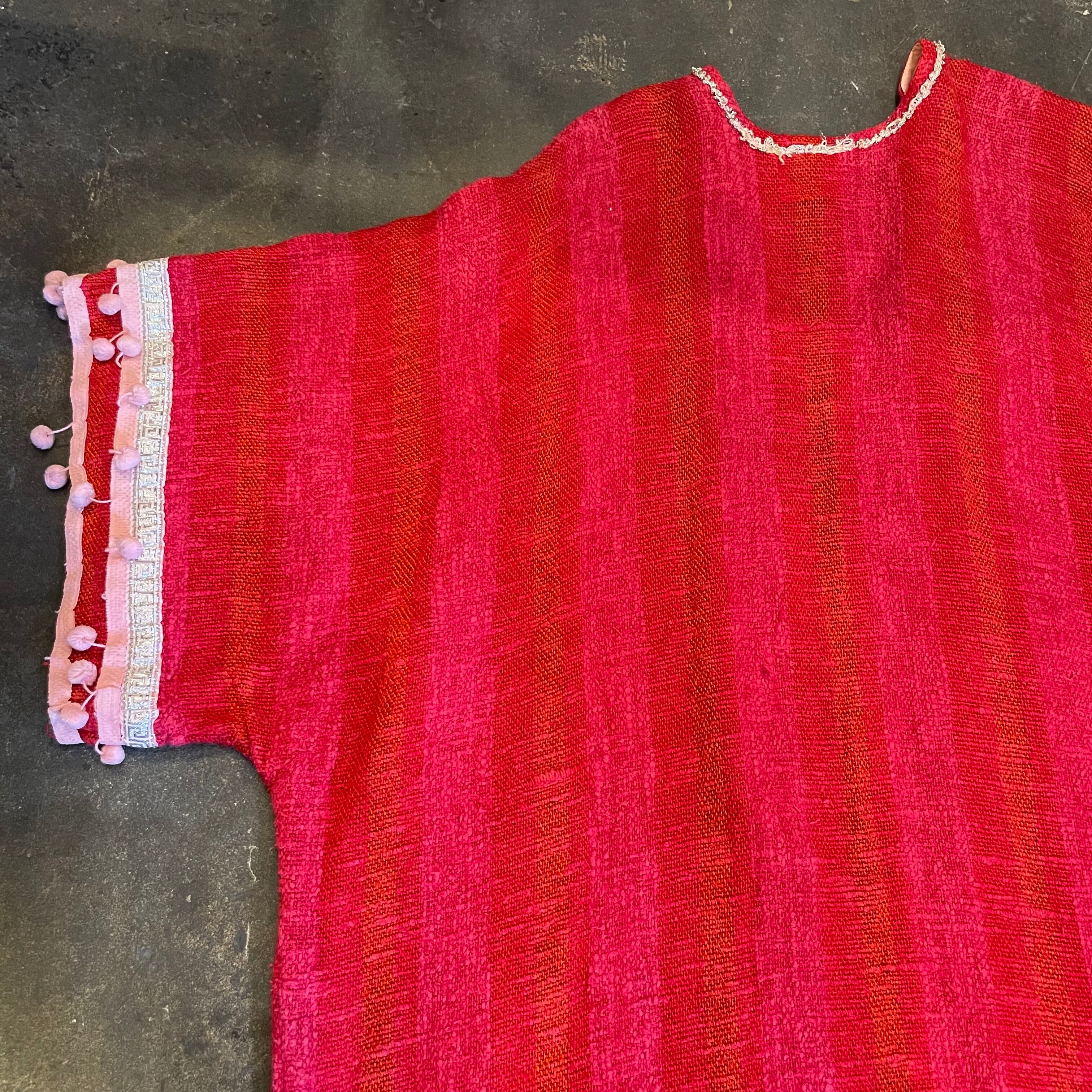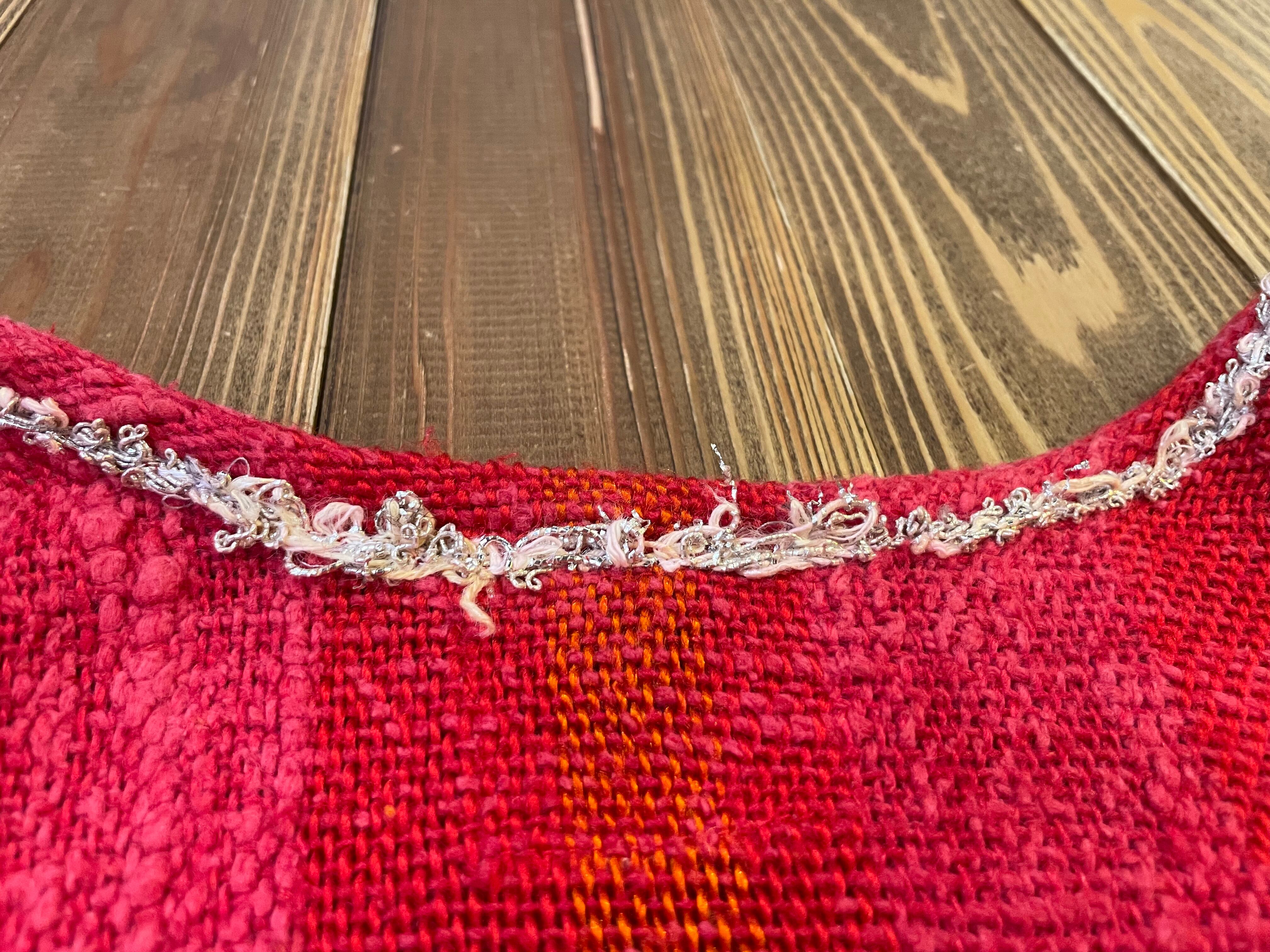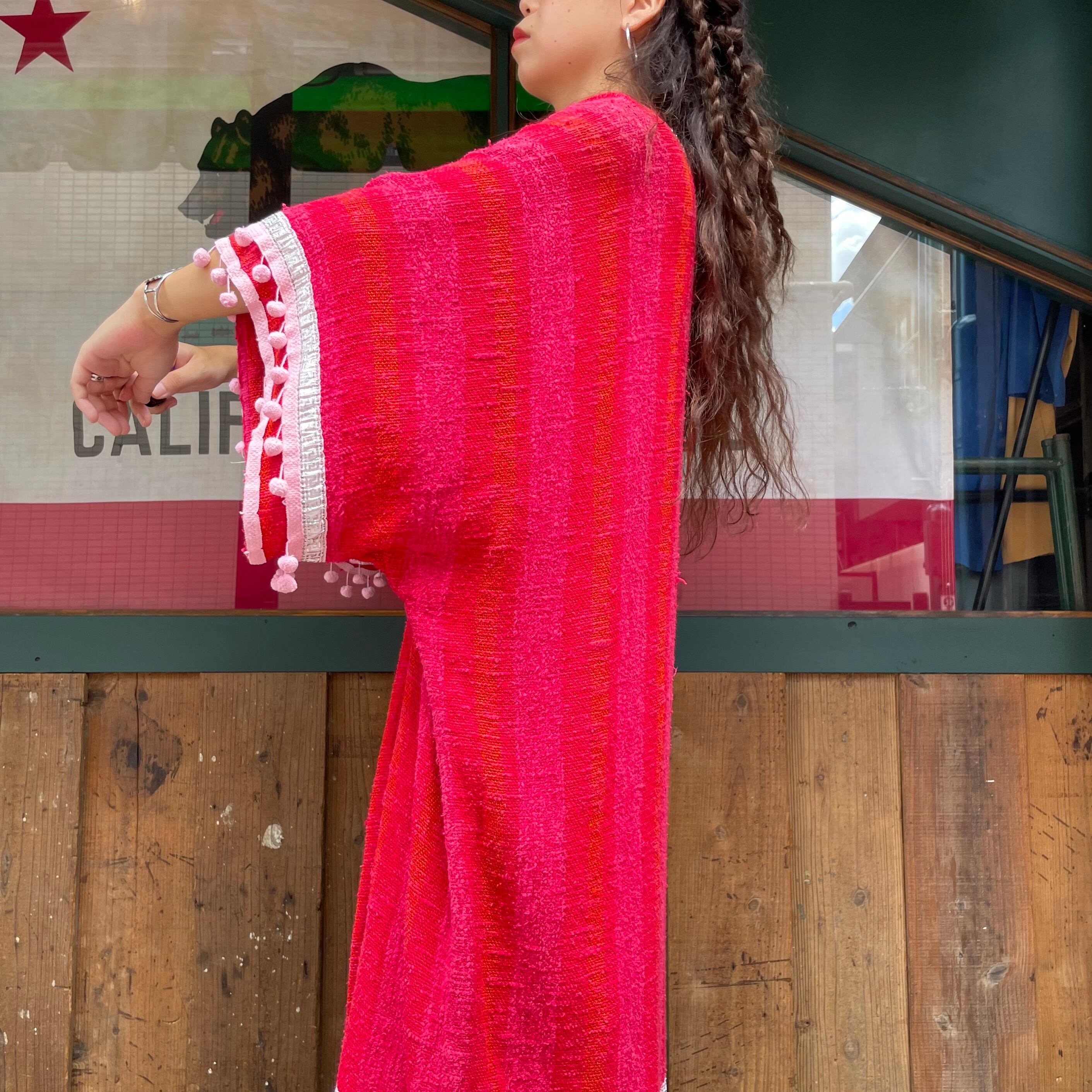 手織りのような生地感で濃いピンク×オレンジの色味もかわいい、タグのぶっ飛んだ雰囲気もかっこいいですし、どんな人が作っていたのか想像するだけで楽しい一着です。