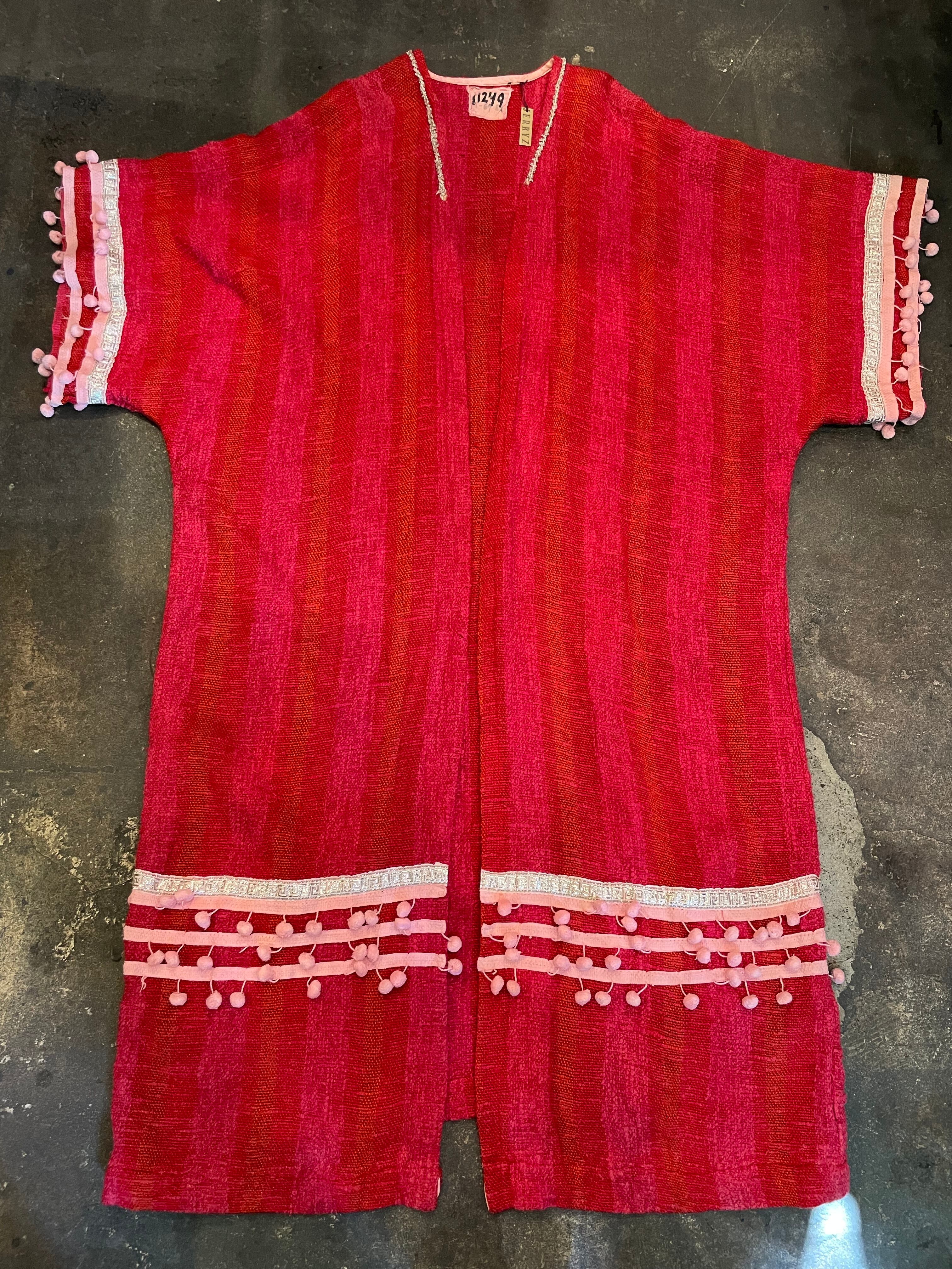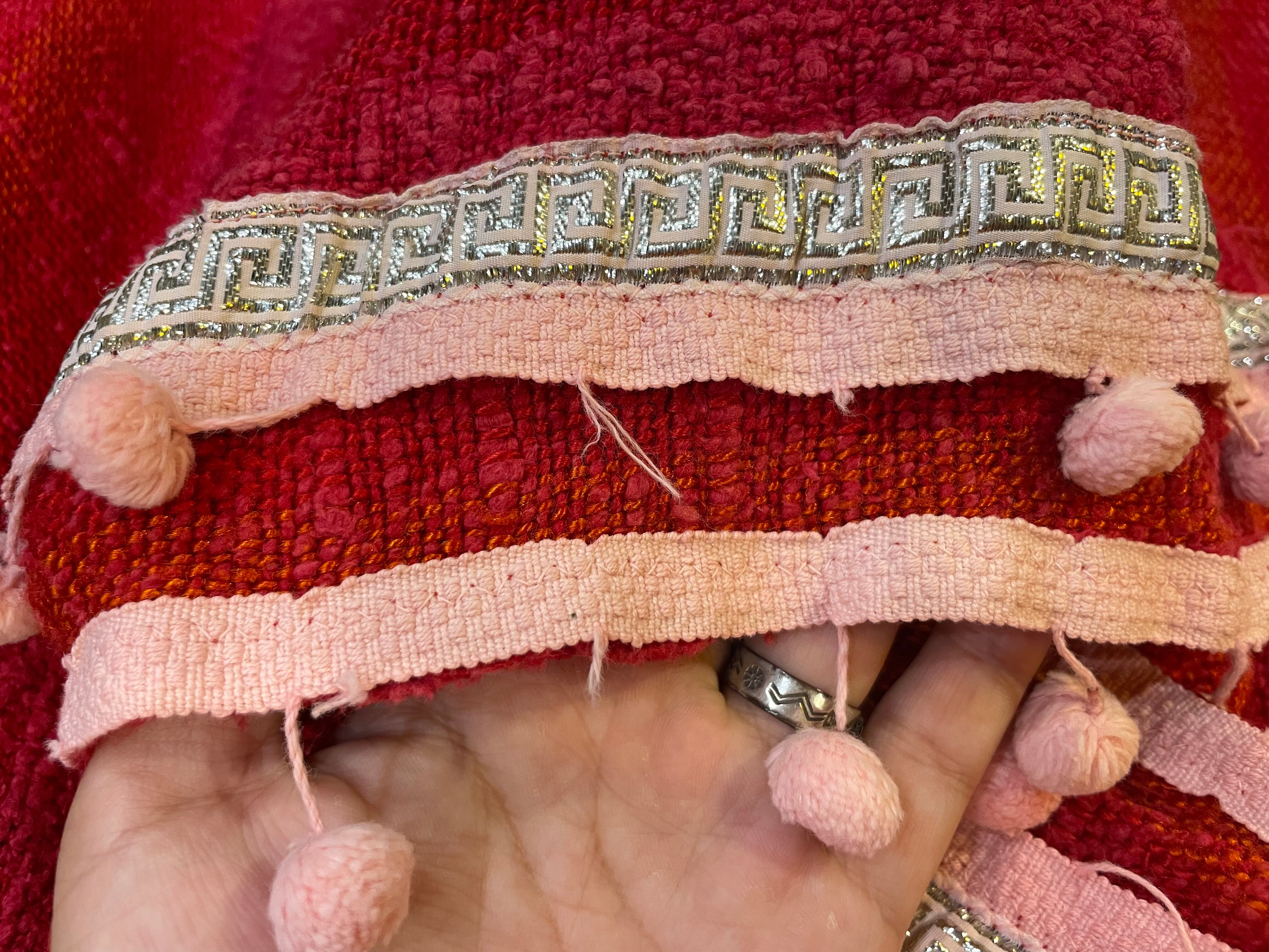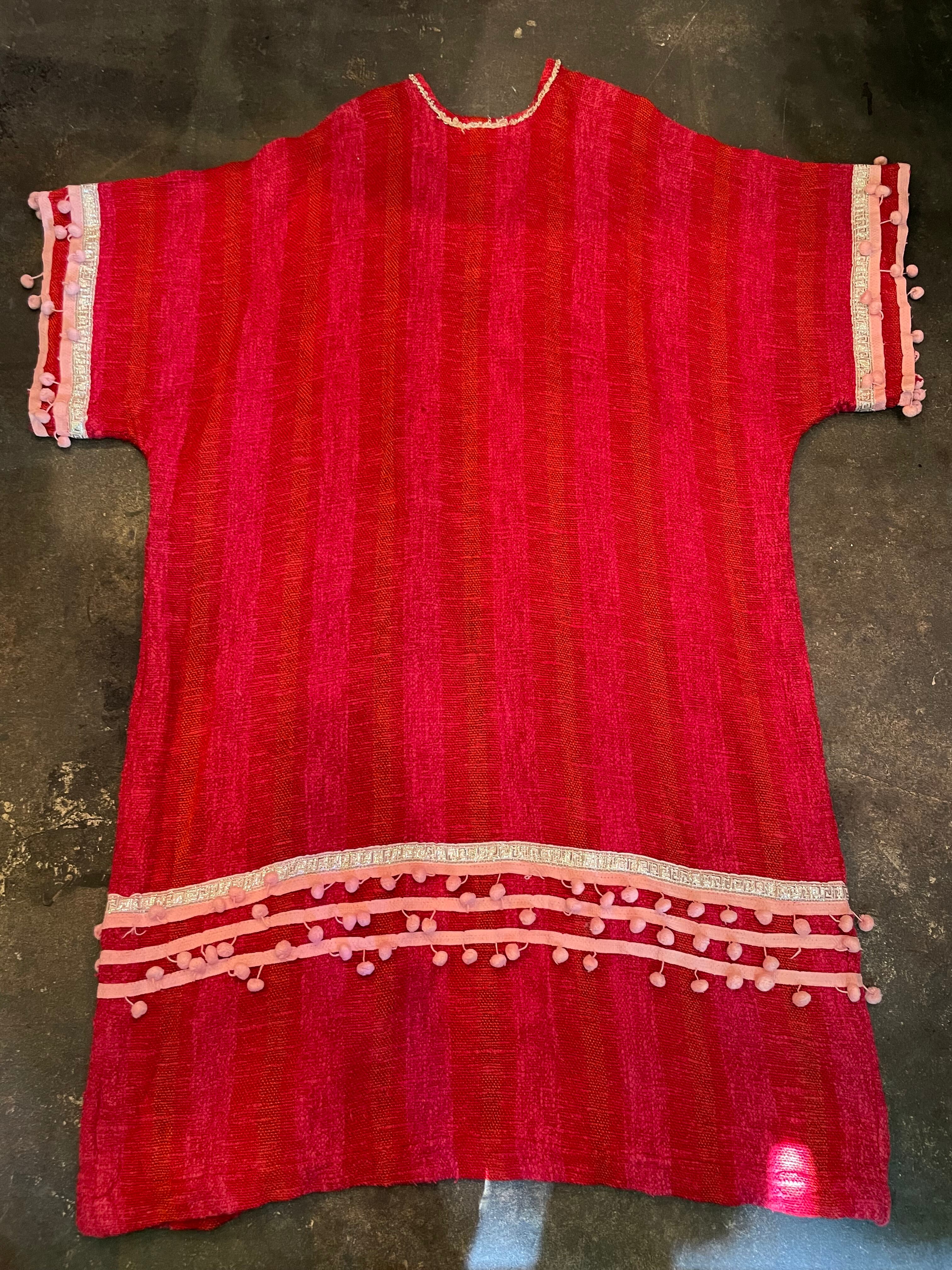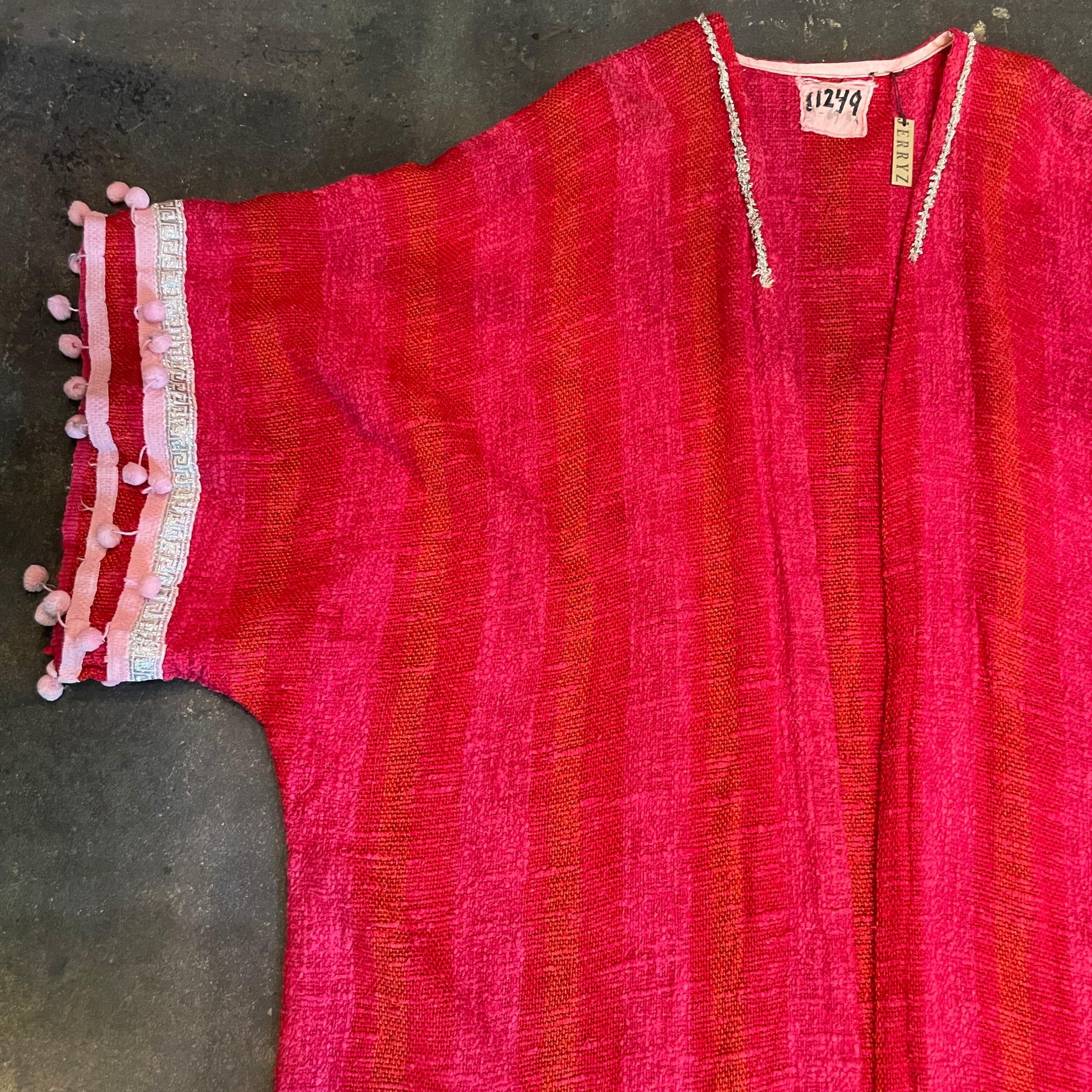 手織りのような生地感で濃いピンク×オレンジの色味もかわいい、タグのぶっ飛んだ雰囲気もかっこいいですし、どんな人が作っていたのか想像するだけで楽しい一着です。