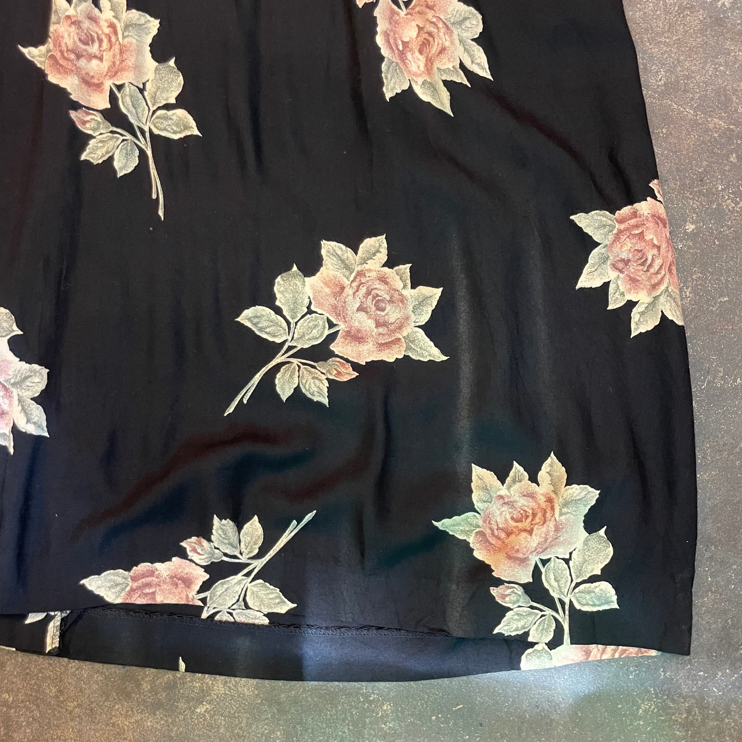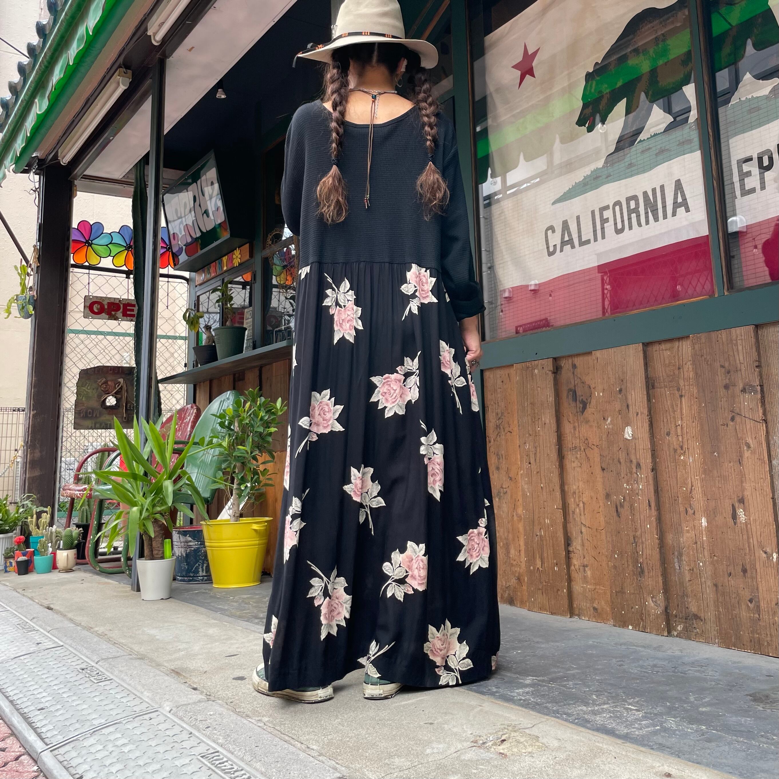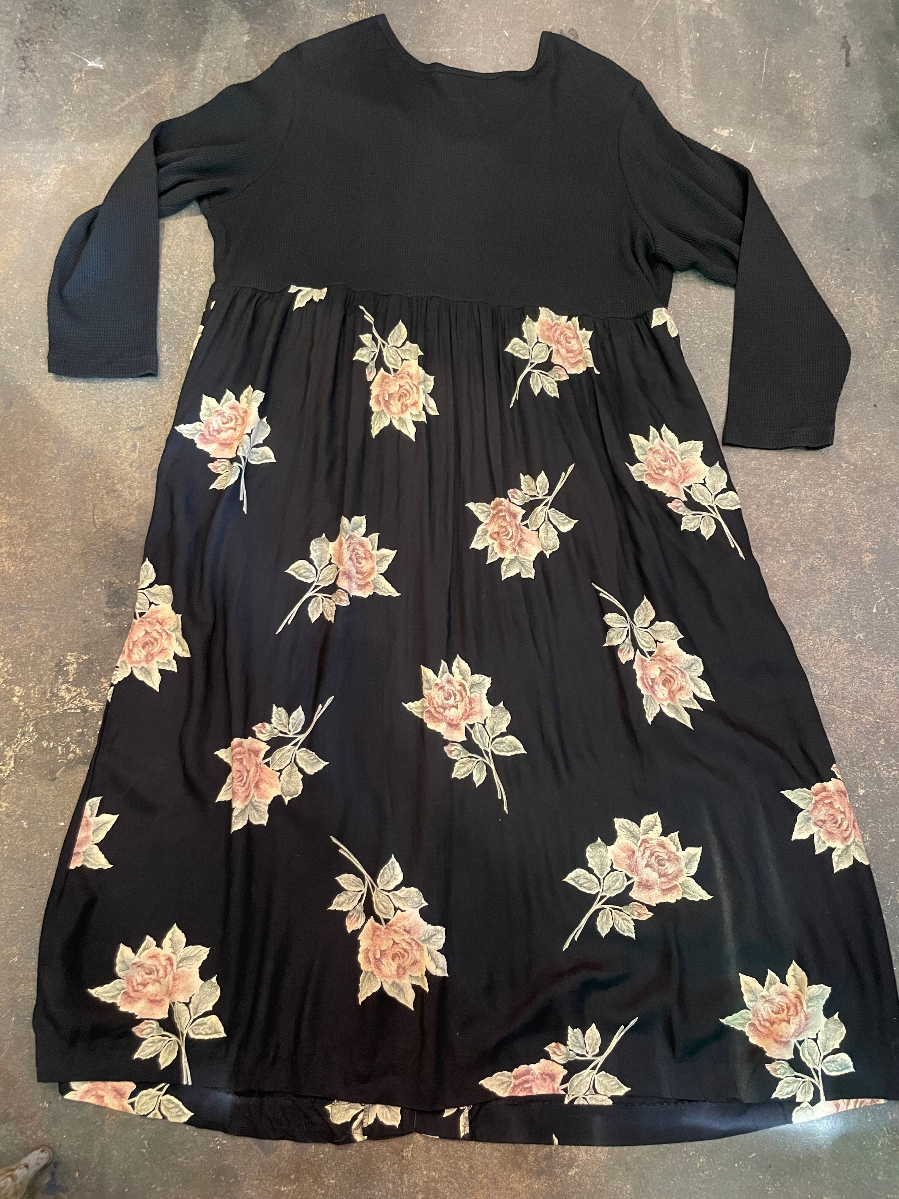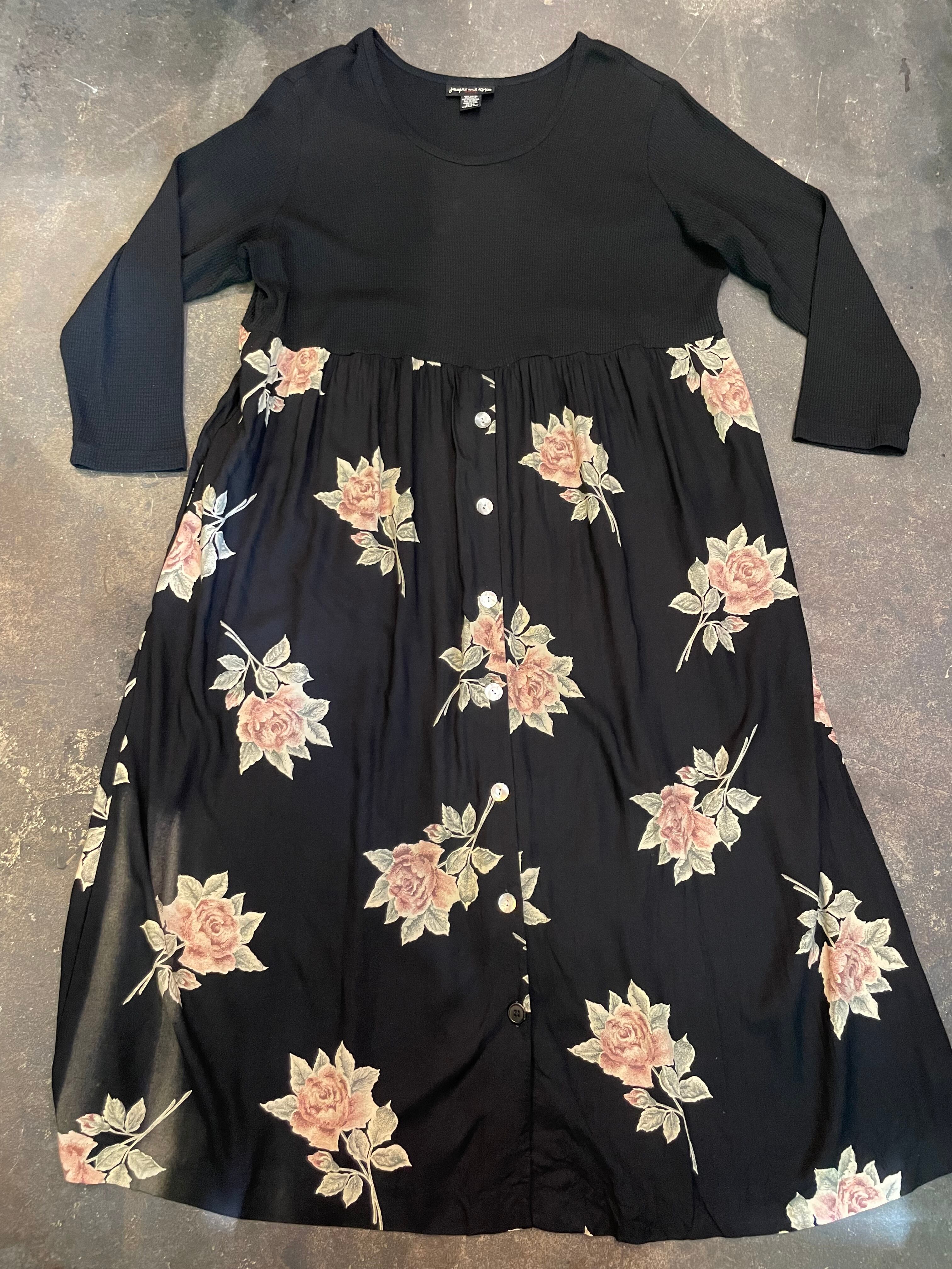 黒のサーマル素材とシックなバラ柄がかわいいワンピースです。