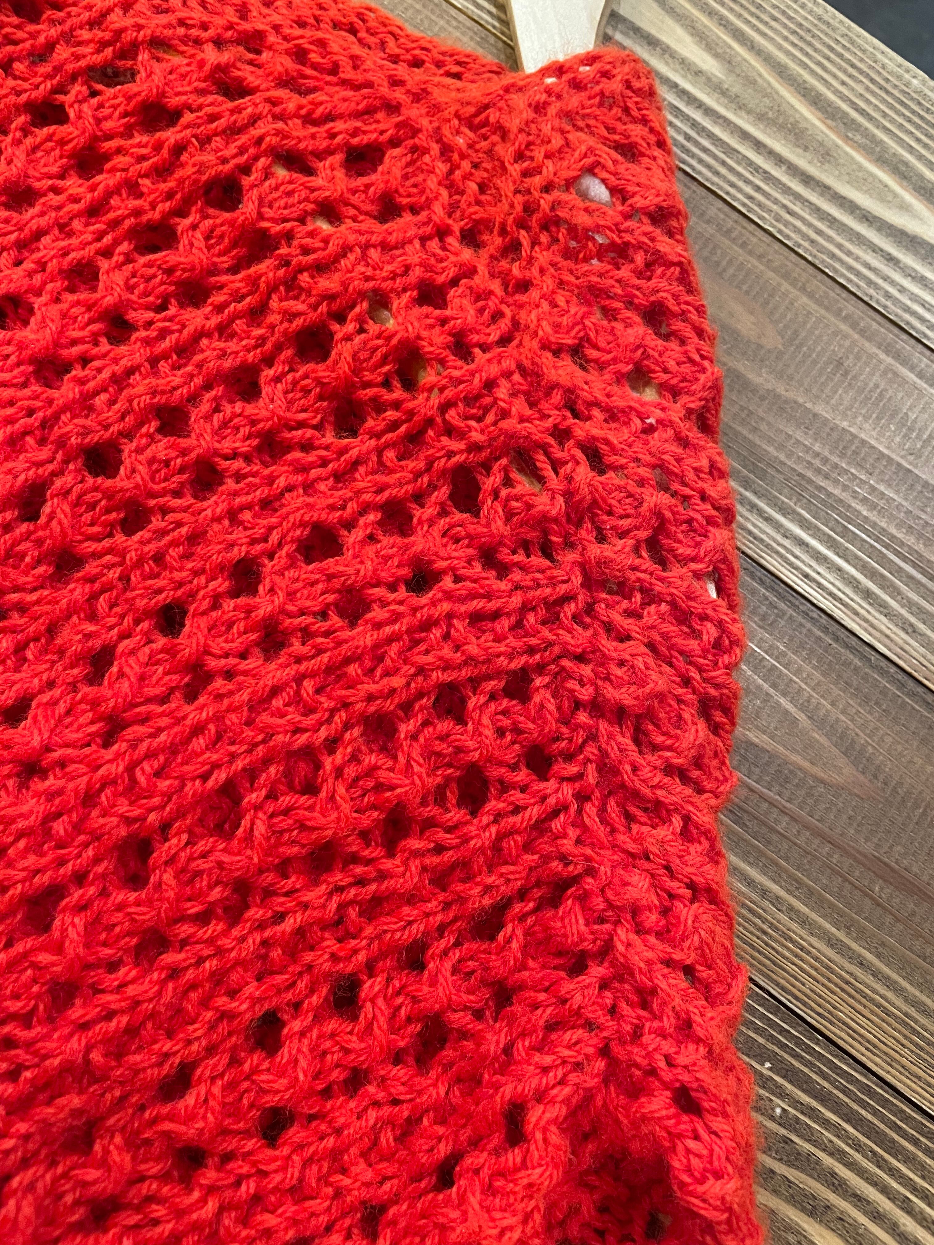 透かし編みでスケスケなので中に着る物の色で印象が変わりそうですね。