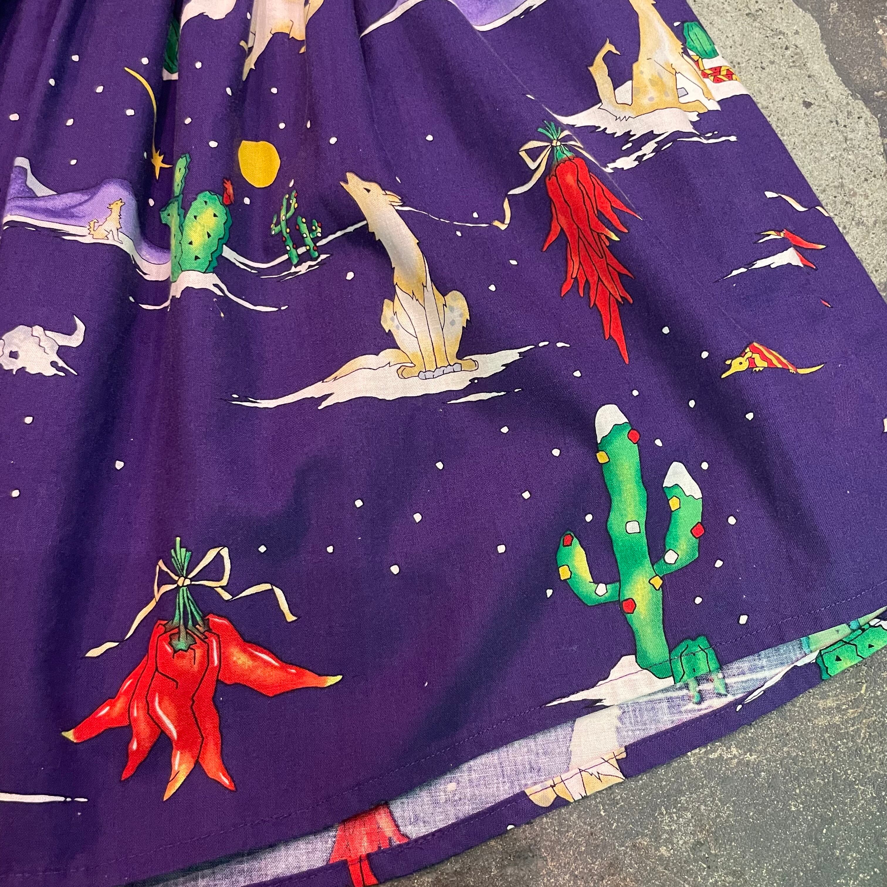 サボテンやトウガラシ、オオカミなどアメリカのニューメキシコっぽいモチーフに雪?っぽいちょっとクリスマスを意識してる?という雰囲気の柄がかわいいです。