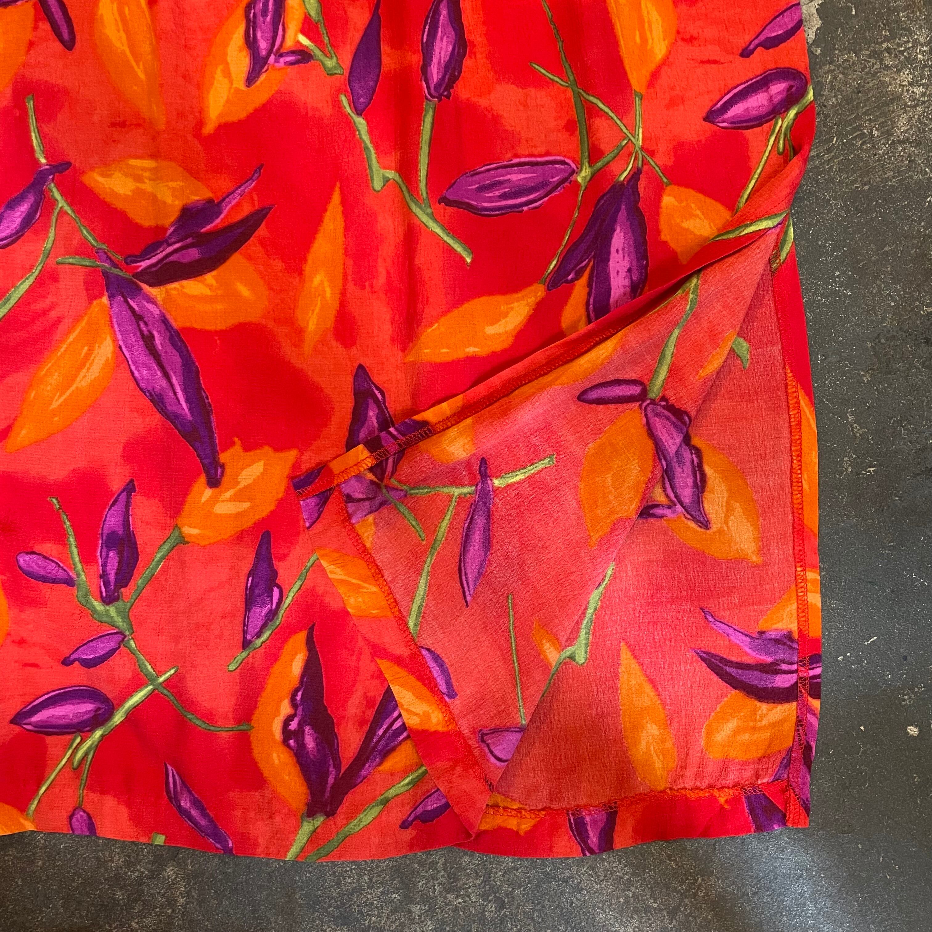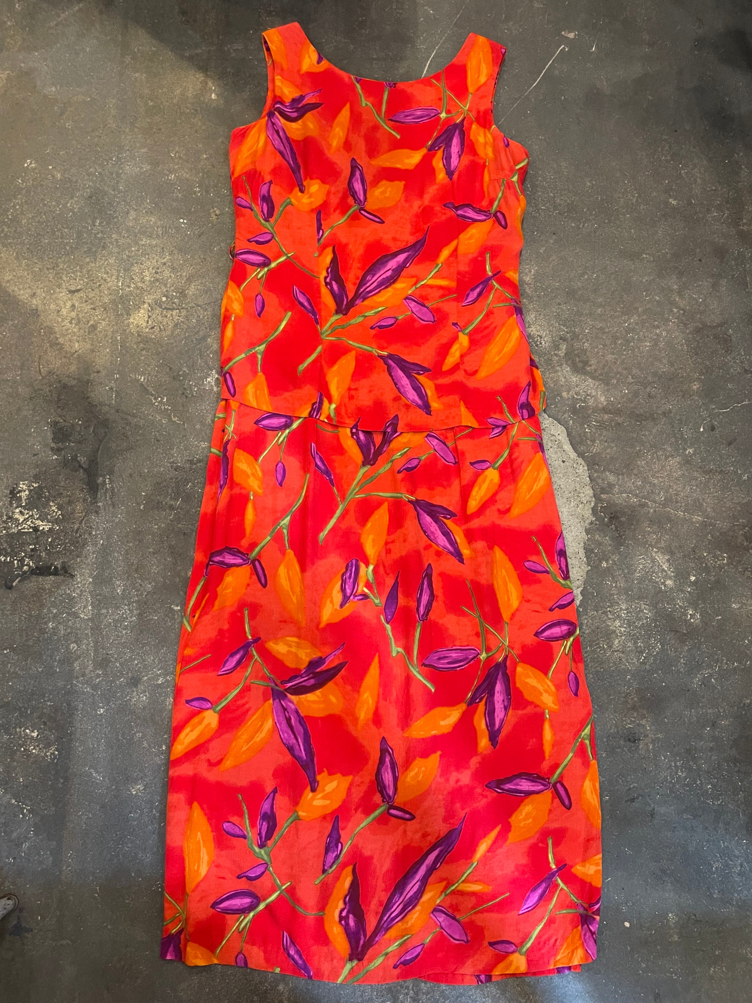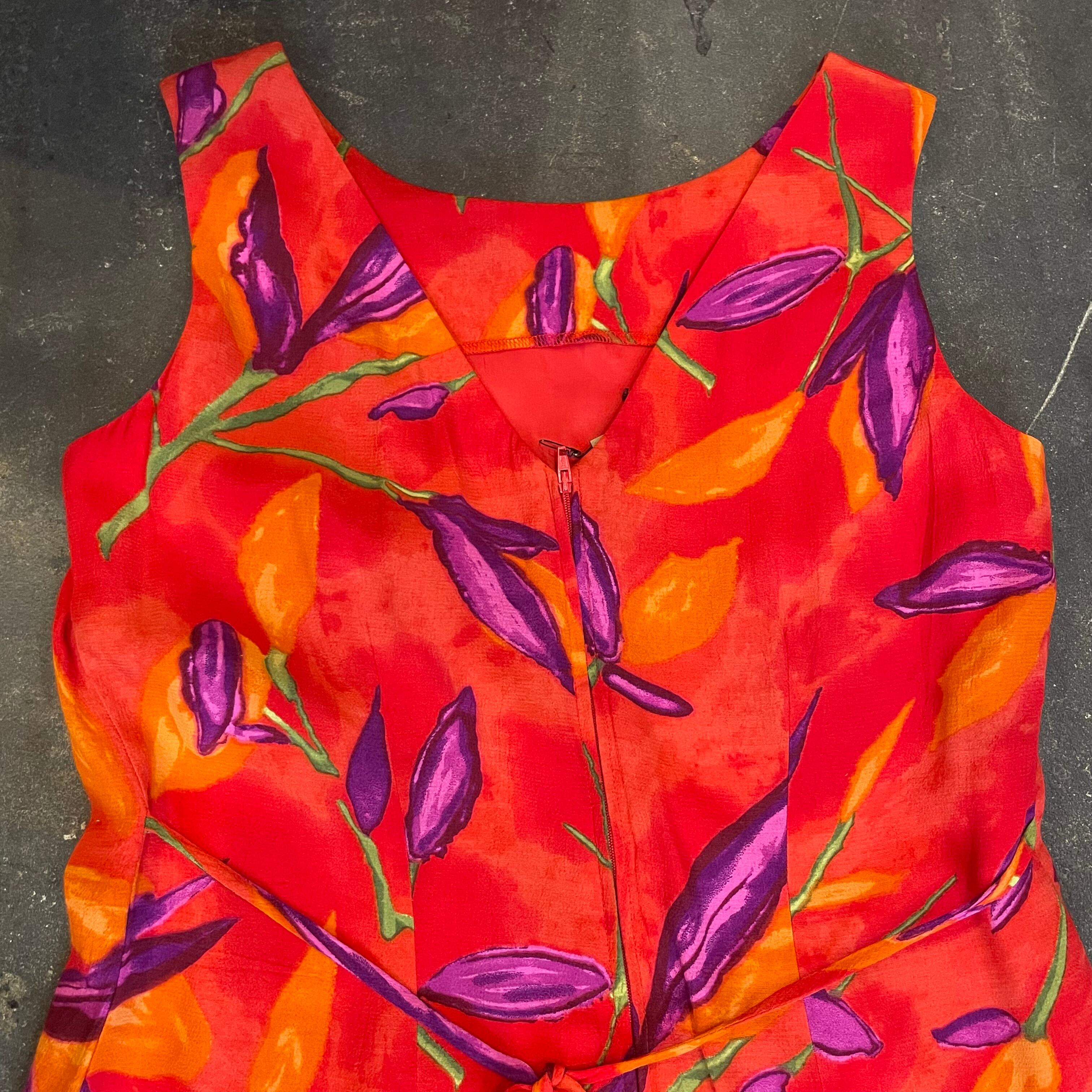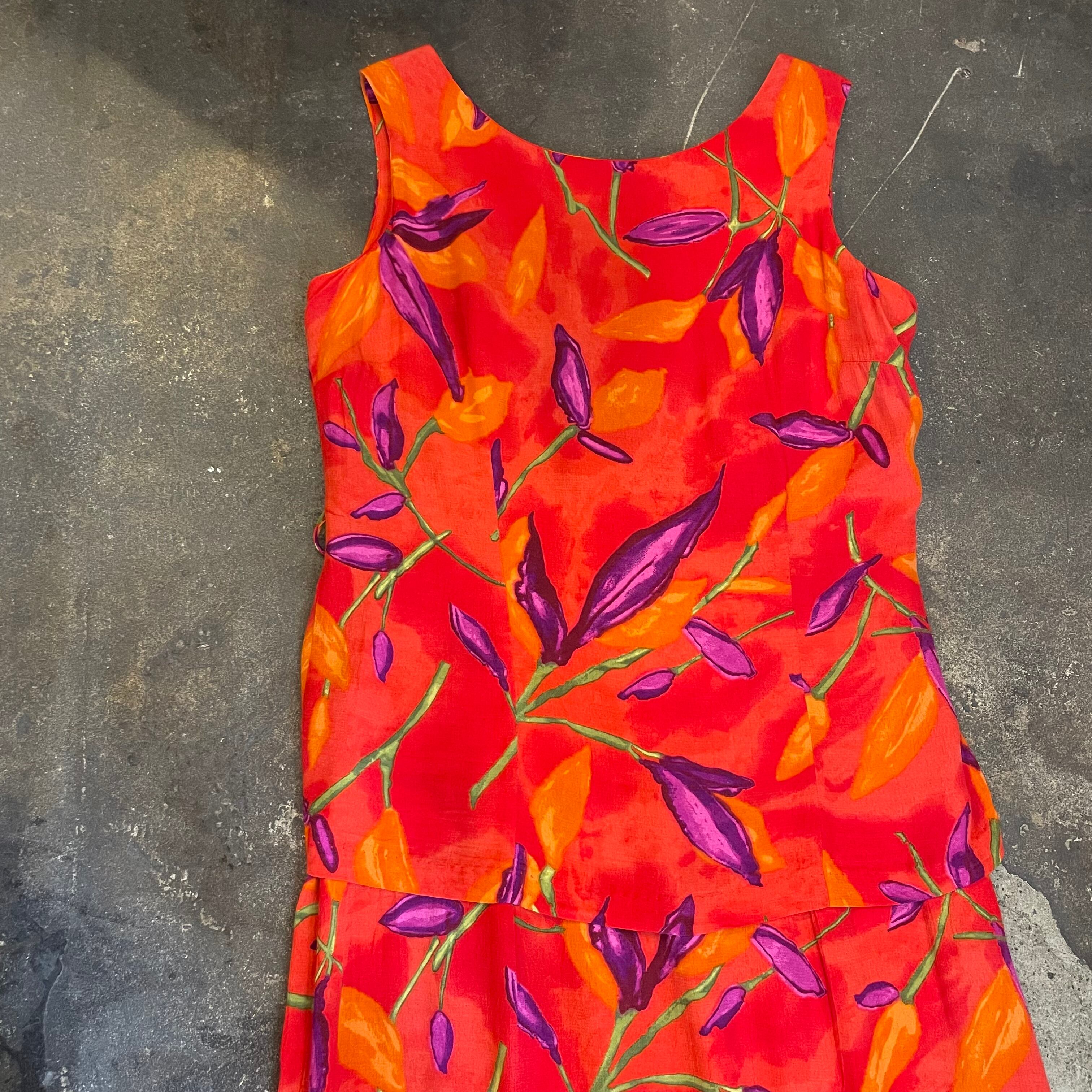 オレンジ×紫×緑の配色がとてもかわいいワンピースです。