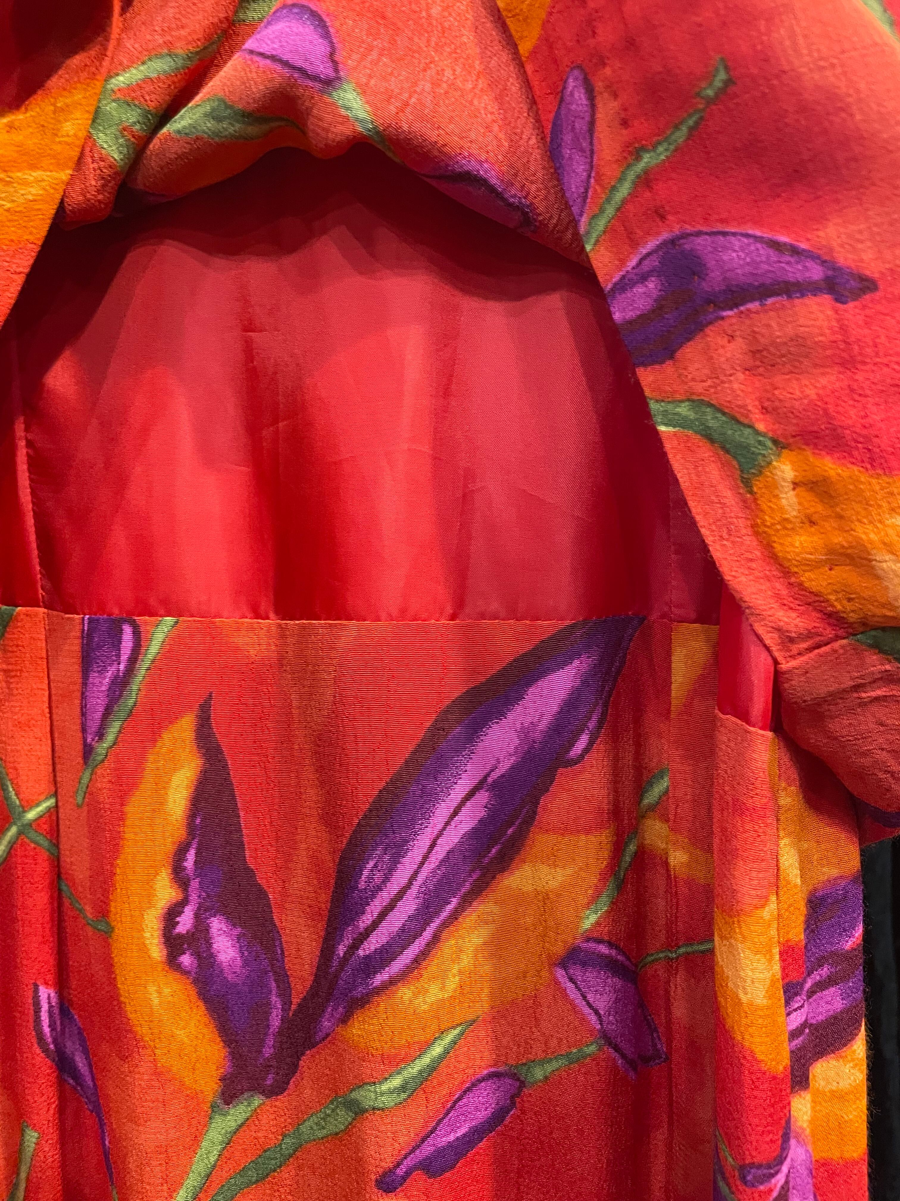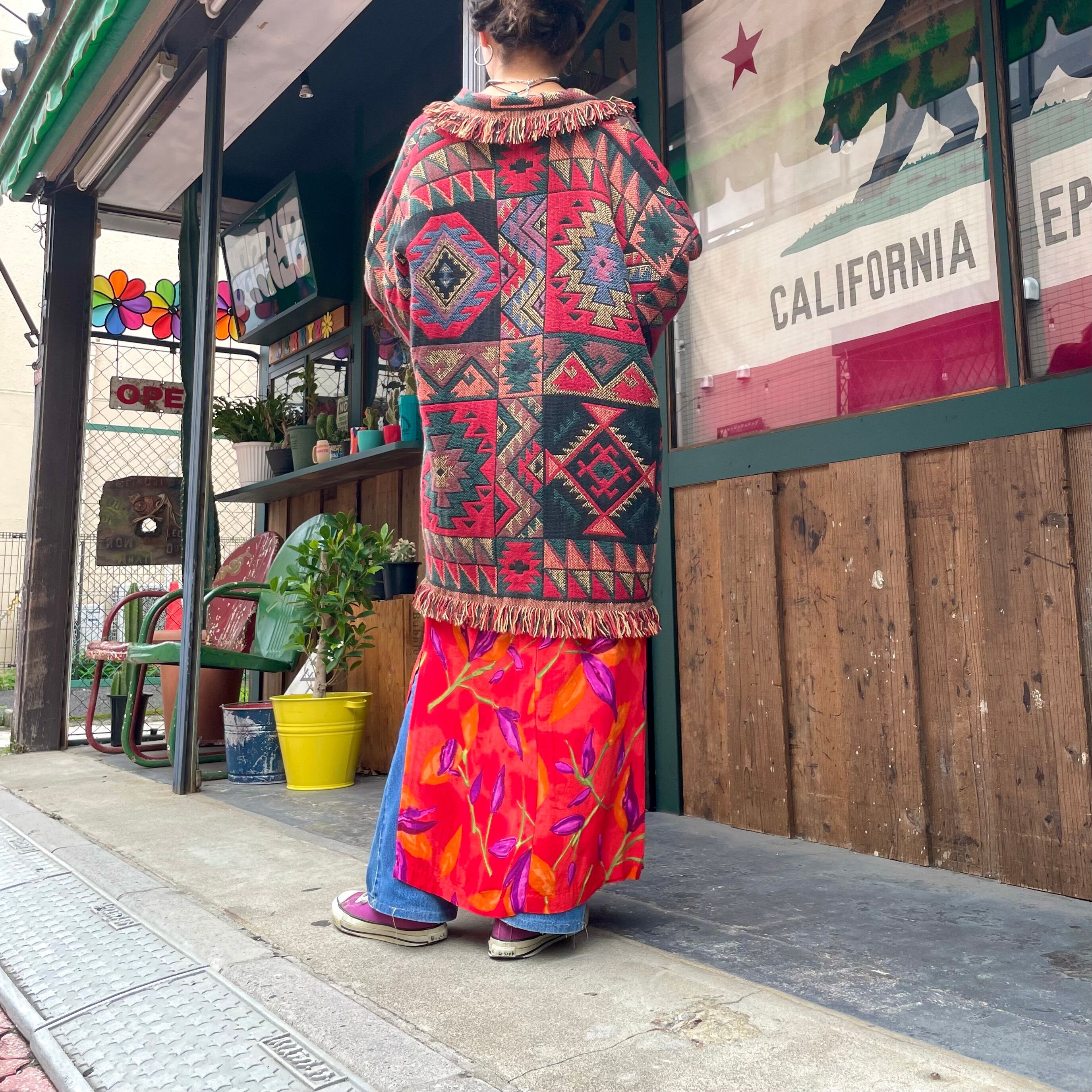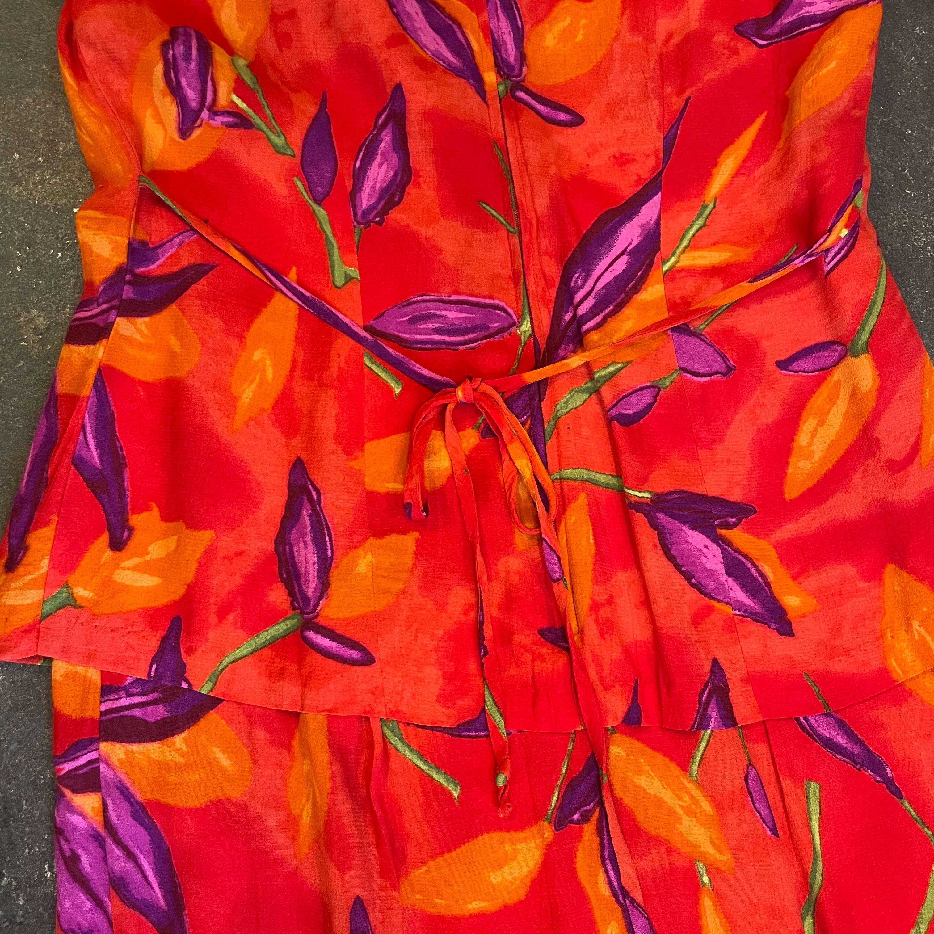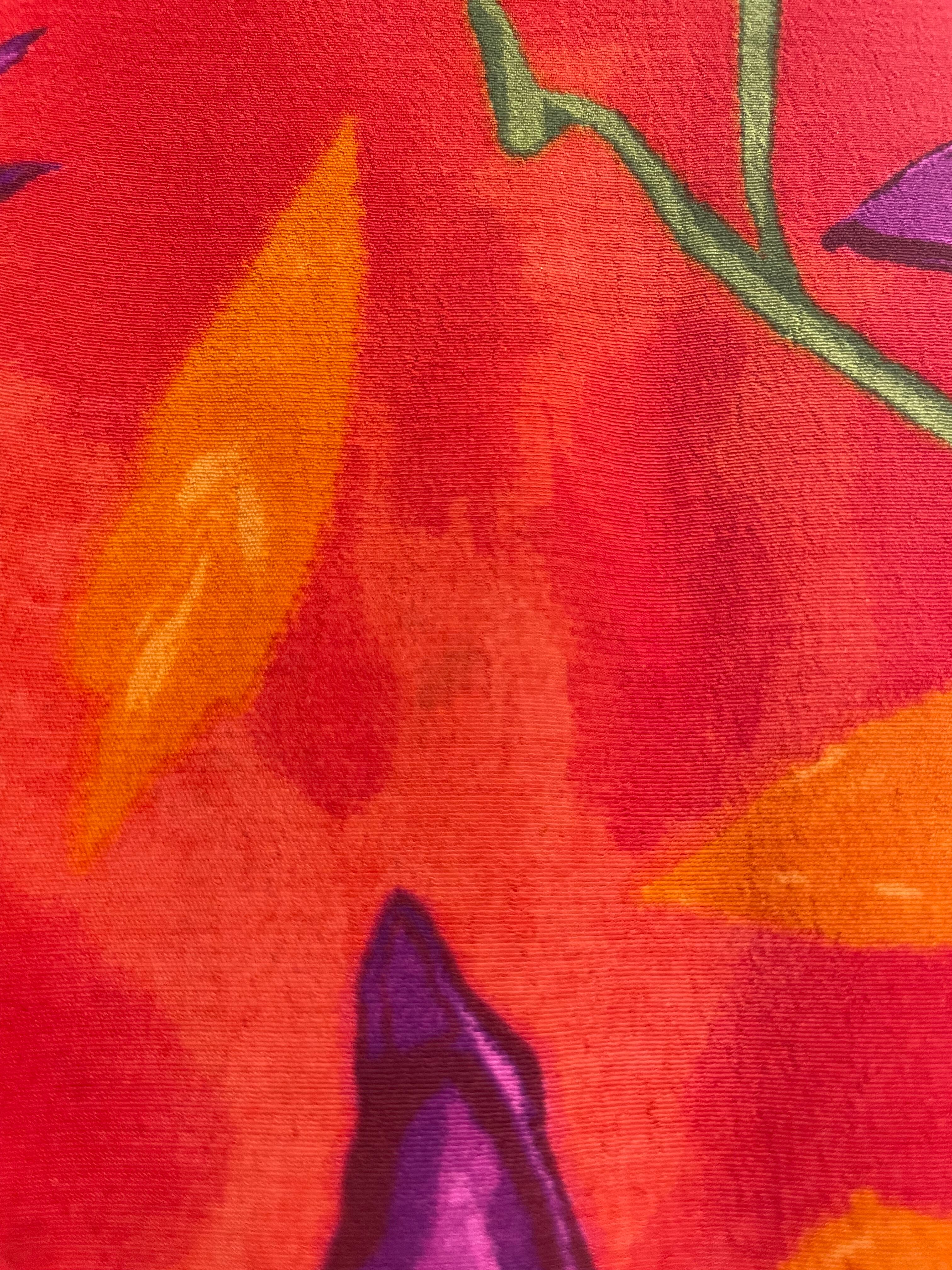 オレンジ×紫×緑の配色がとてもかわいいワンピースです。