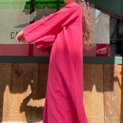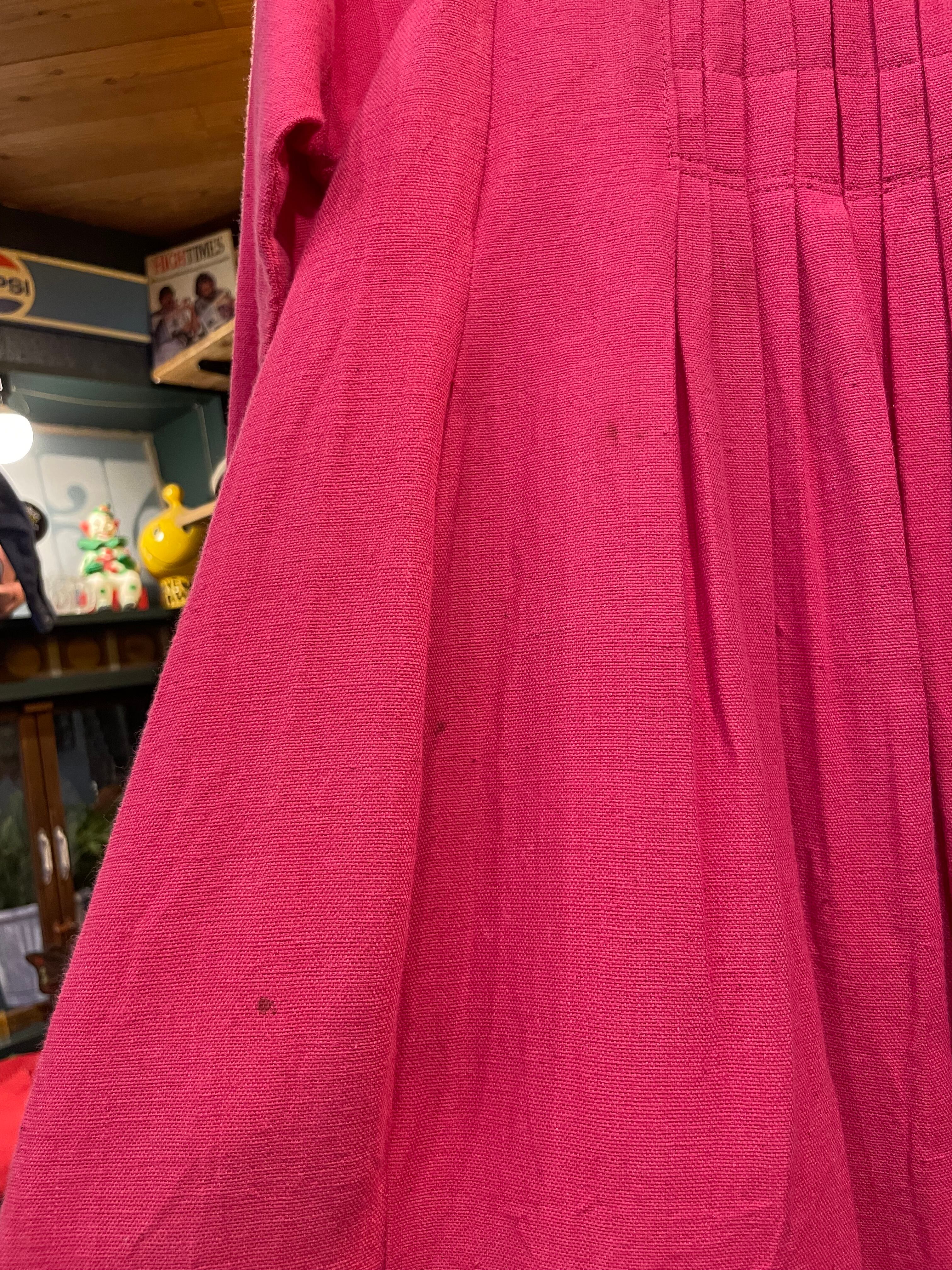 70'sな雰囲気の胸下から広がるAラインシルエットがとてもかわいいですし、フレアスリーブで長袖なところが良いですね。