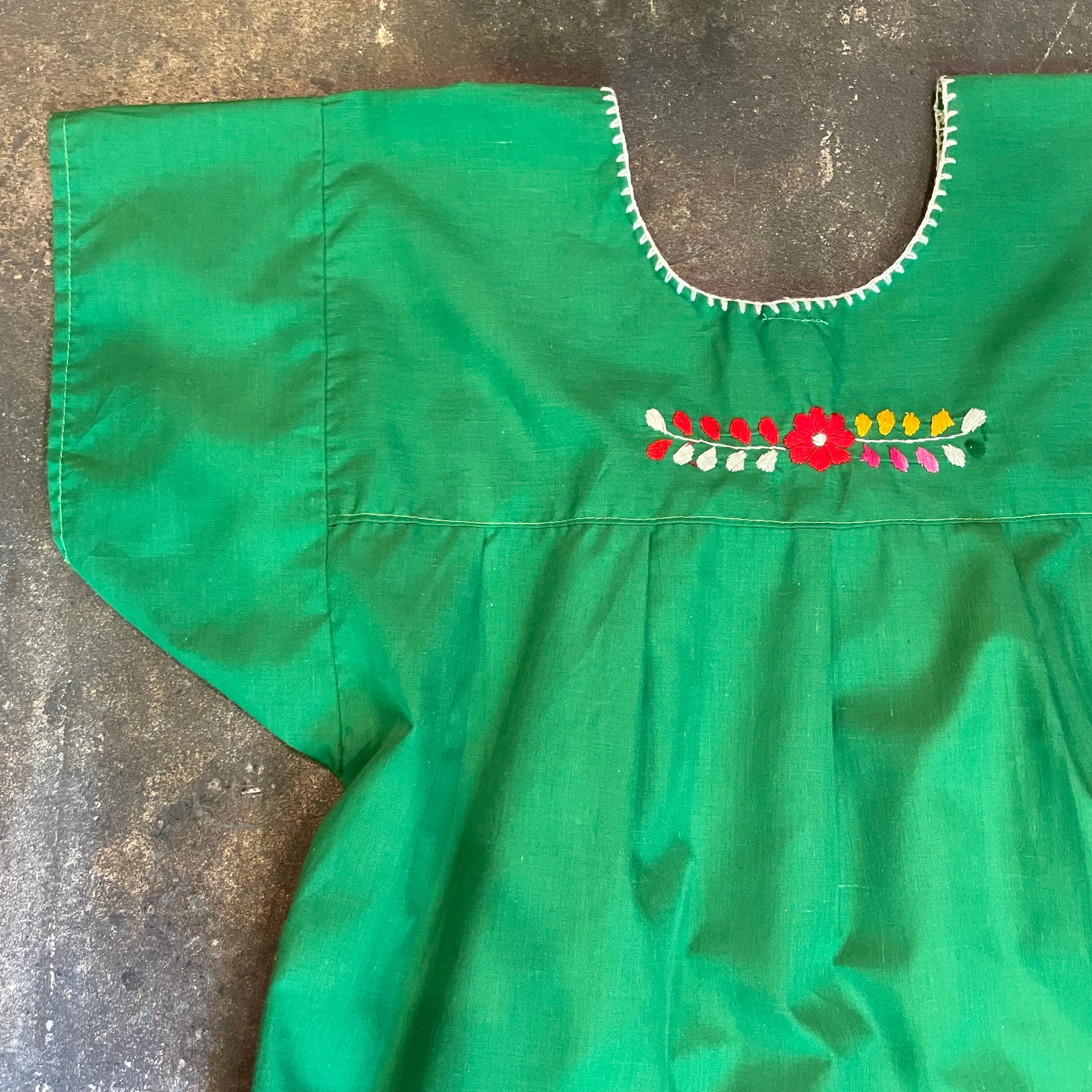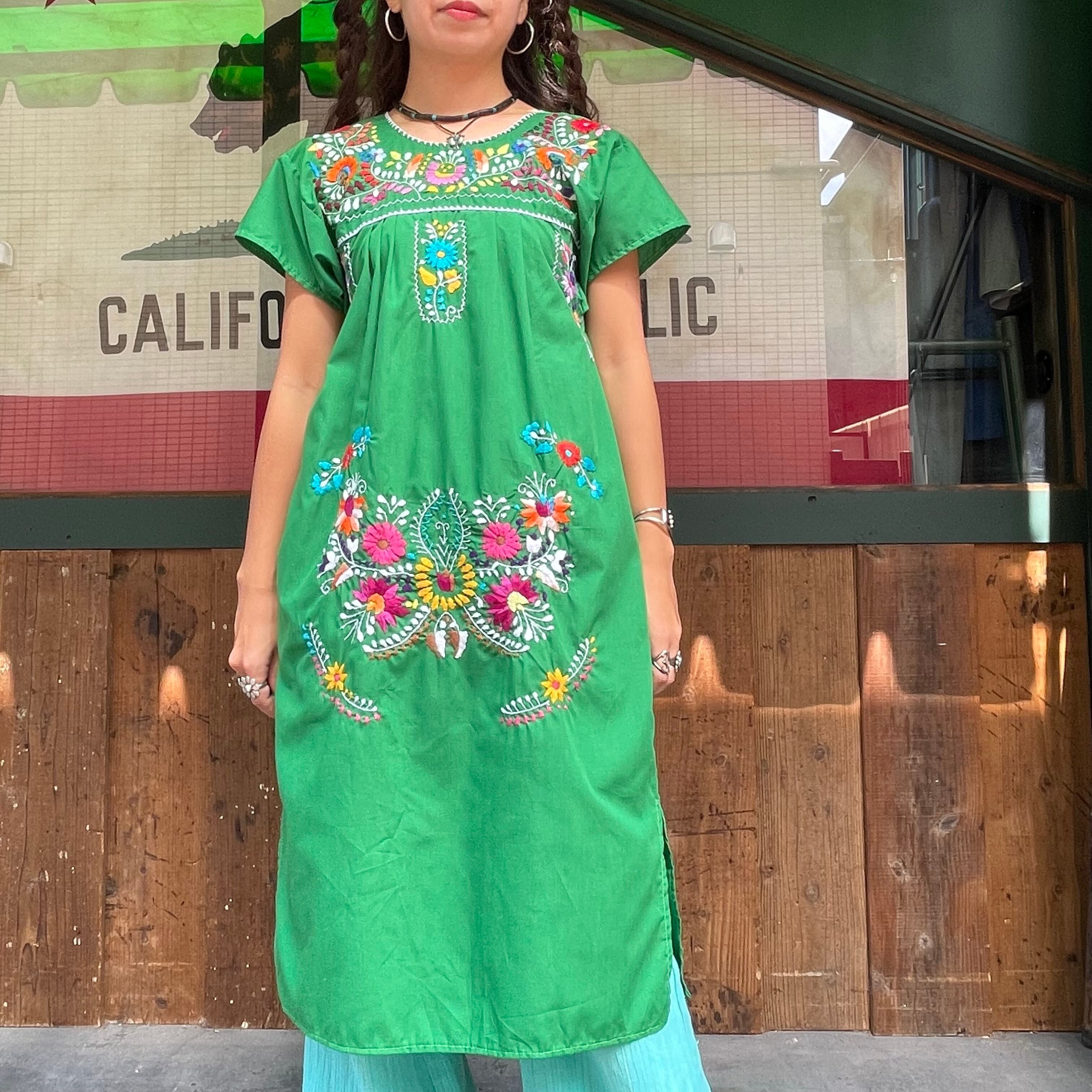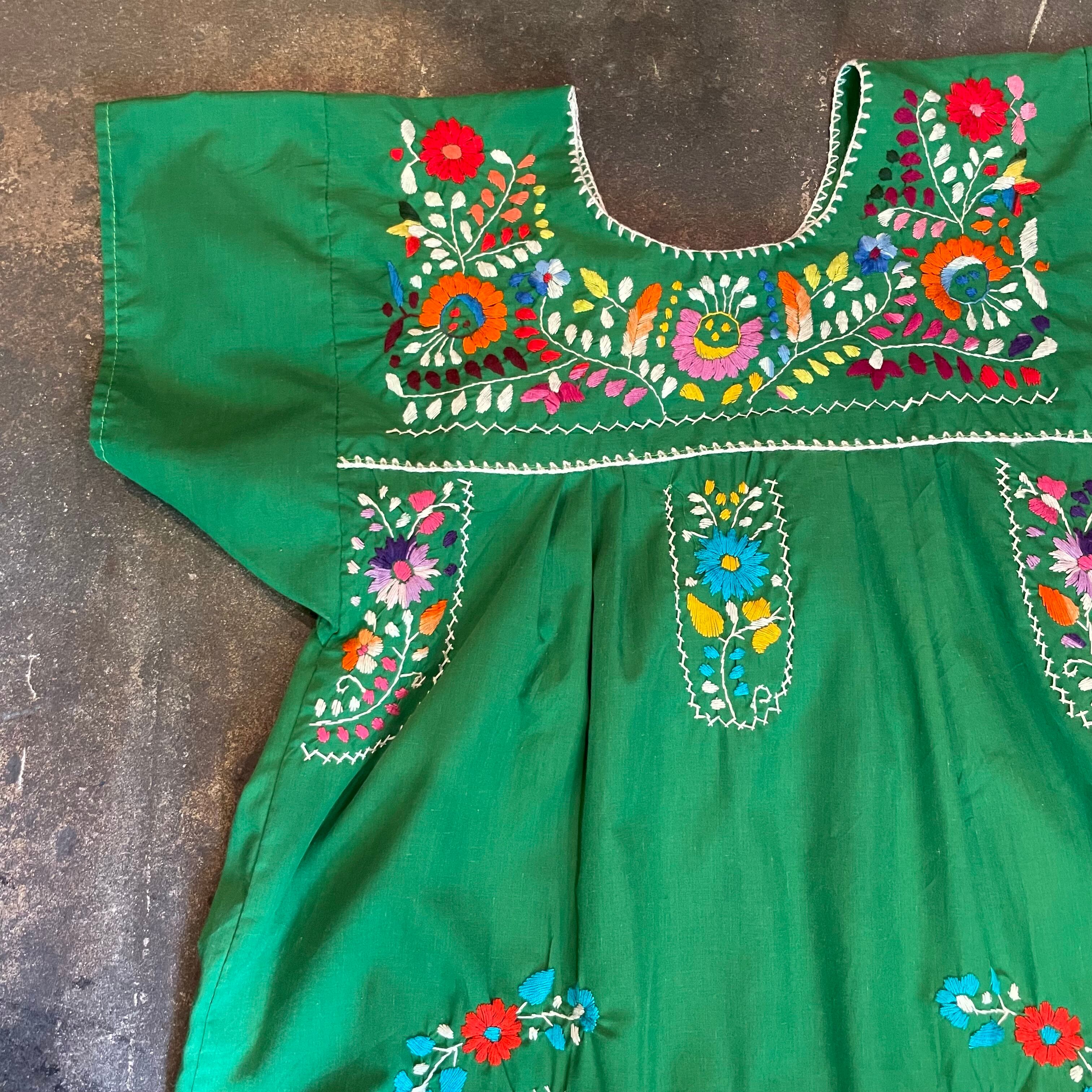 鮮やかなグリーンベースにカラフルな刺繍が映えてとても素敵な一枚です。