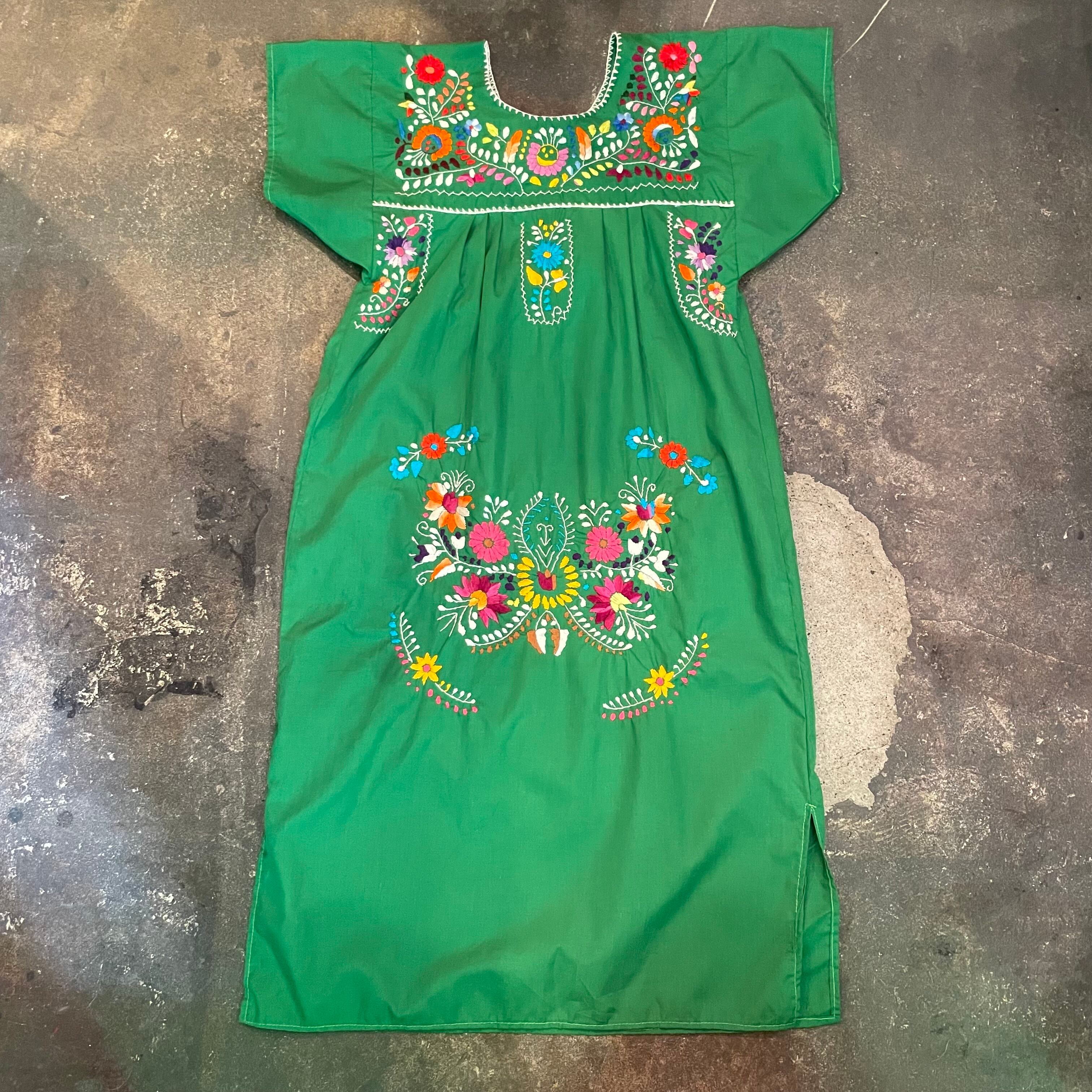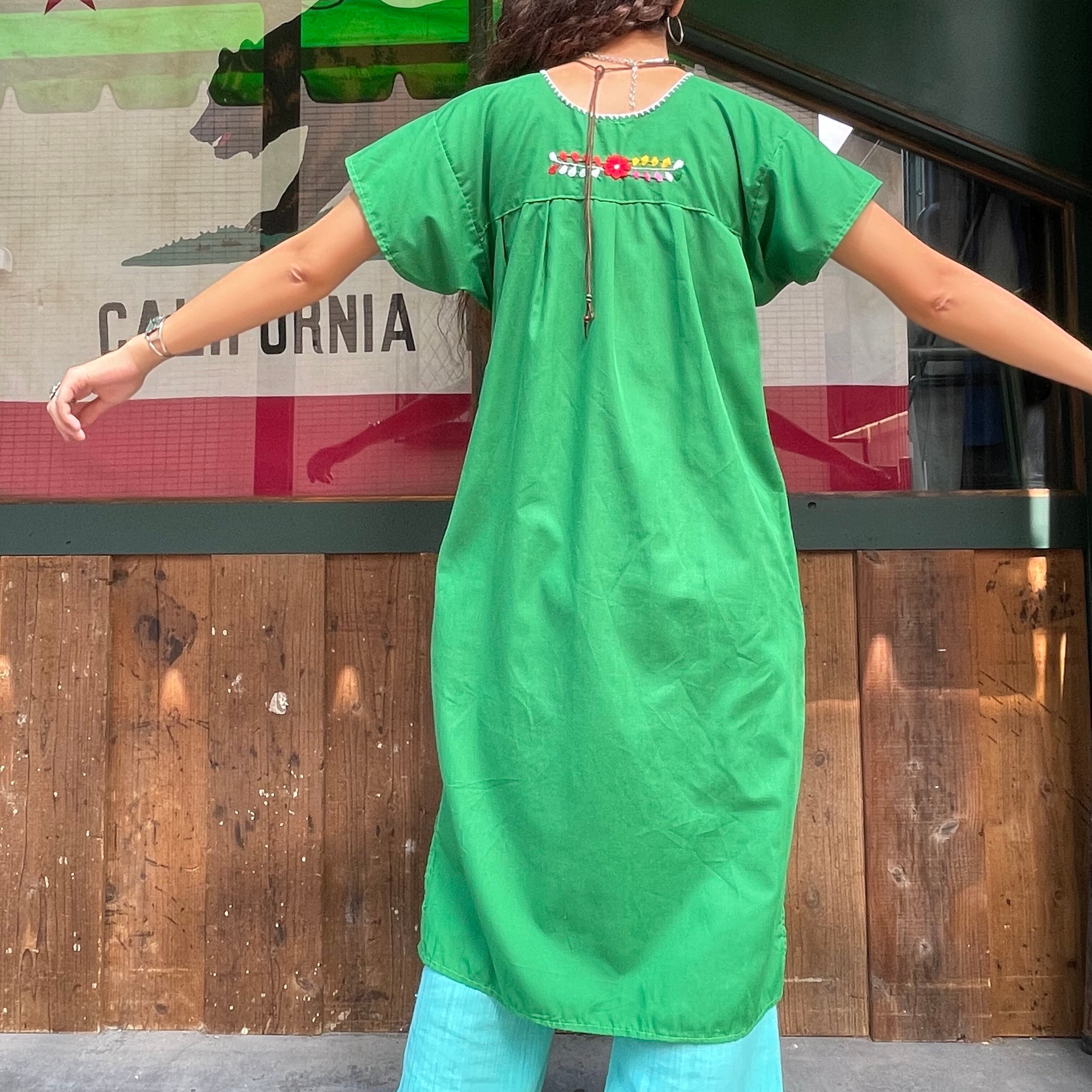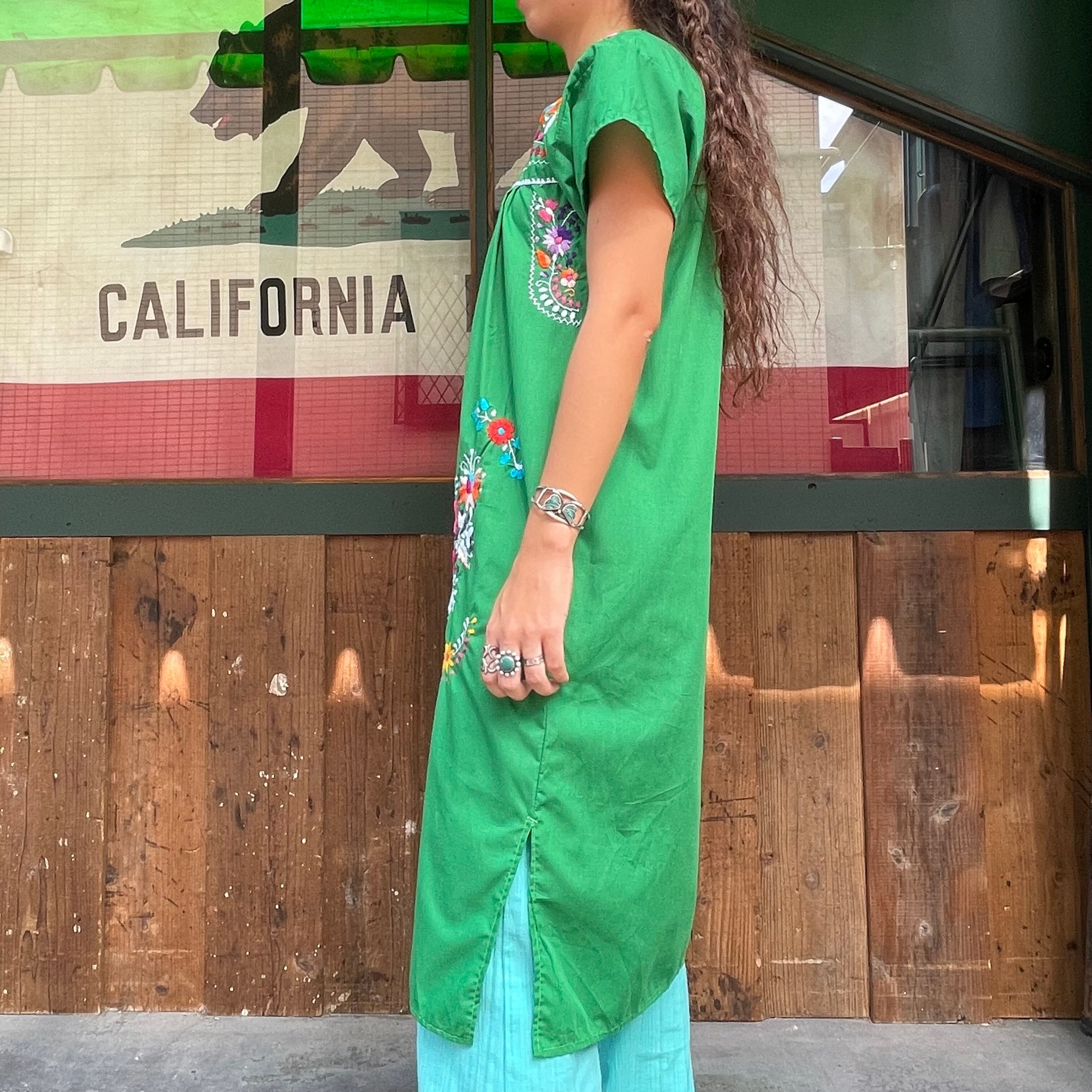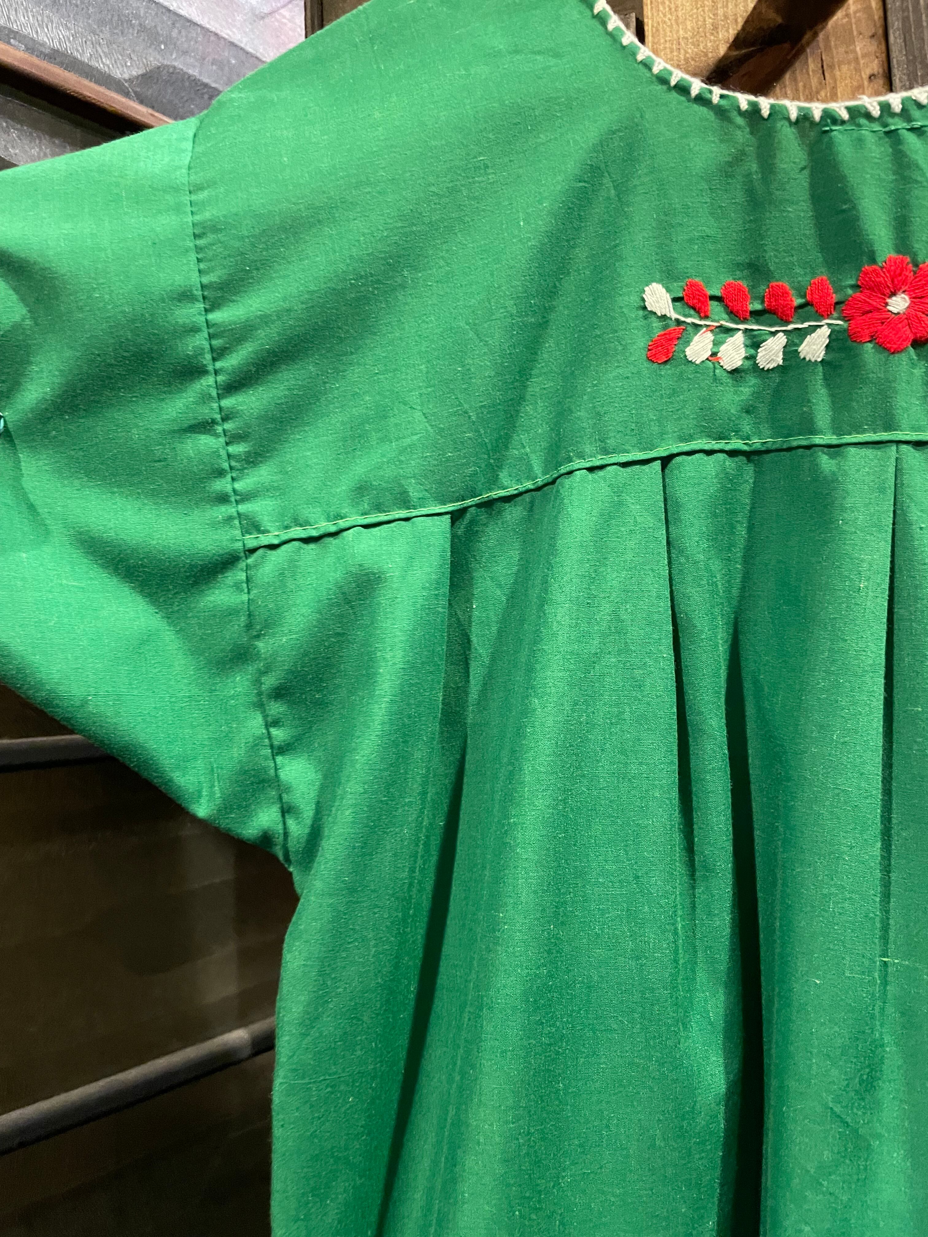 鮮やかなグリーンベースにカラフルな刺繍が映えてとても素敵な一枚です。