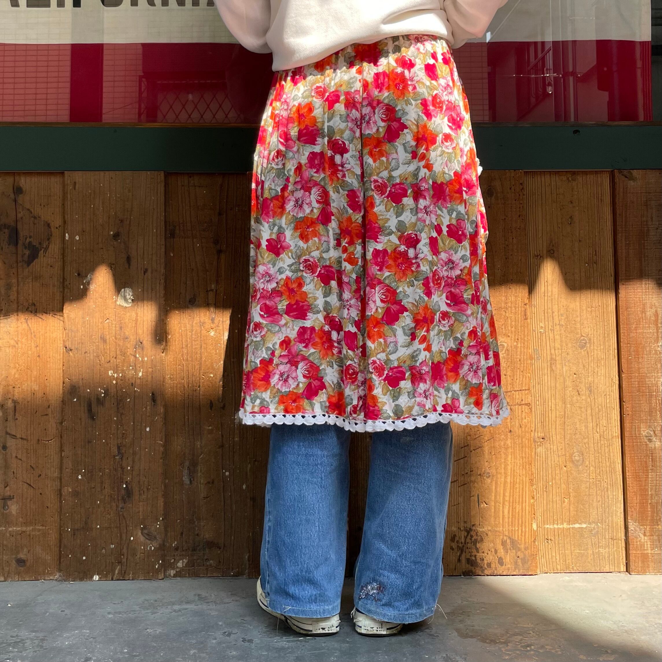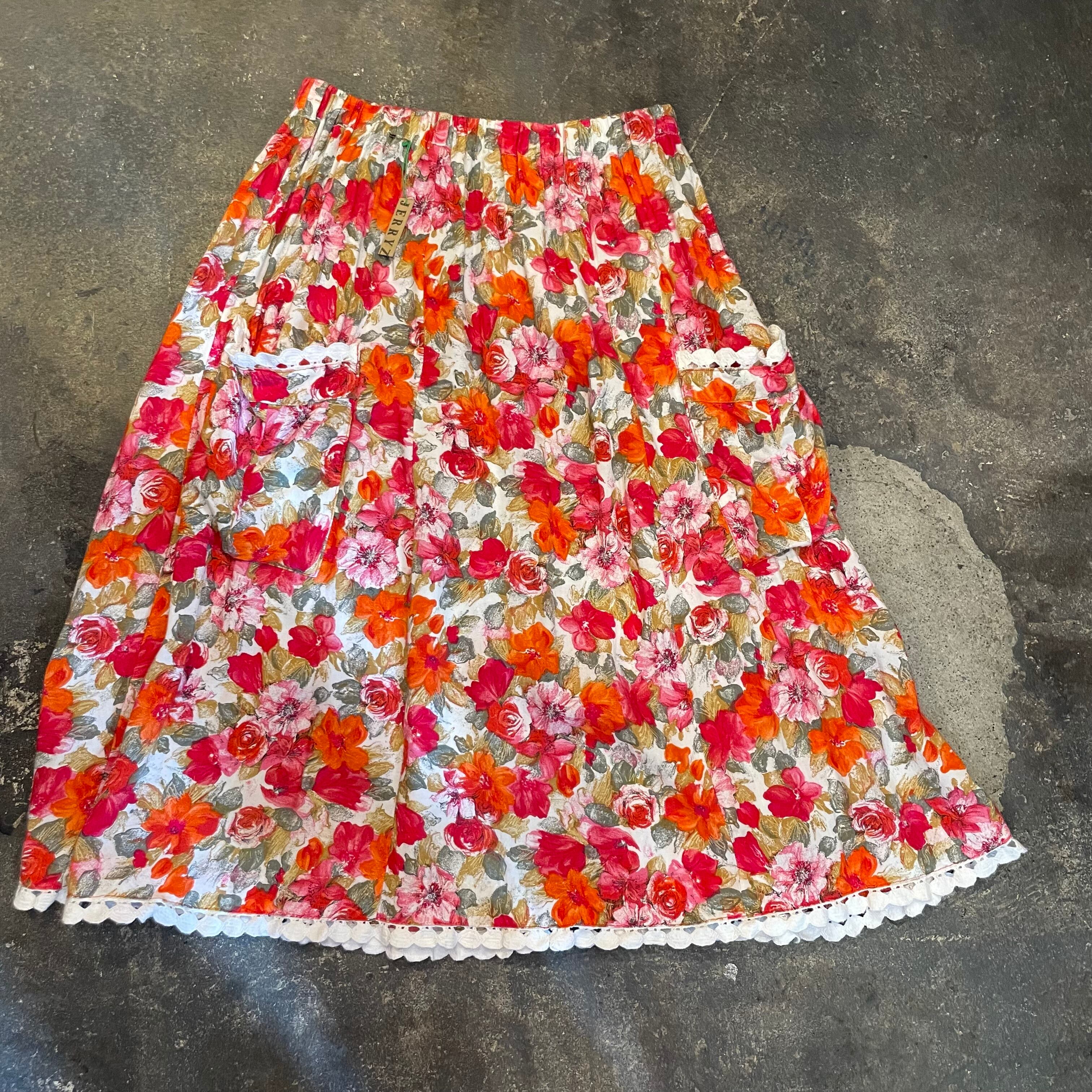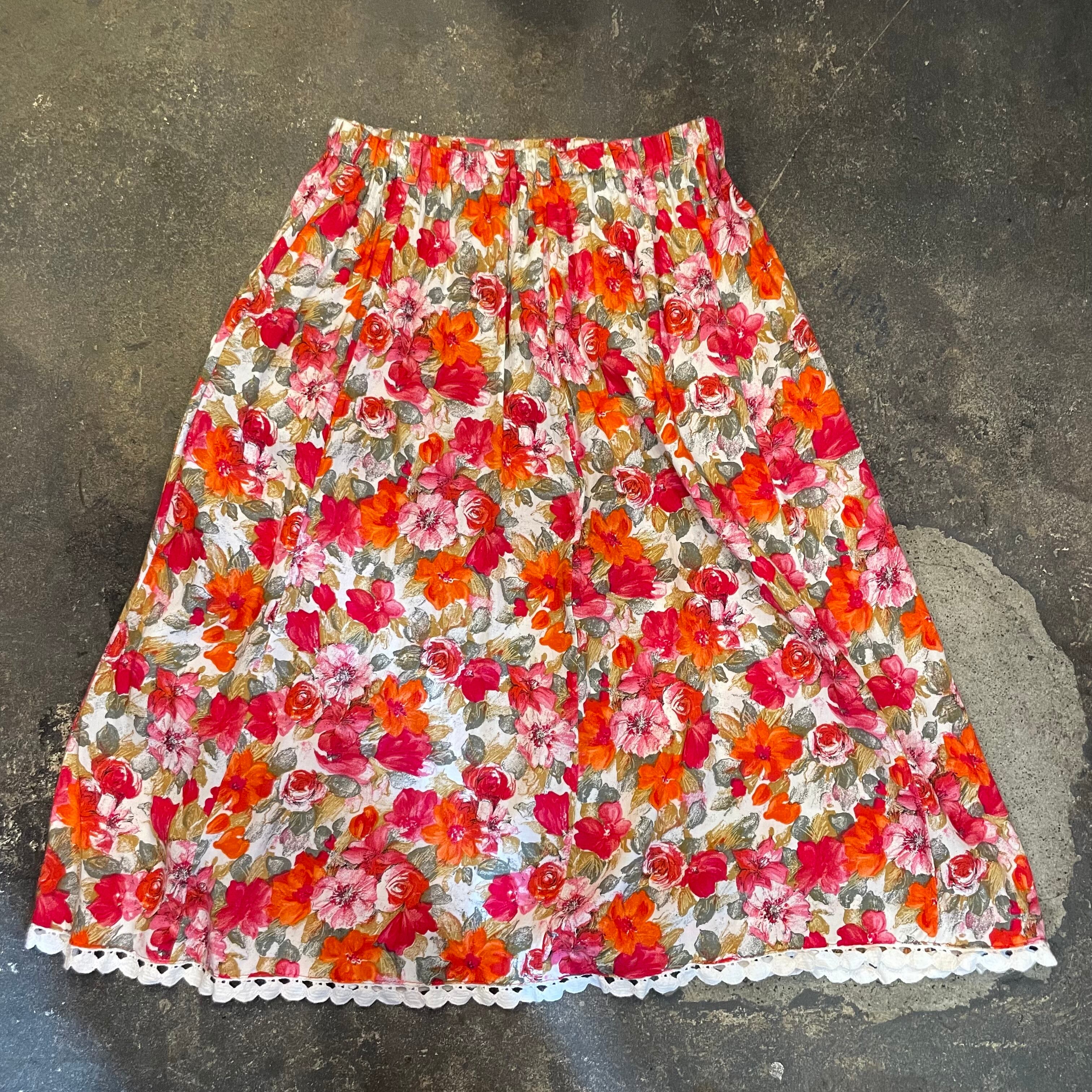 花柄にコットンレースが付いたガーリーでかわいらしいスカートです。