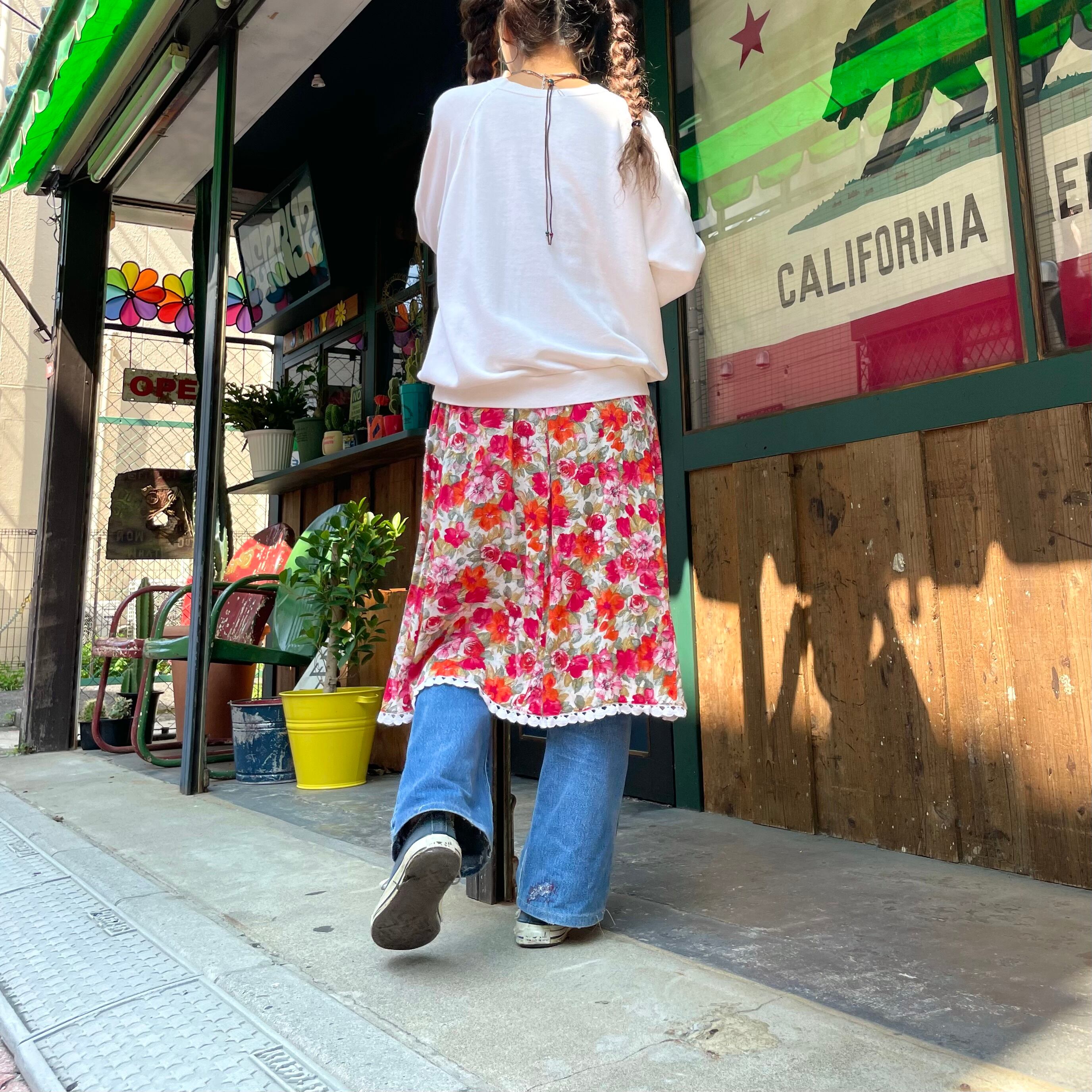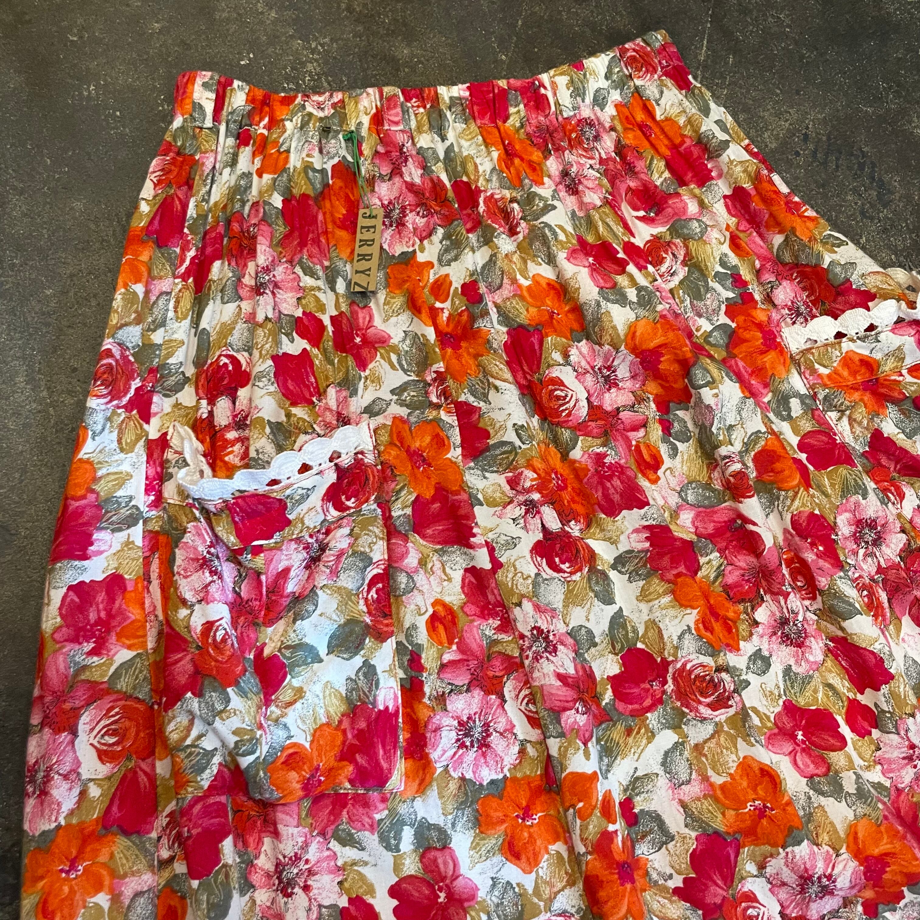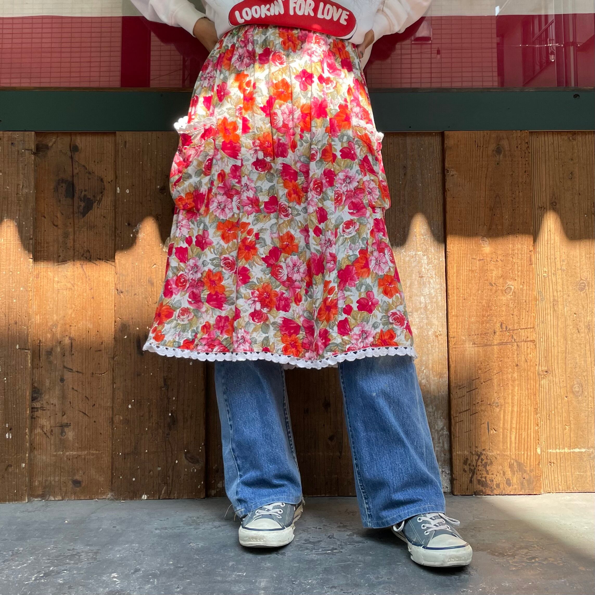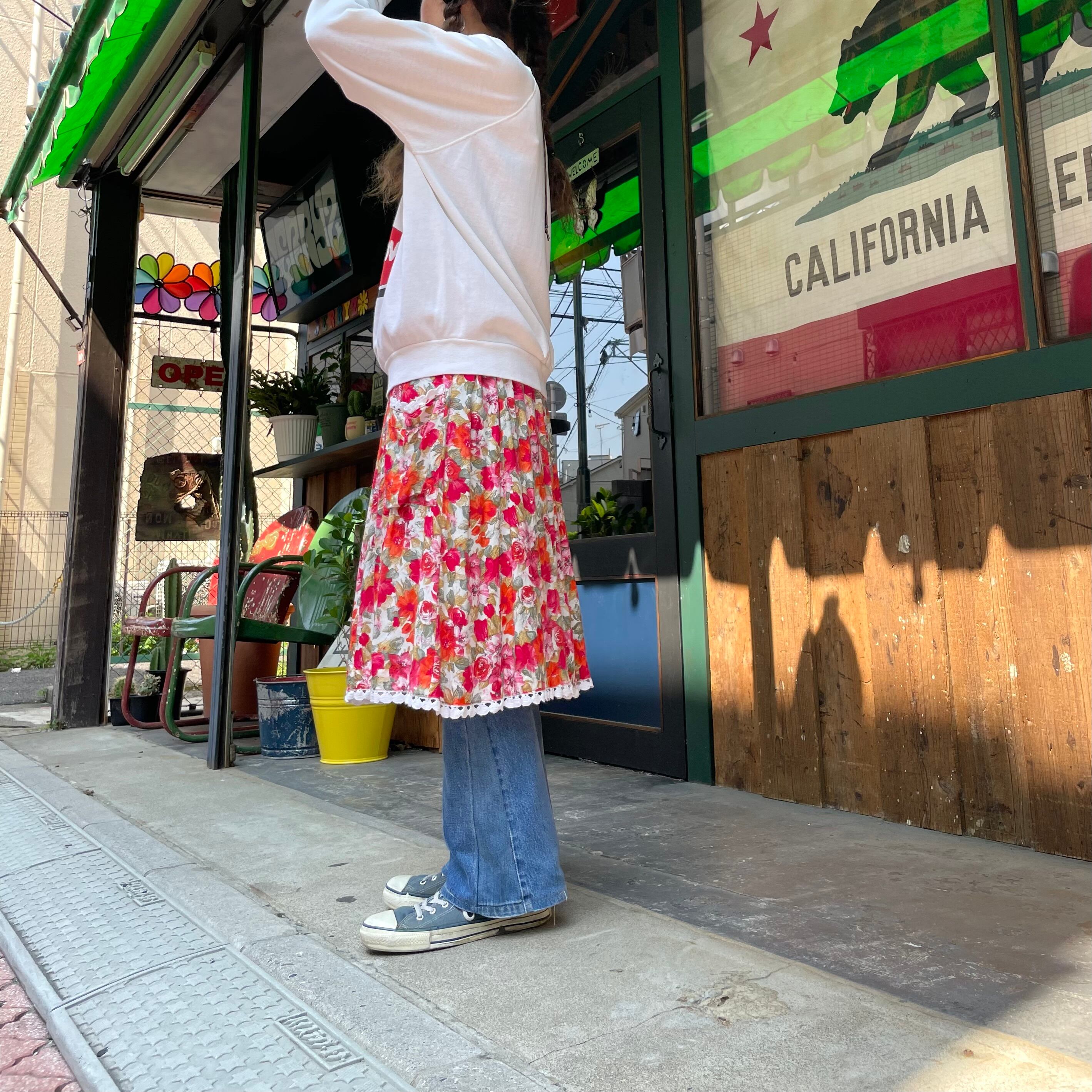 花柄にコットンレースが付いたガーリーでかわいらしいスカートです。