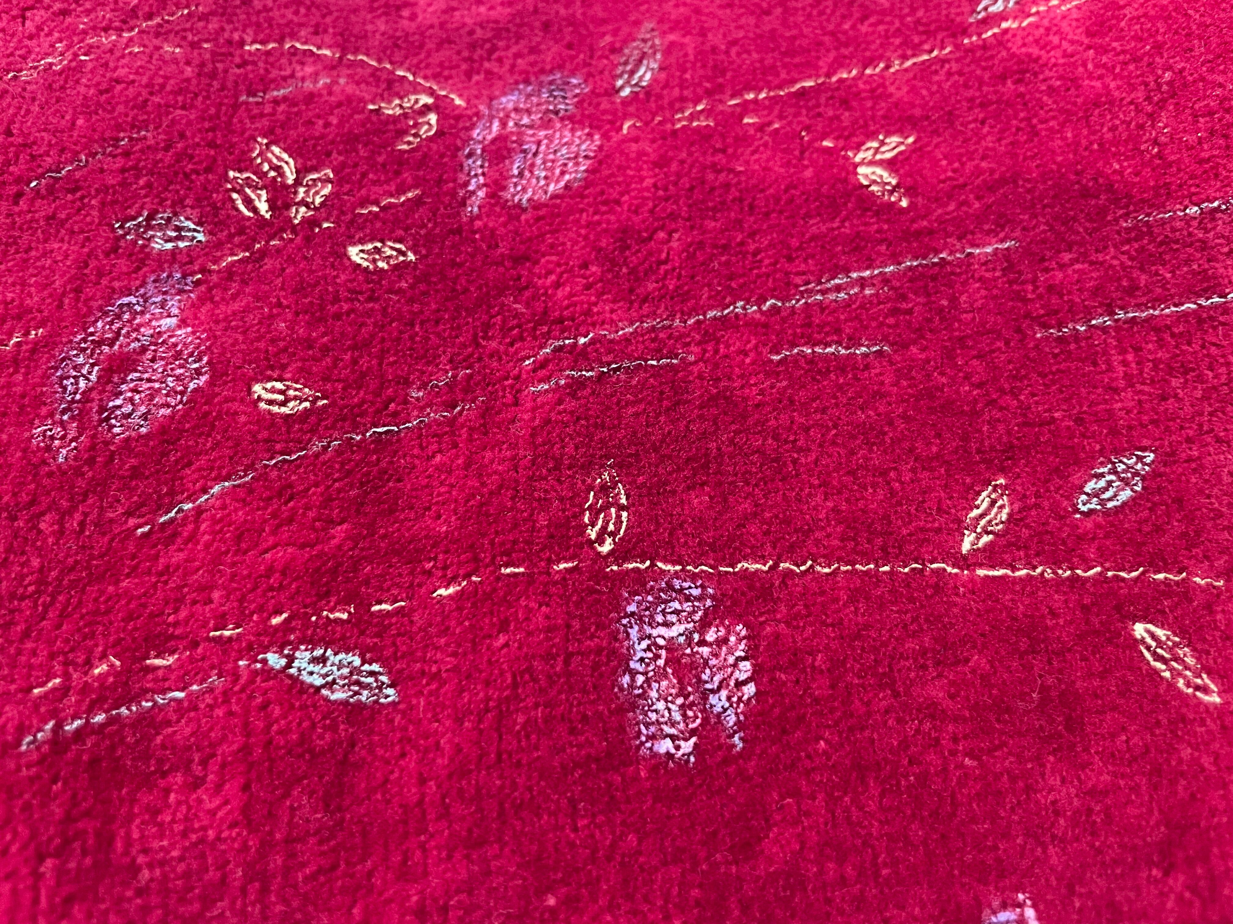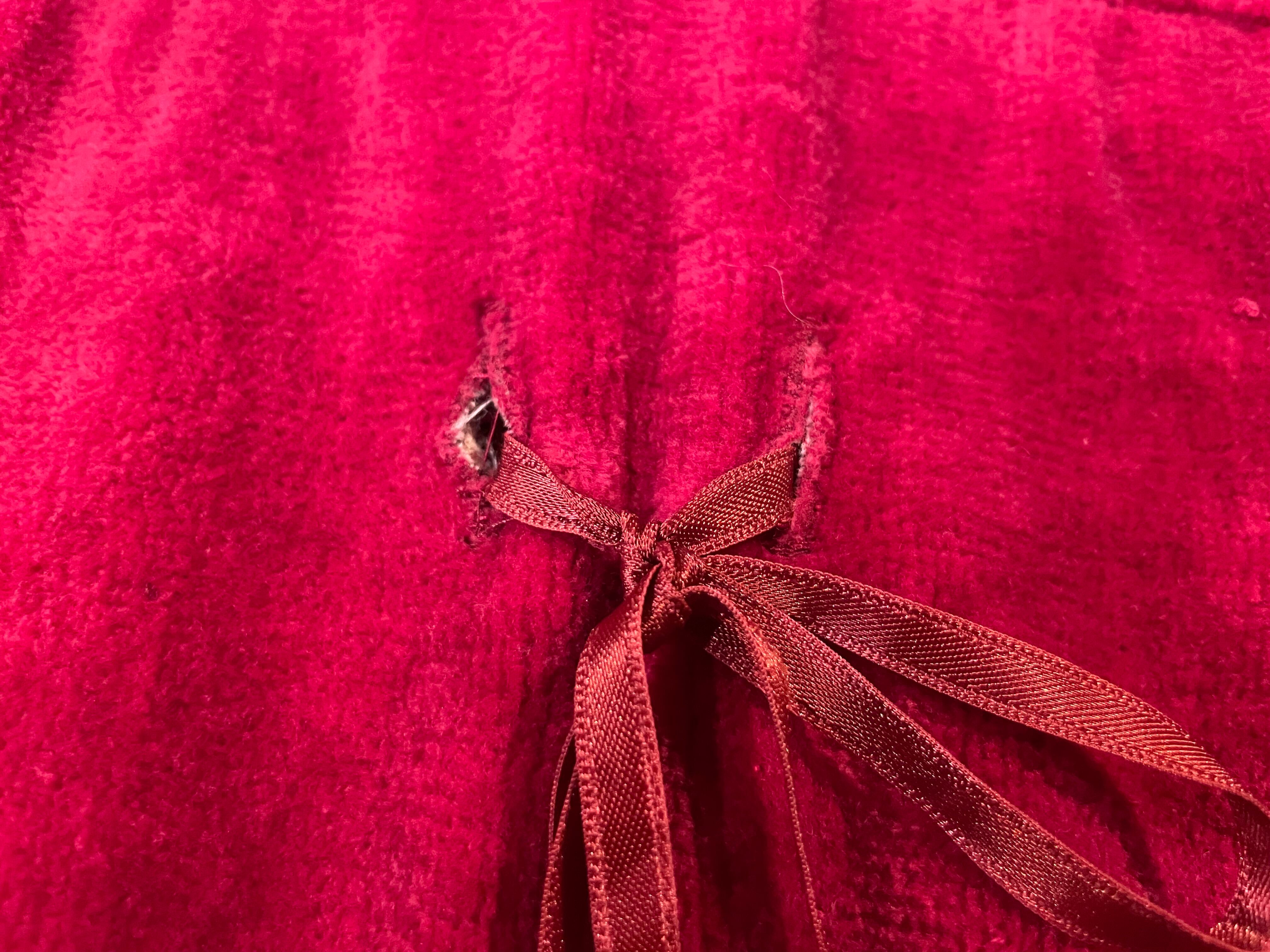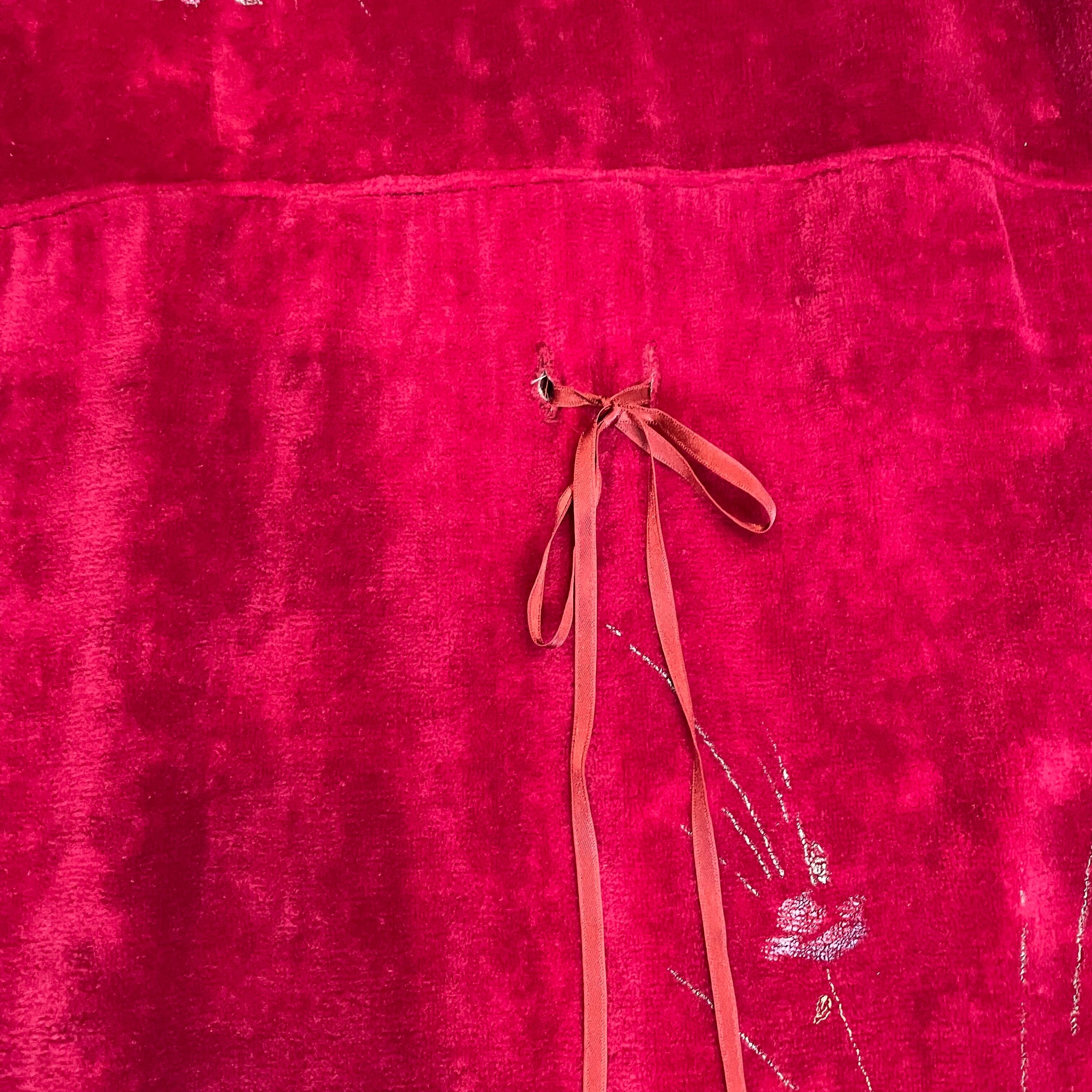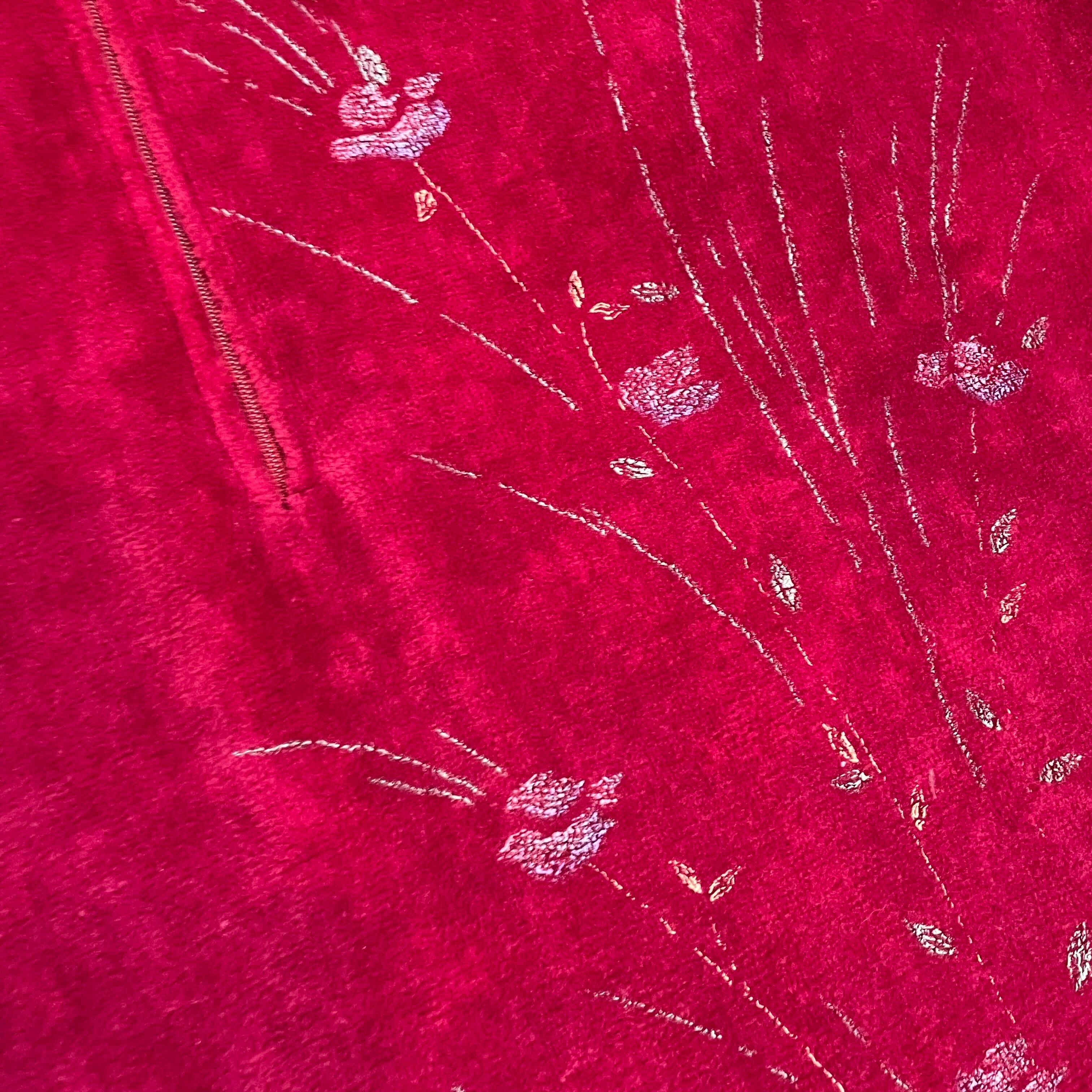 ワインレッドな色に落ち着いた花柄がとても大人っぽい印象ですね。着てみるとしっかり厚手のふんわりしたタオルに包まれているような安心感があり、気持ち良い着心地です。