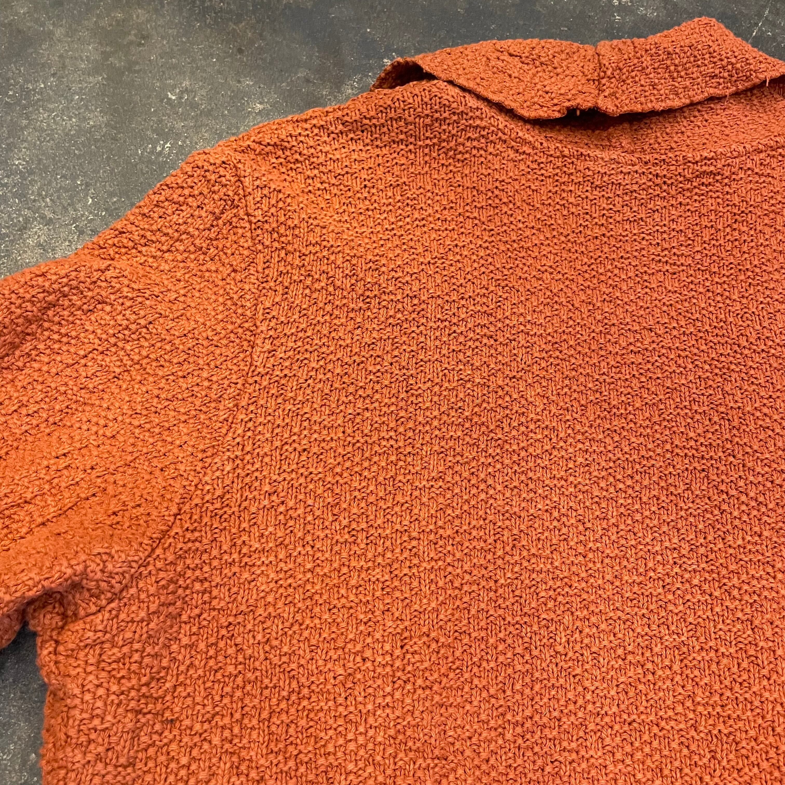 太めのコットンの糸が編んでありぼこぼこした編み地も不思議で面白いですし、ウエストから下の切り替えのシルエットが素敵ですね。