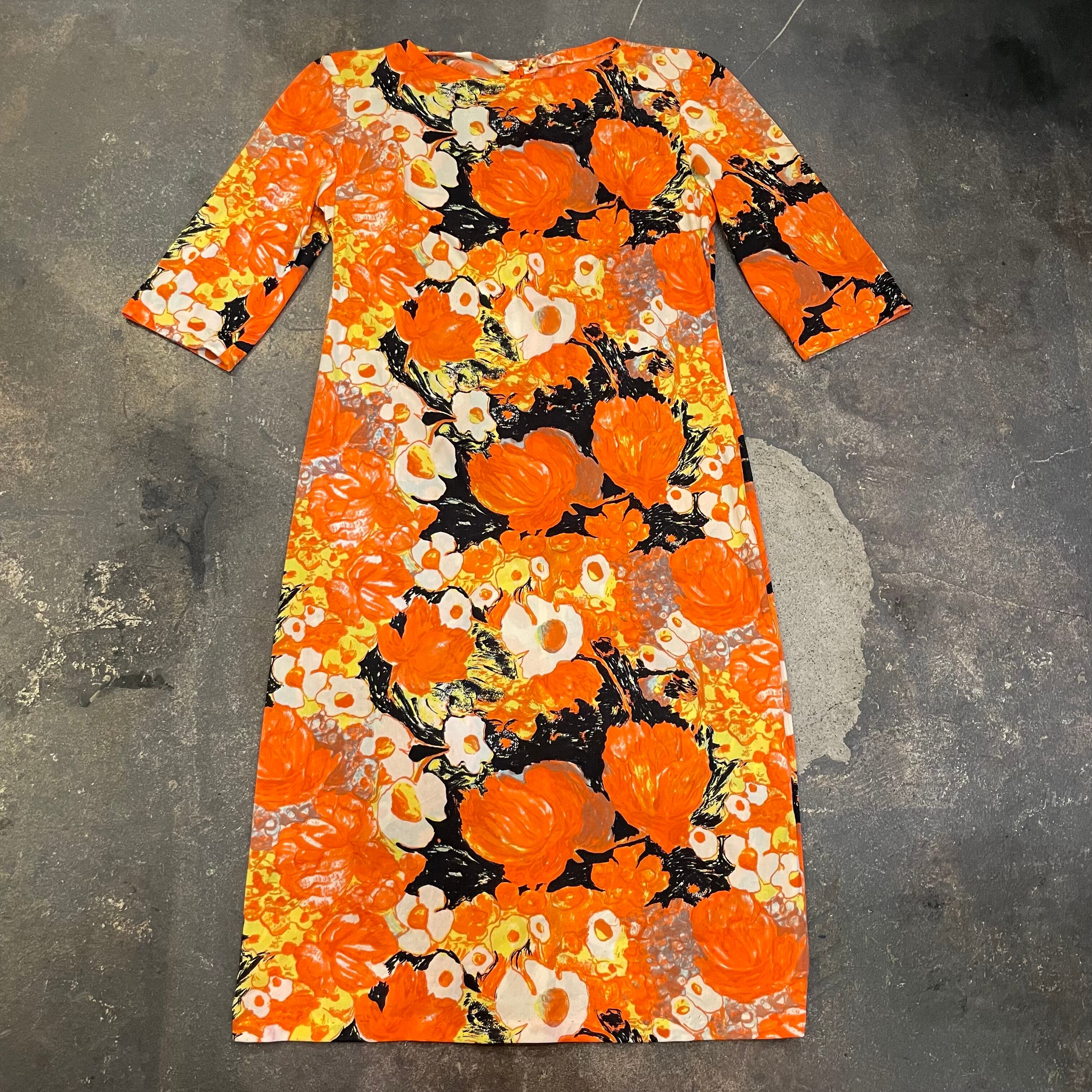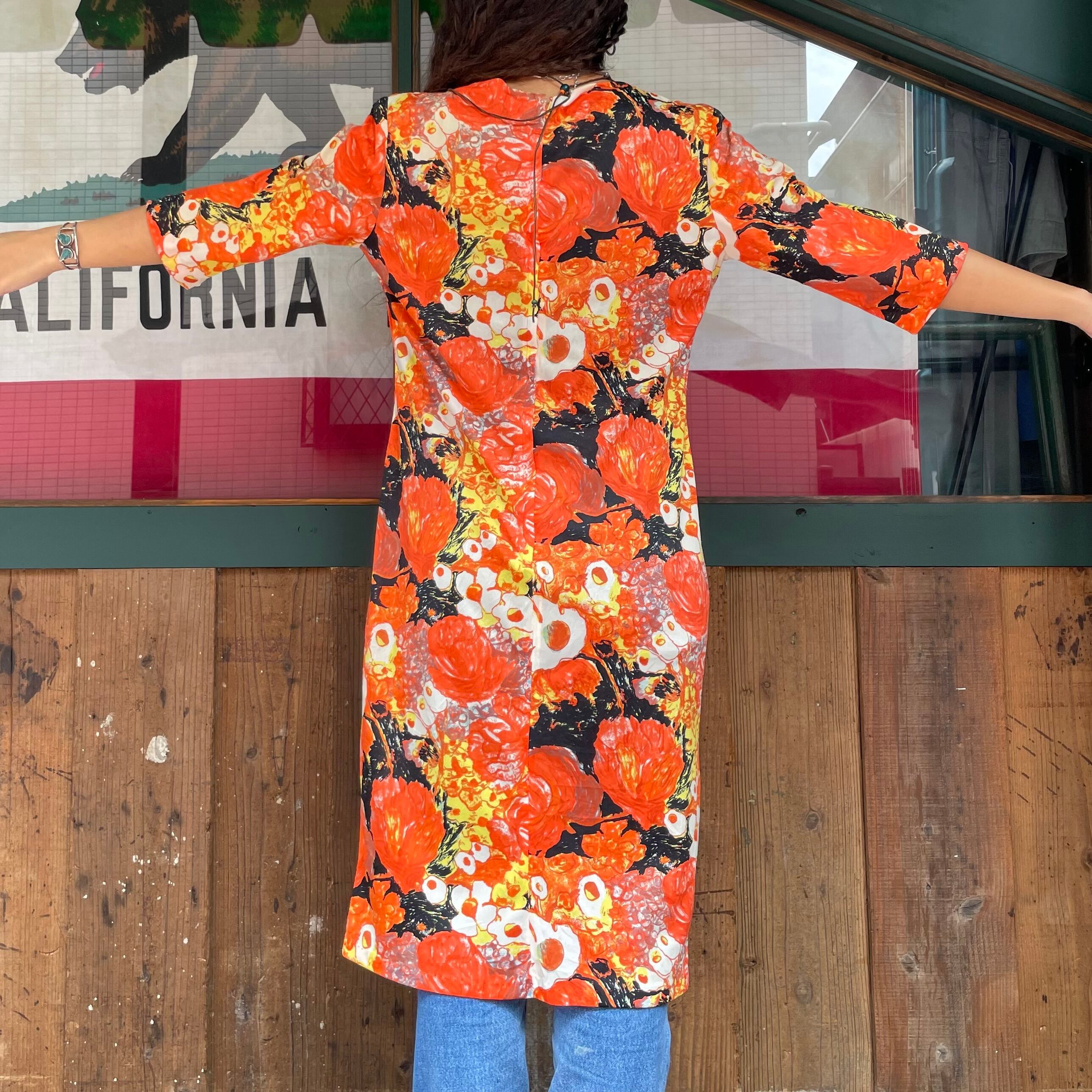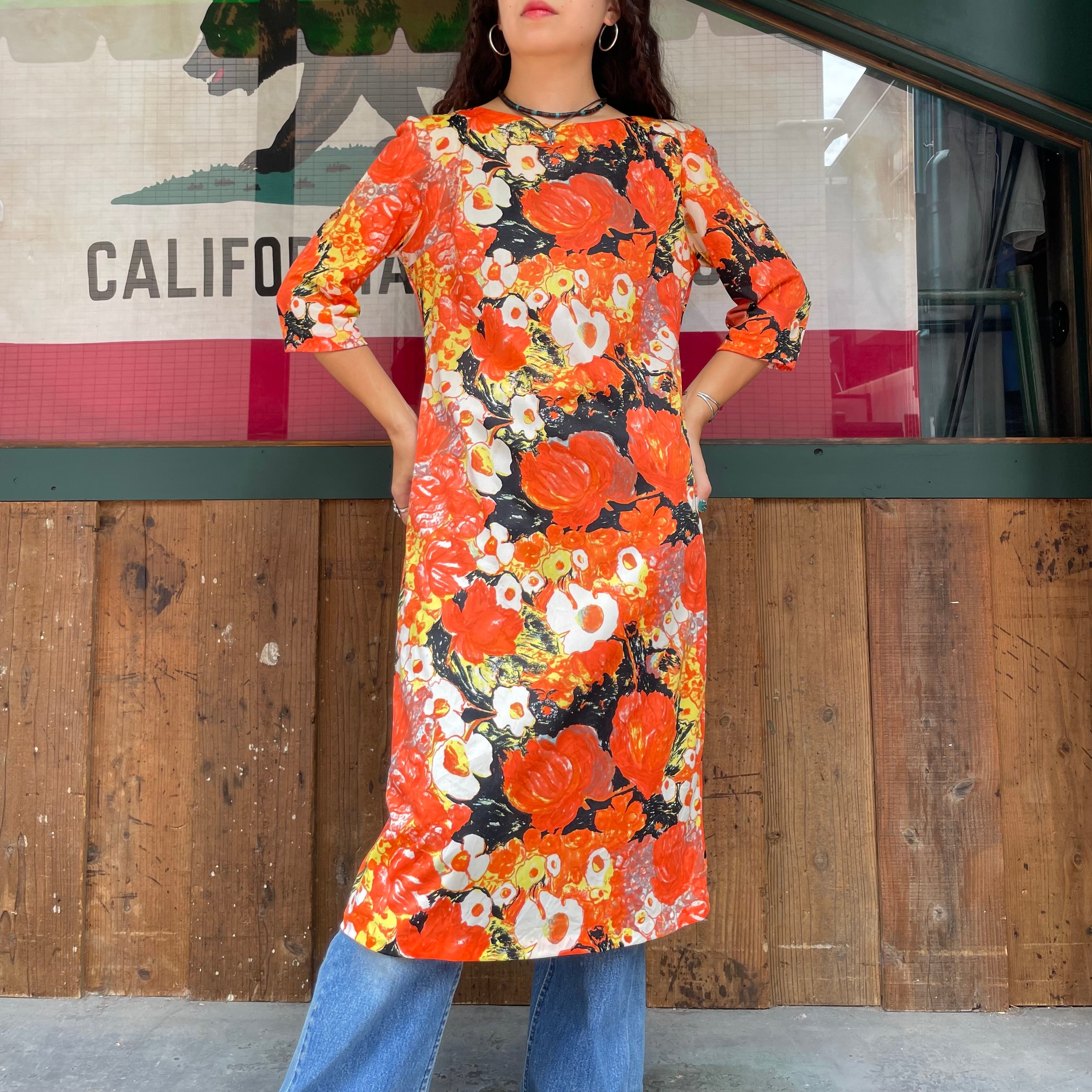 スケッチブックに落書きで描いたような花?柄がかわいいワンピースです。