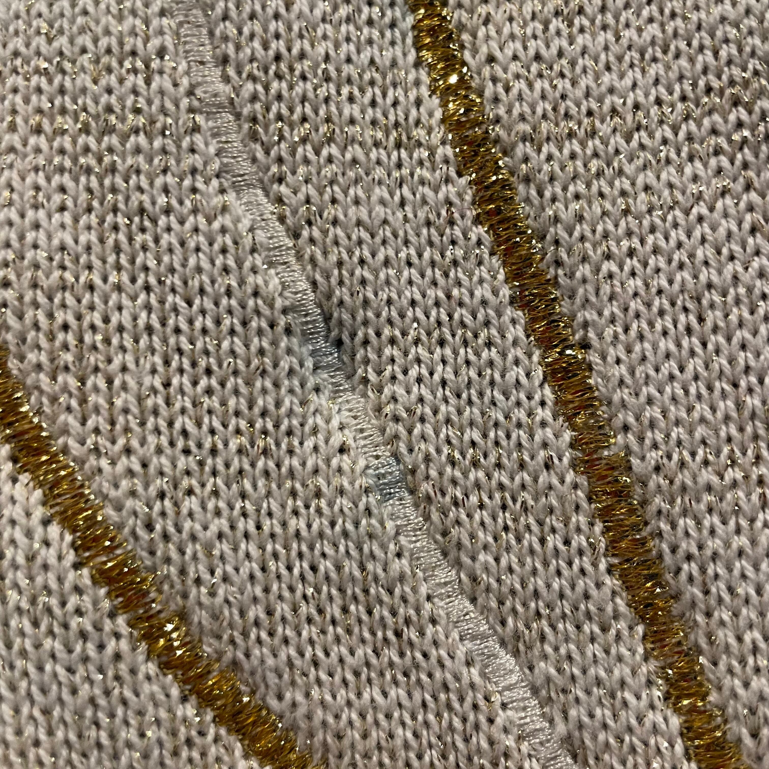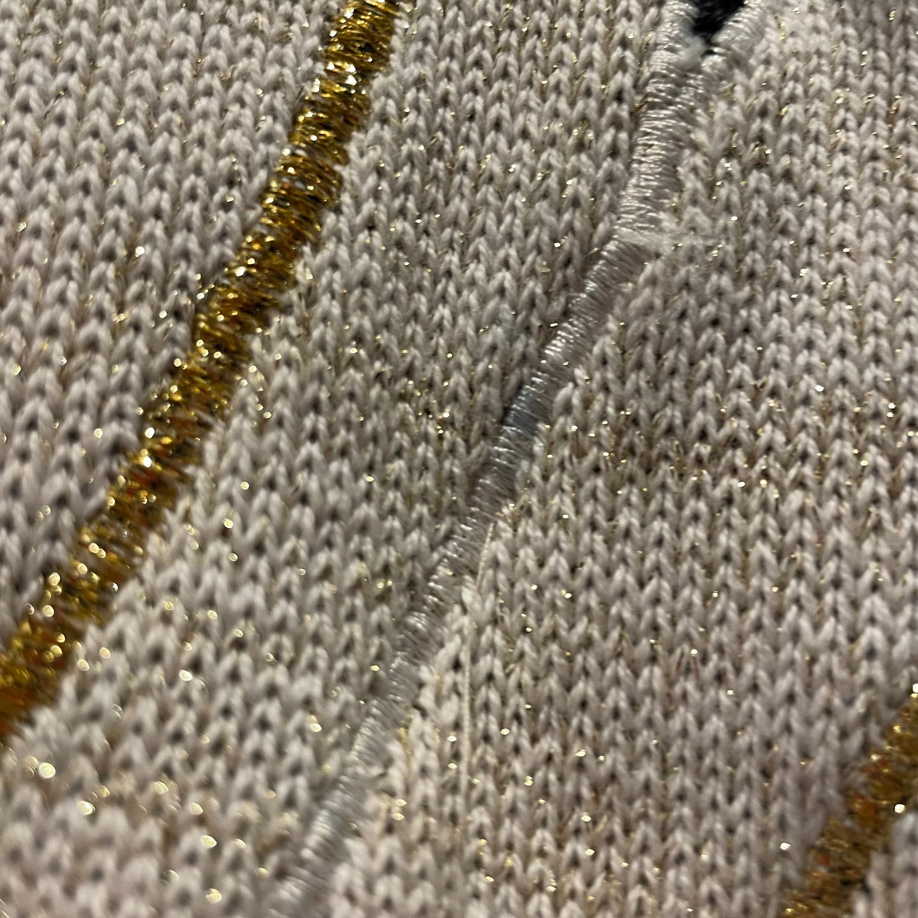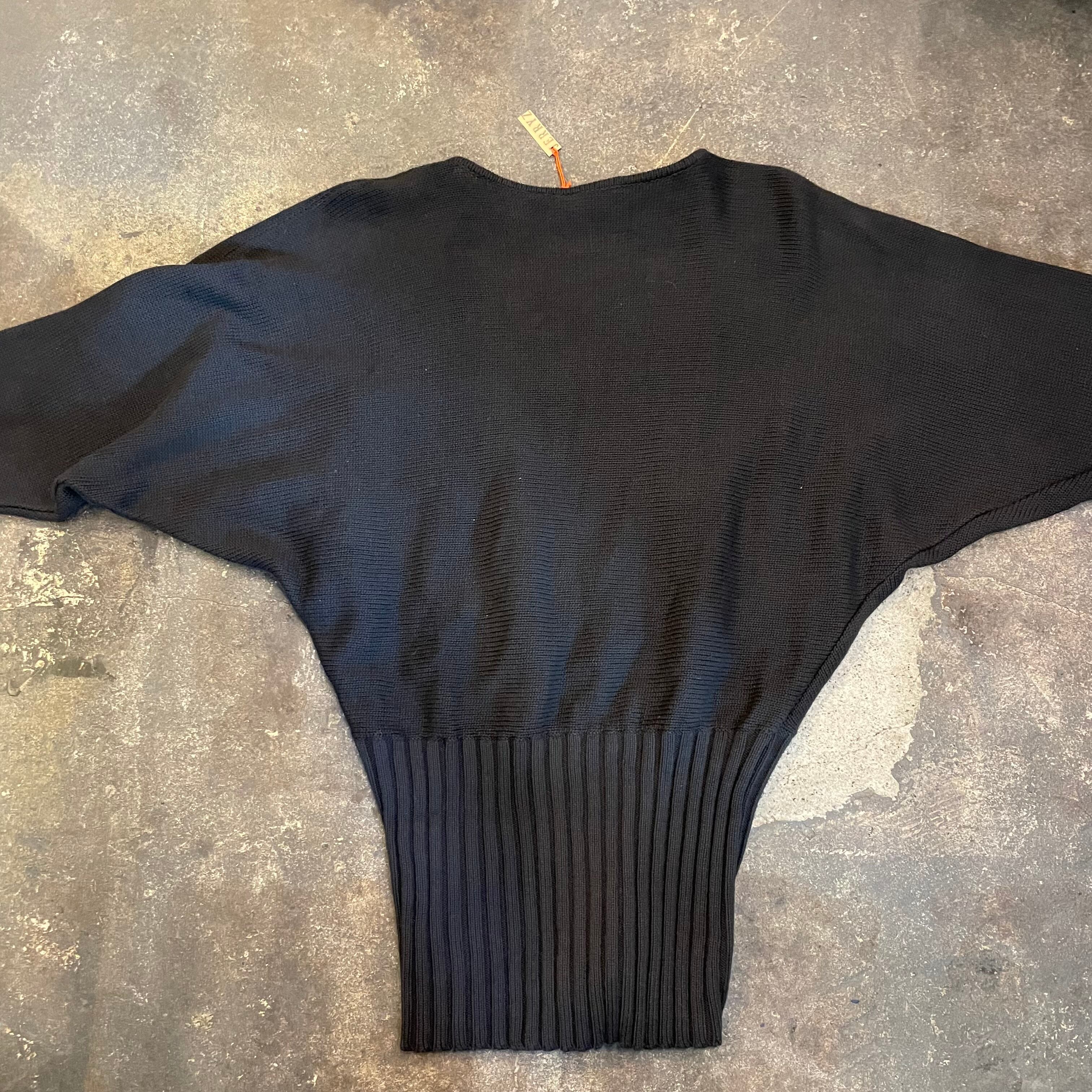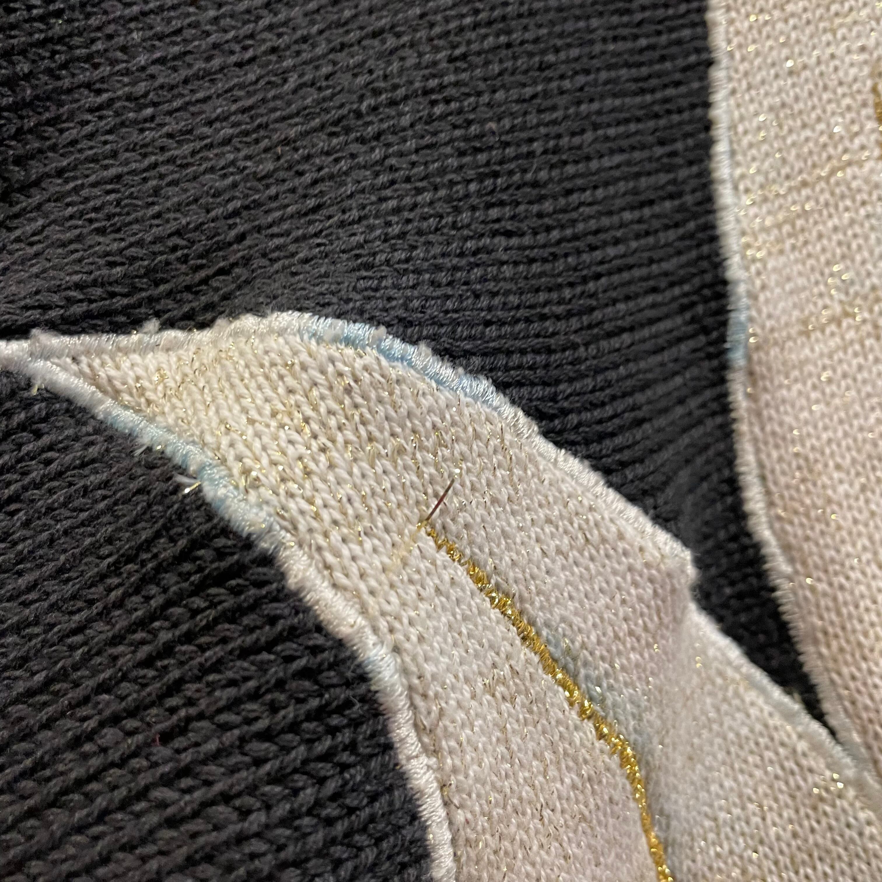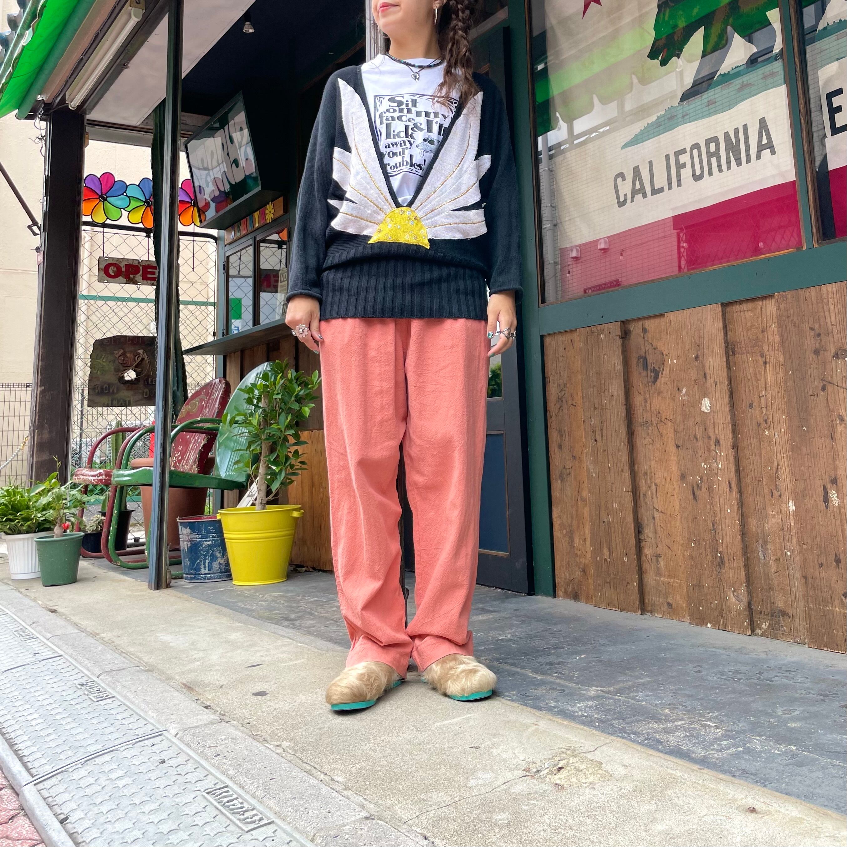 黒地にマーガレットのようなお花がバーンと面白いデザインのセーターです。