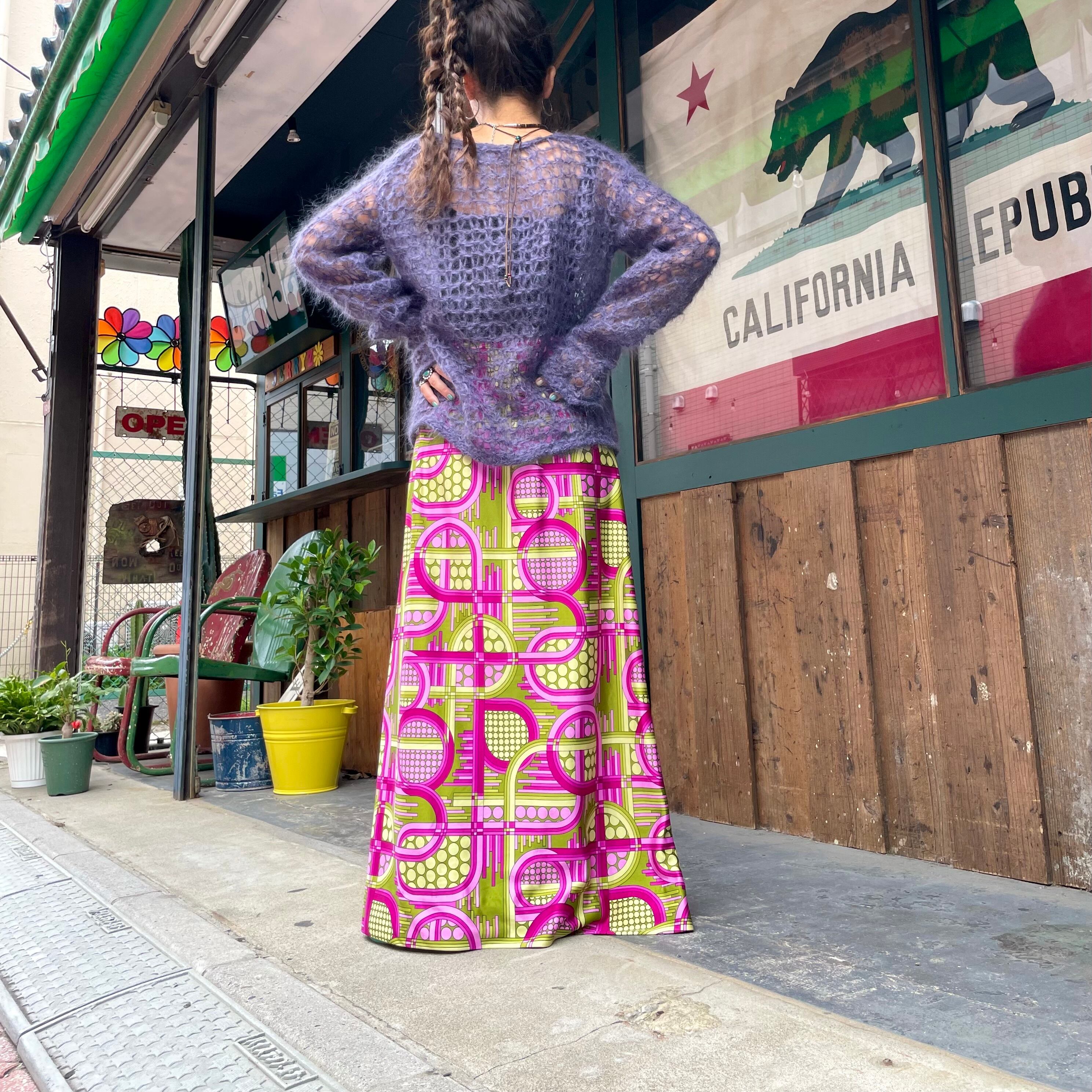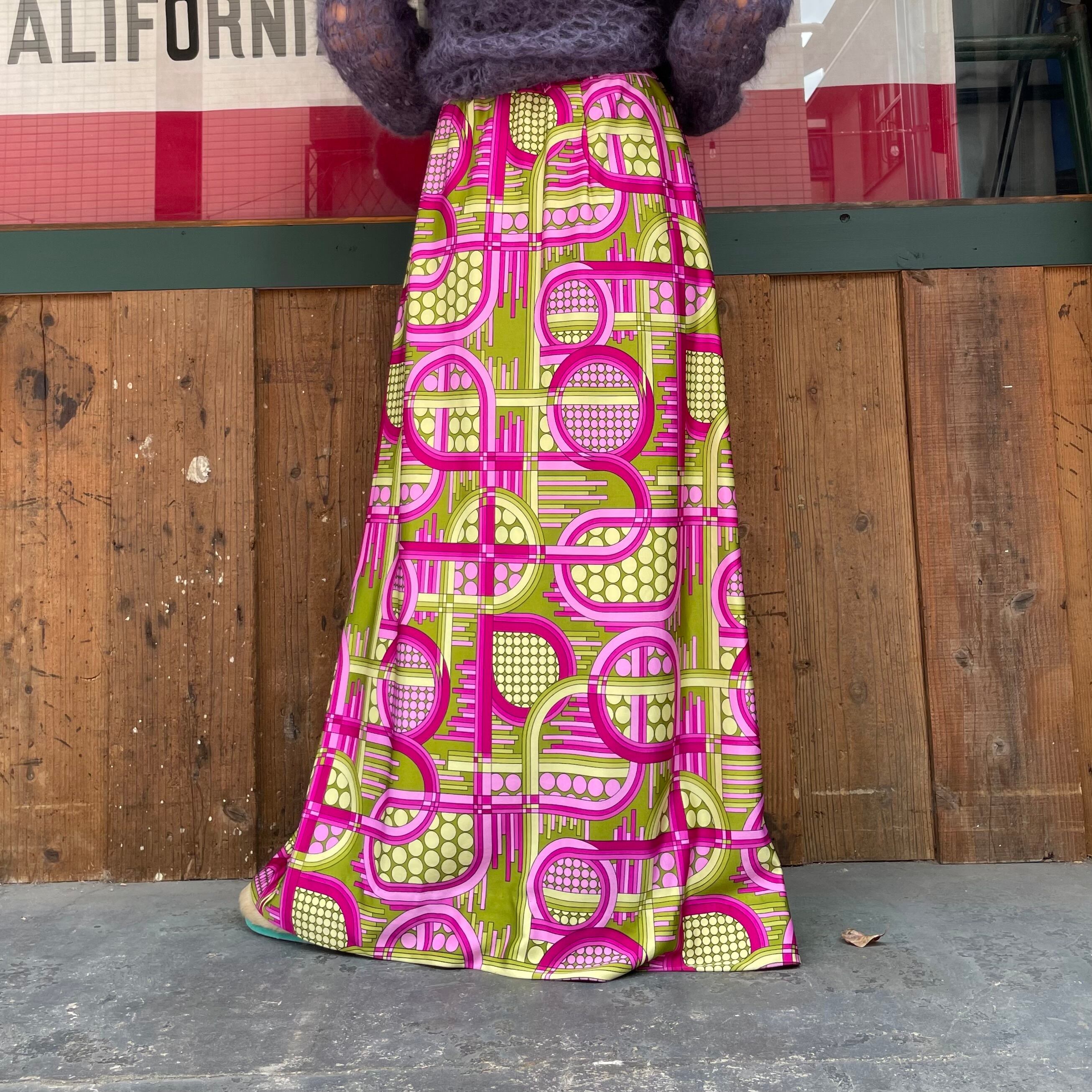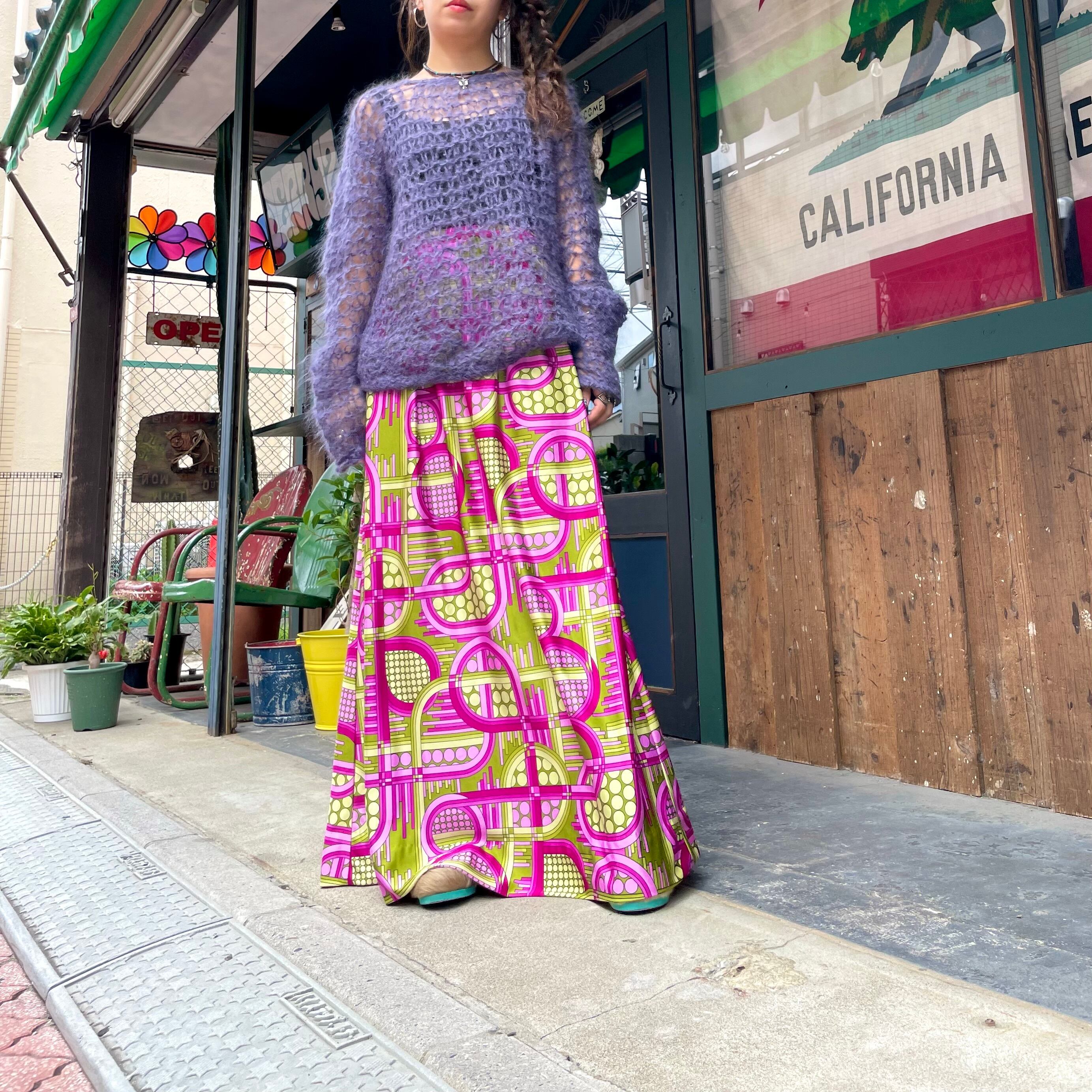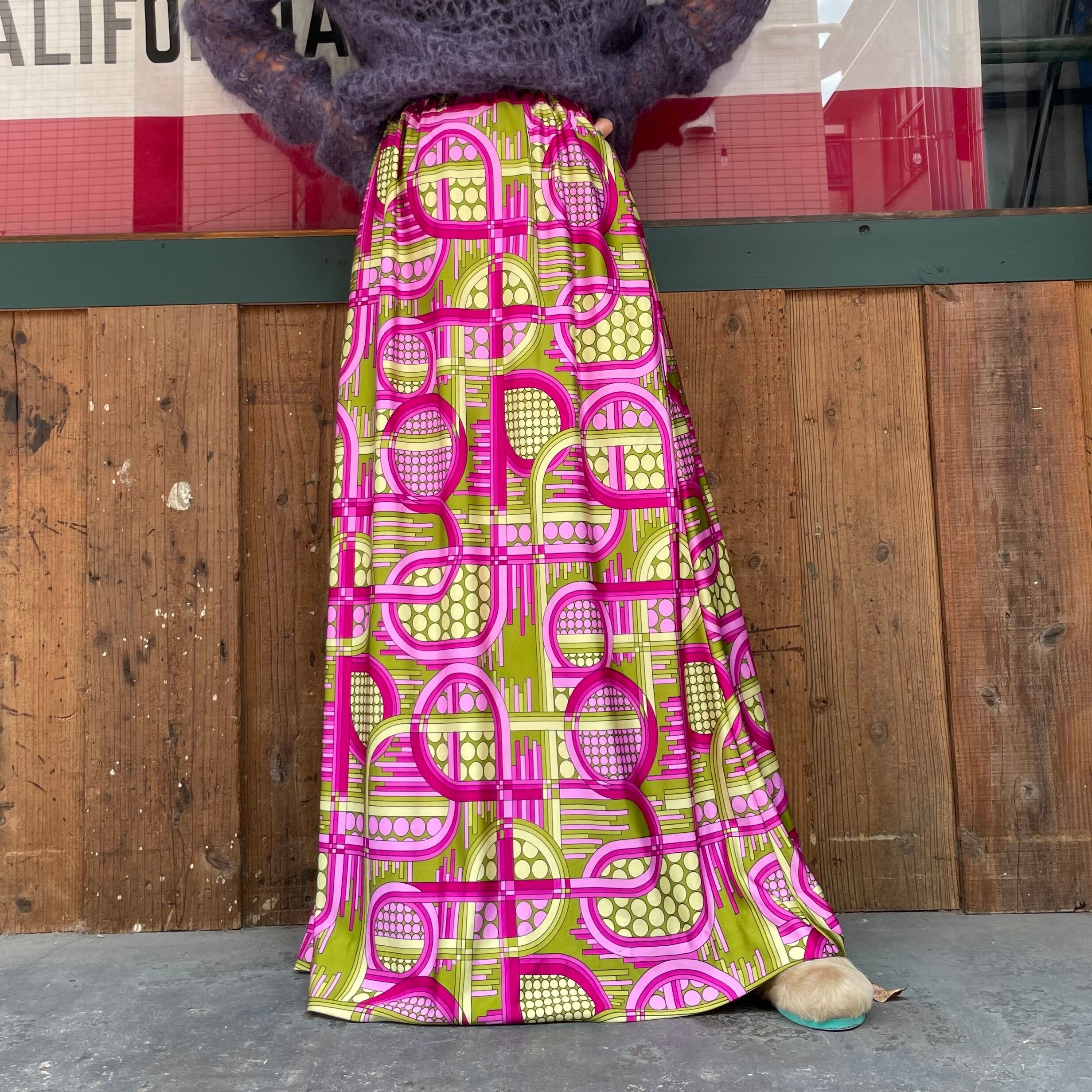 細胞みたいな不思議な模様がかわいいロングスカートです。