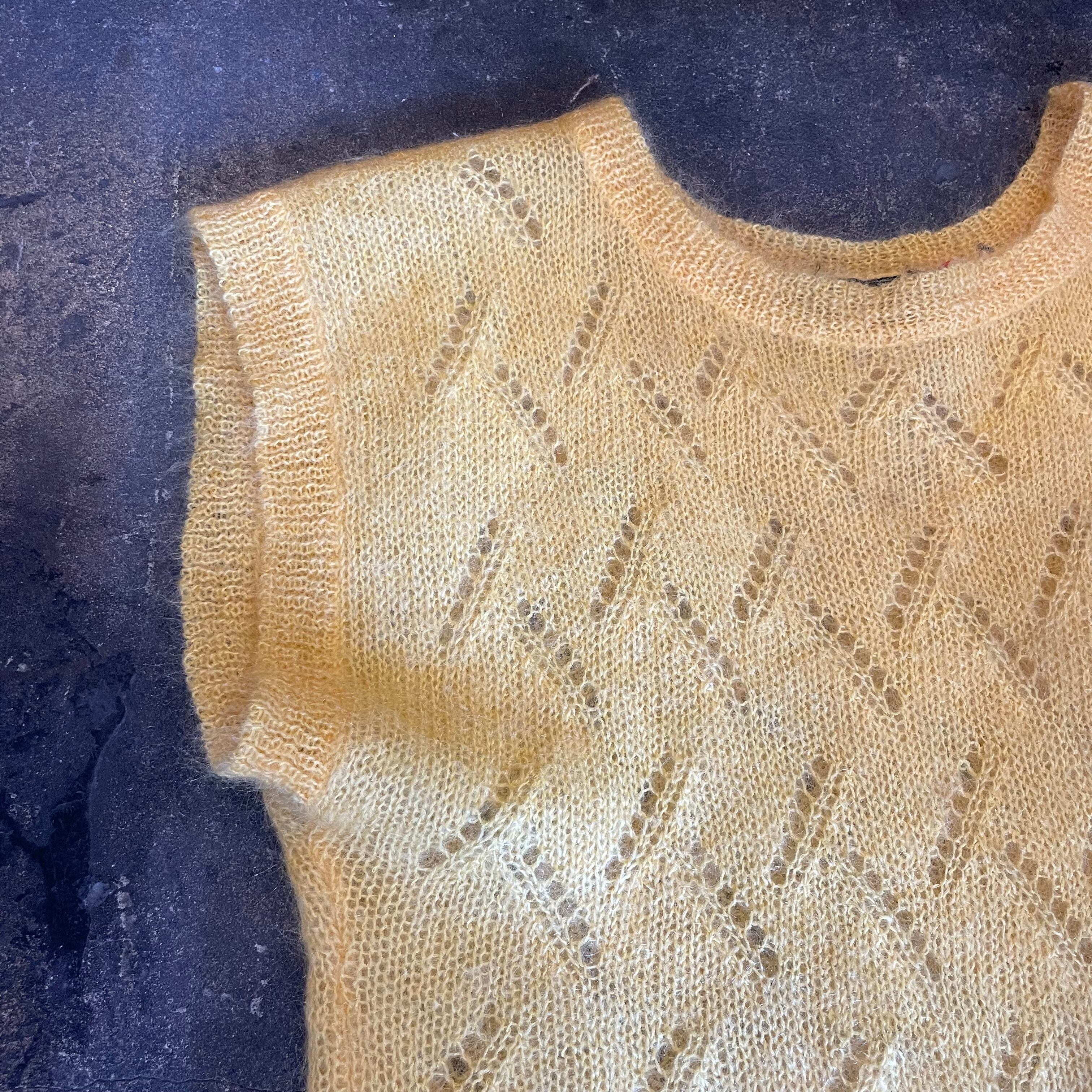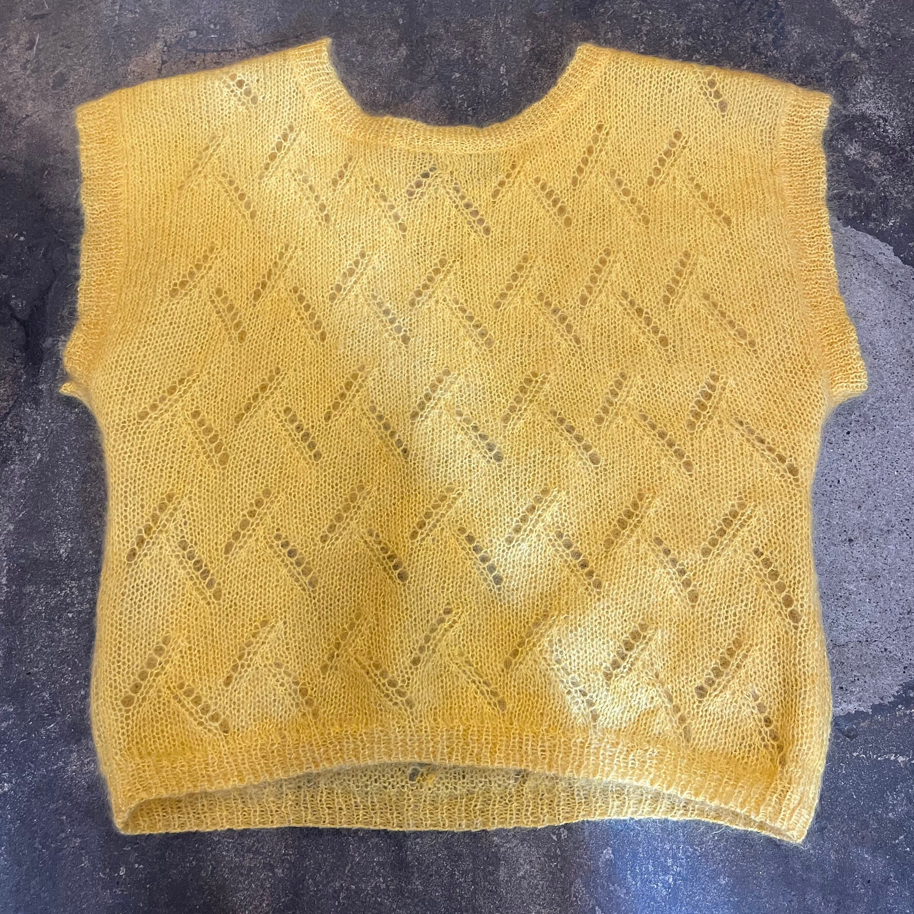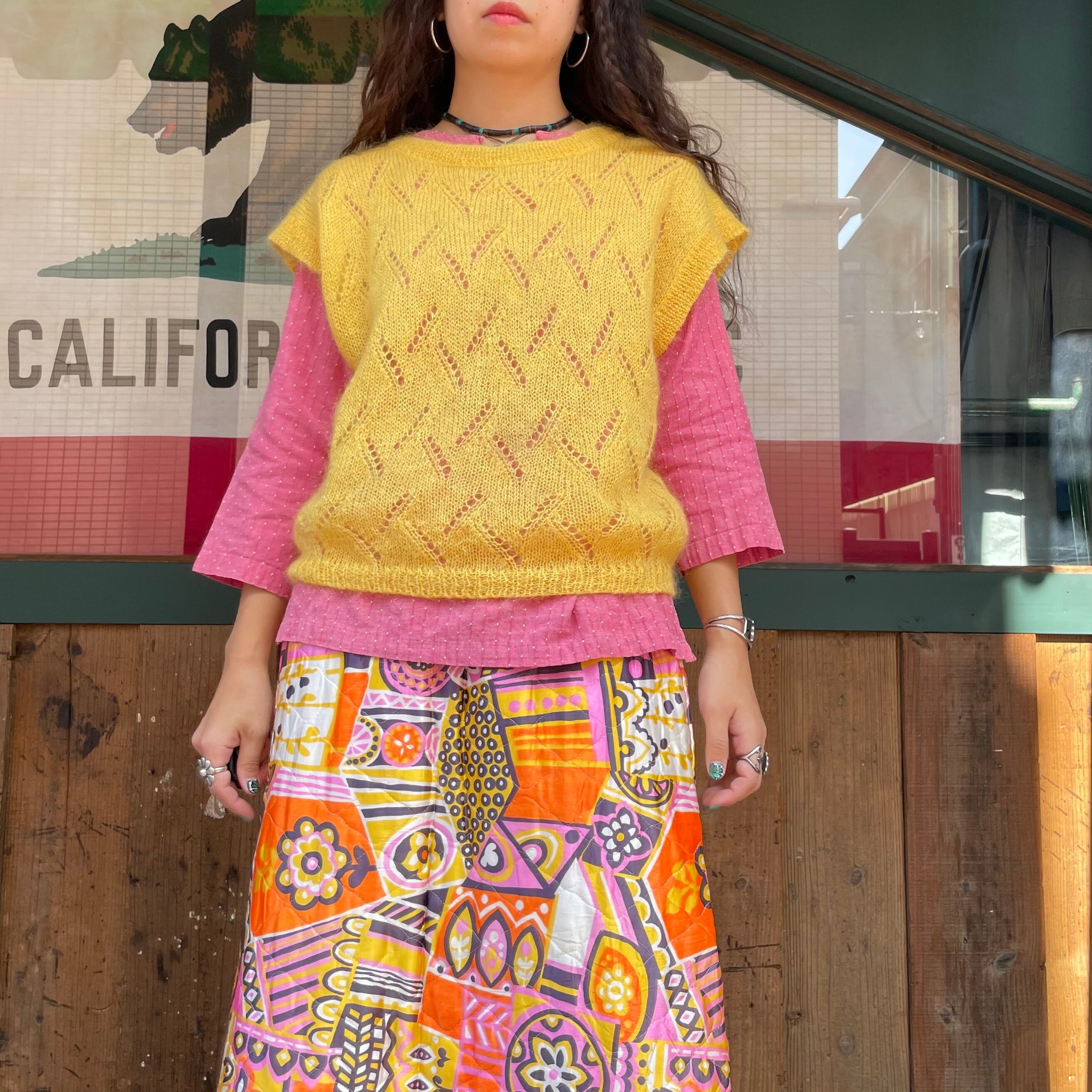 華やかな黄色がコーディネートを明るくしてくれるニットベストです。