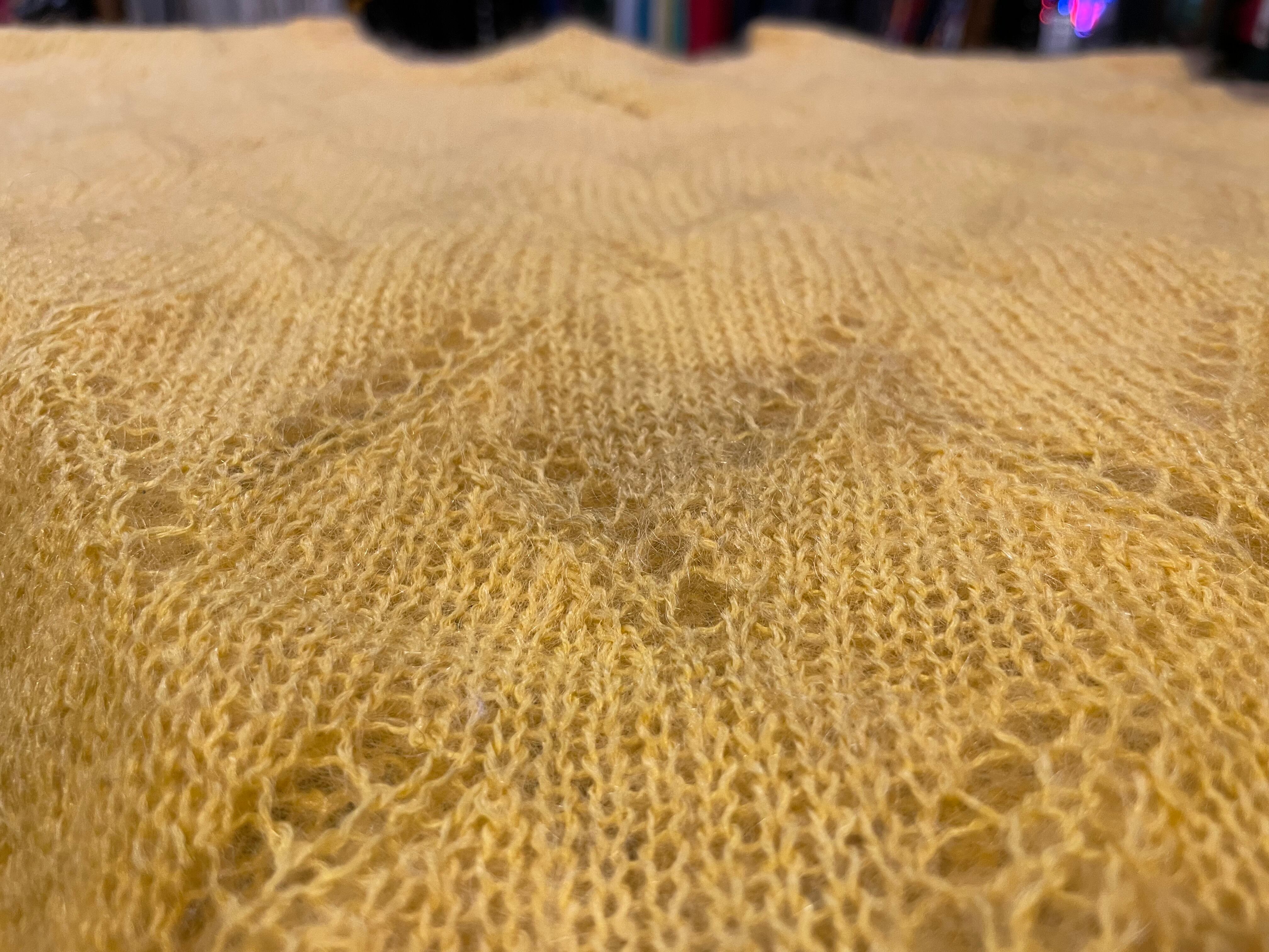 モヘア混で薄くて軽くて暖かく、毛足のあるほわほわ感がかわいいですね。