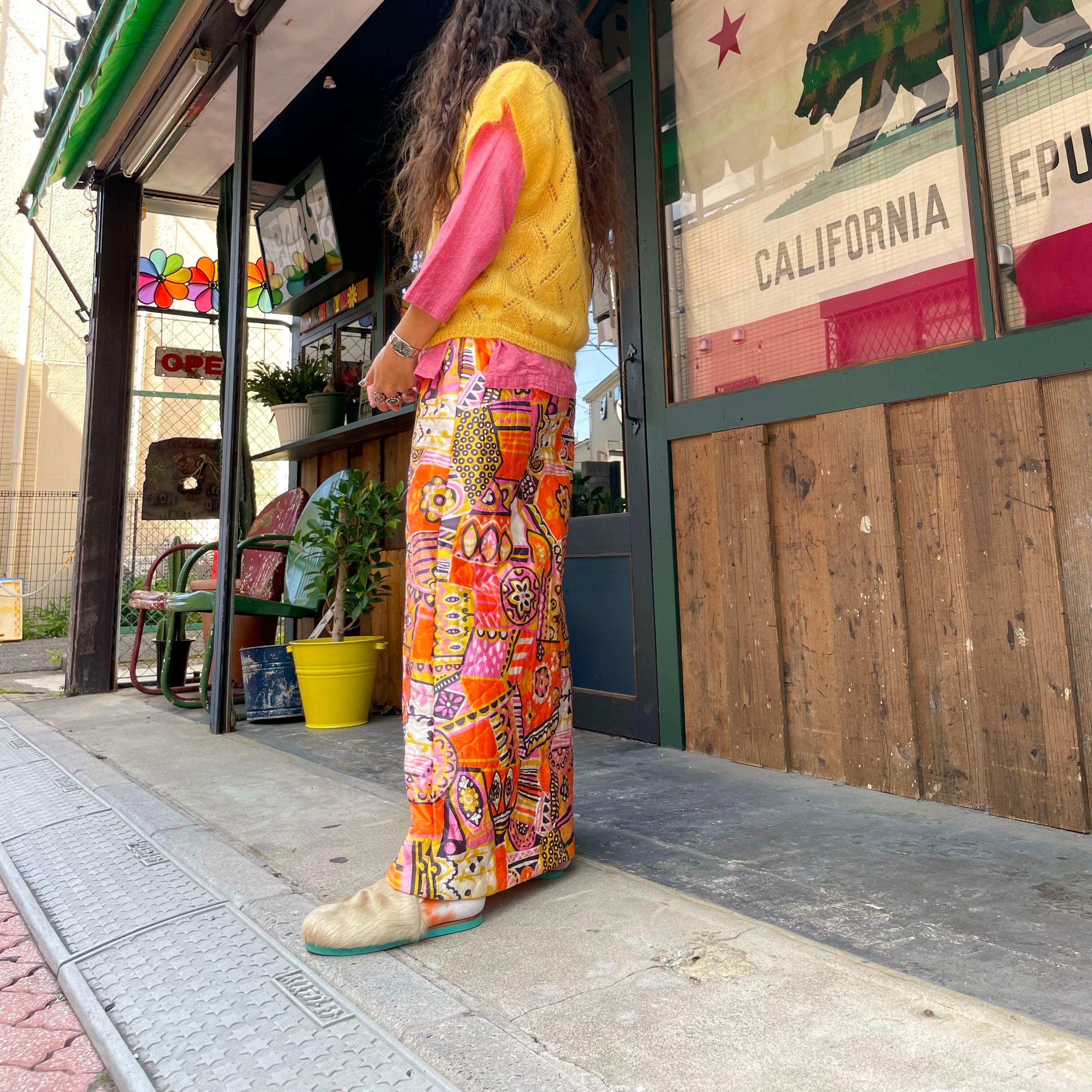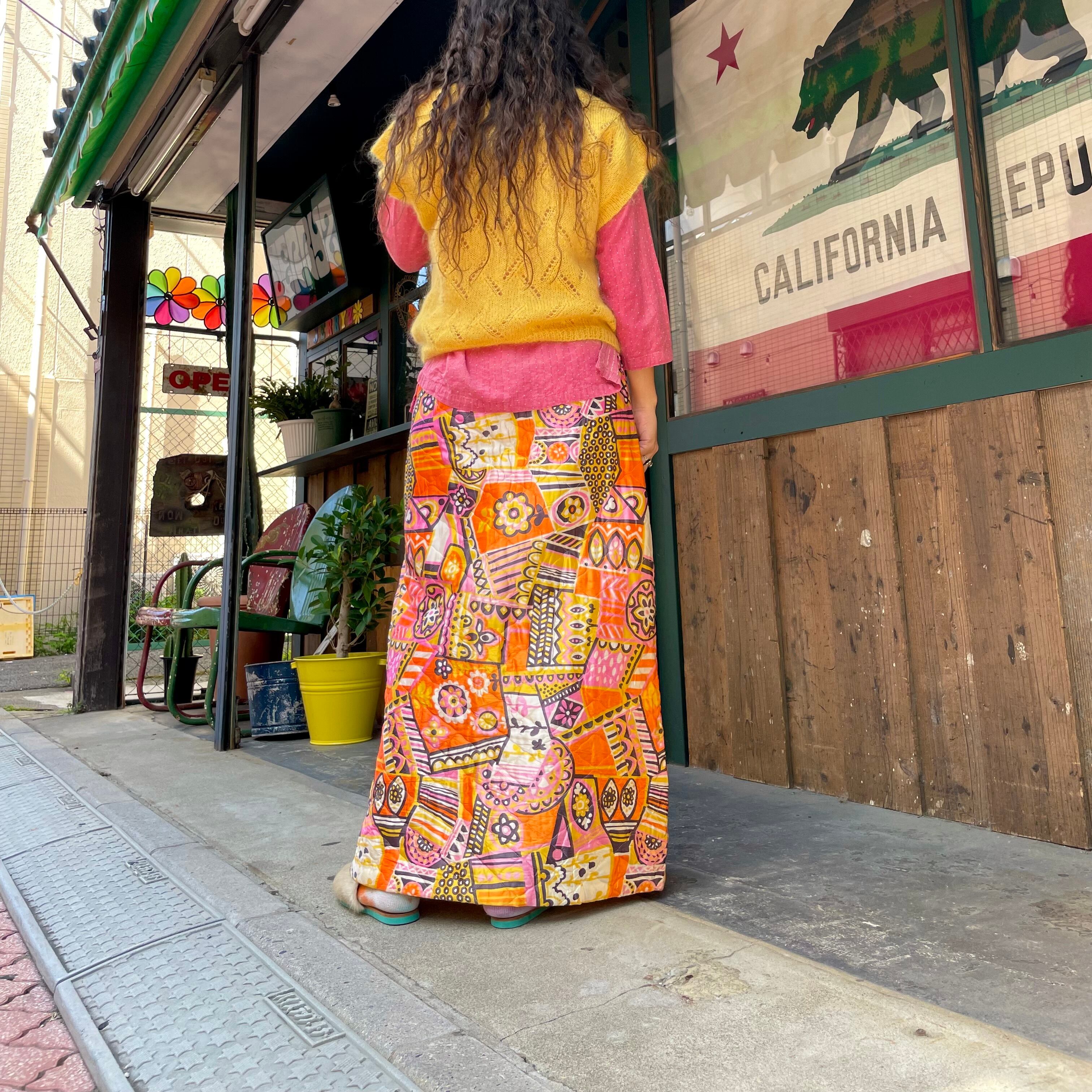 ハッピーカラーがかわいい70年代ごろのキルティングスカートです。