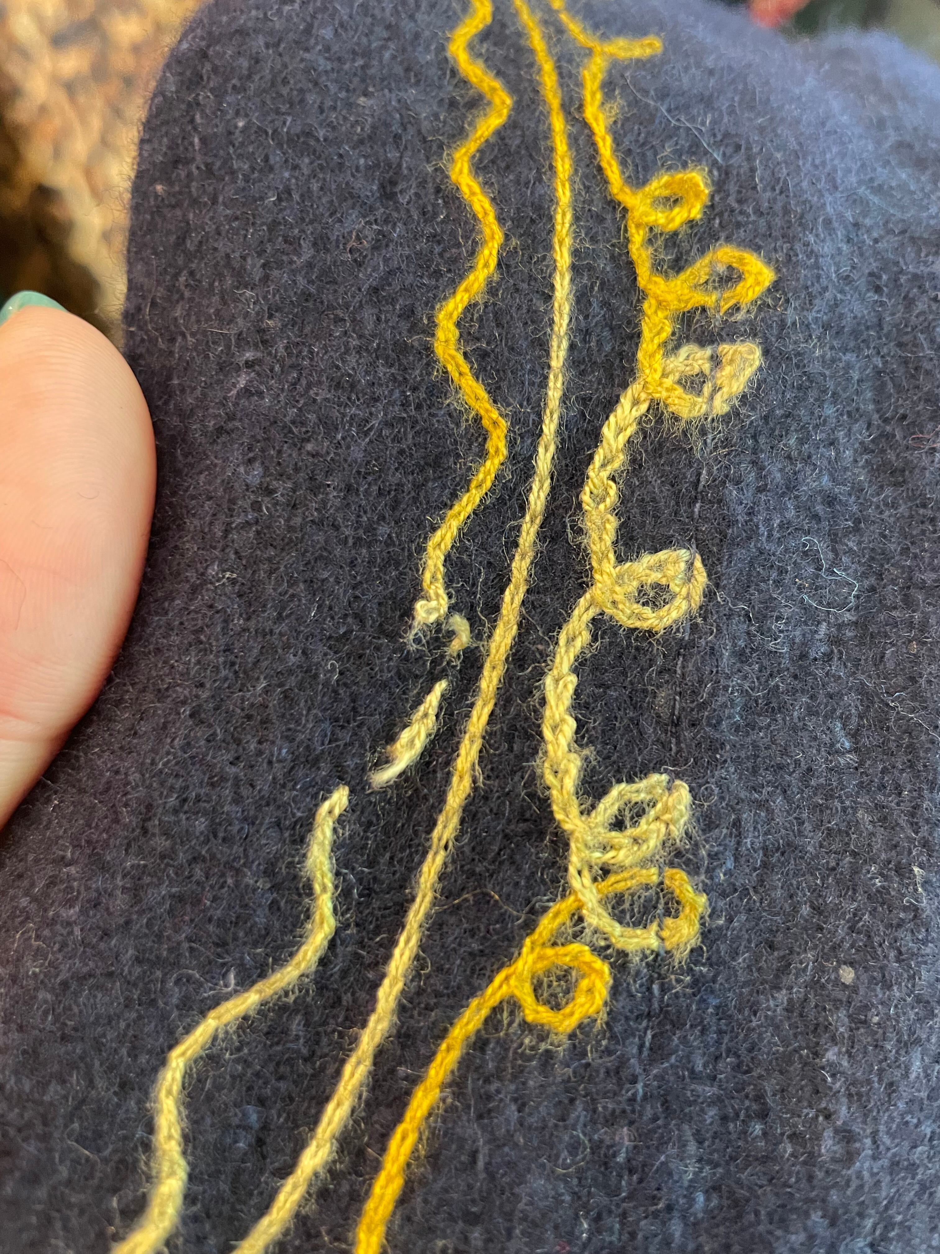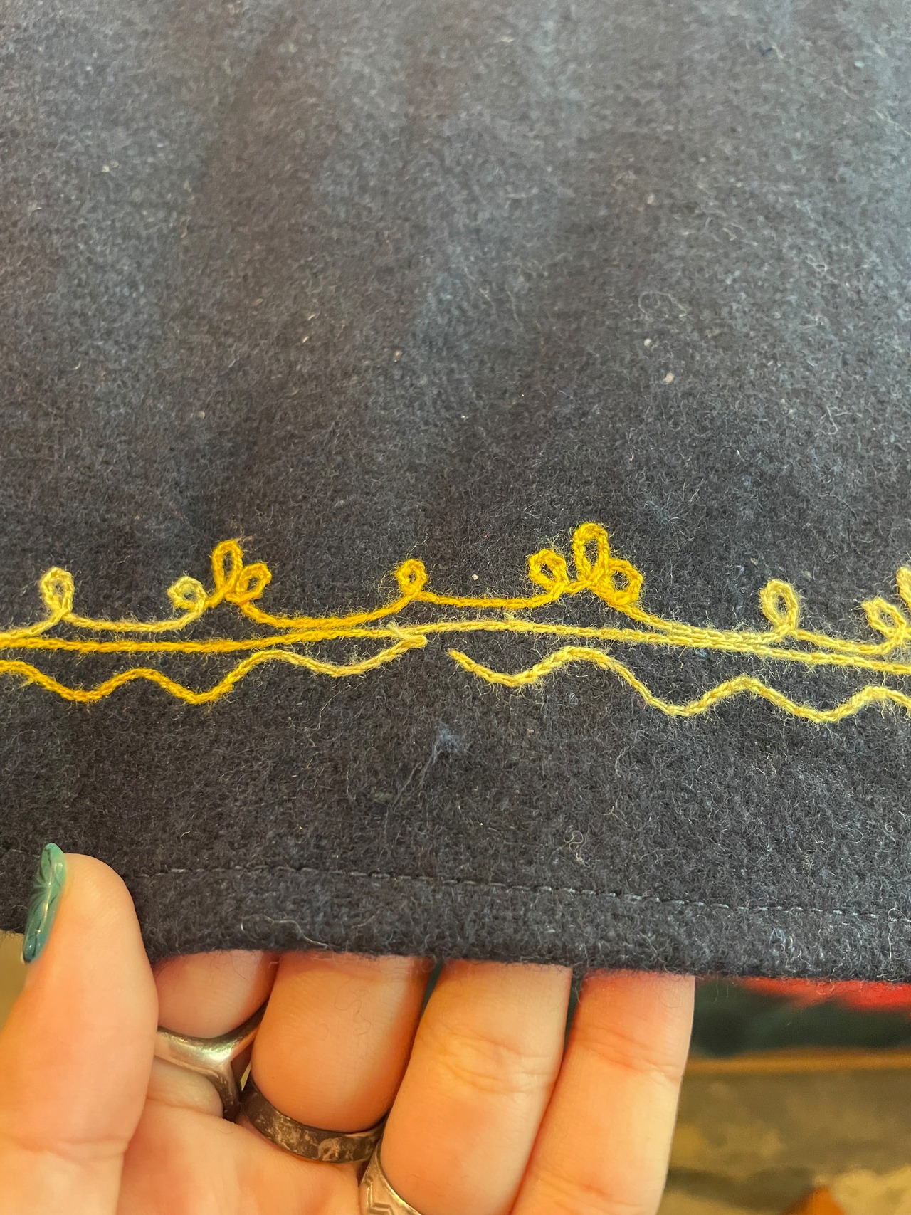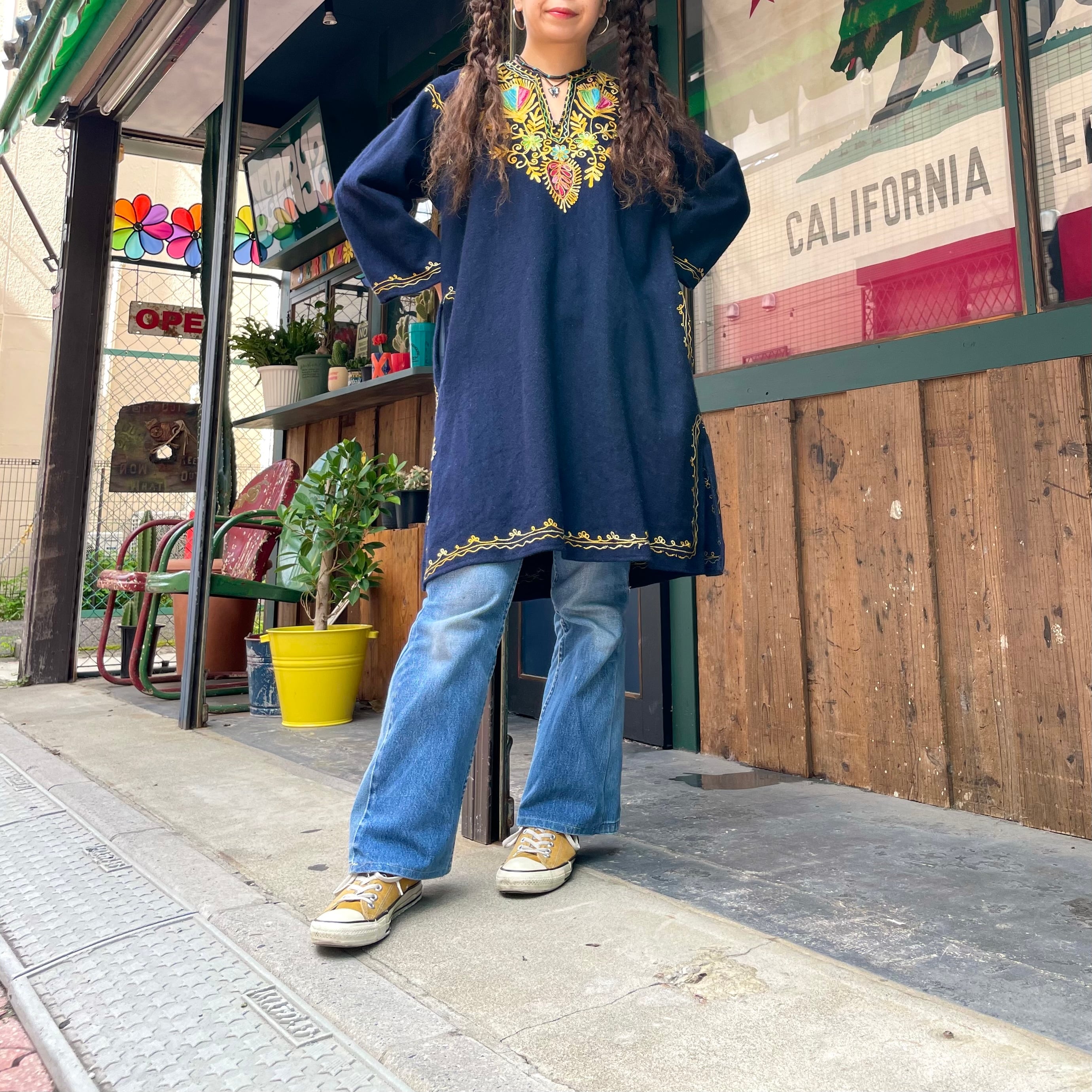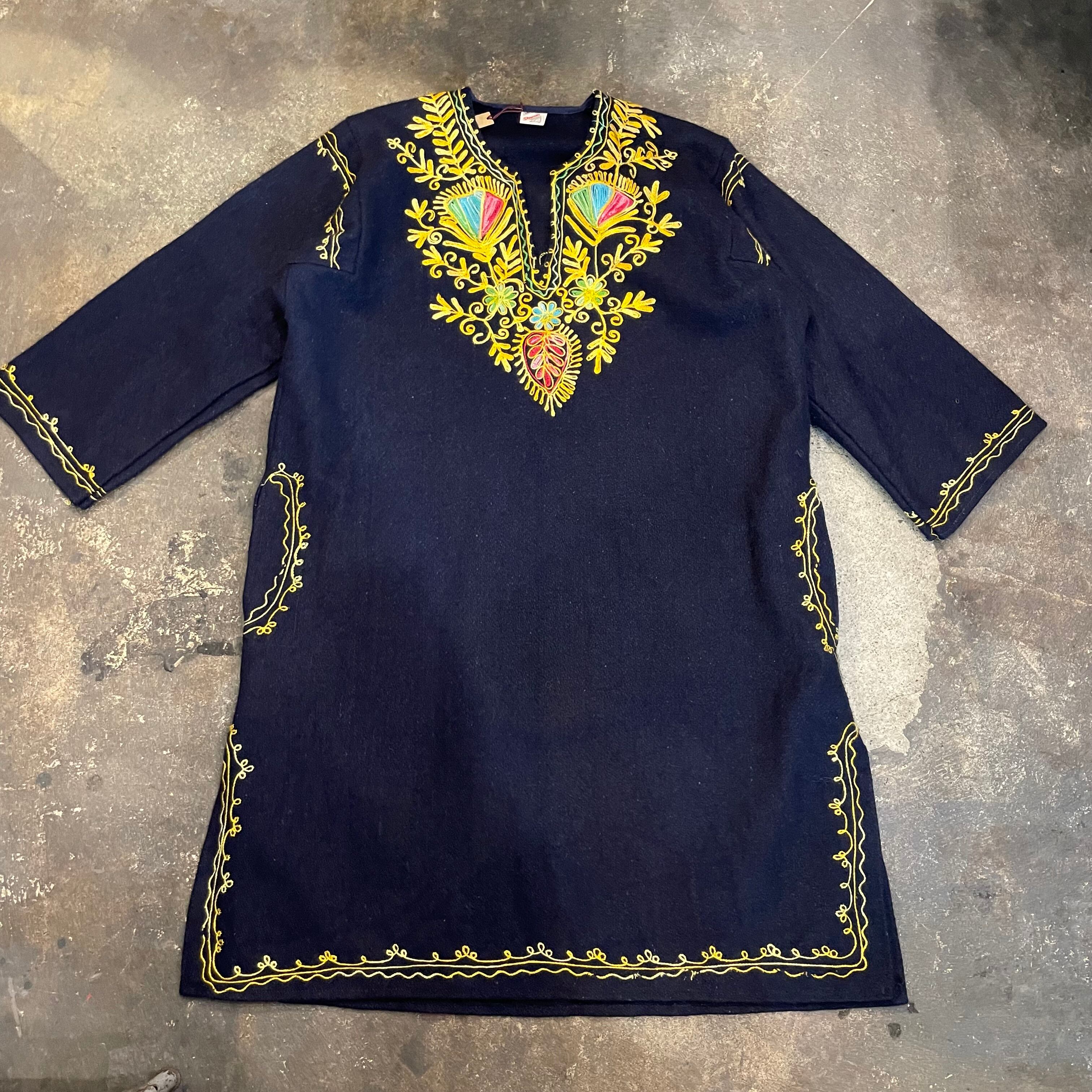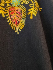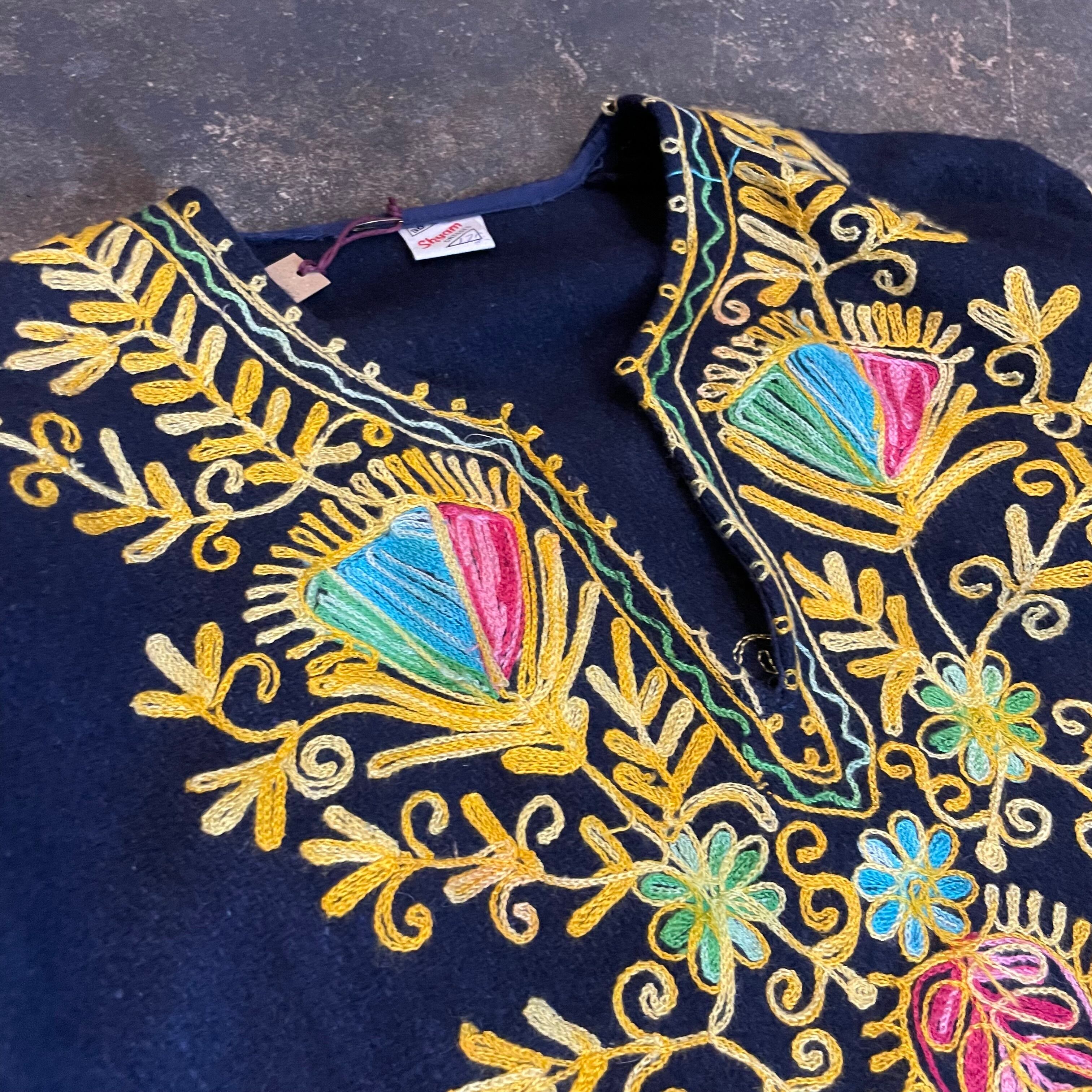 おそらくウール素材でしっかり厚みがあります。両サイドにポケットもあり、サイドのスリットやその周りの刺繍、背中にも刺繍があり細部まで素敵な一枚です。