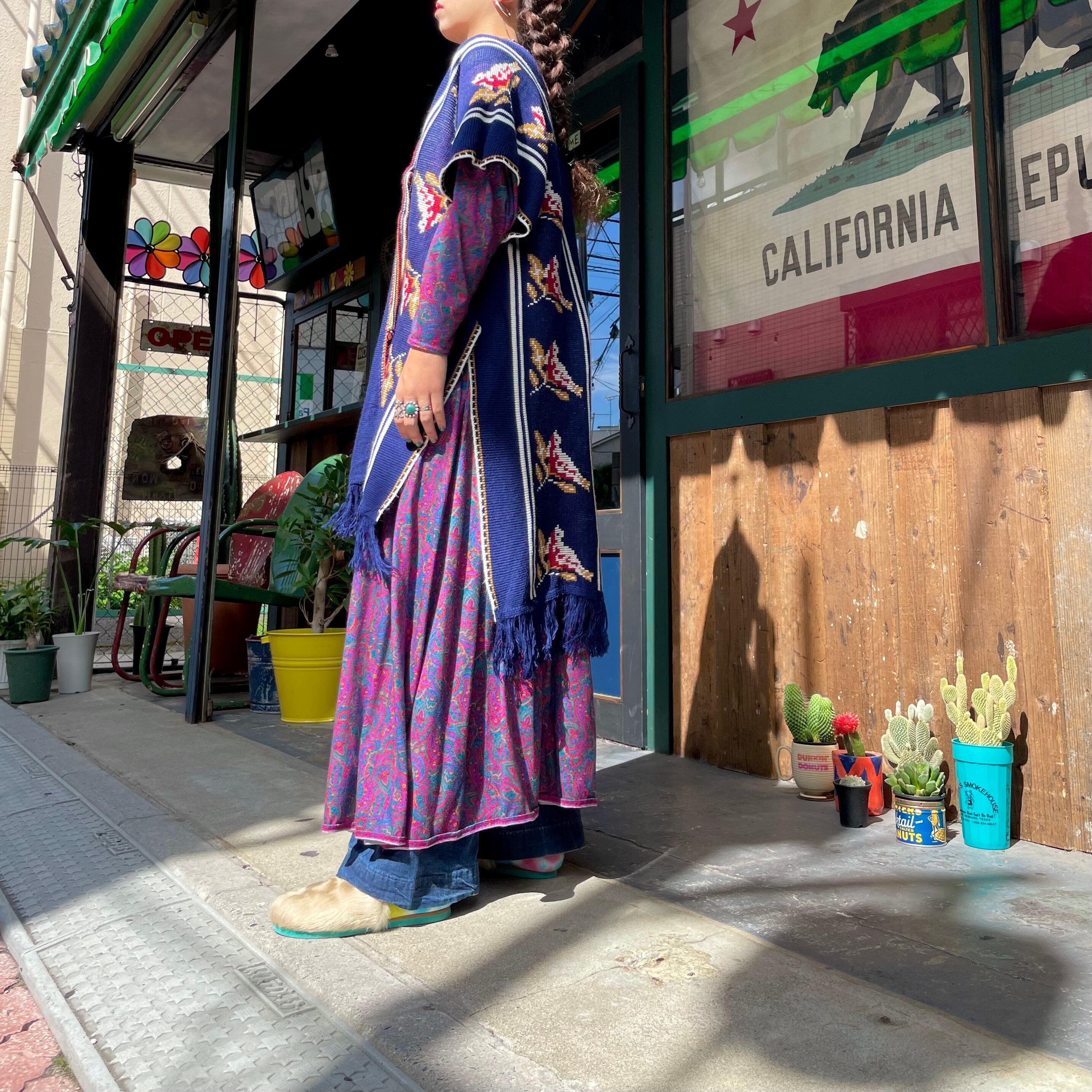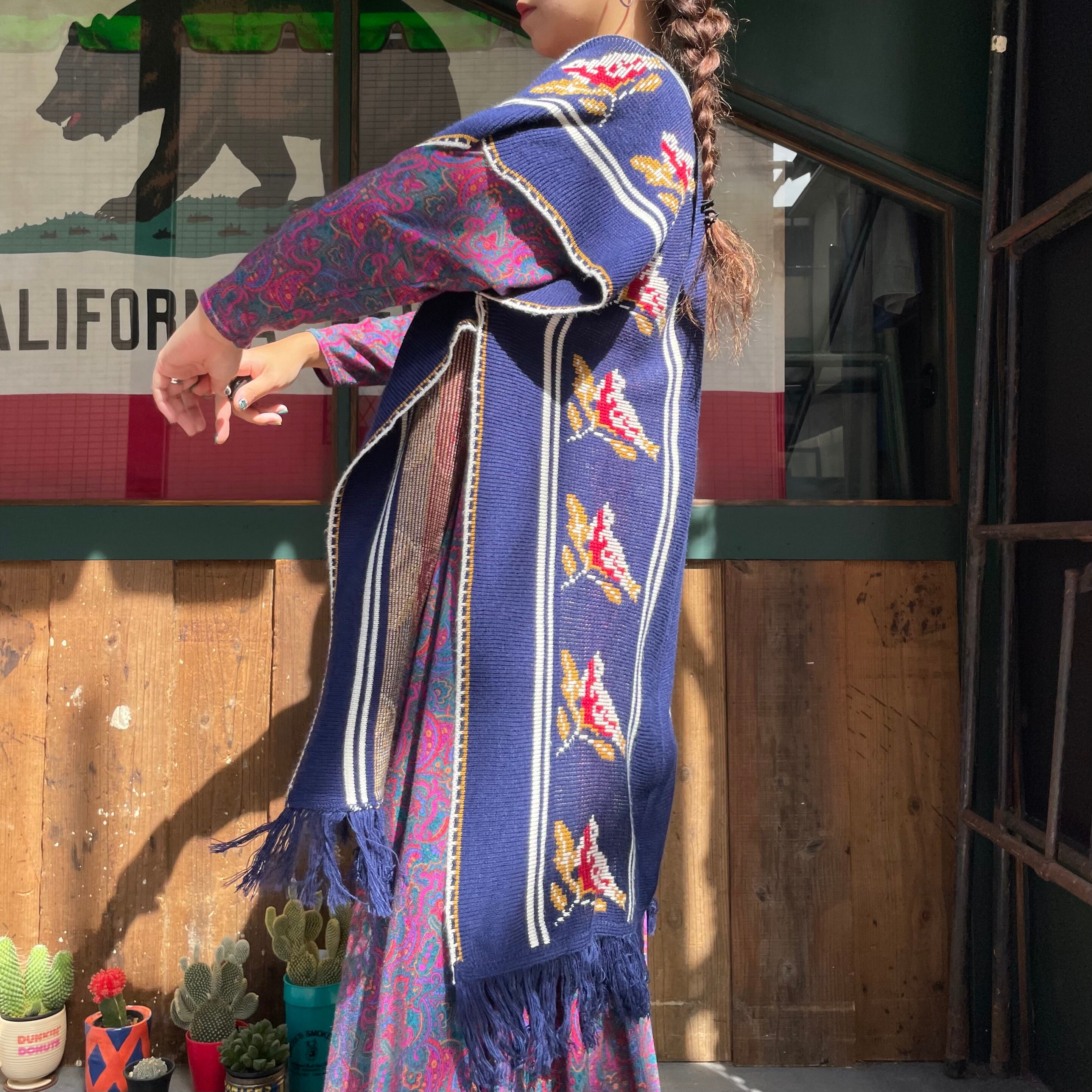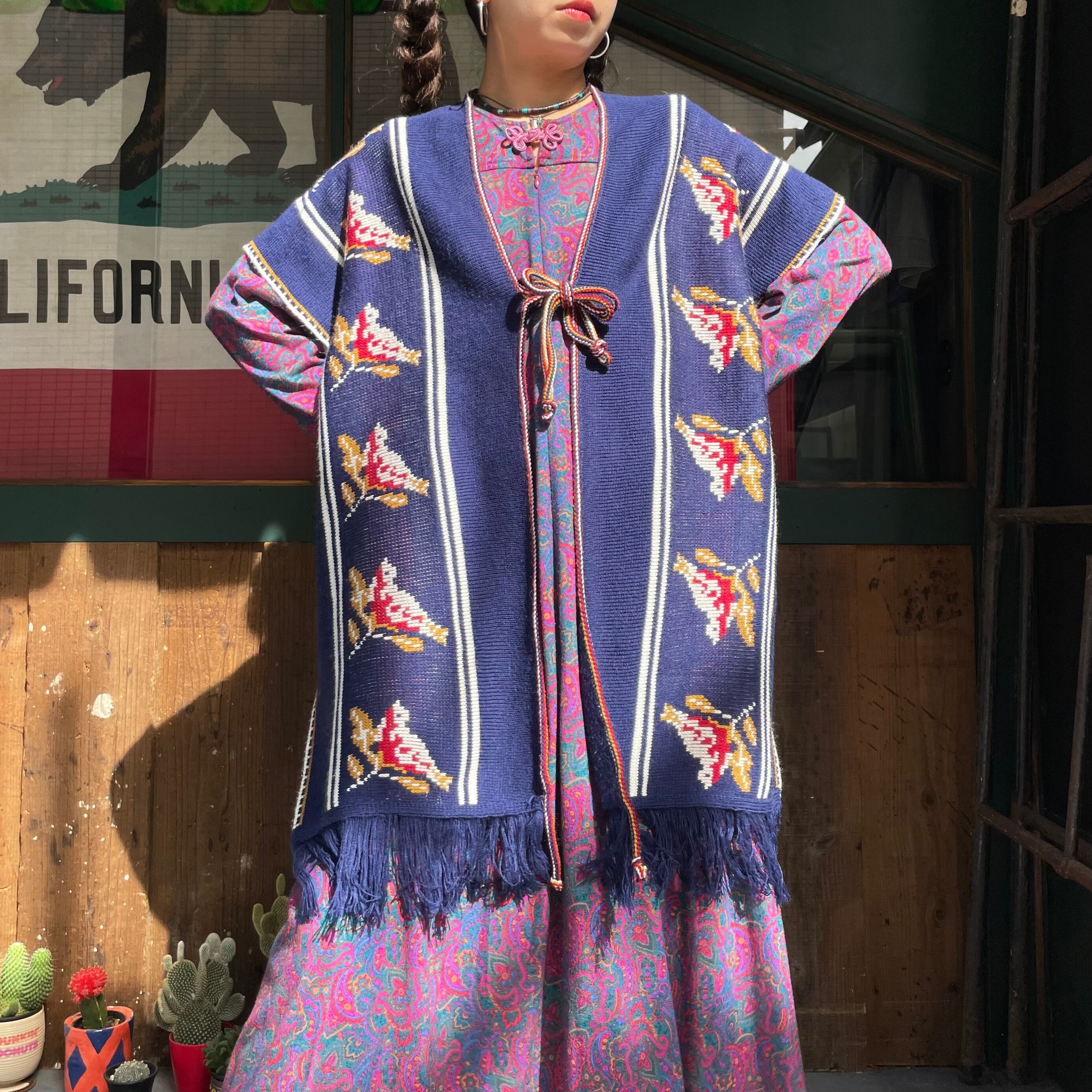 お花の模様が編まれたポンチョのような、ジレのようなベストです。
