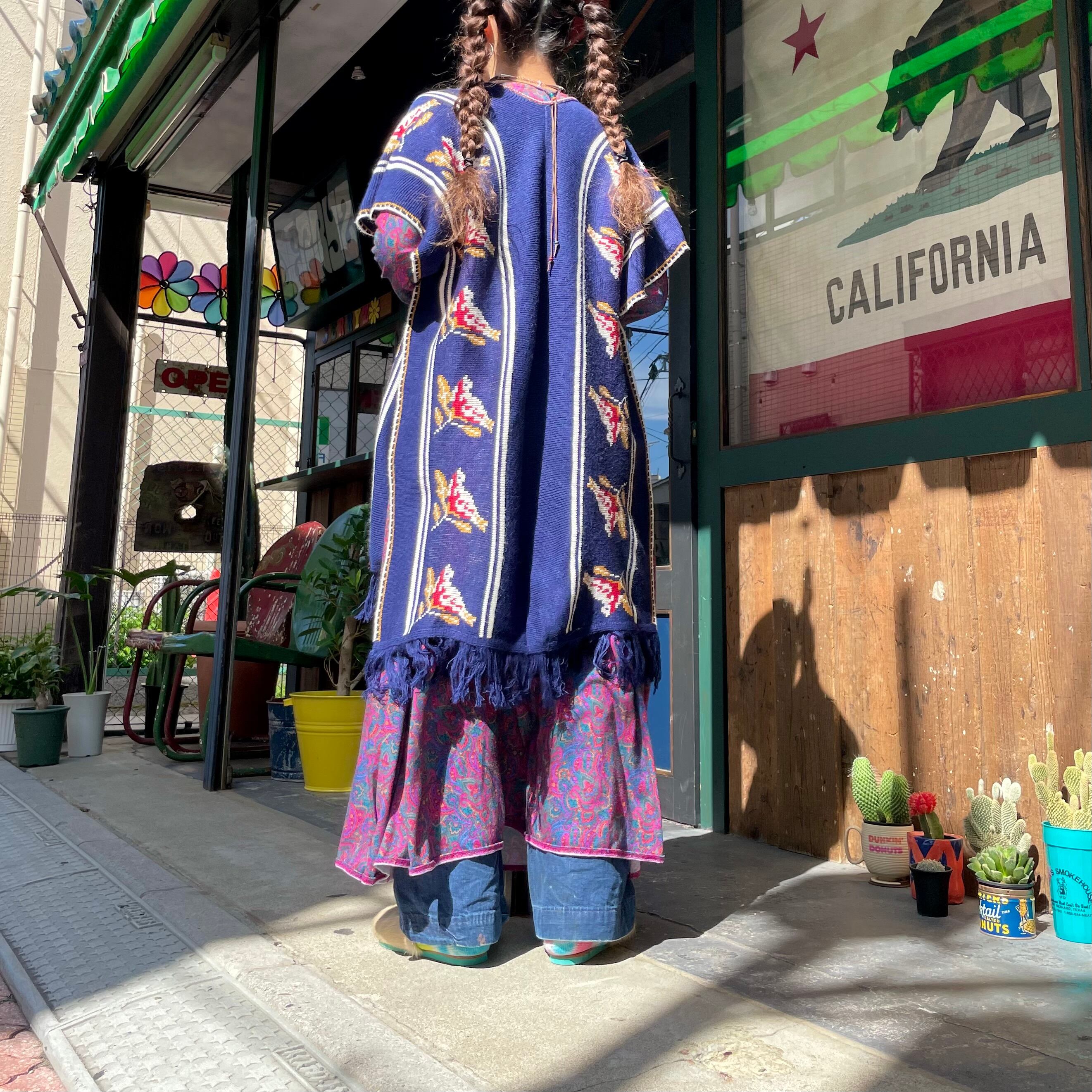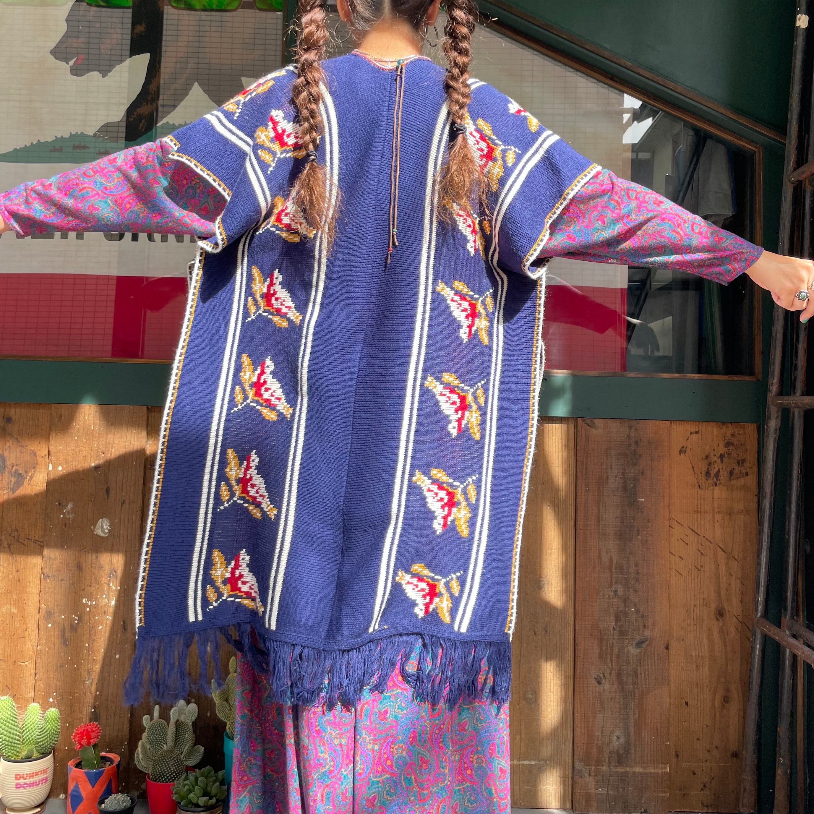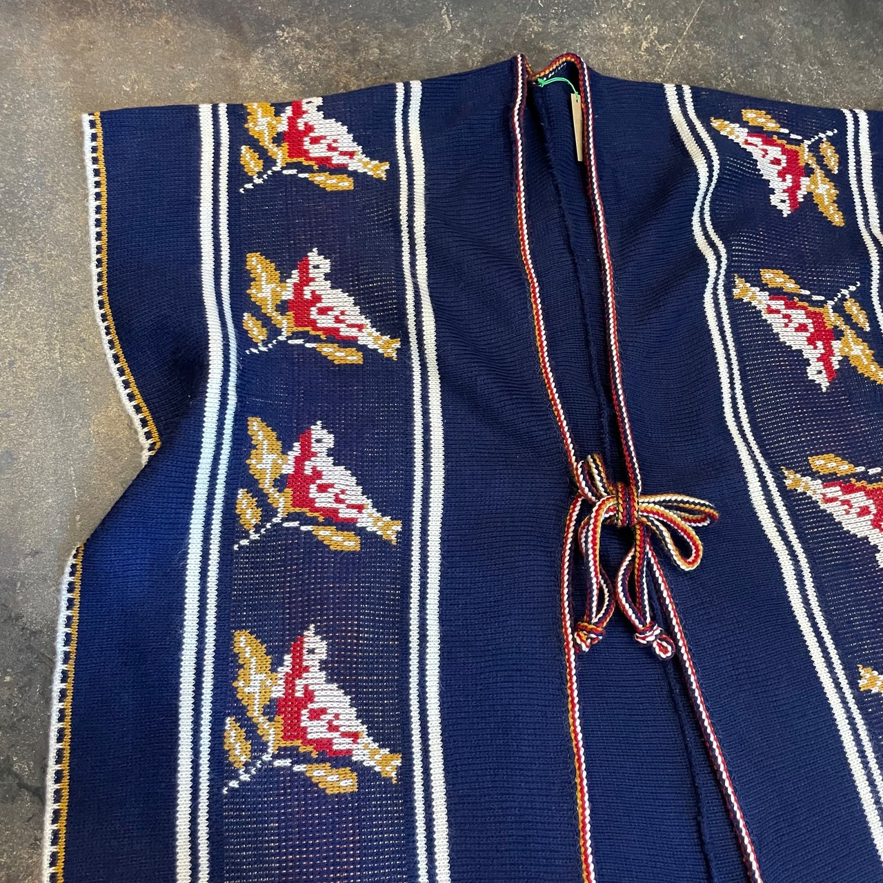 お花の模様が編まれたポンチョのような、ジレのようなベストです。