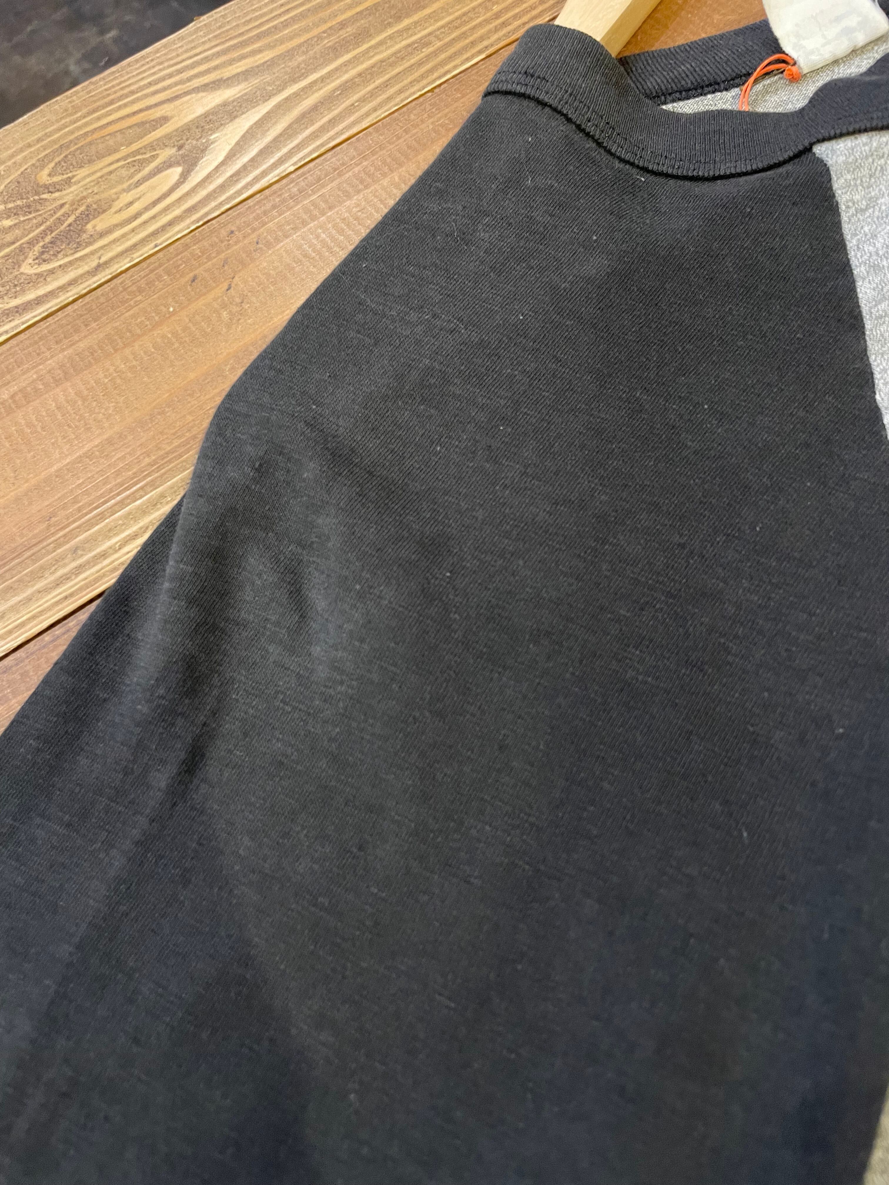一見何のプリントかわからないくらい薄くなっているトラや、黒のフェードした感じや塗料のついた袖口など雰囲気があってかっこいい一枚です。