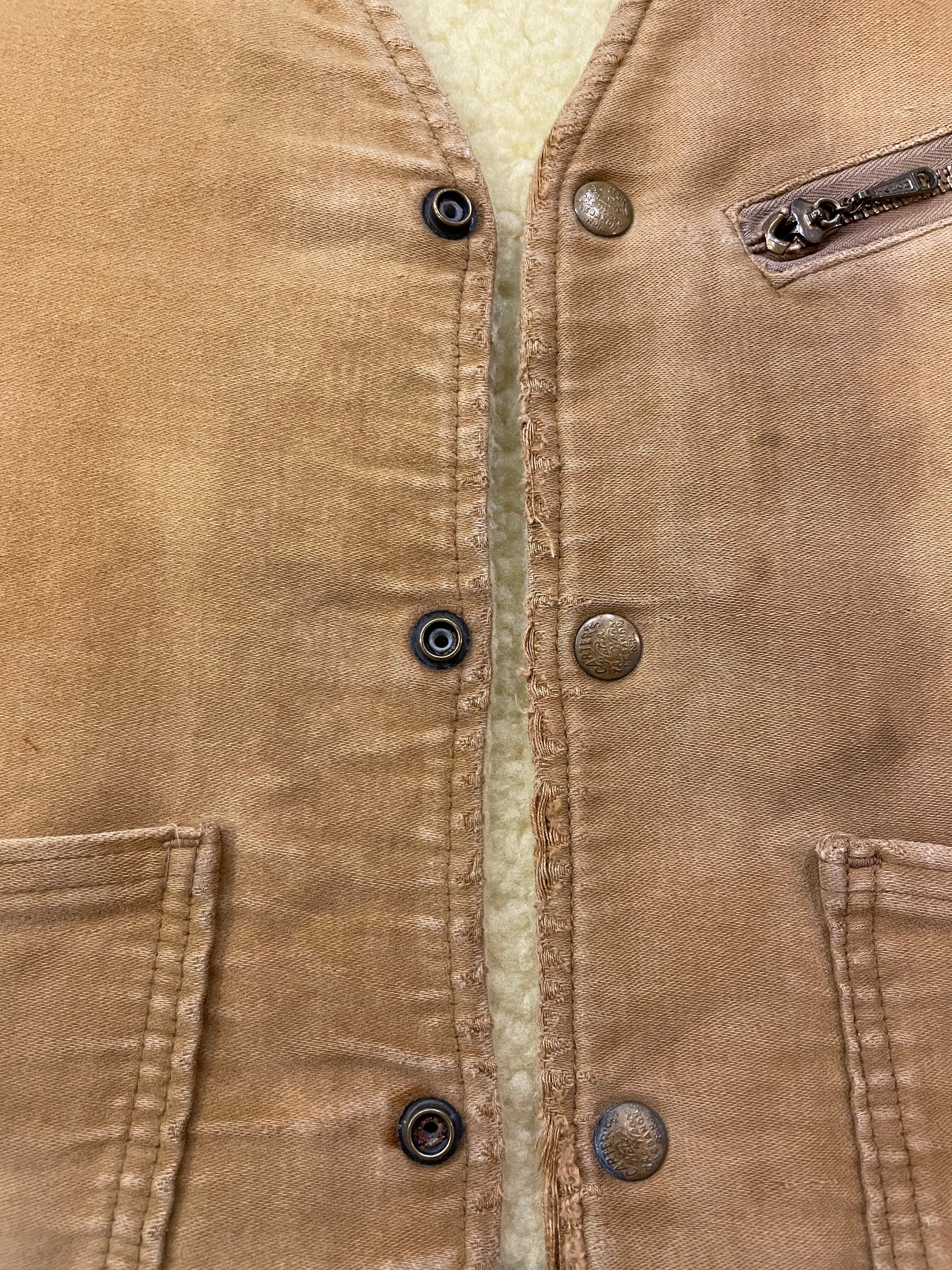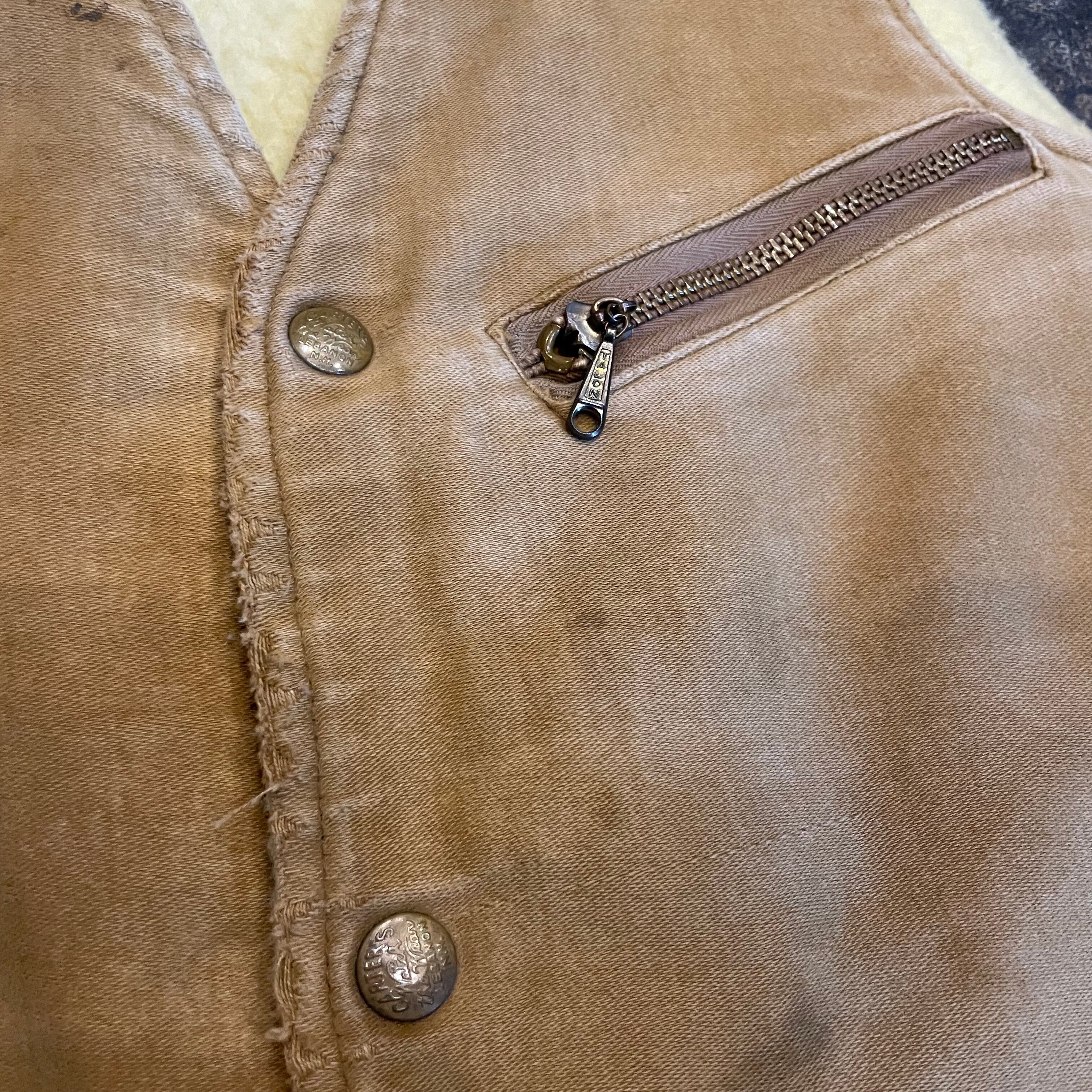 ふちや脇等にダメージ、シミや色褪せ、ボアの擦れ等かなりダメージのある商品ですので古着にご理解のある方のご購入をお願い致します。