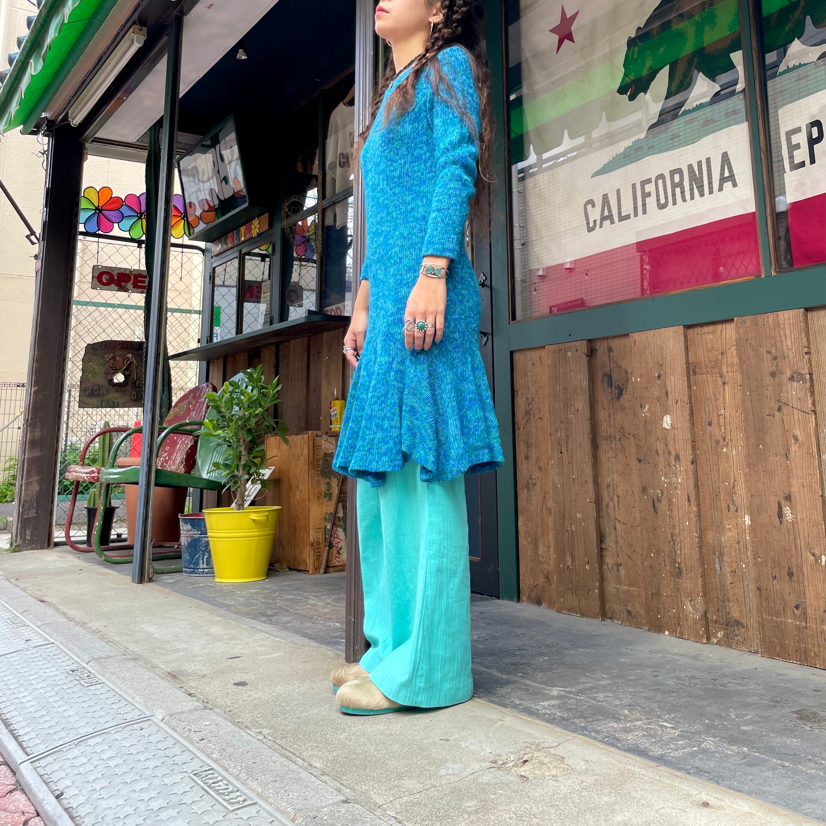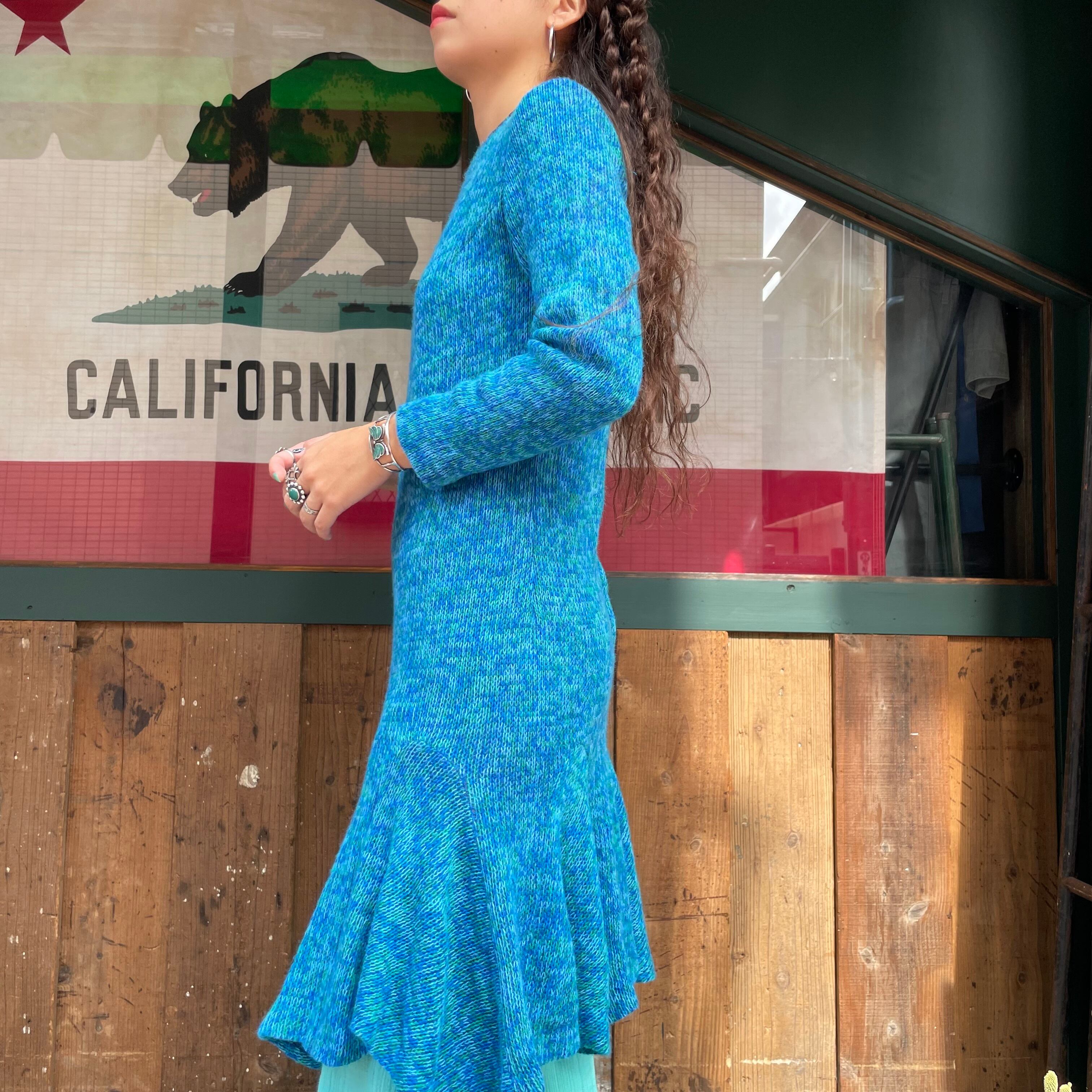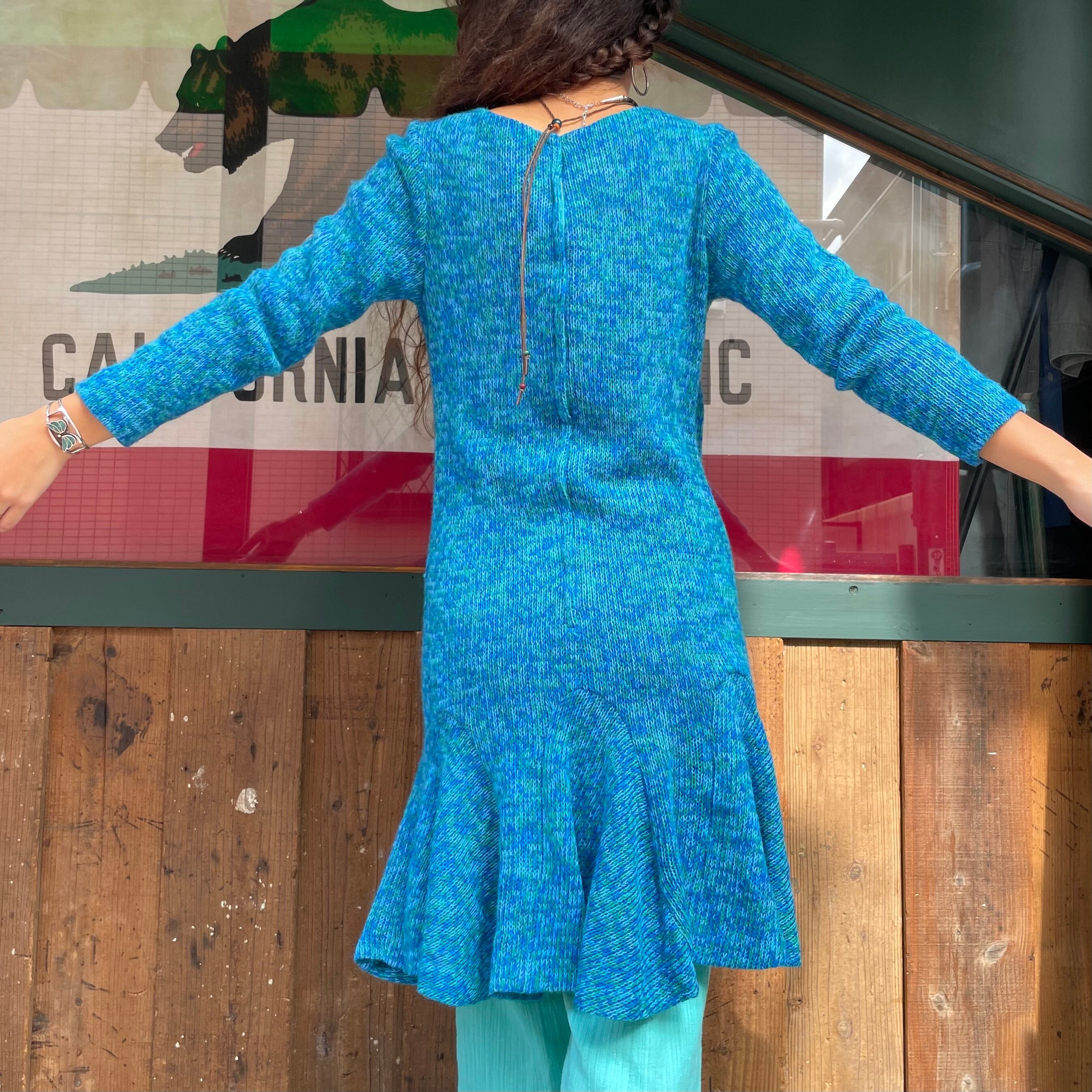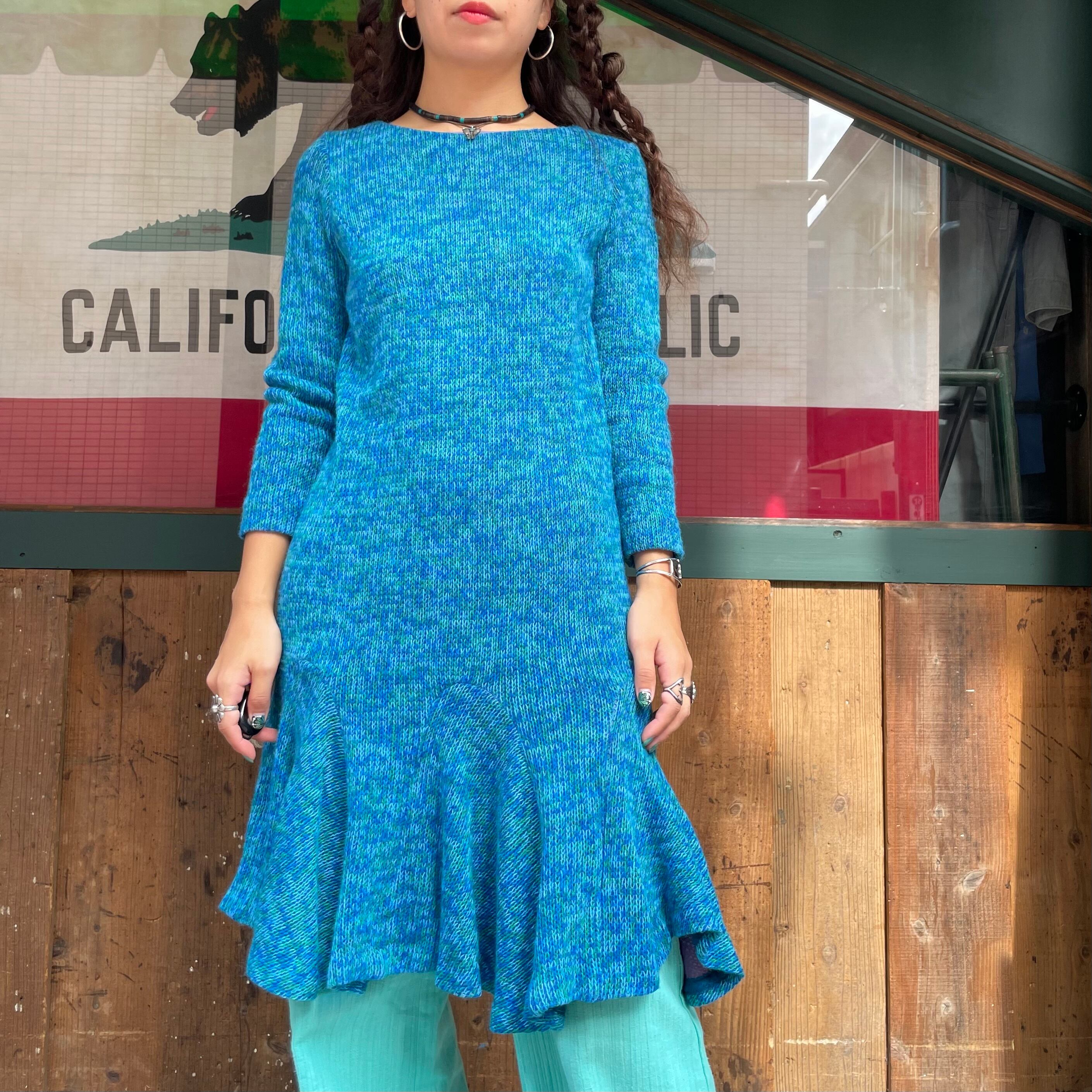青×緑なミックスカラーの色味とシルエットがとてもかわいいニットワンピースです。