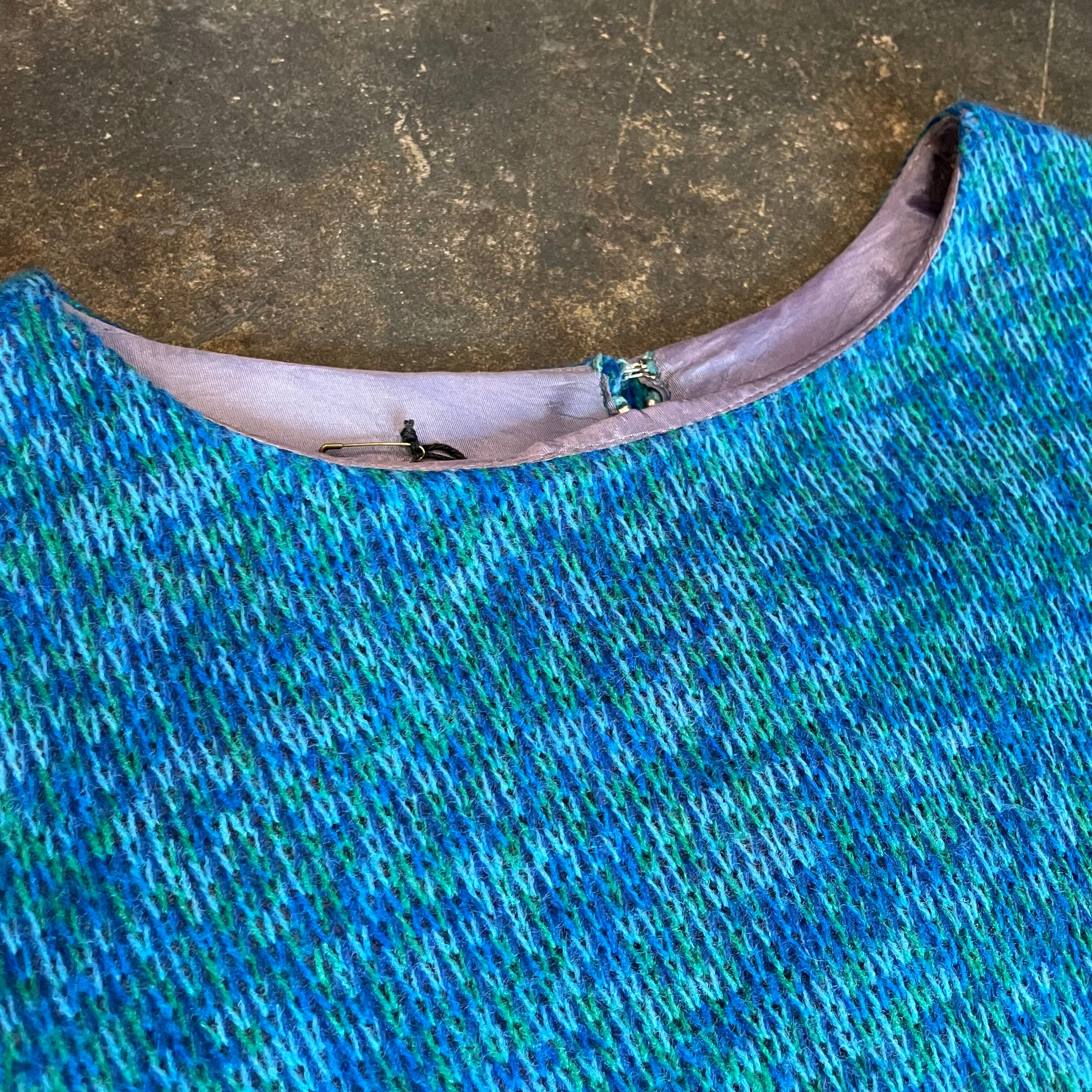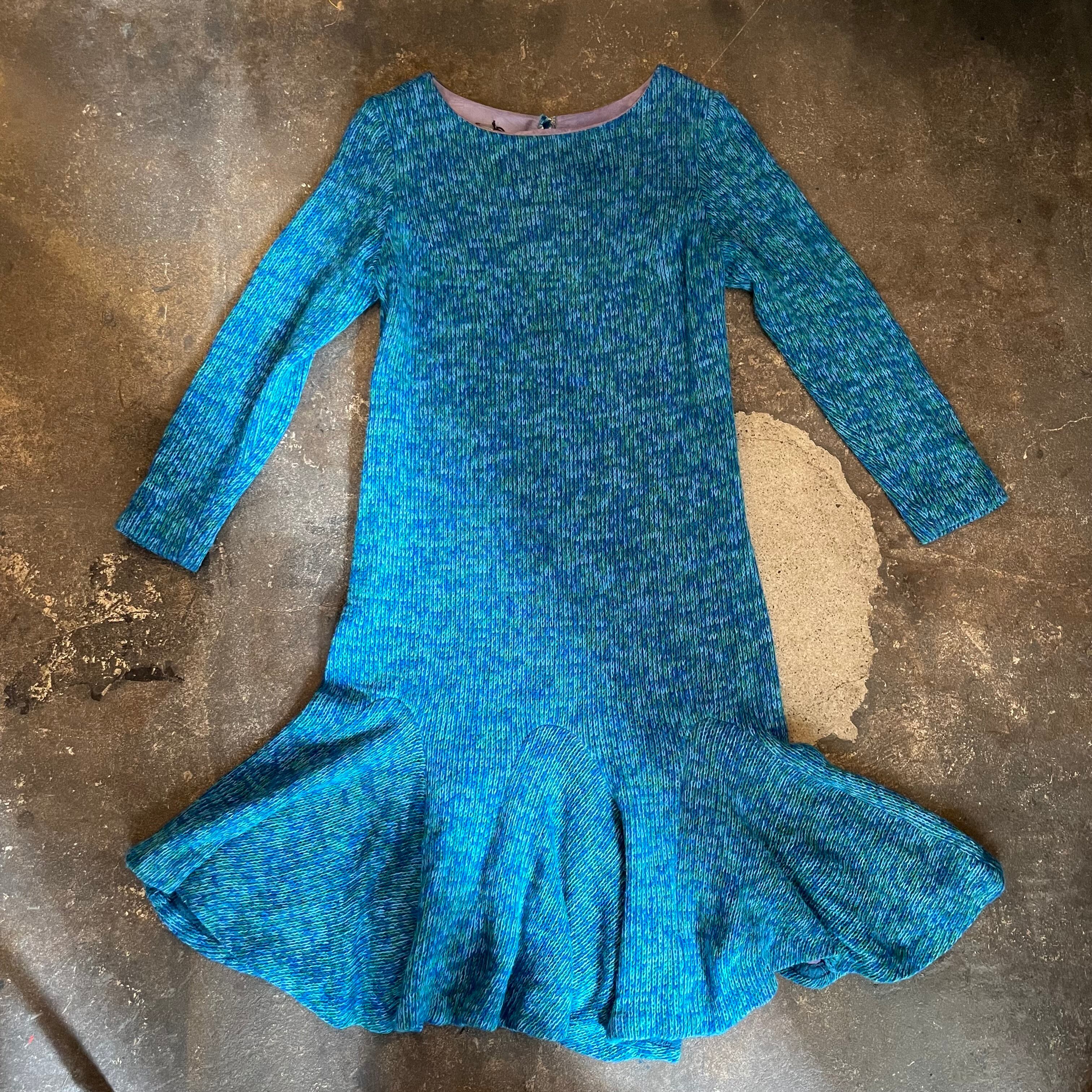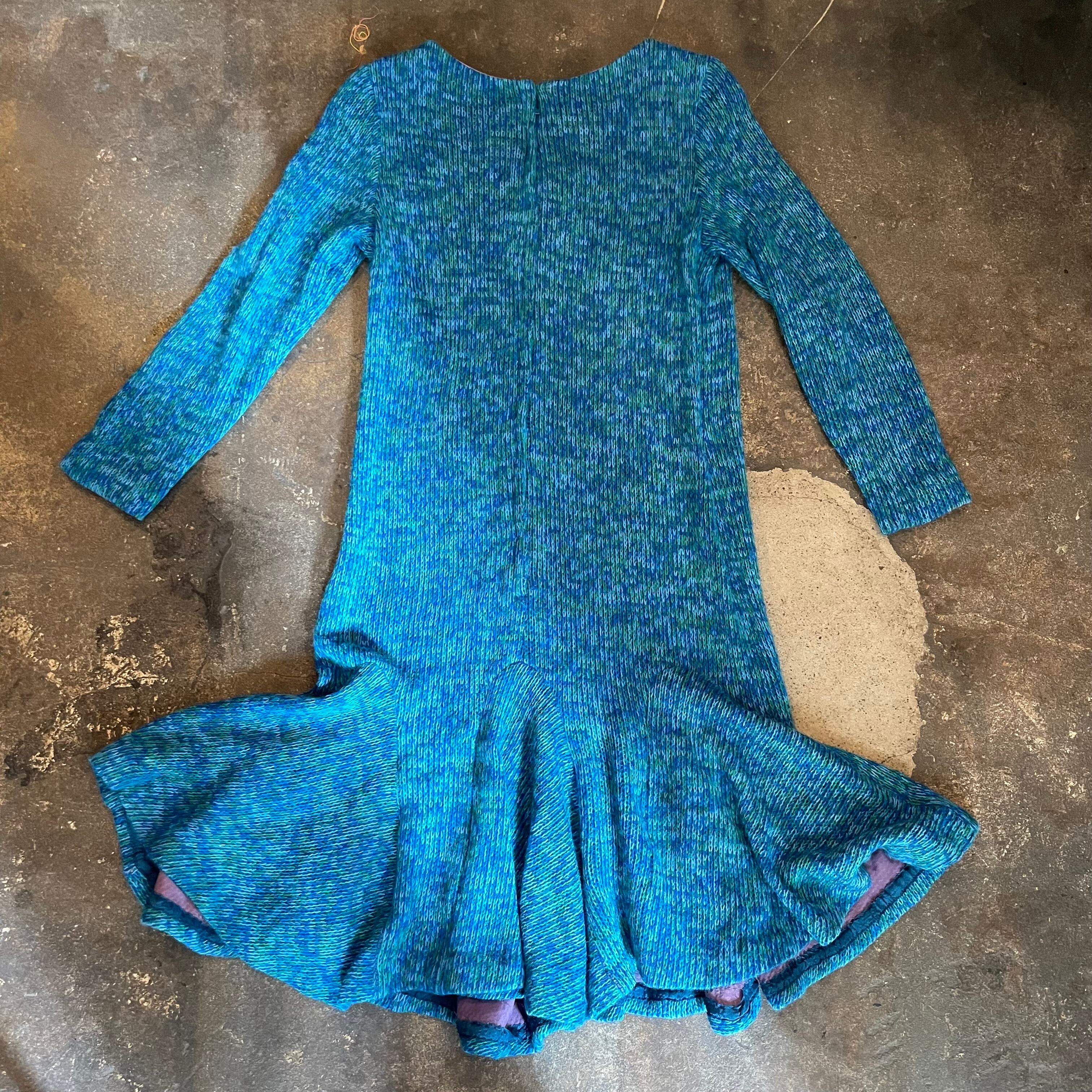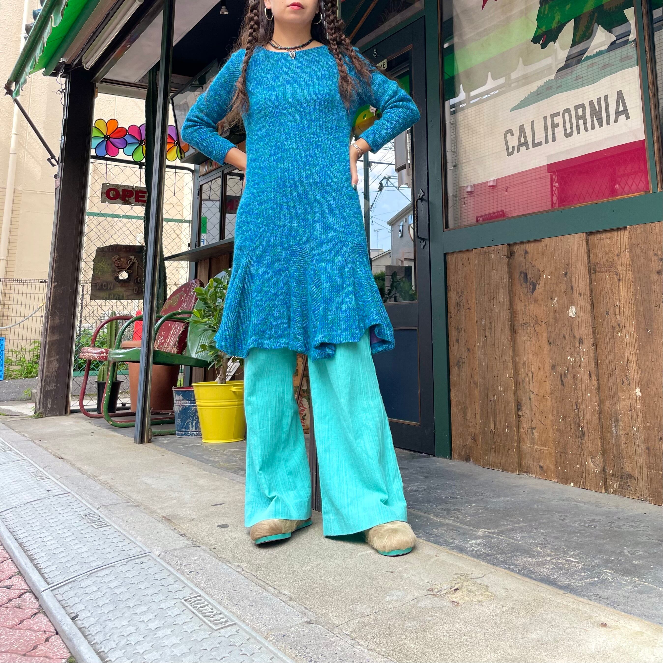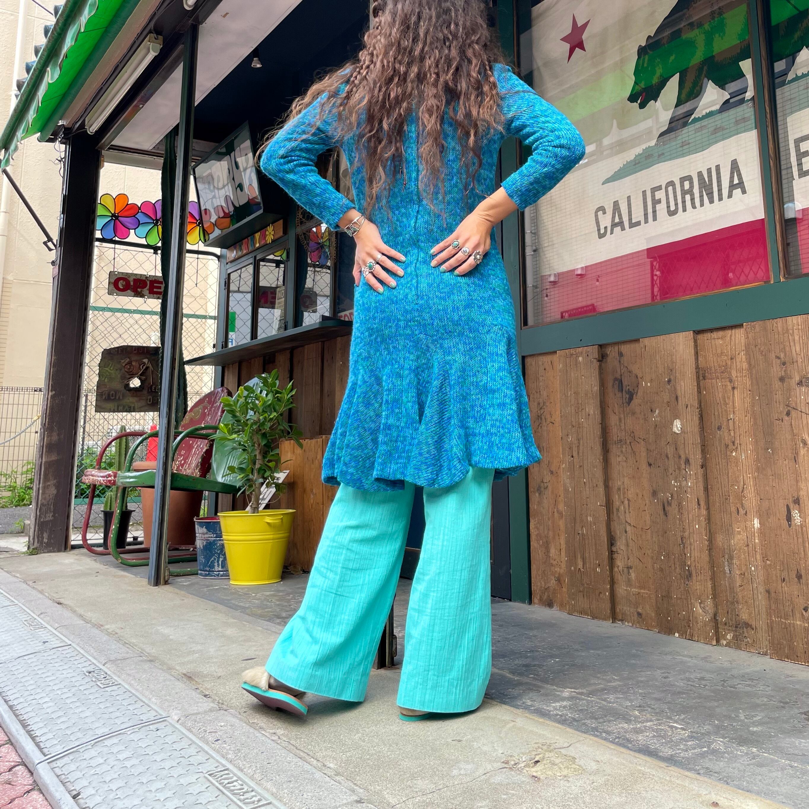 青×緑なミックスカラーの色味とシルエットがとてもかわいいニットワンピースです。