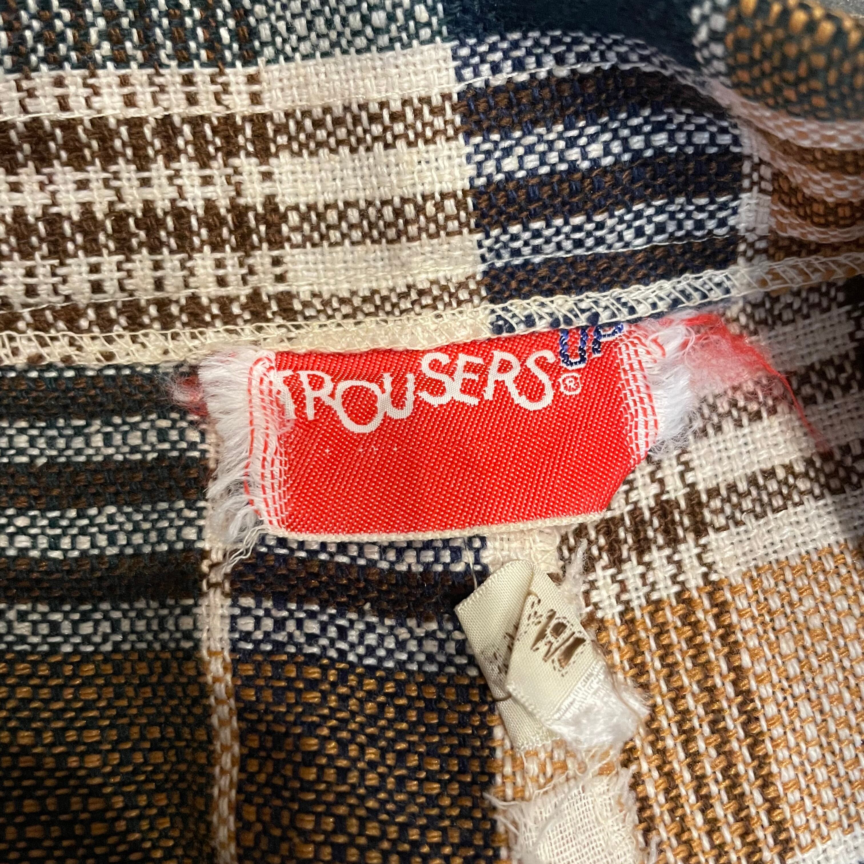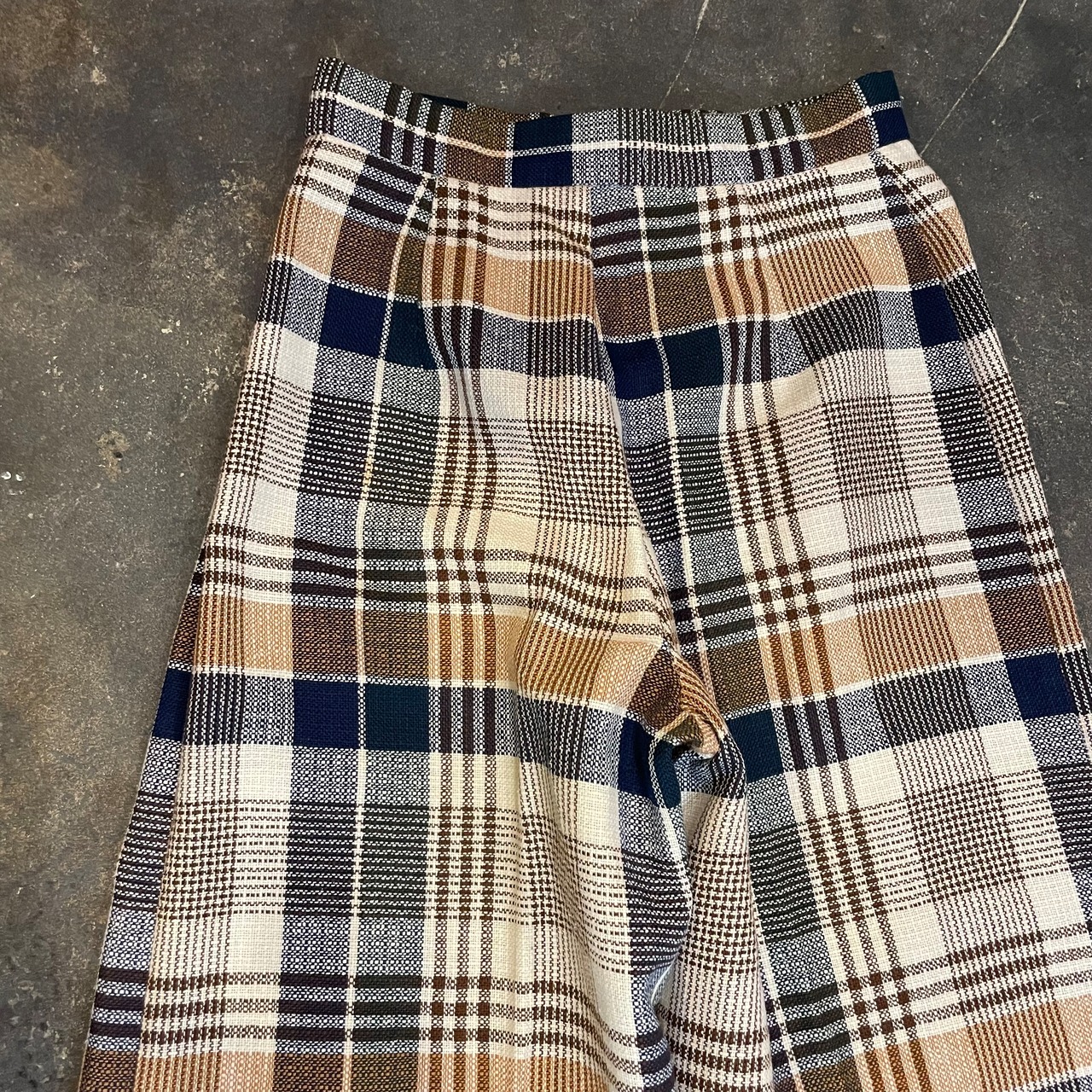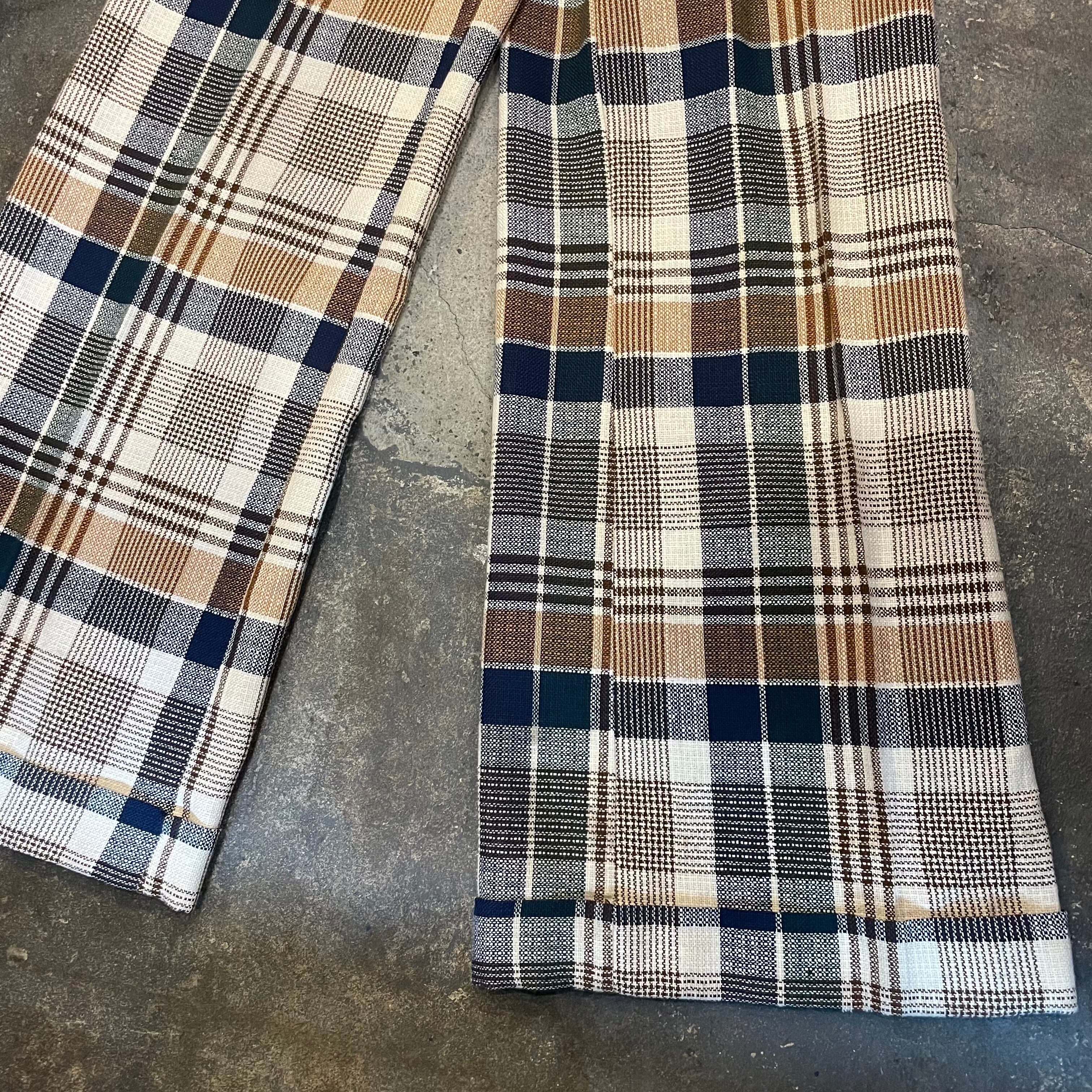 シルエットがとてもかっこいいバギーパンツです。落ち着いた色味のチェック柄で主張しすぎず、合わせやすい一枚です。
