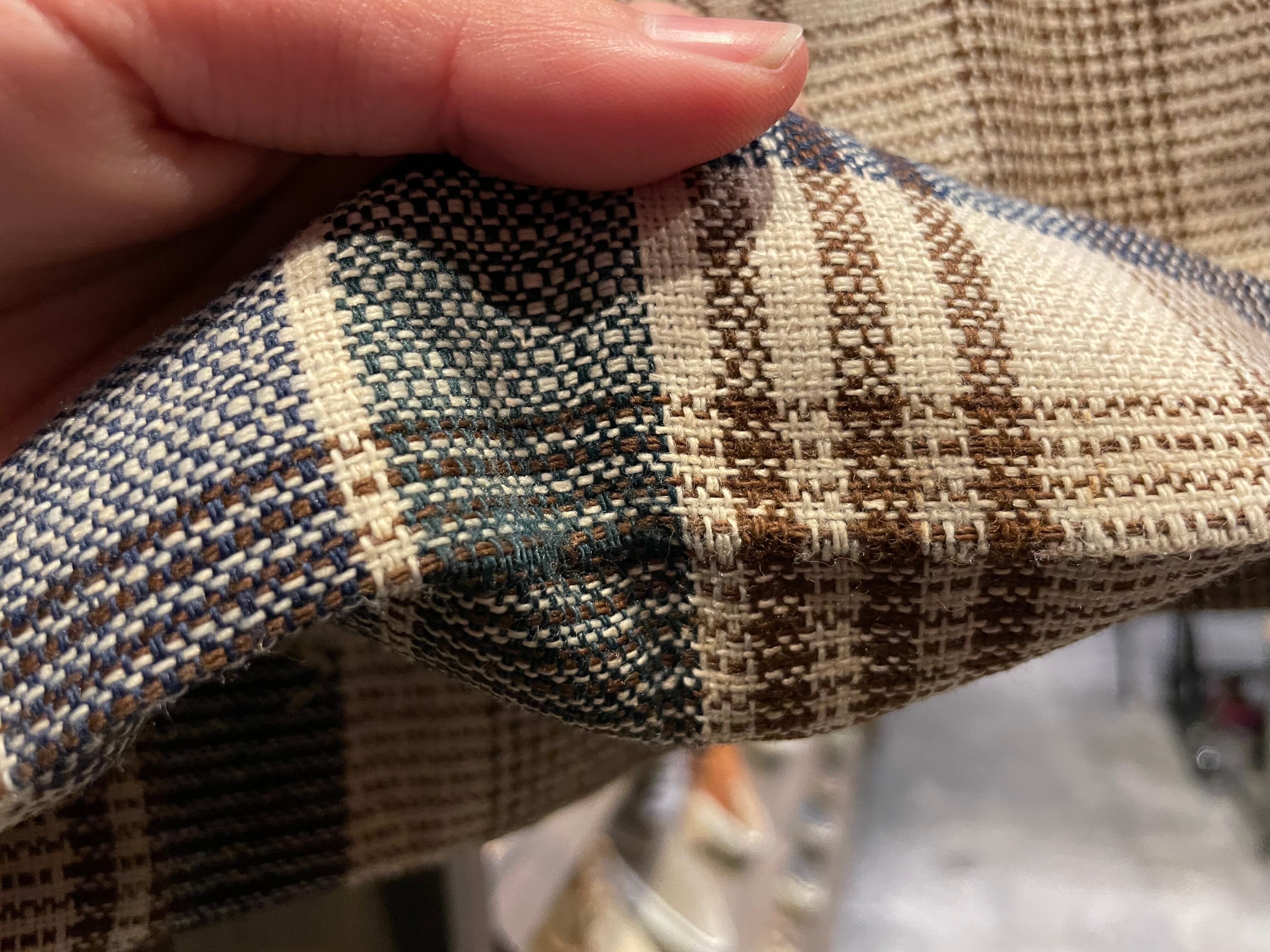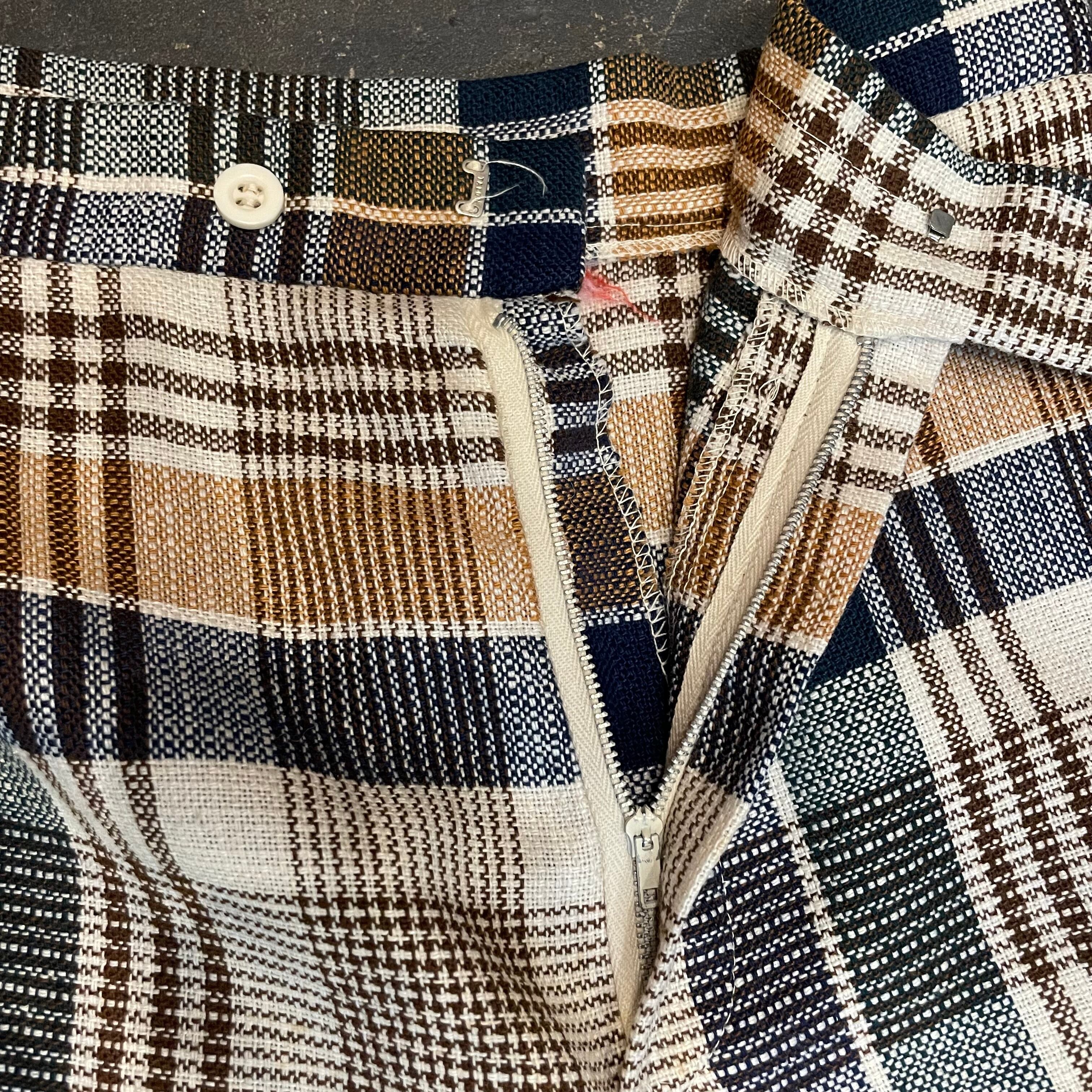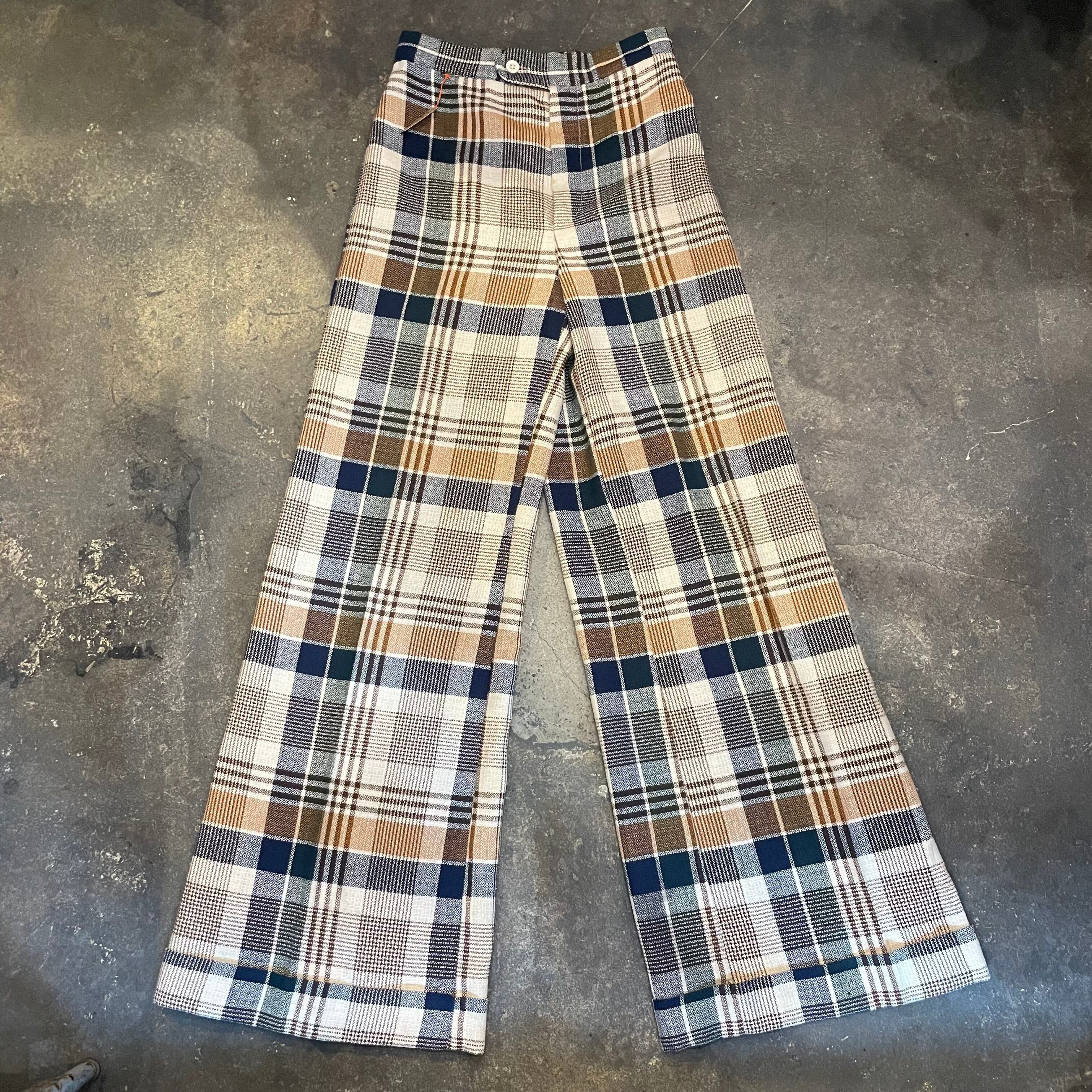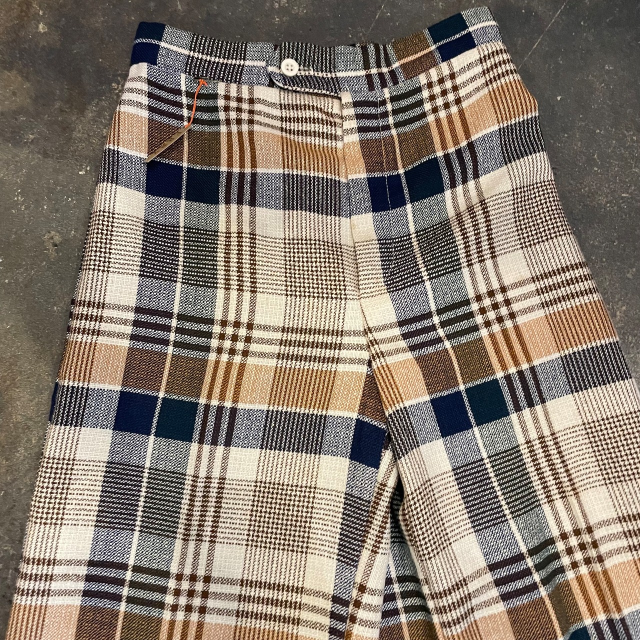シルエットがとてもかっこいいバギーパンツです。落ち着いた色味のチェック柄で主張しすぎず、合わせやすい一枚です。