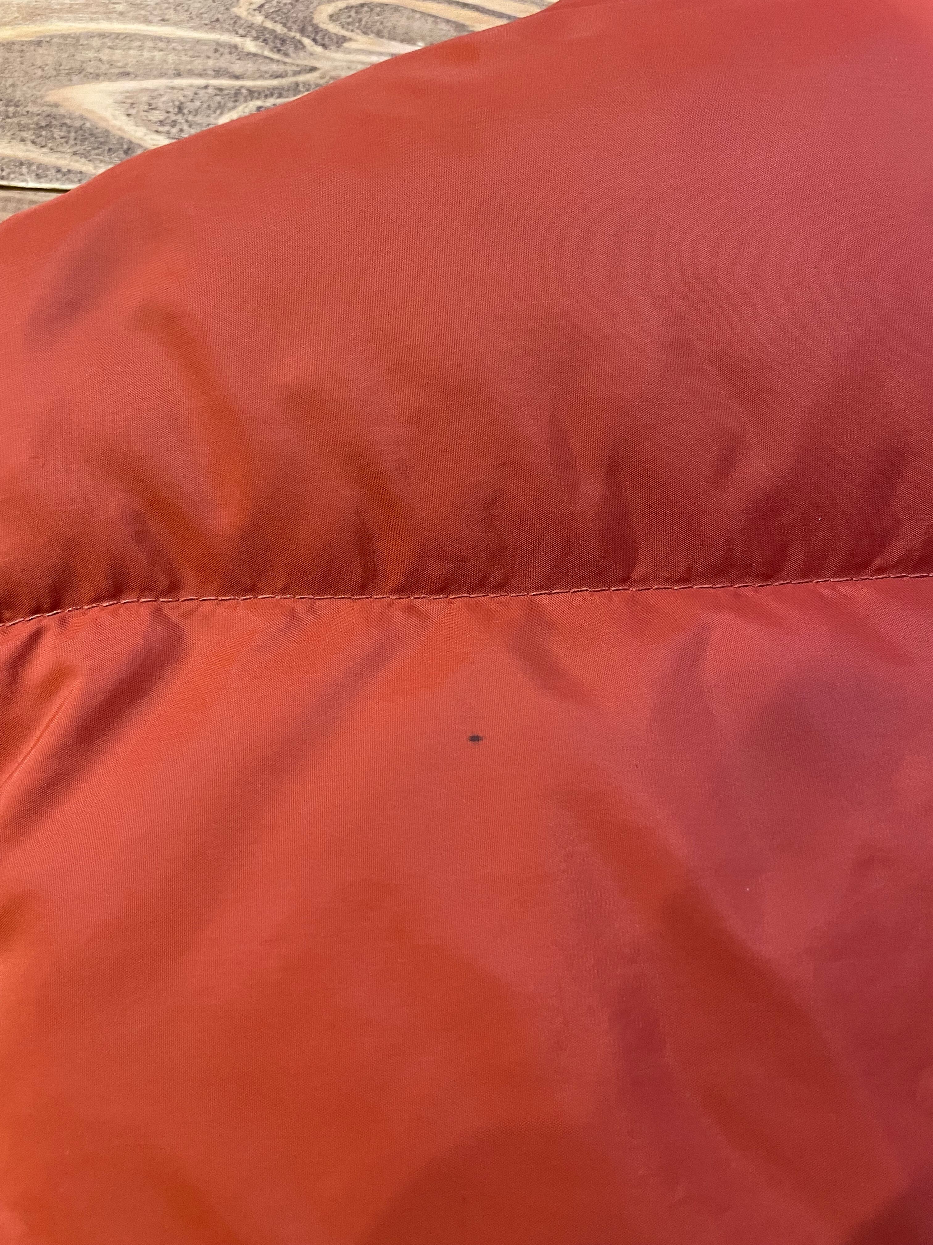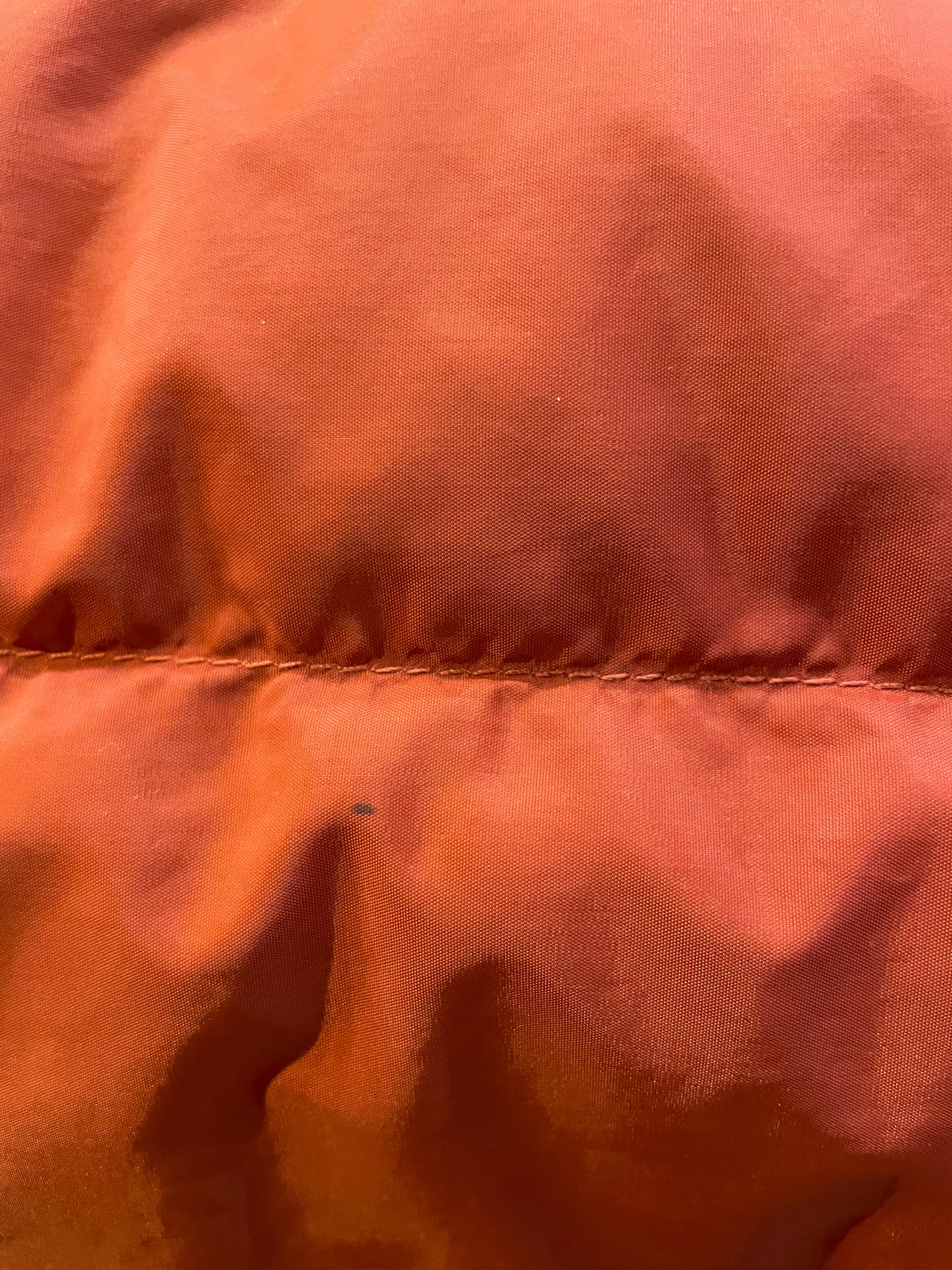 テラコッタのような茶色味のあるオレンジ色がとても良い雰囲気の色でコーディネートの差し色に使いやすい一枚だと思います。