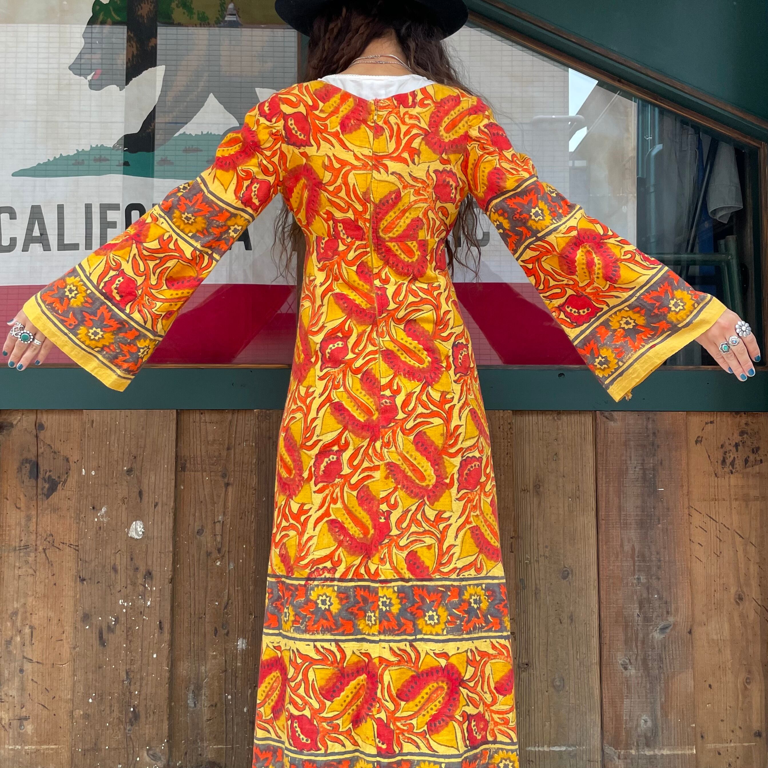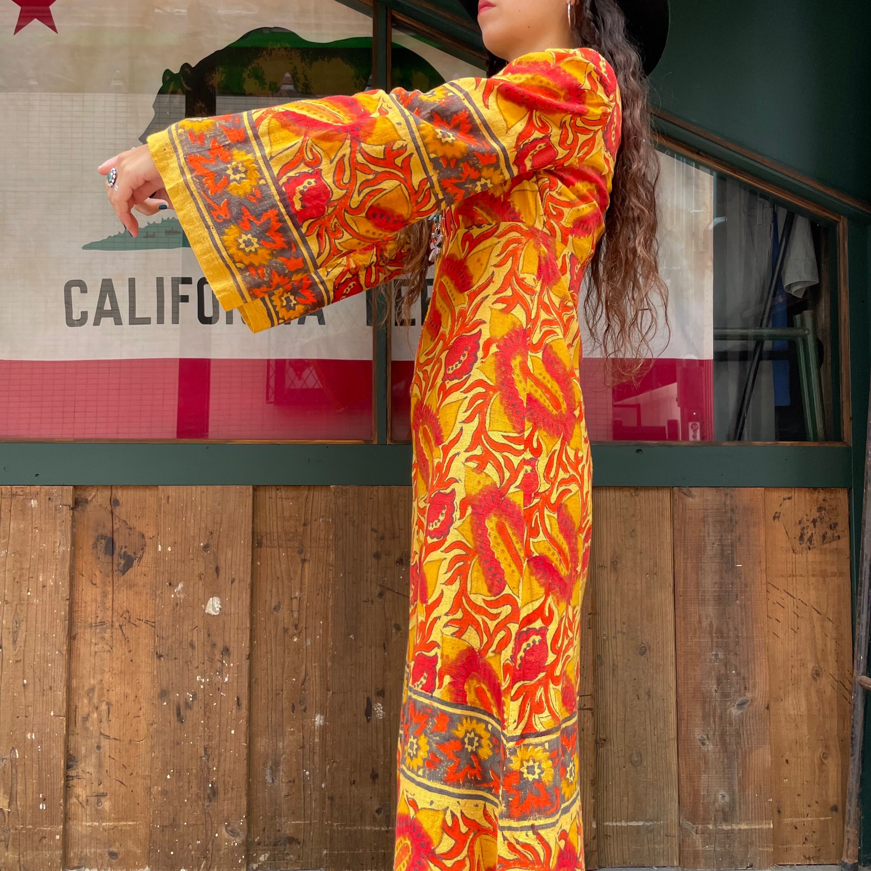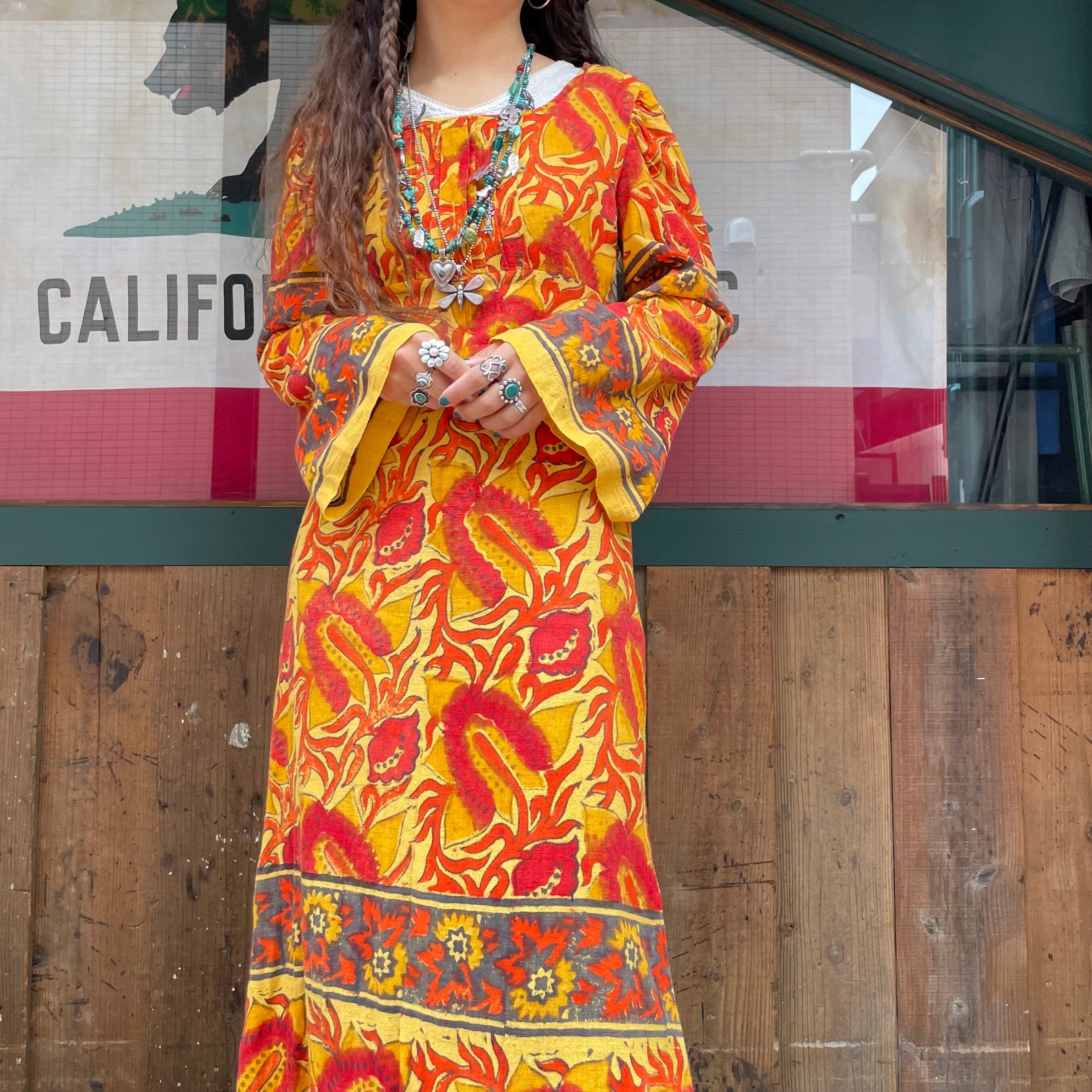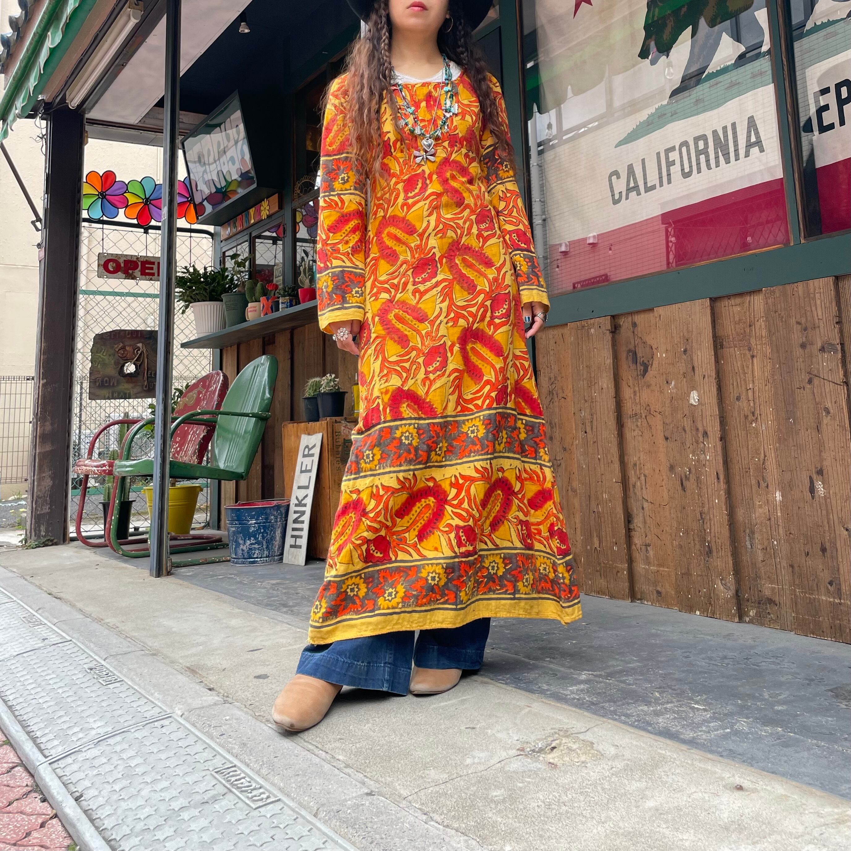 柔らかいコットンで美しいシルエットが魅力的な70年代ごろのワンピースです。