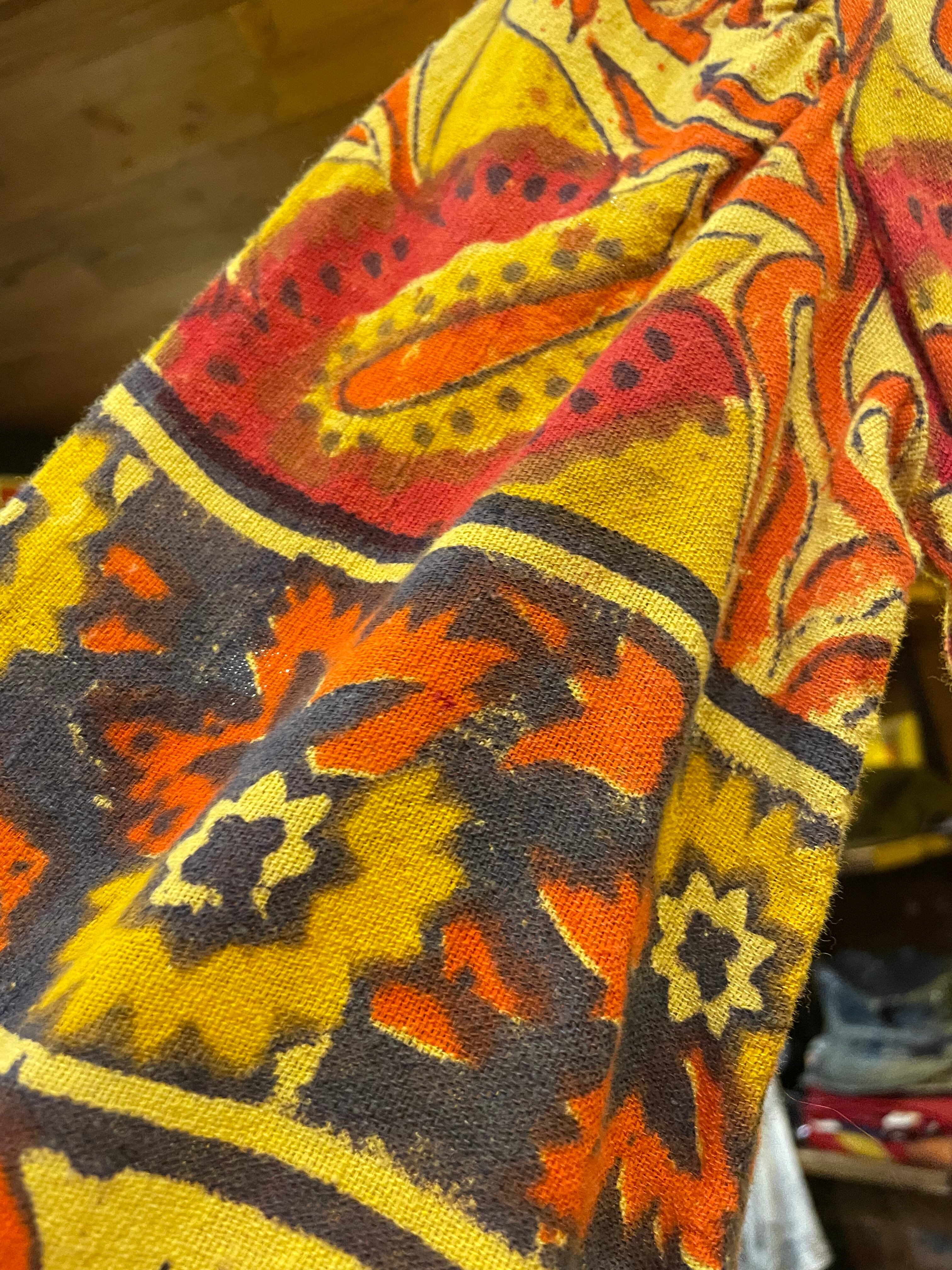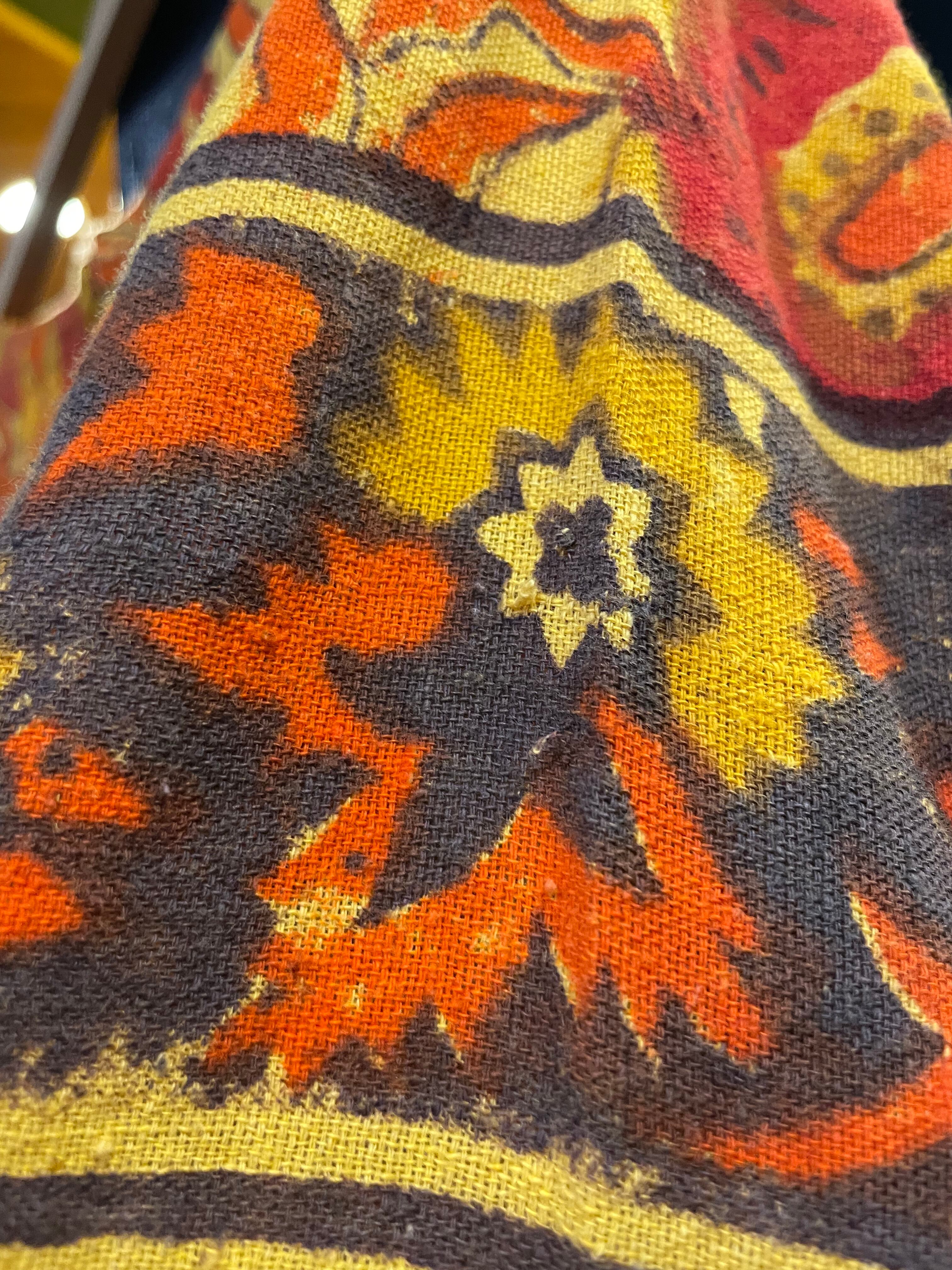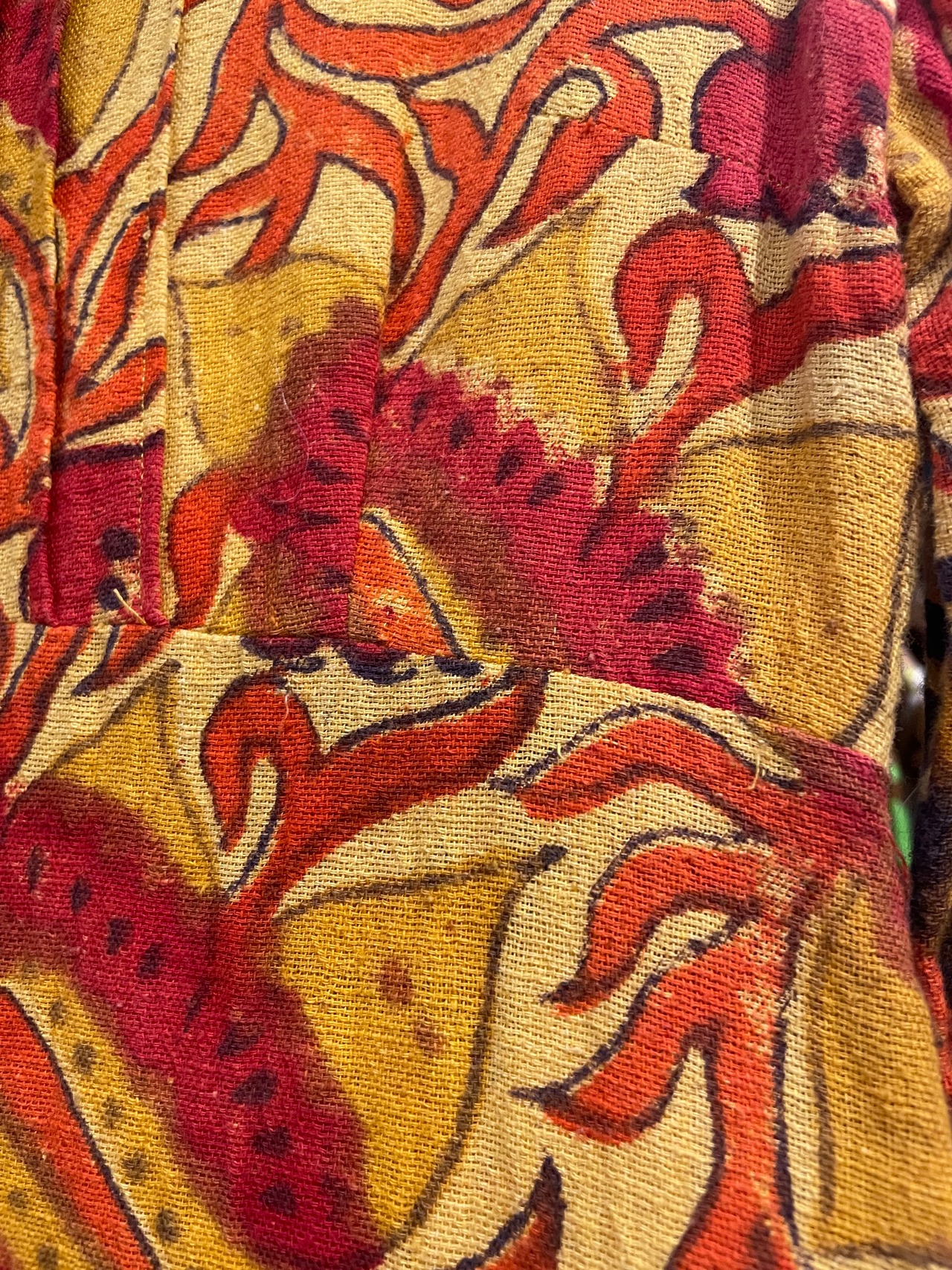 タグが無いので詳細は不明ですが、インドやパキスタンのブロックプリントのような雰囲気の柄や素材がとてもかわいいですね。
