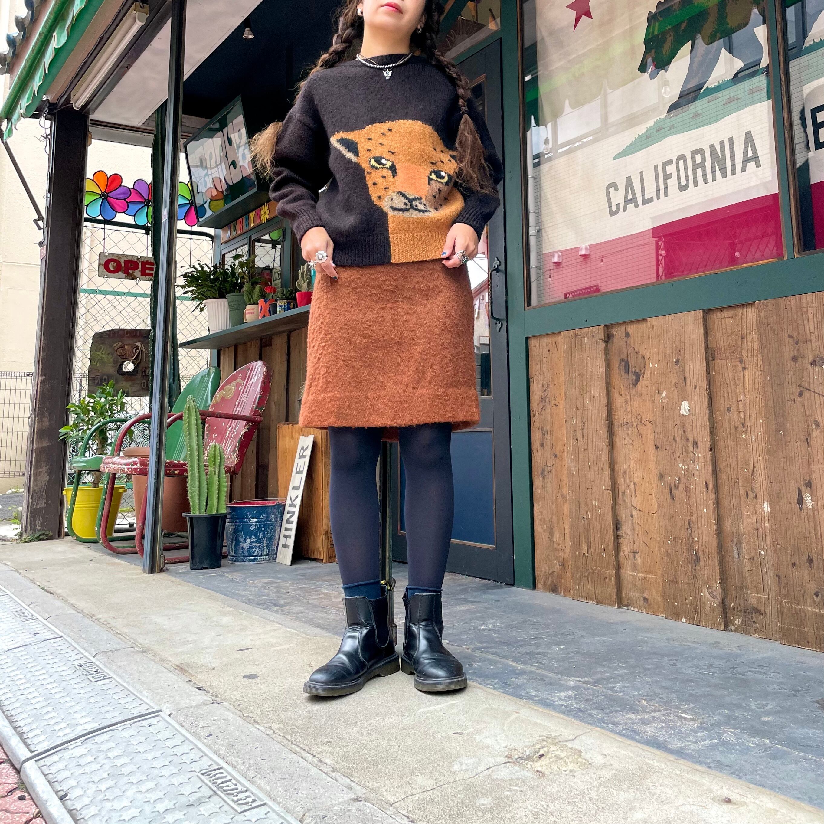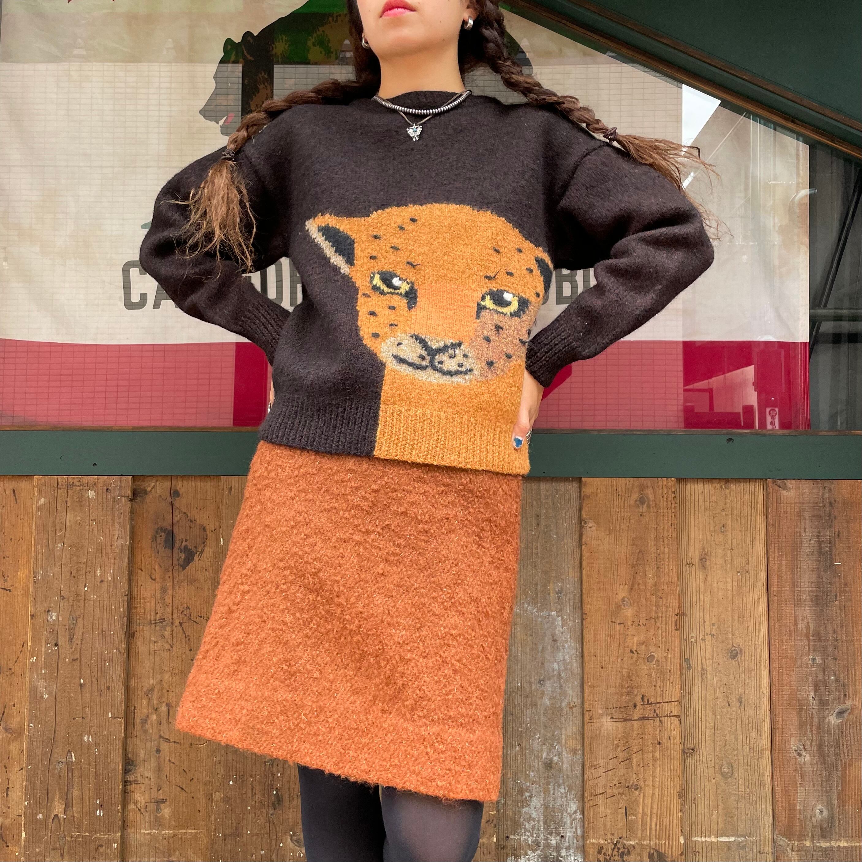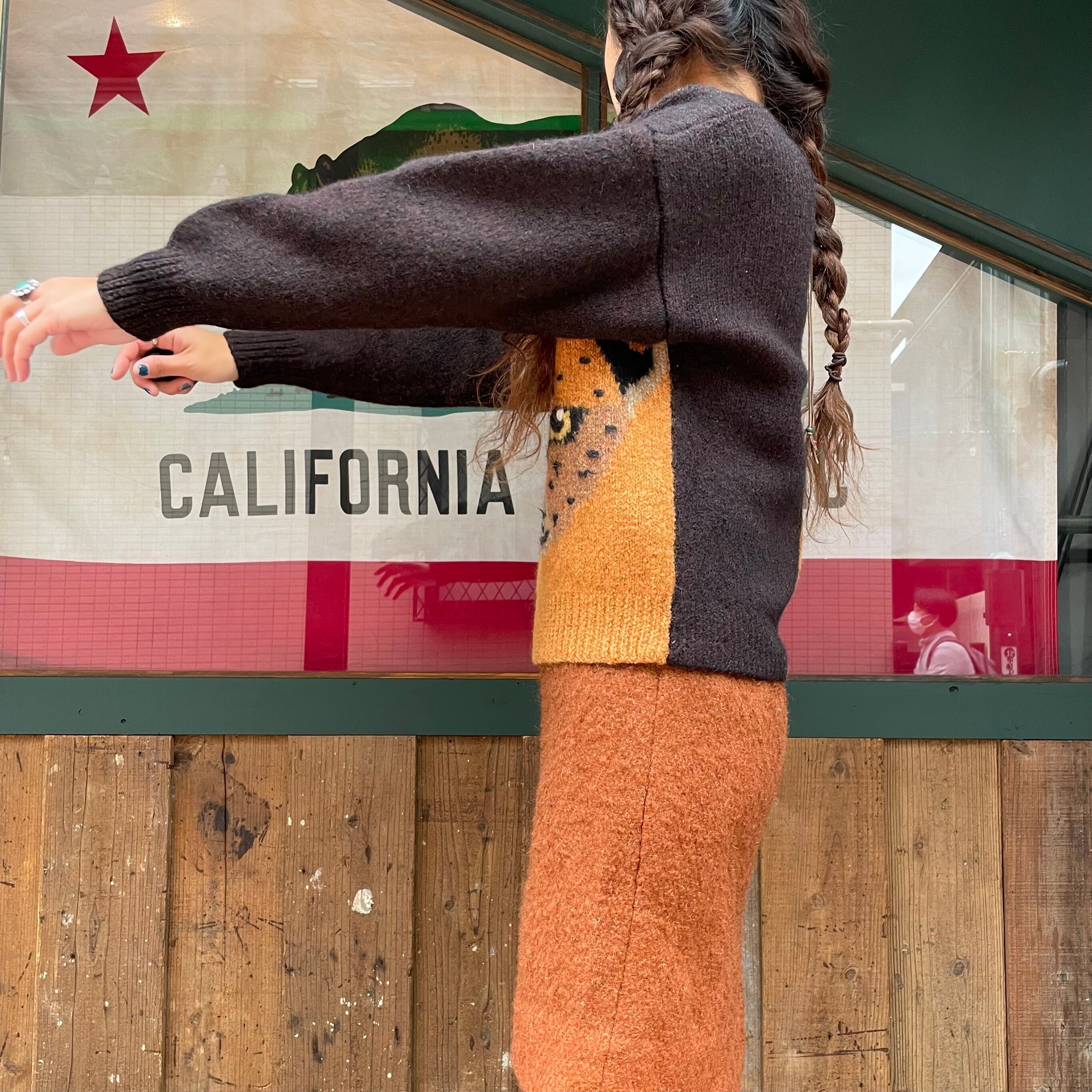 ヒョウかチーターかネコ科の動物がドーンとかわいいセーターです。