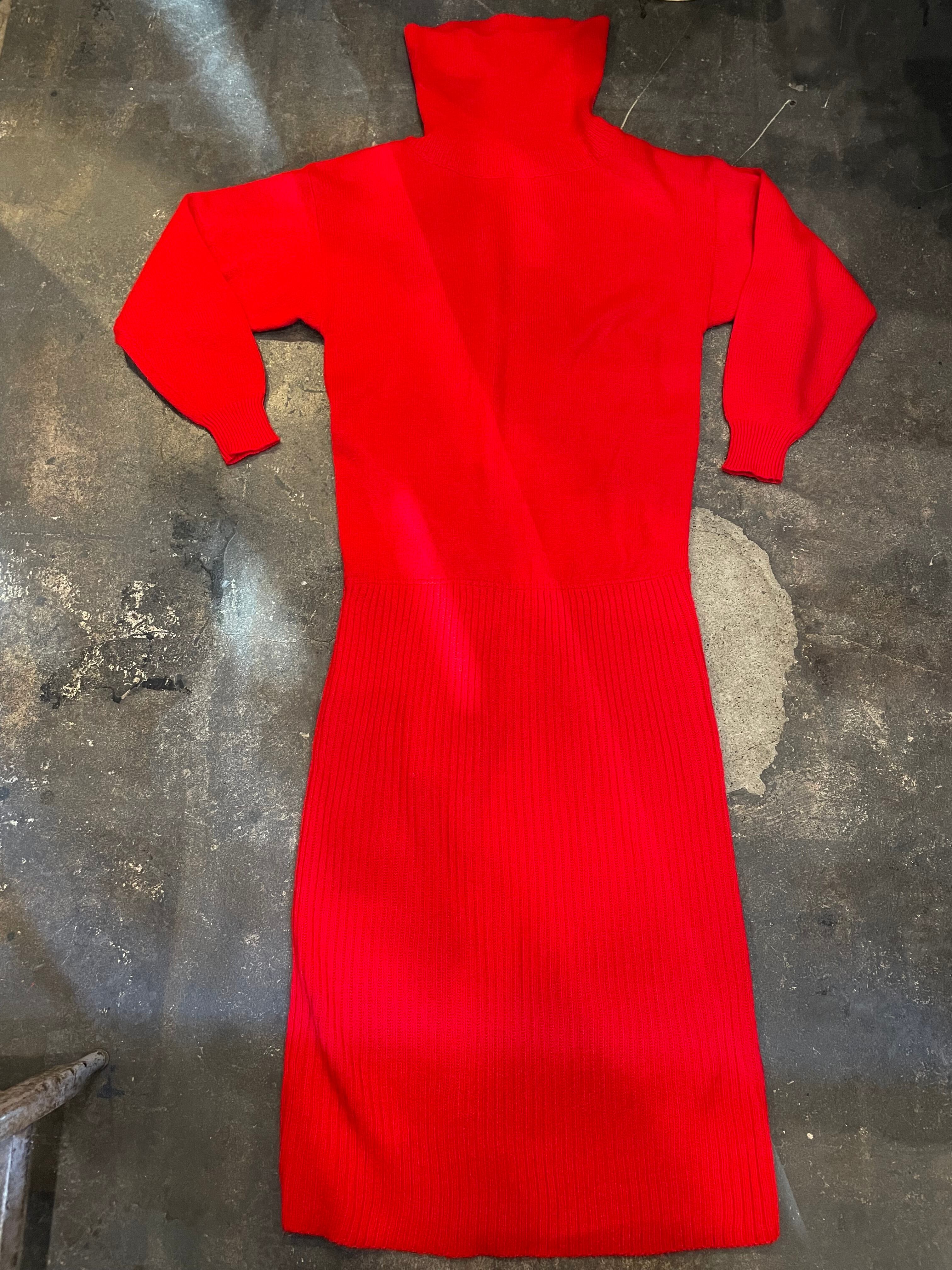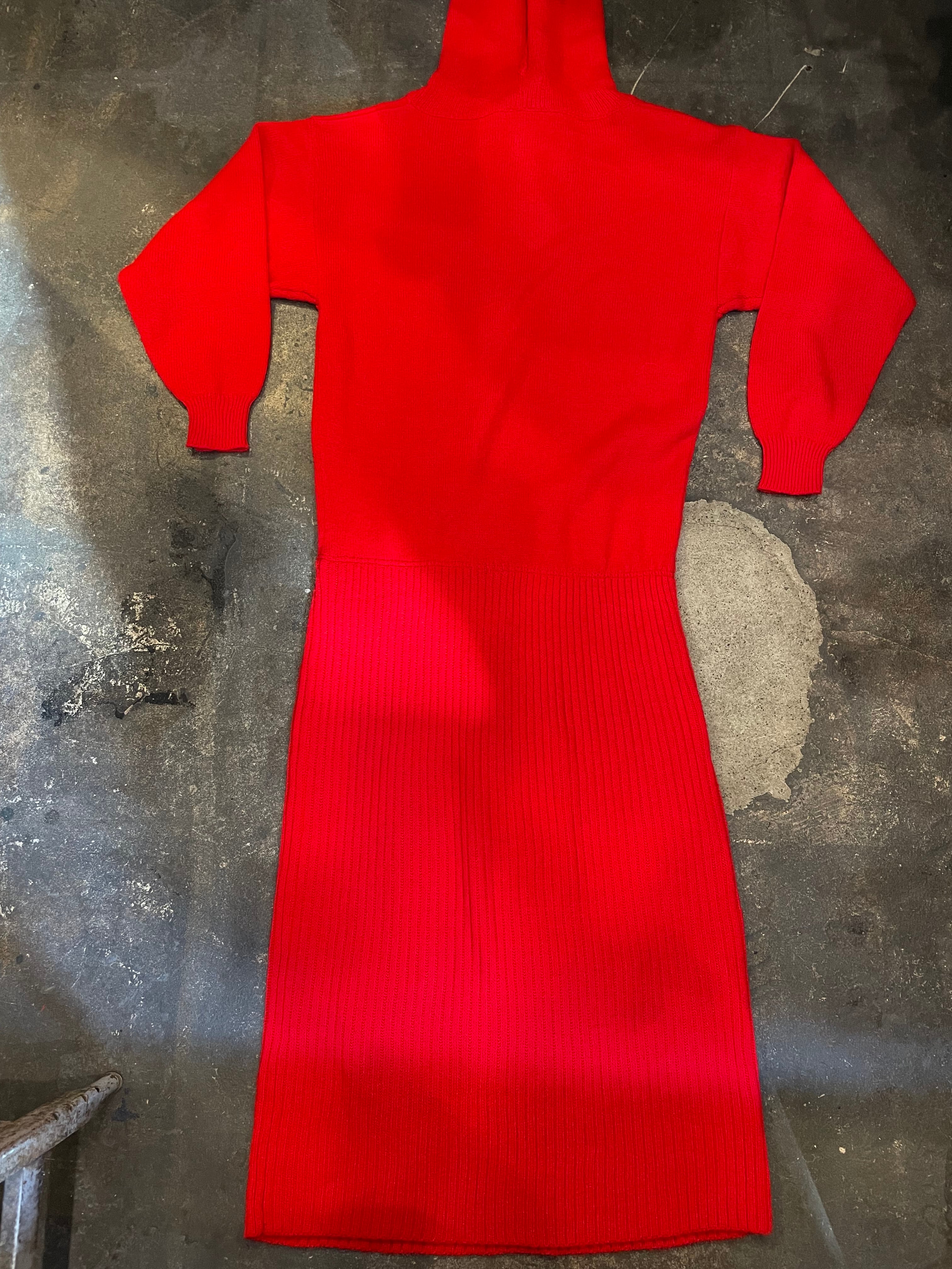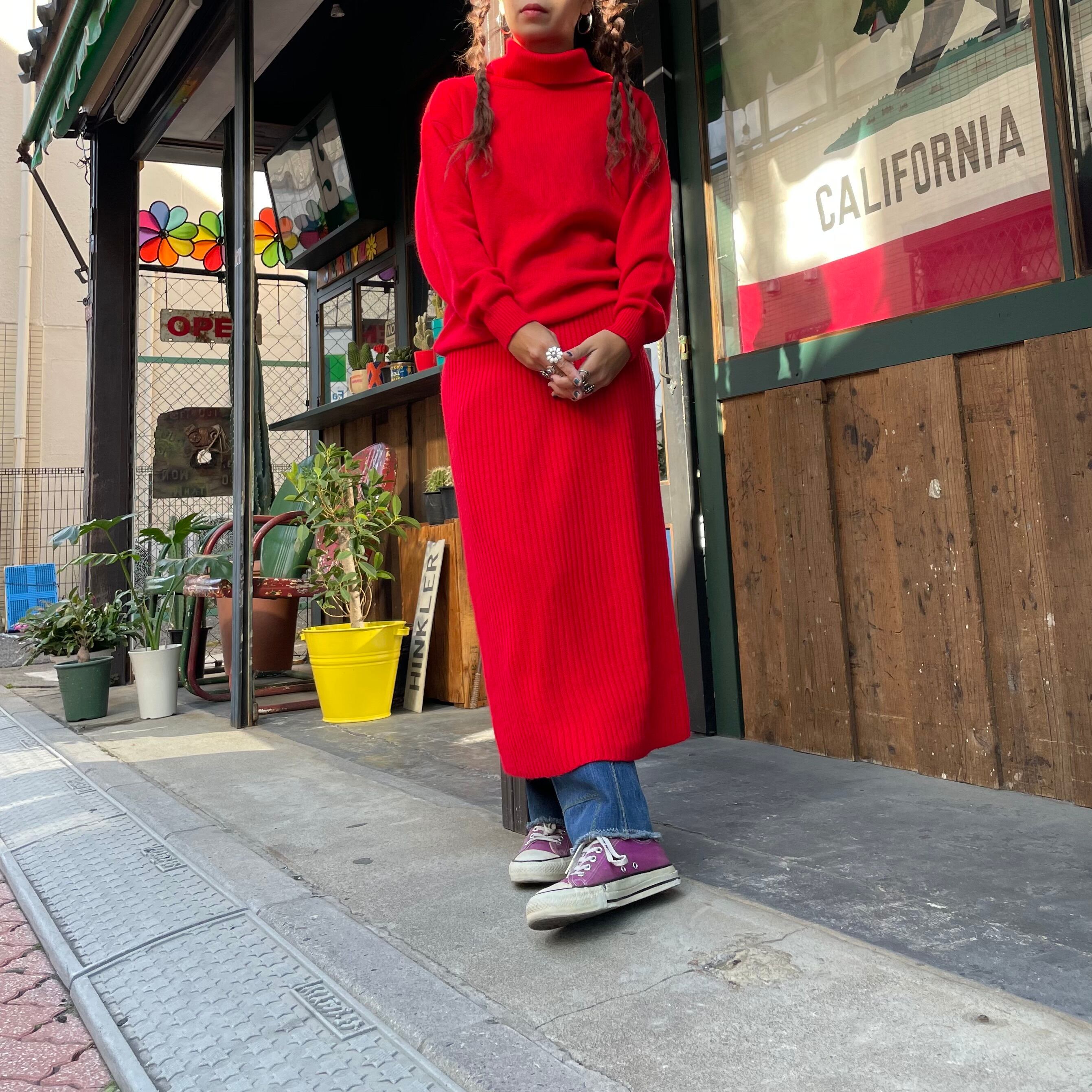 潔く真っ赤なニットワンピースです。