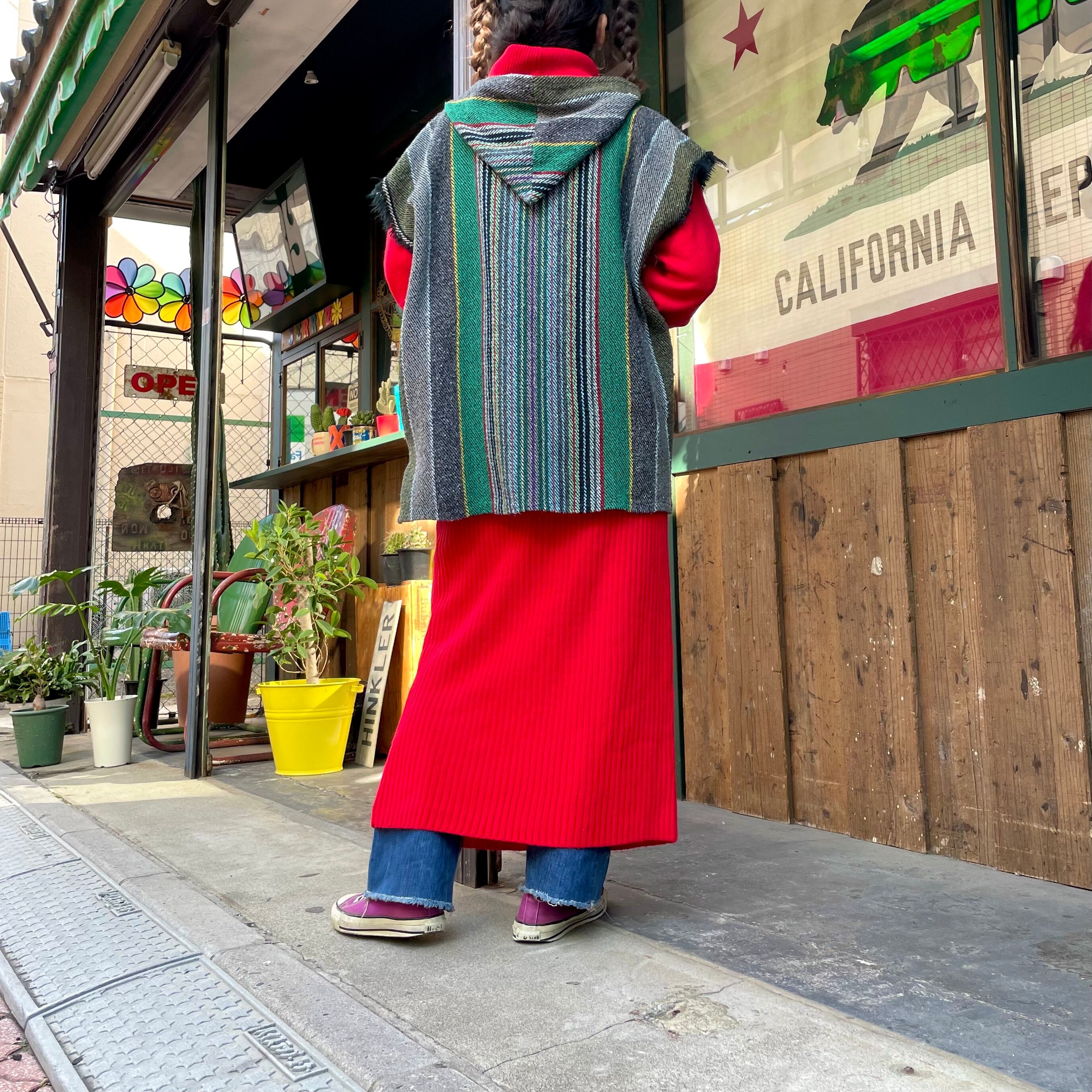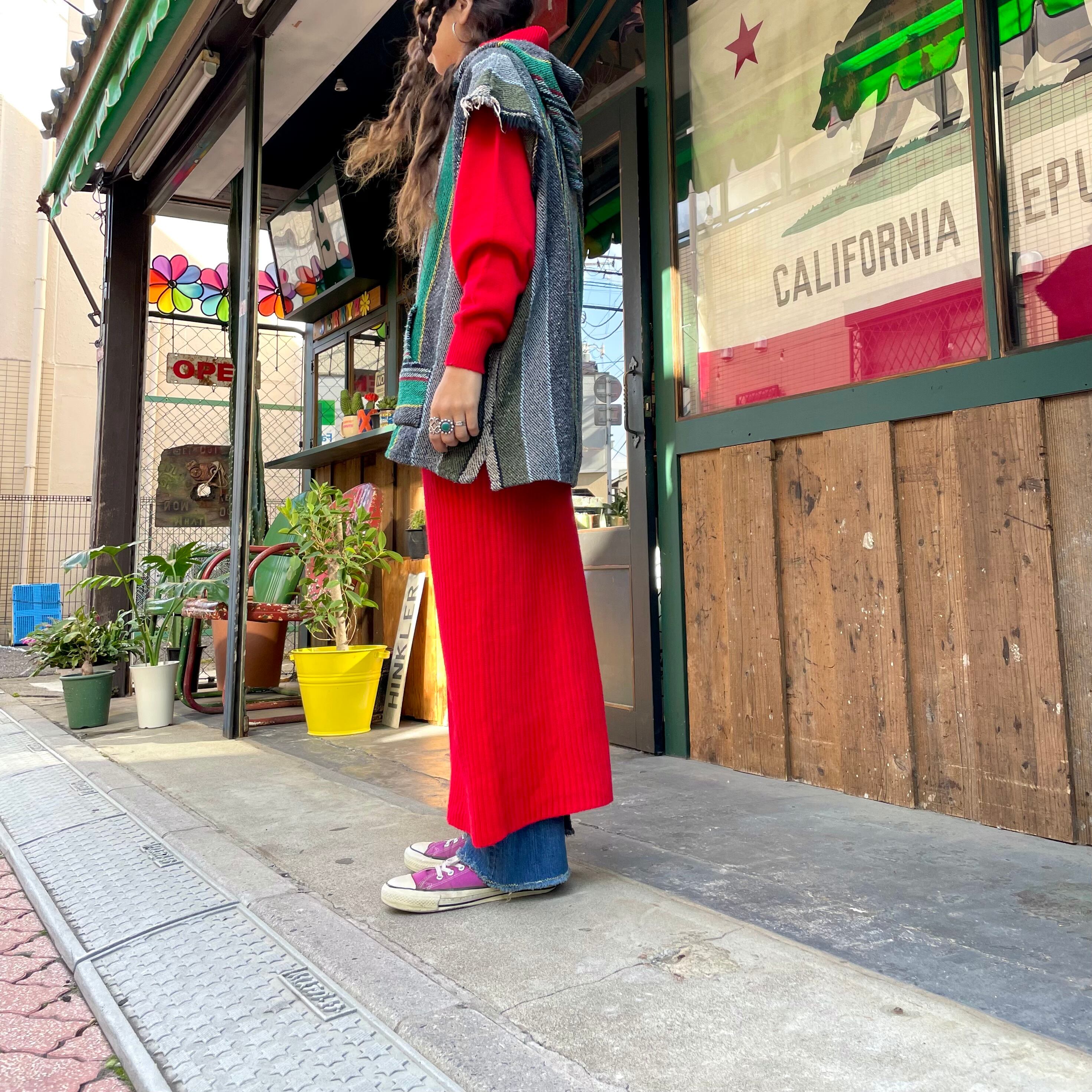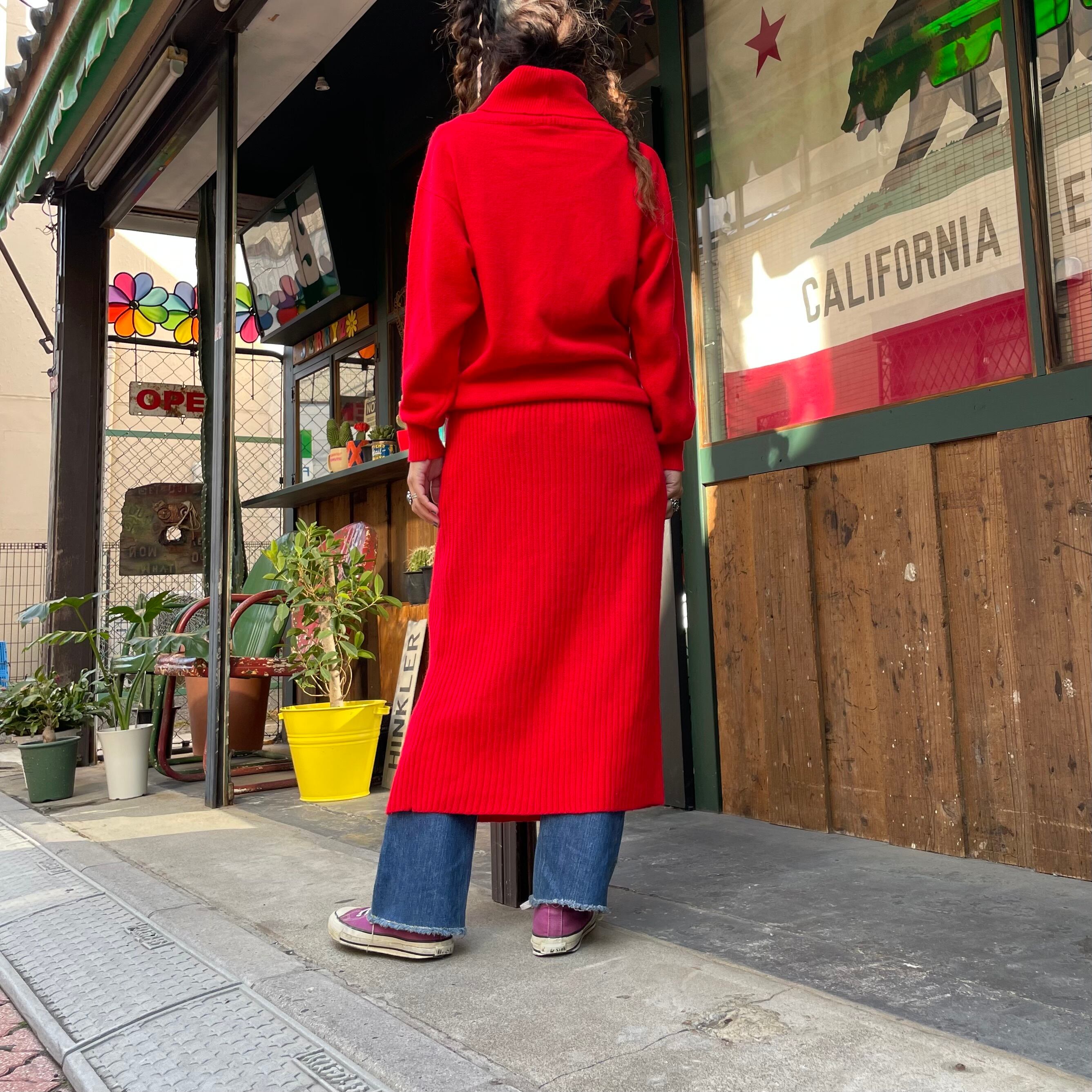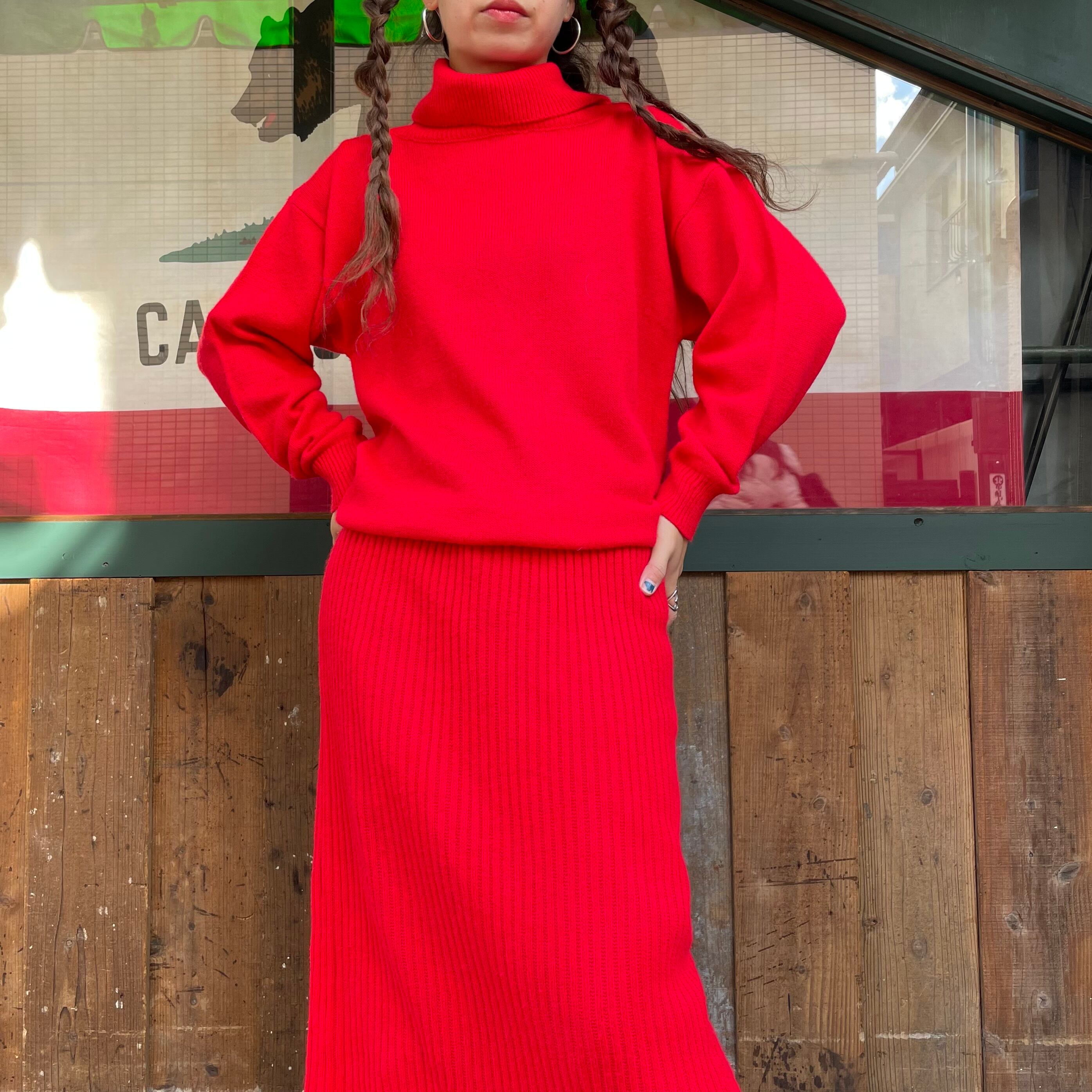 潔く真っ赤なニットワンピースです。