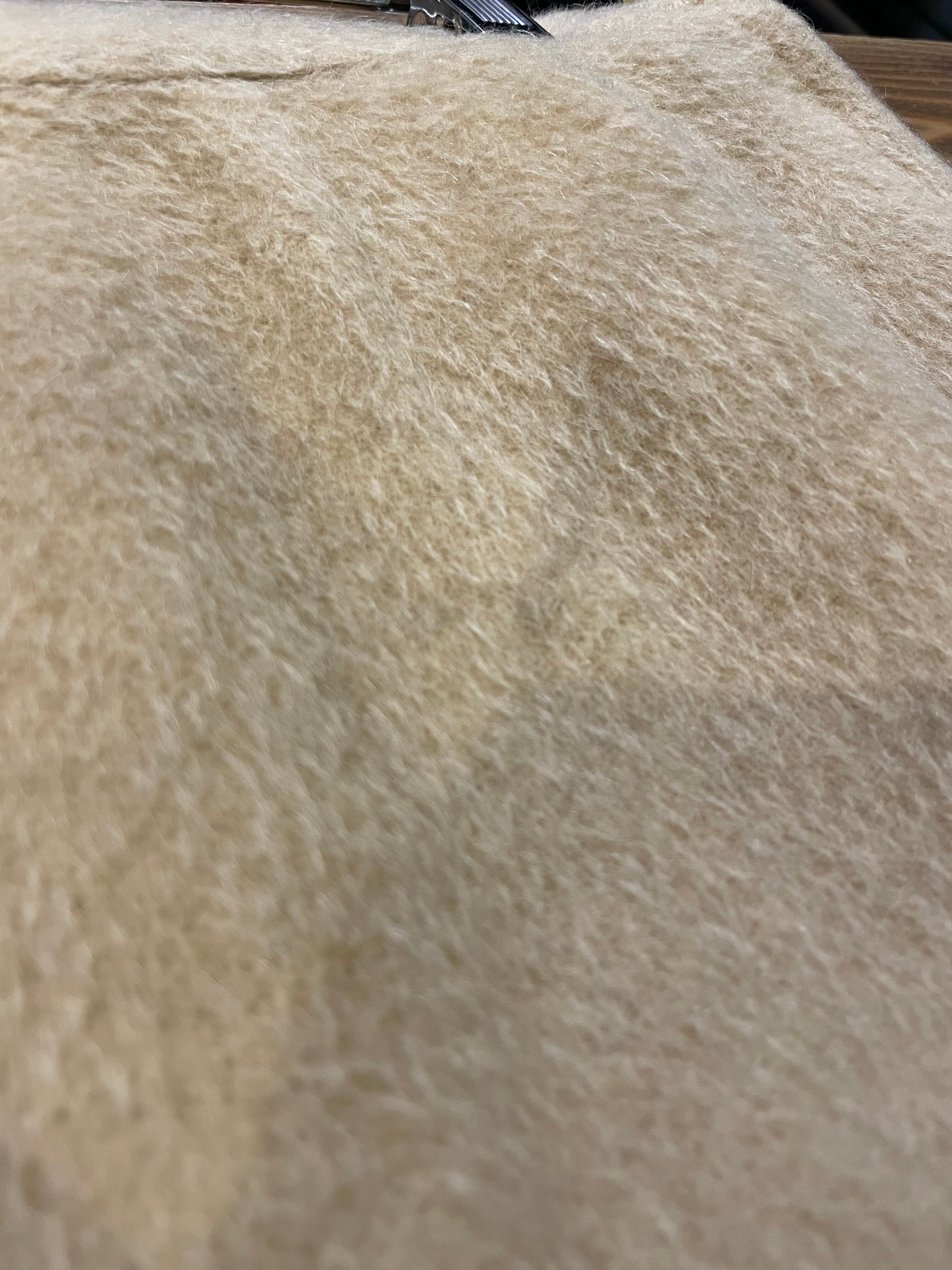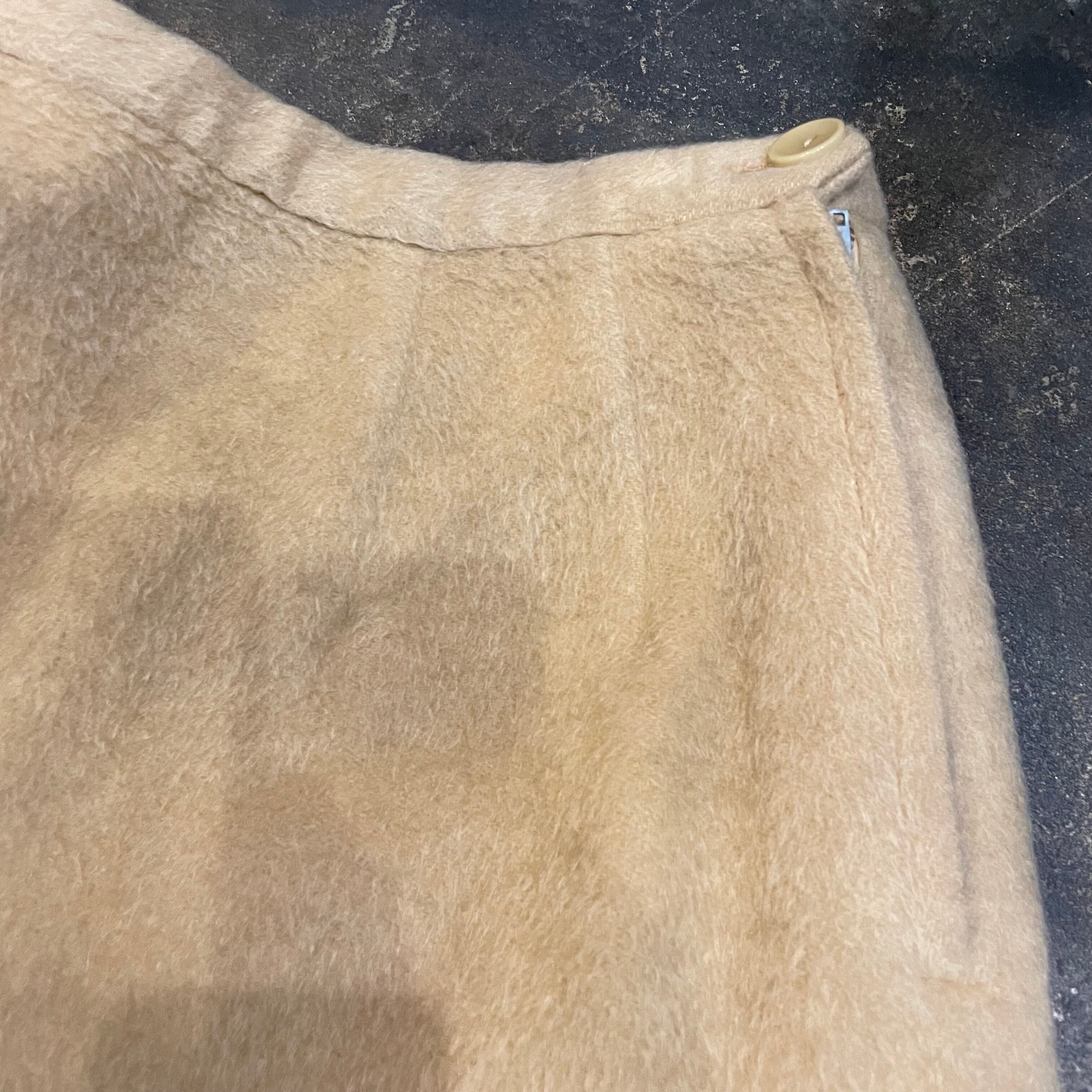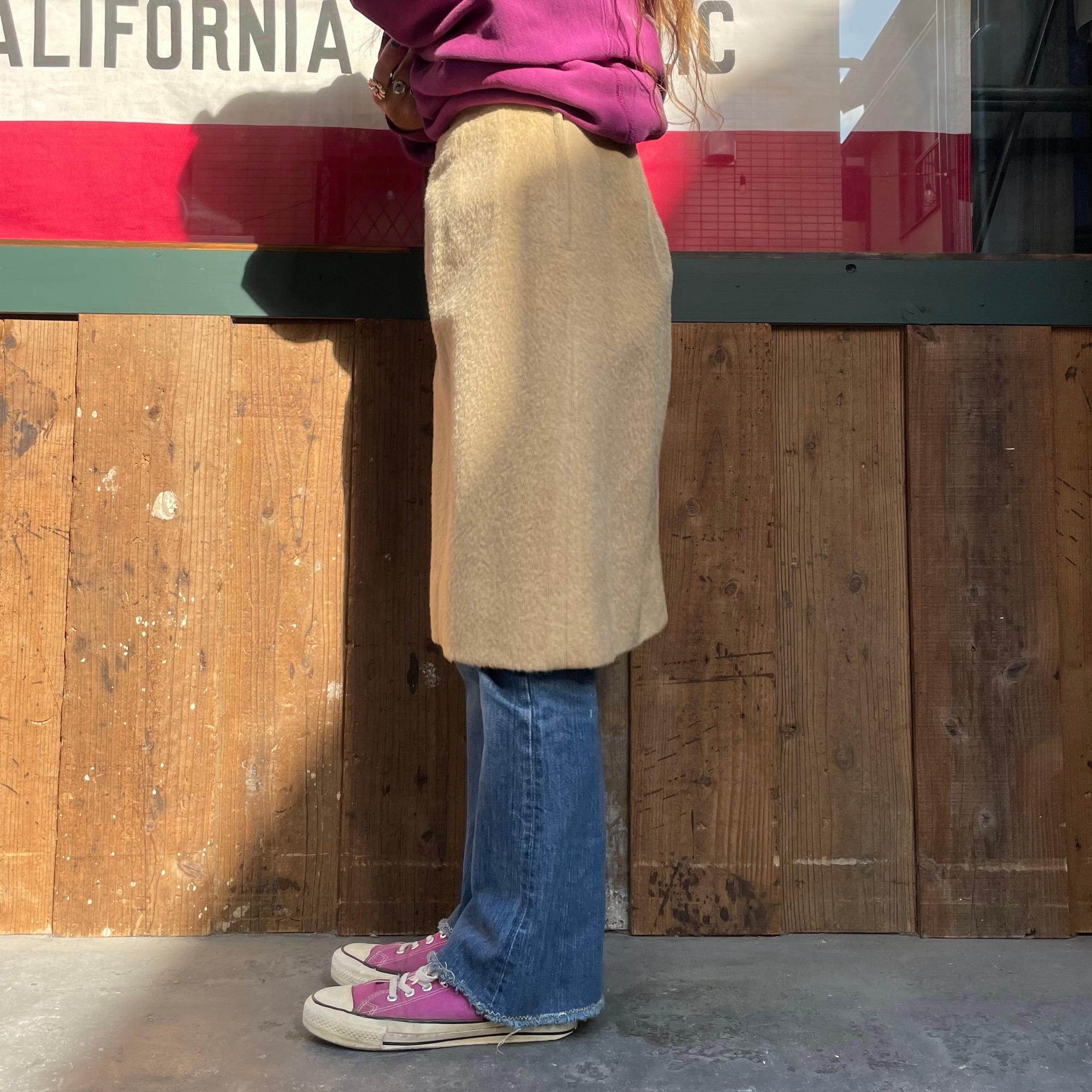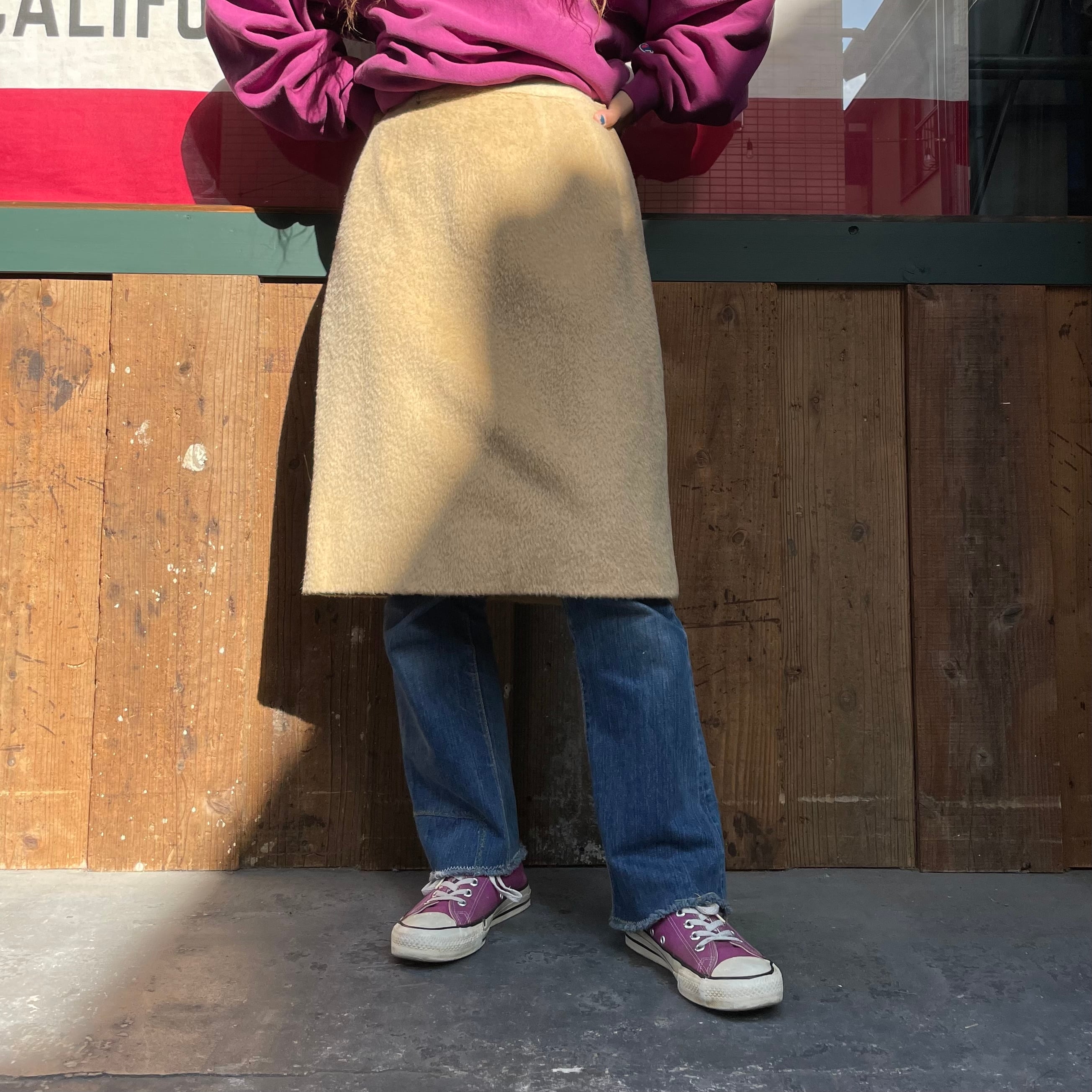 ベージュの毛足の短いフェイクファーが犬や猫を触っているようなふわっとした触り心地でかわいいスカートです。