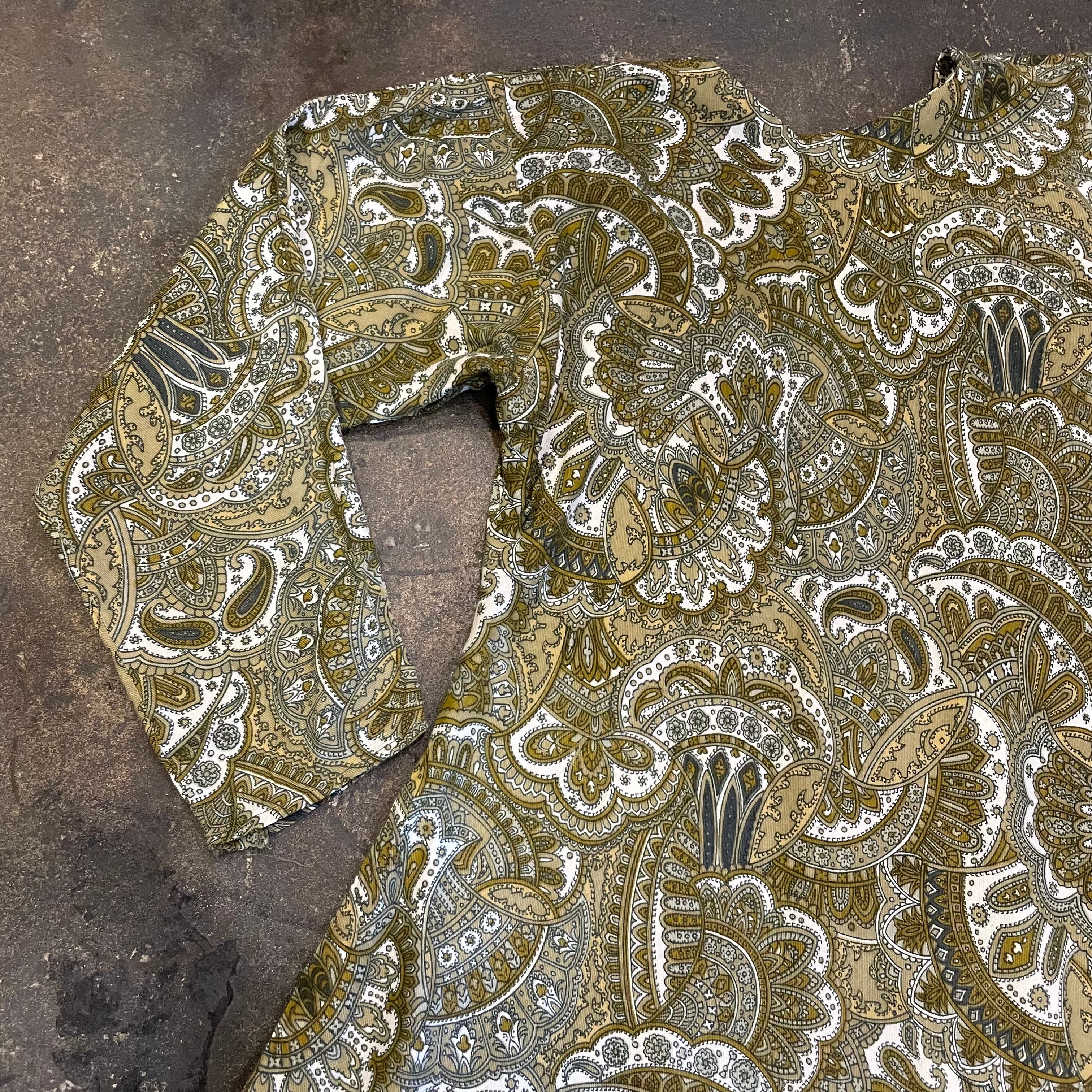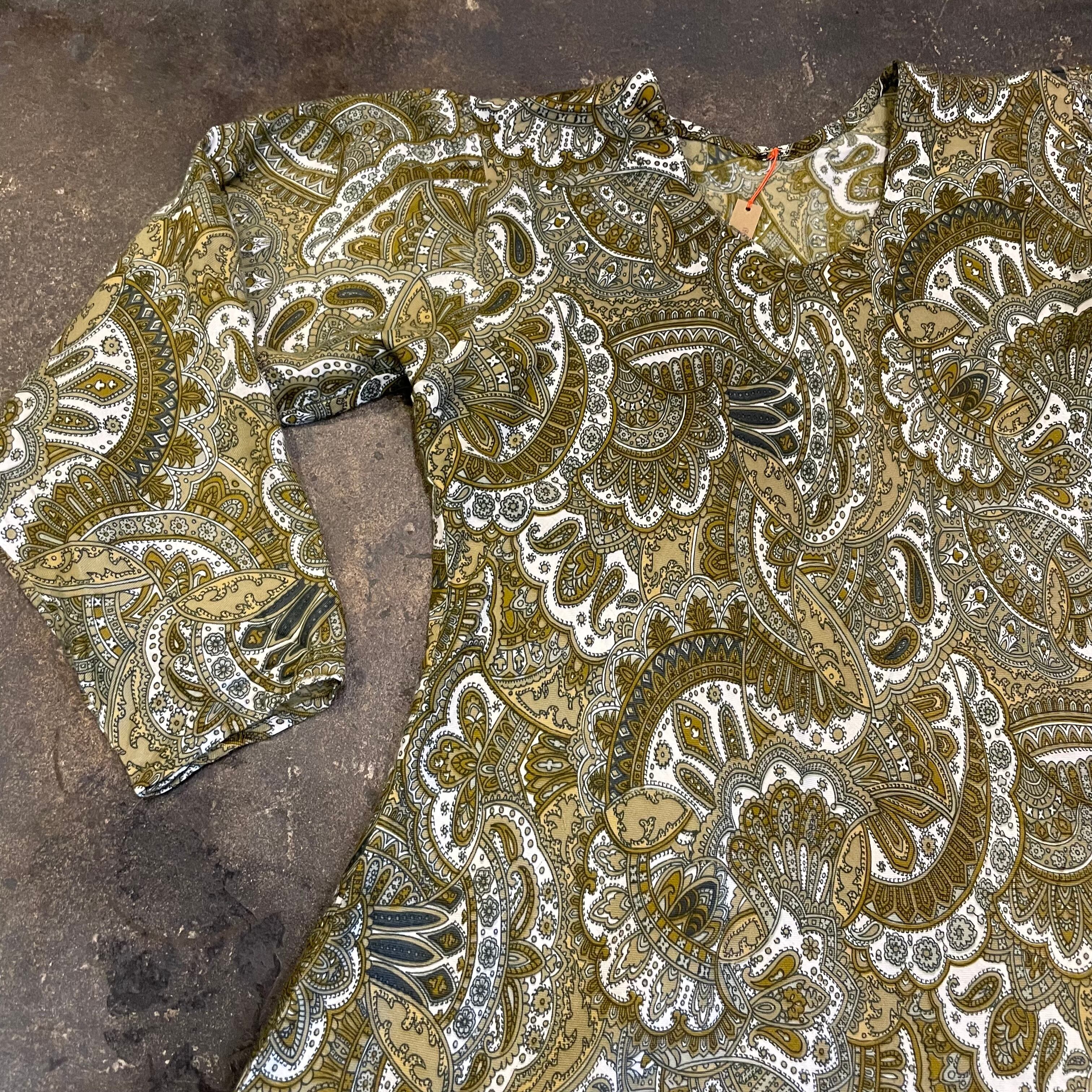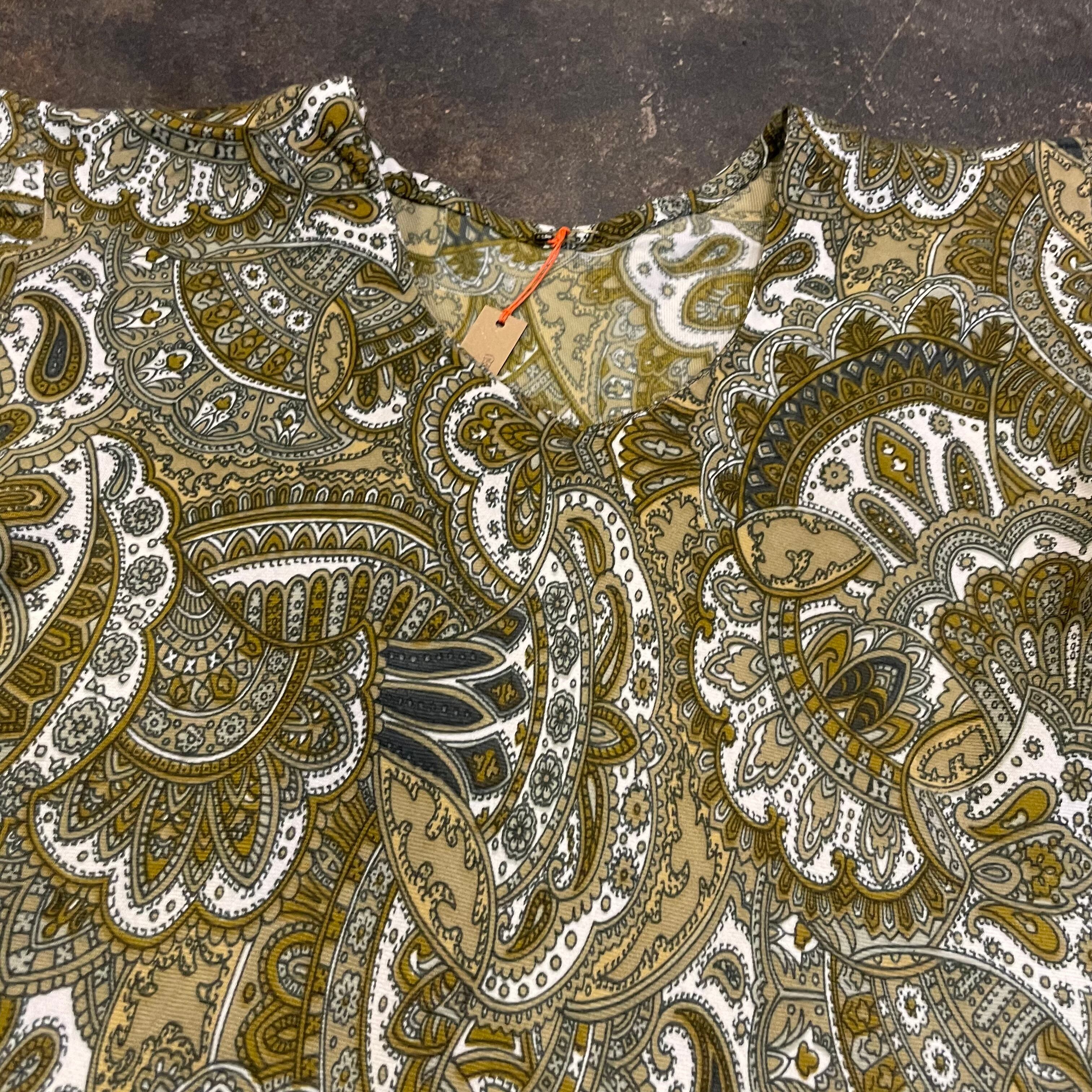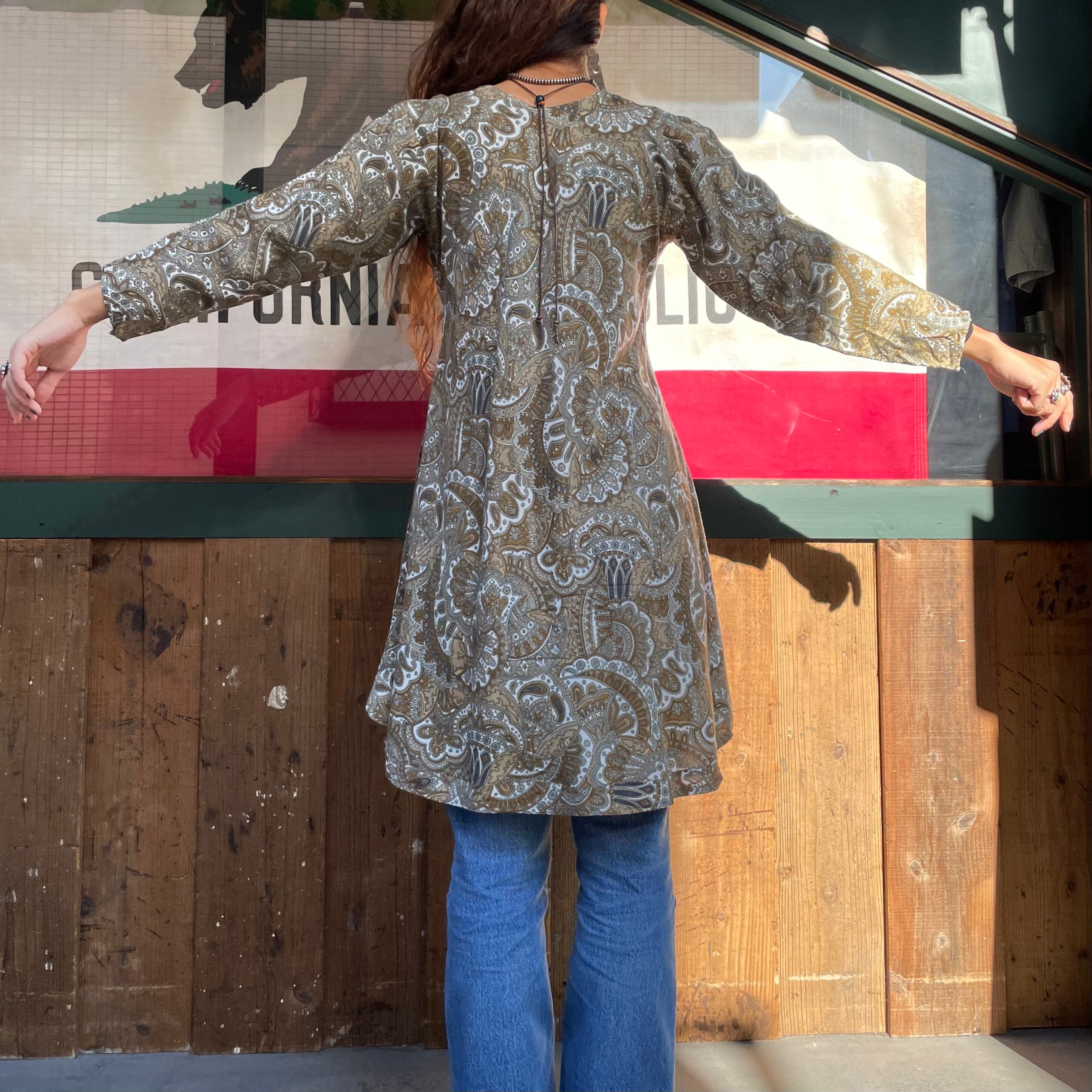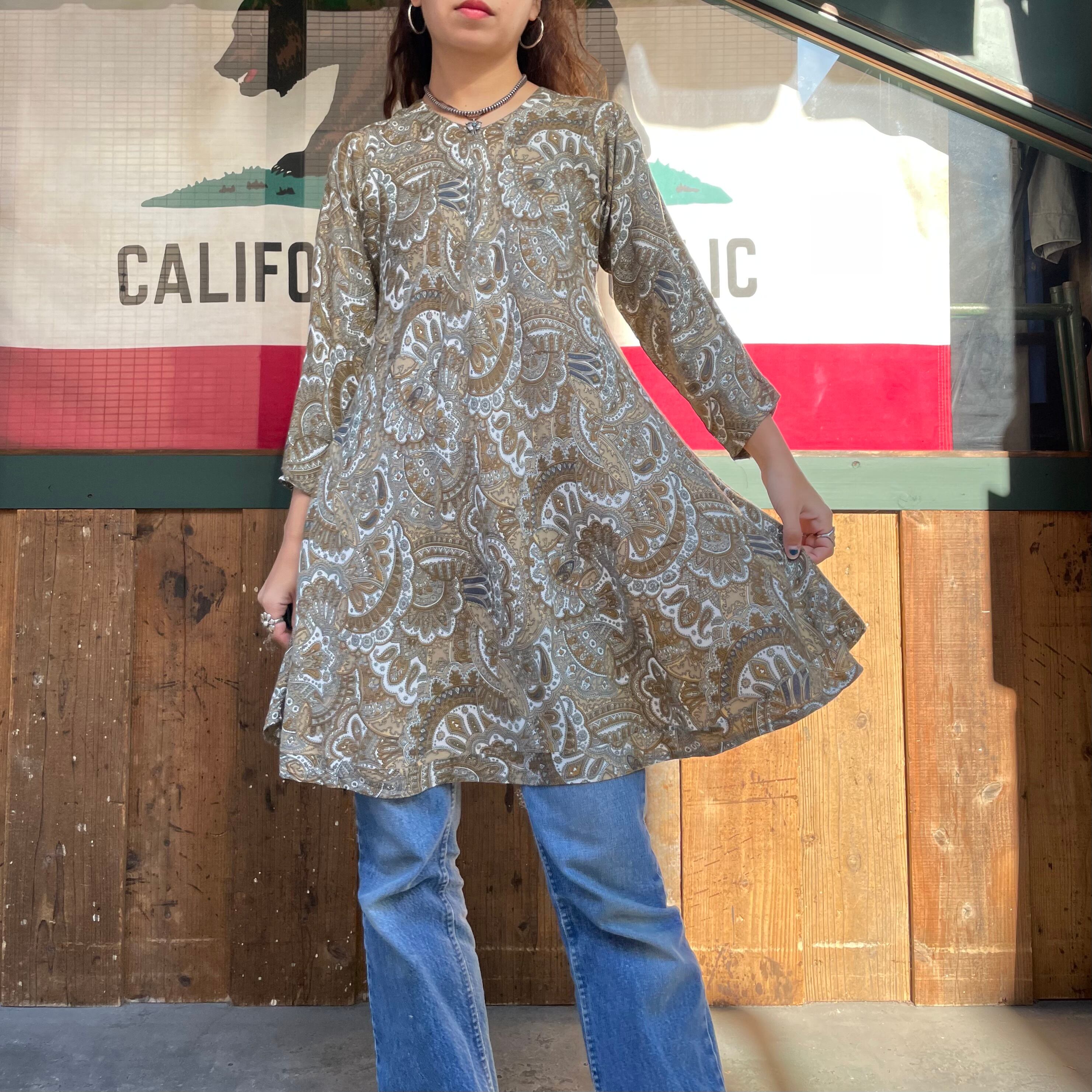 おそらくハンドメイドのアイテムで、袖の長さが微妙だったり生地をバイアスに使っていたり、裾に3センチほど生地が足されていたり、細かなこだわりを感じる一枚です。