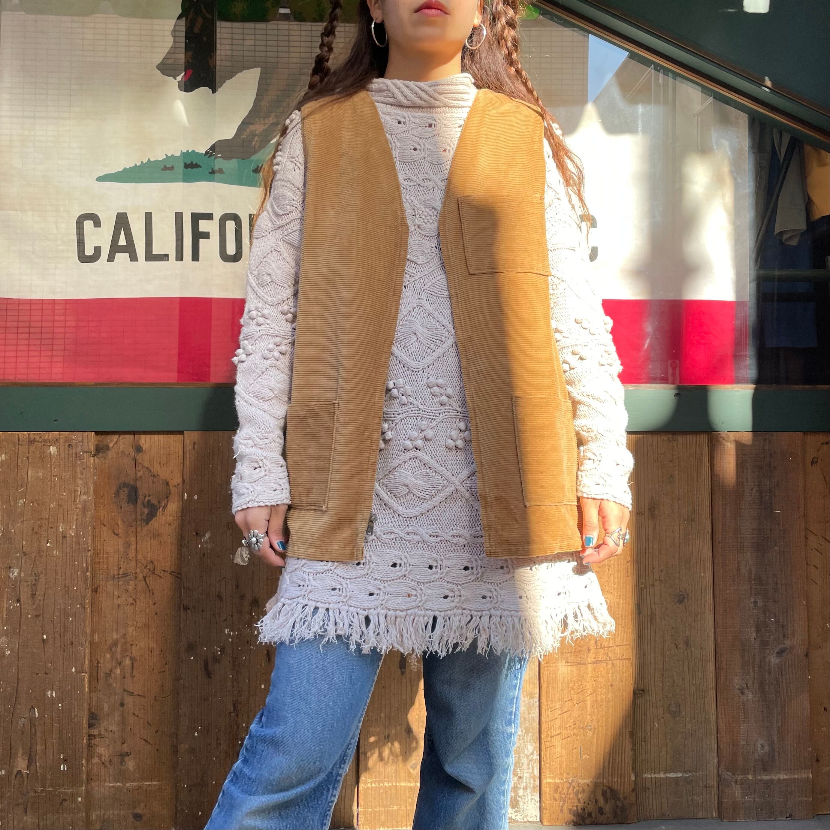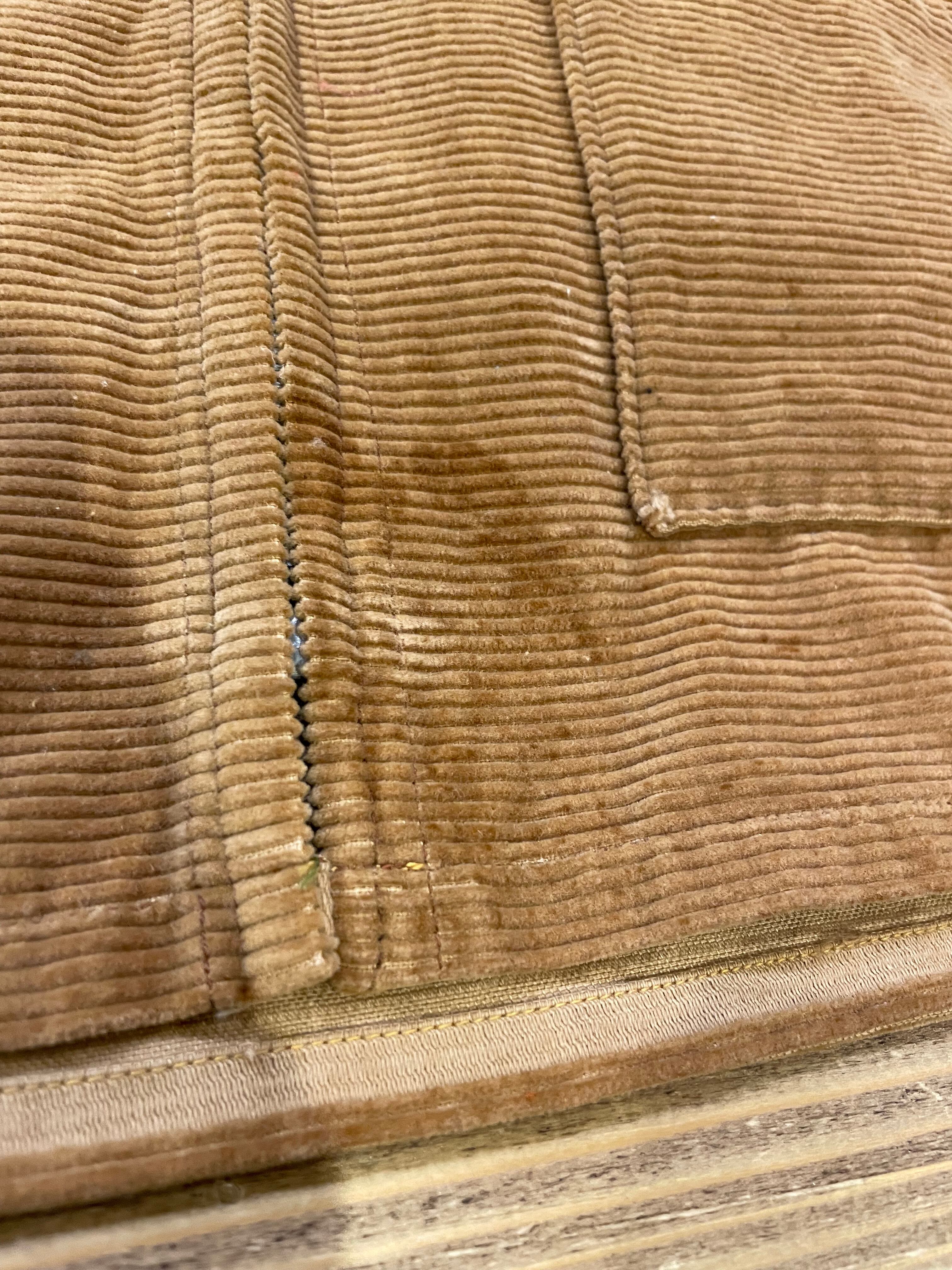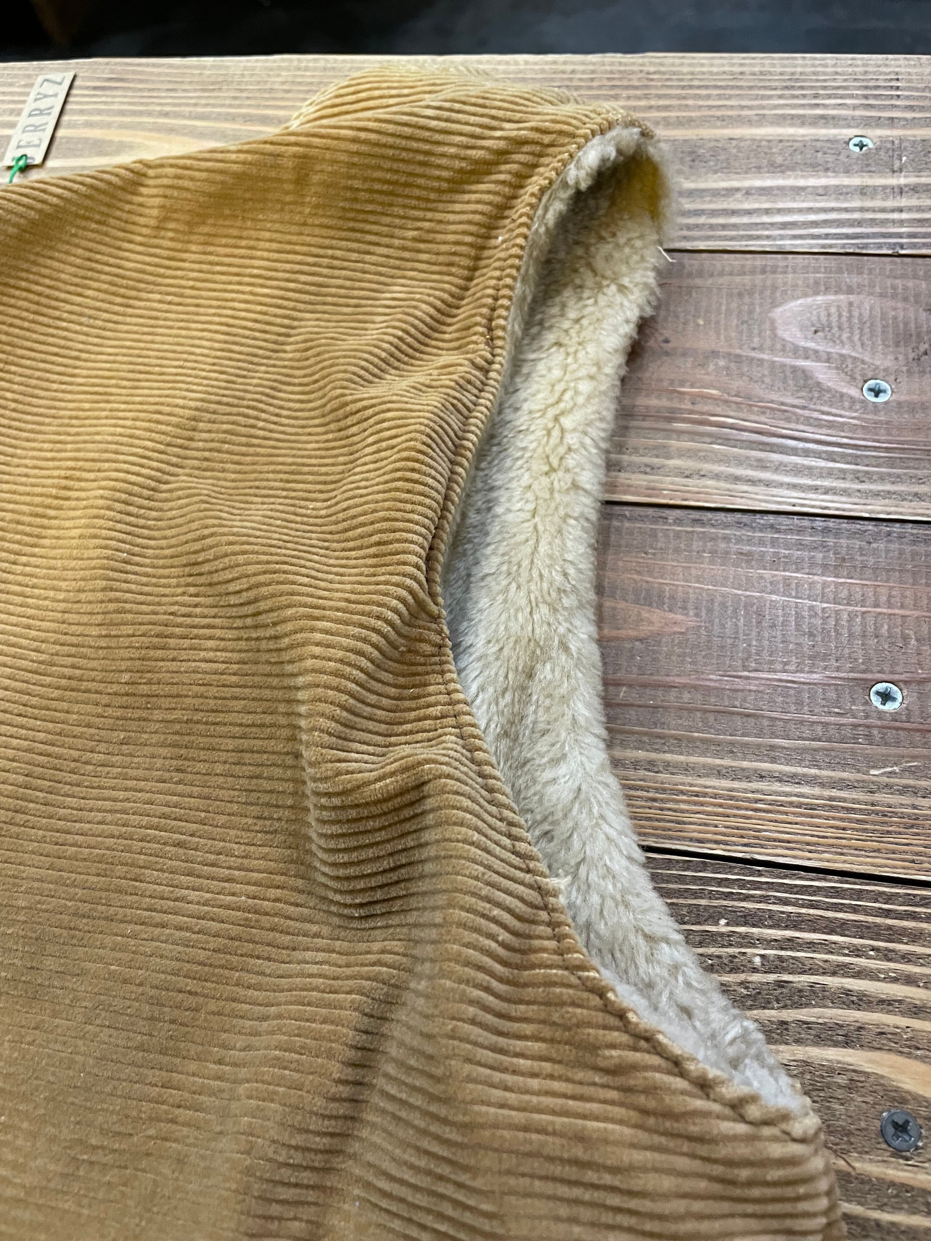 おそらくリメイクかハンドメイドのもので、コーデュロイが横地で使われていたり、裏地が足りておらずだったりしますが、身幅は大きすぎないのに丈はしっかり長めでかわいい一枚です。